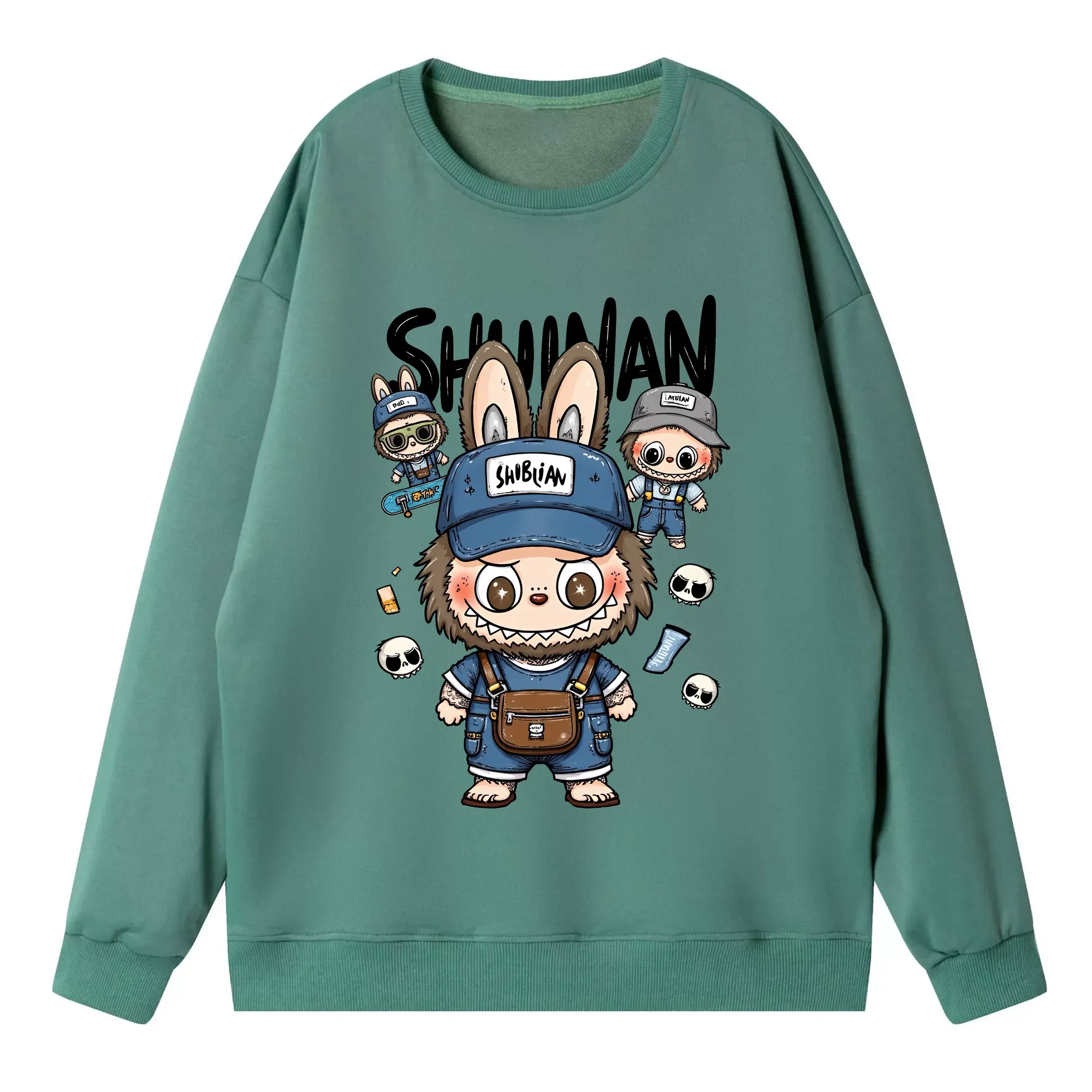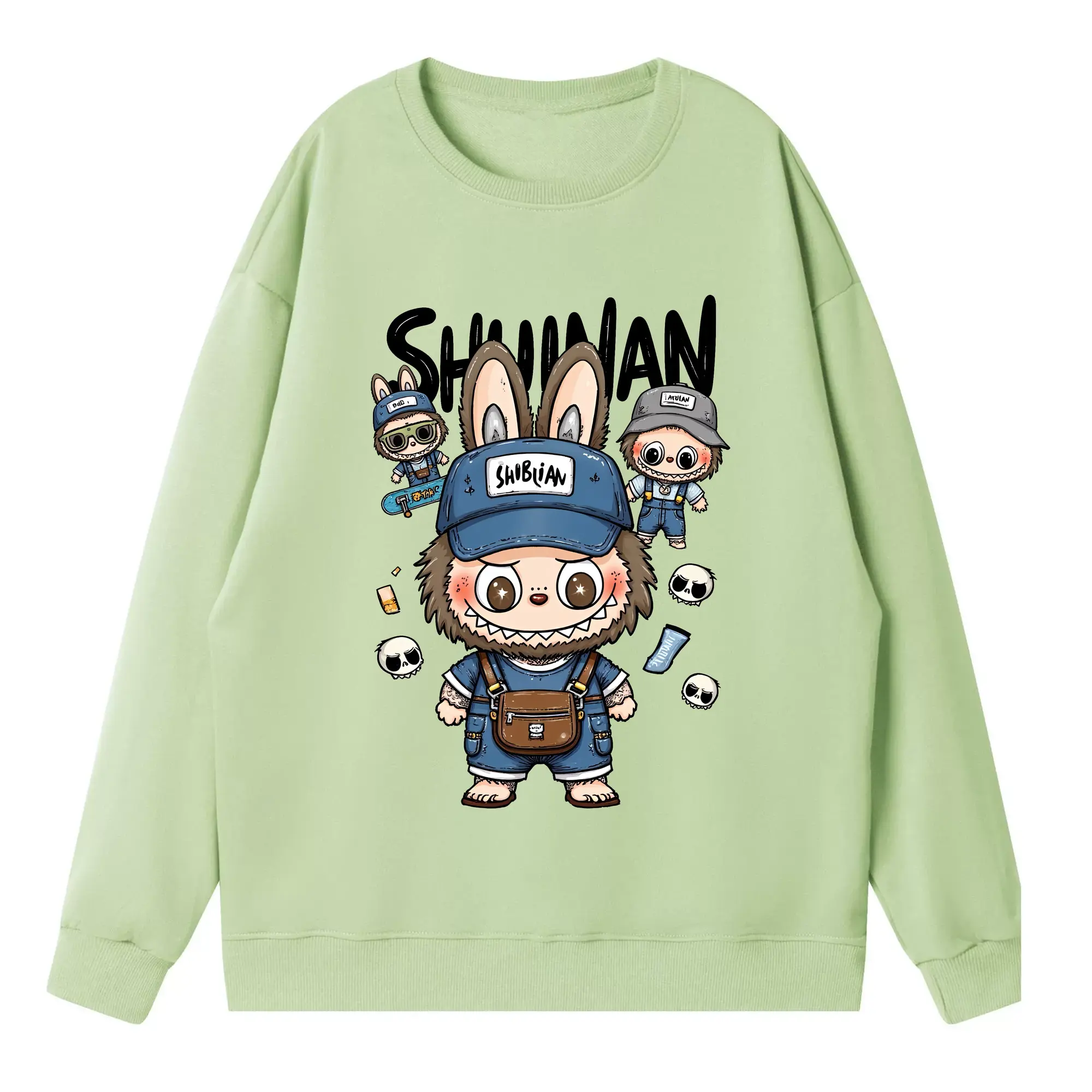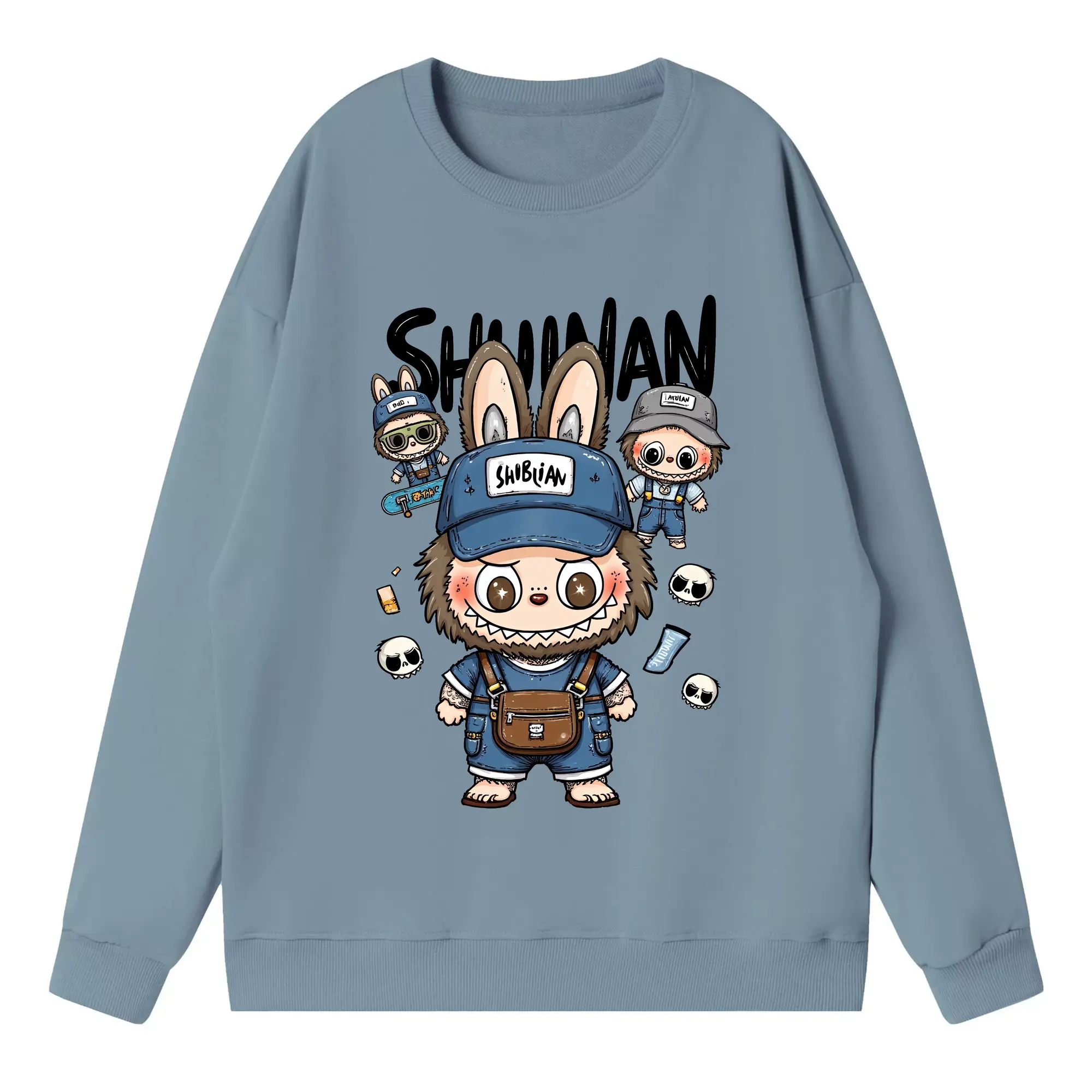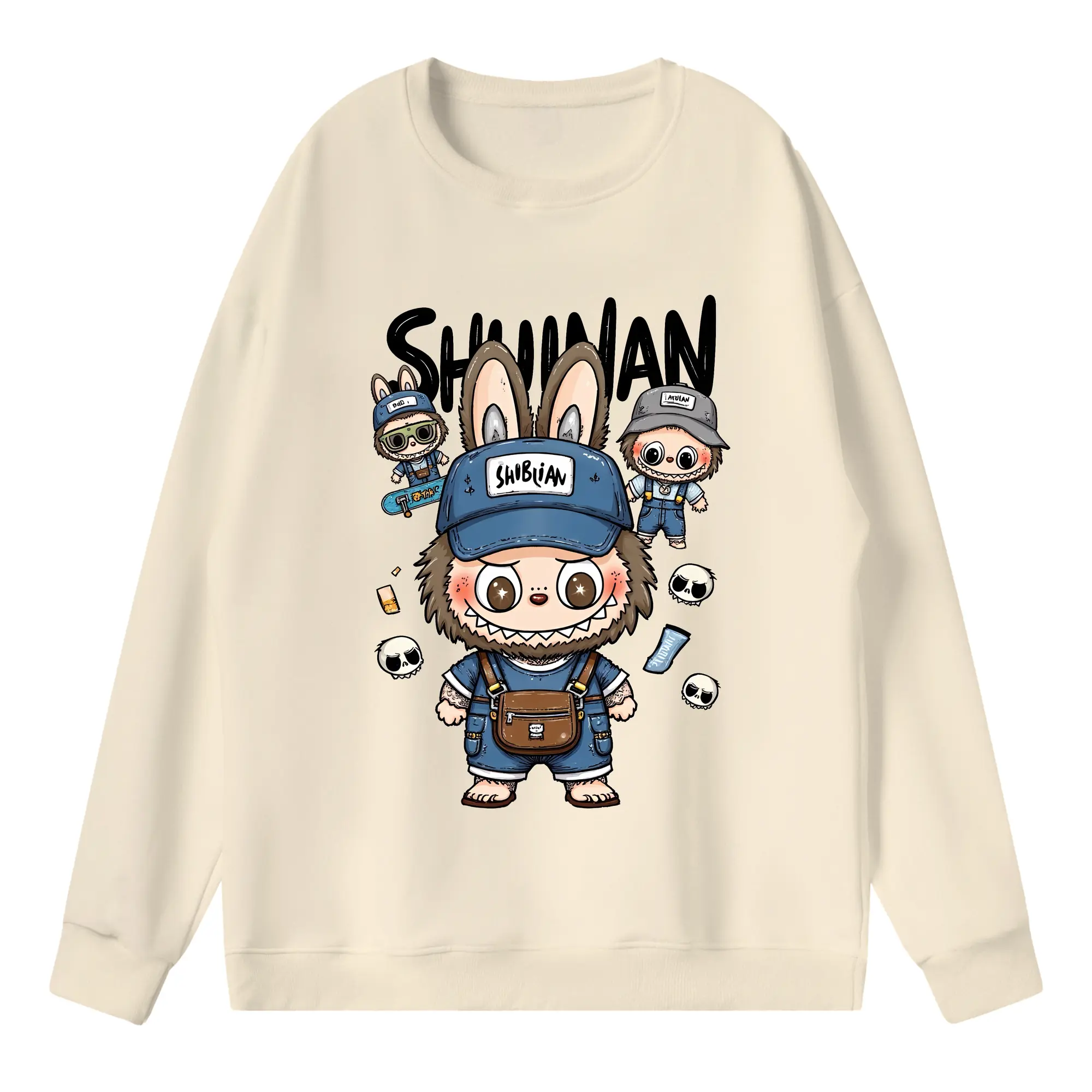 ラブブ グッズ ジモモ - 高品質 クルーネック スウェット ・ コットン59% ポリエステル41% ・ ユニセックス 長袖 トレーナー ・ カジュアル デイリー スポーツ 散歩用