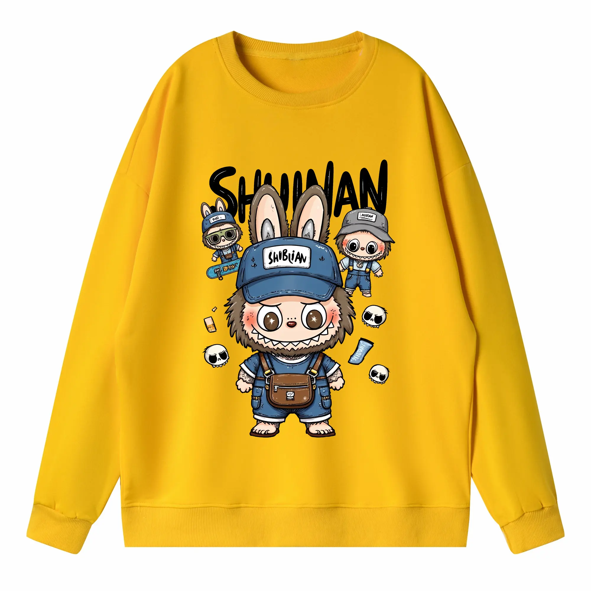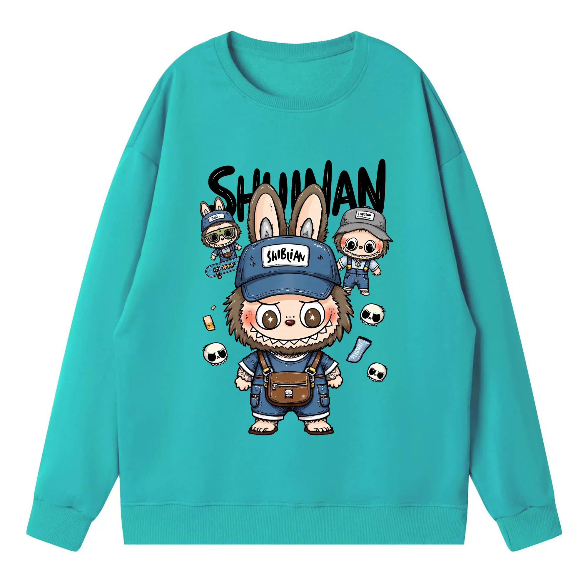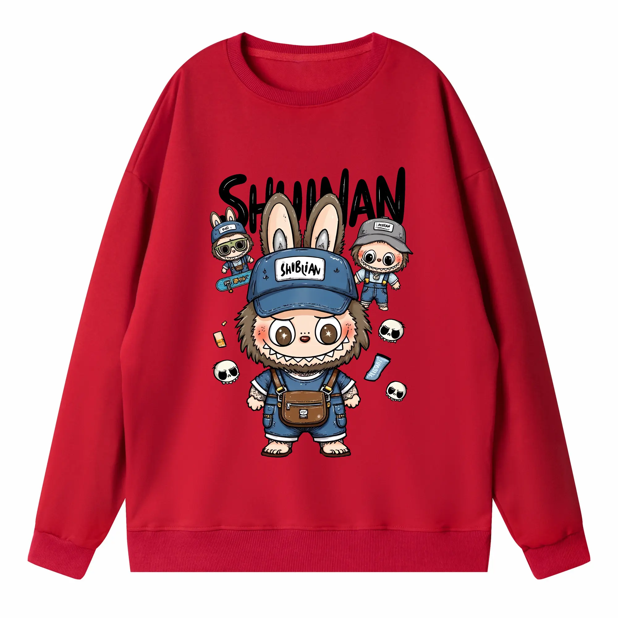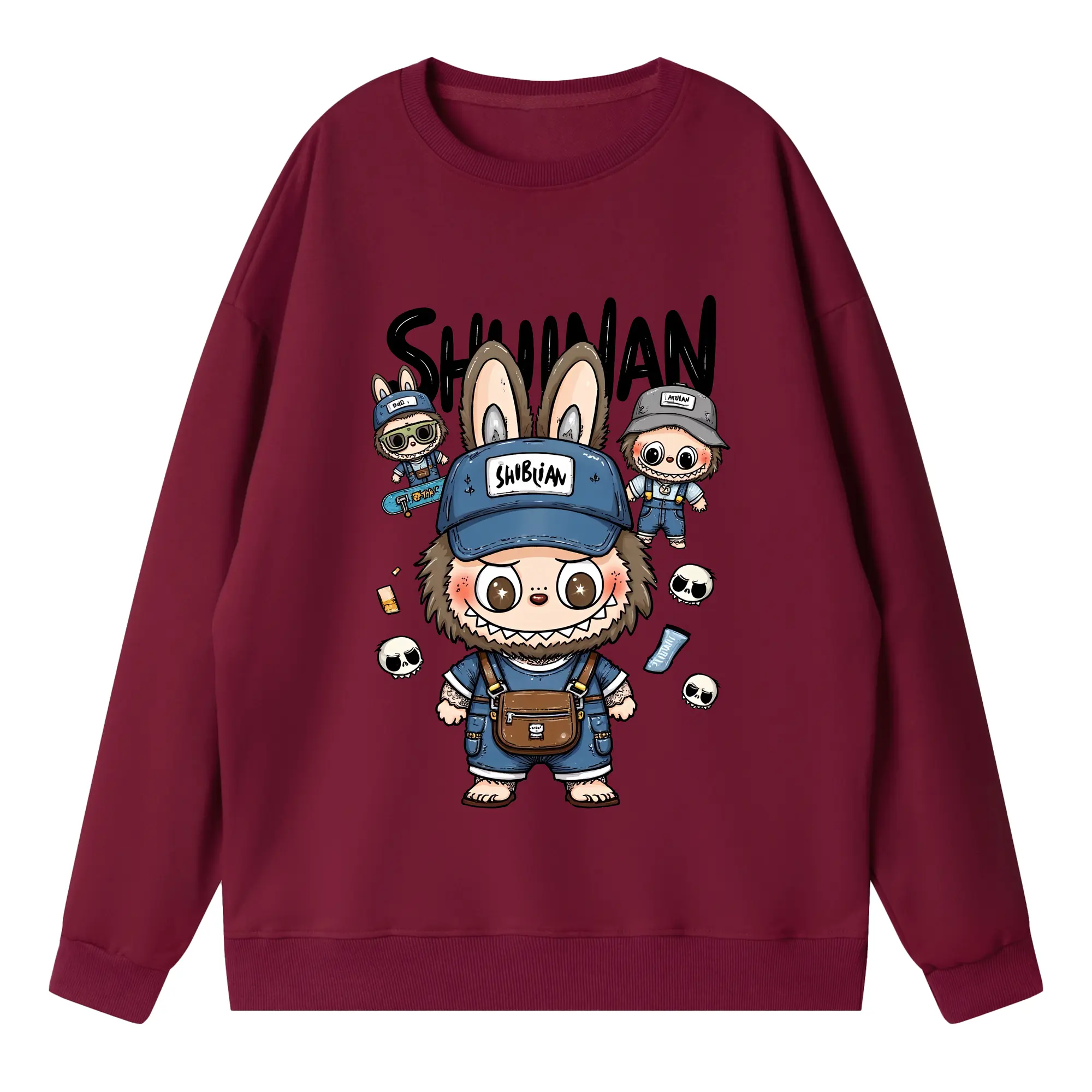 ラブブ グッズ ジモモ - 高品質 クルーネック スウェット ・ コットン59% ポリエステル41% ・ ユニセックス 長袖 トレーナー ・ カジュアル デイリー スポーツ 散歩用