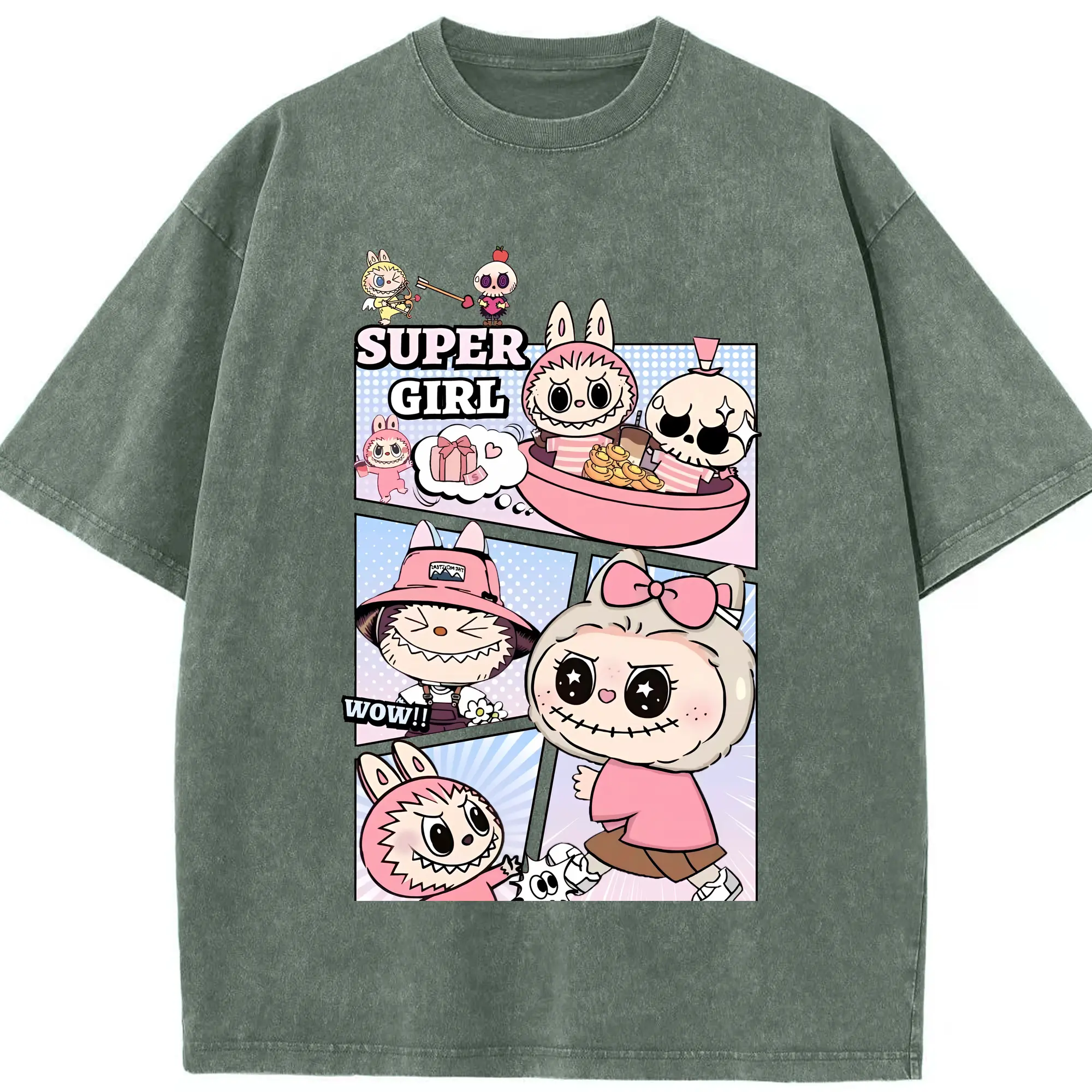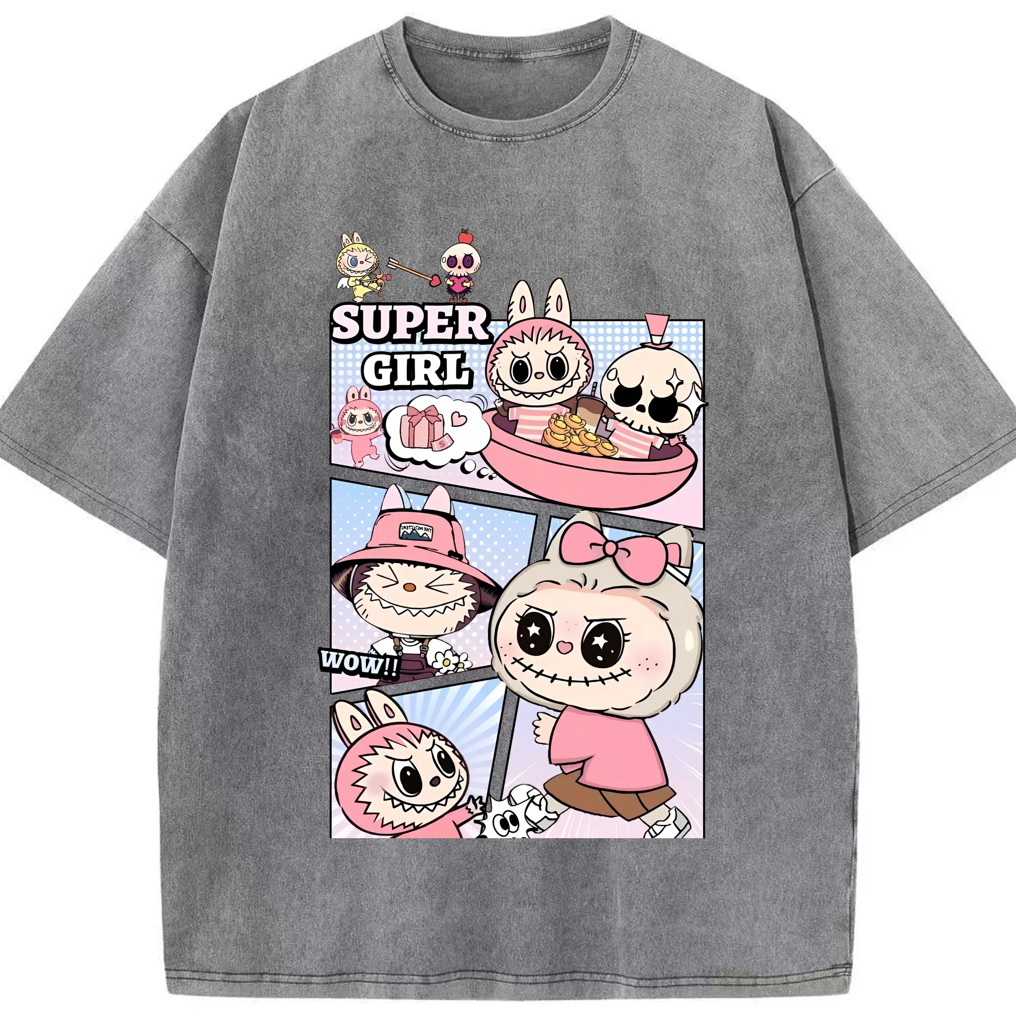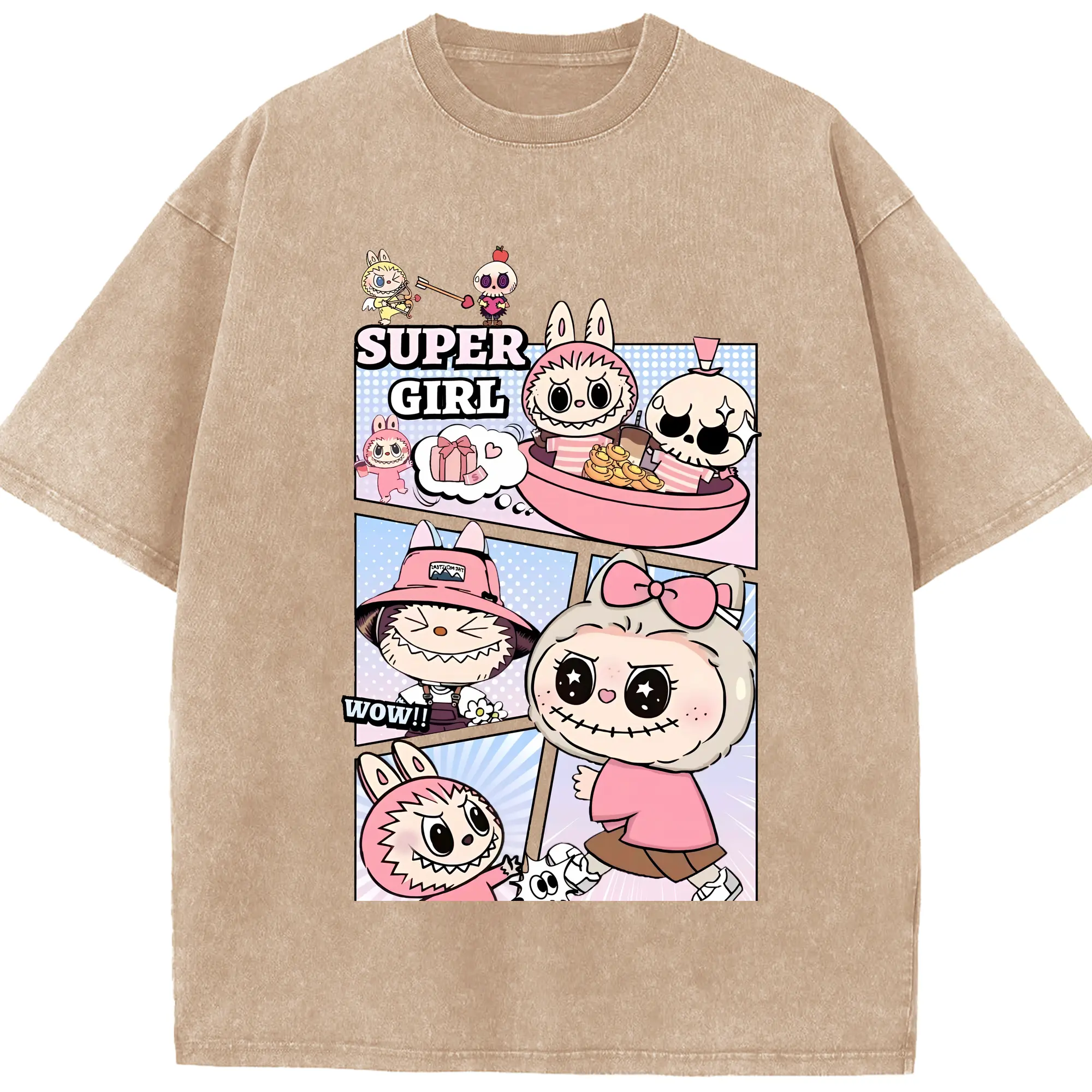ラブブ グッズ ジモモ - 綿100% ヴィンテージ風 半袖Tシャツ ・ 背面プリント ・ 柔らか肌触り ・ 通気性 快適 ・ スポーツ カジュアル 外出用