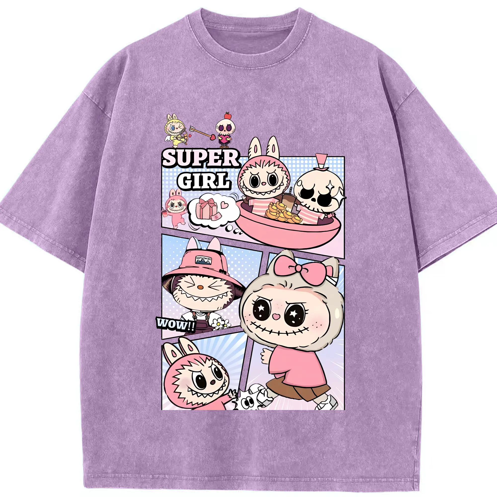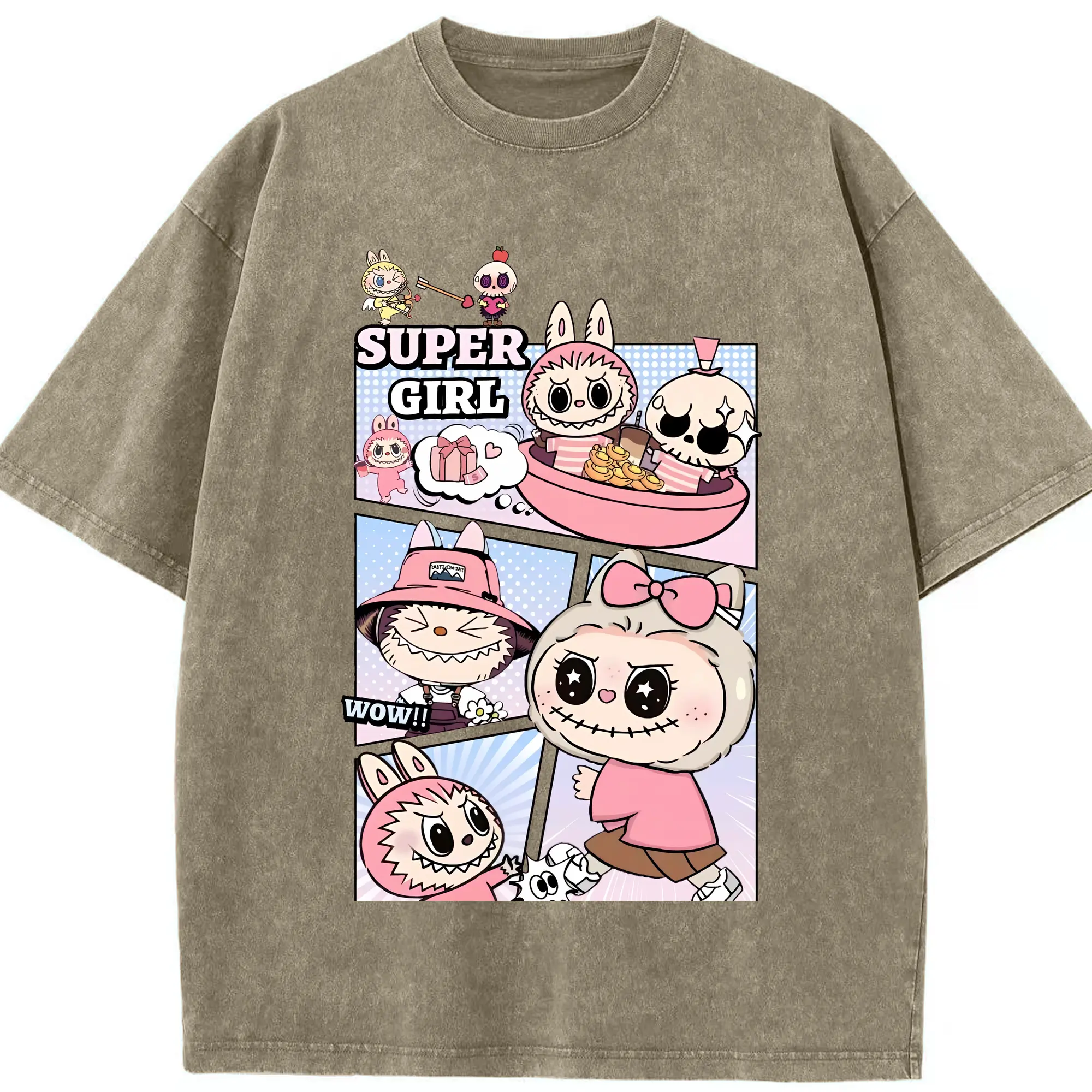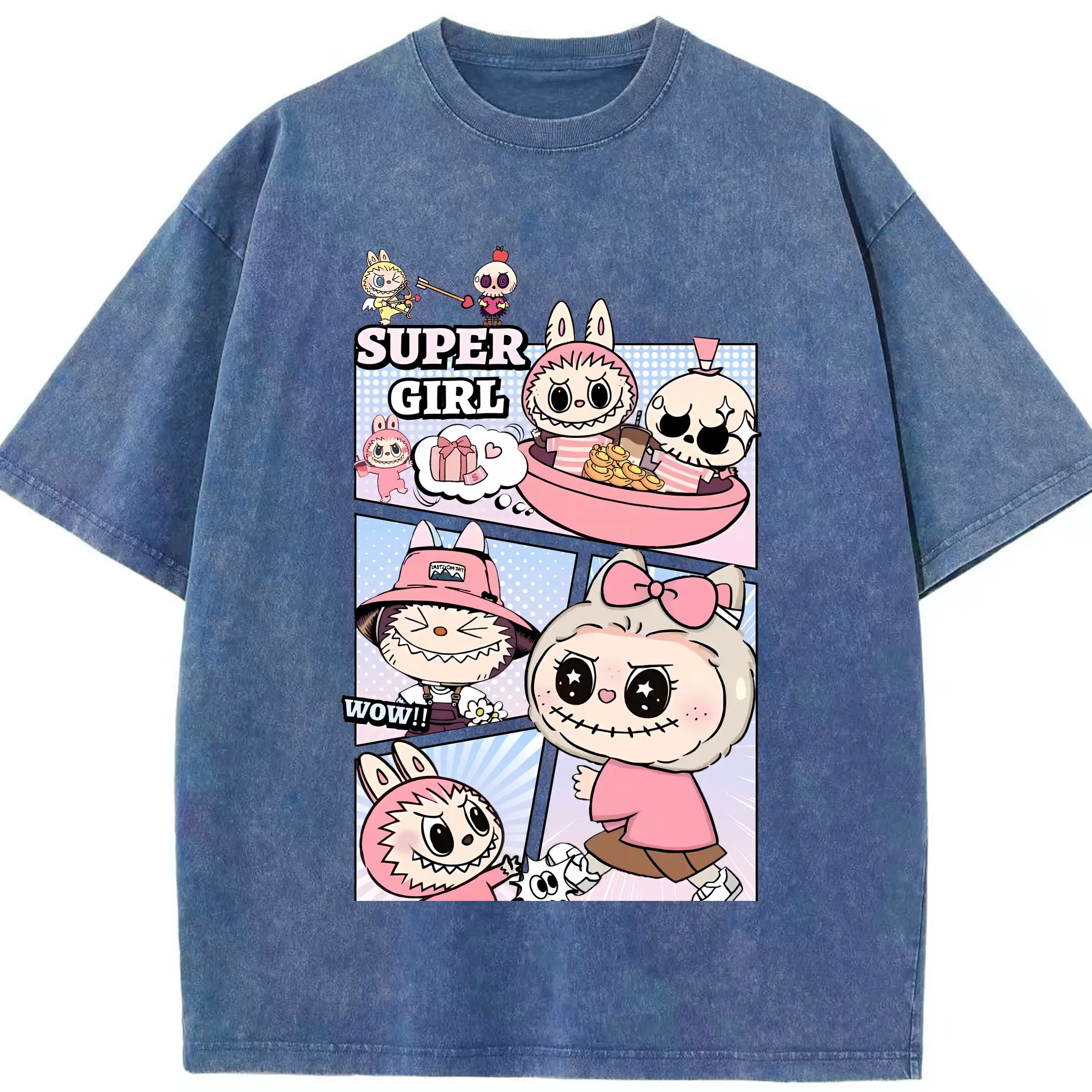 ラブブ グッズ ジモモ - 綿100% ヴィンテージ風 半袖Tシャツ ・ 背面プリント ・ 柔らか肌触り ・ 通気性 快適 ・ スポーツ カジュアル 外出用