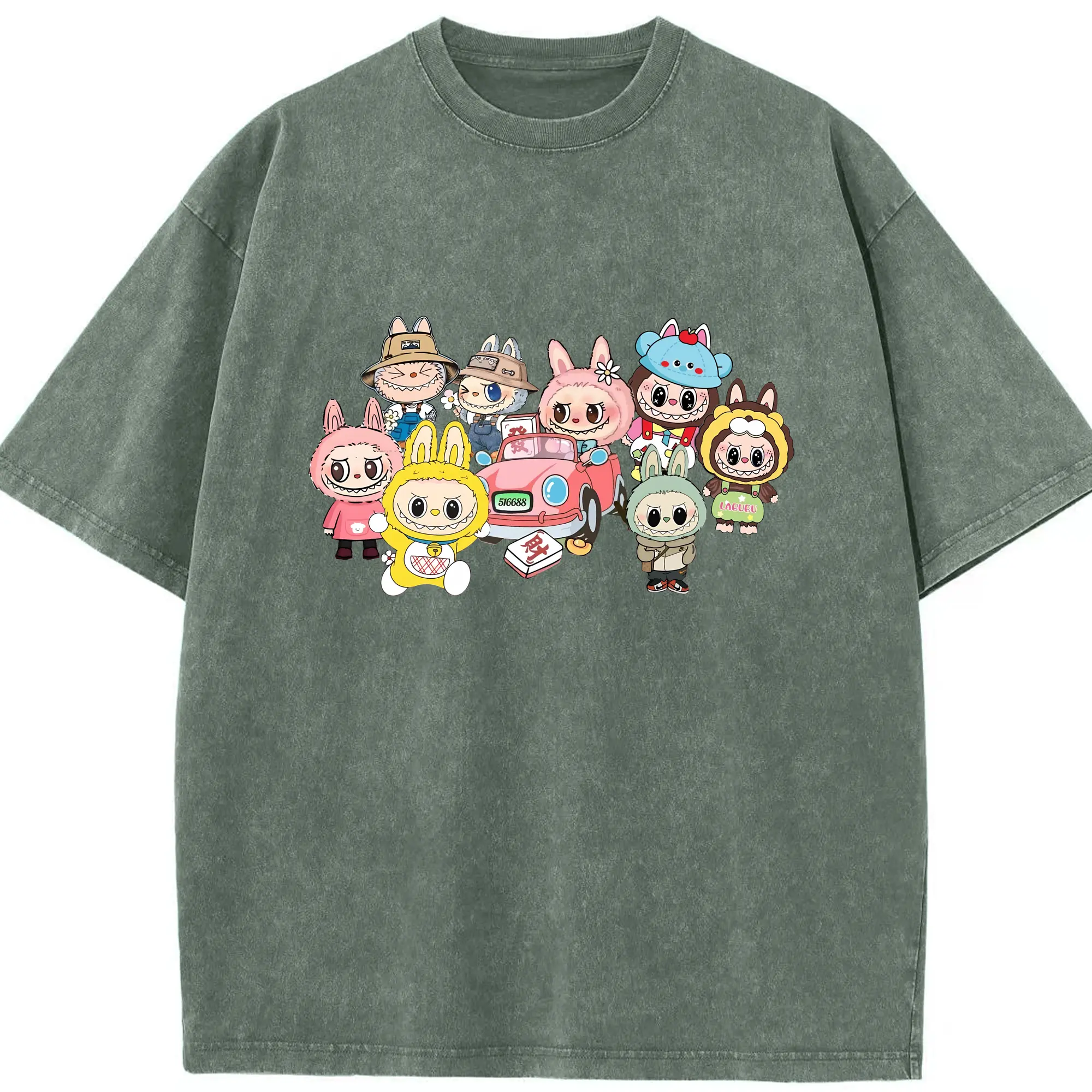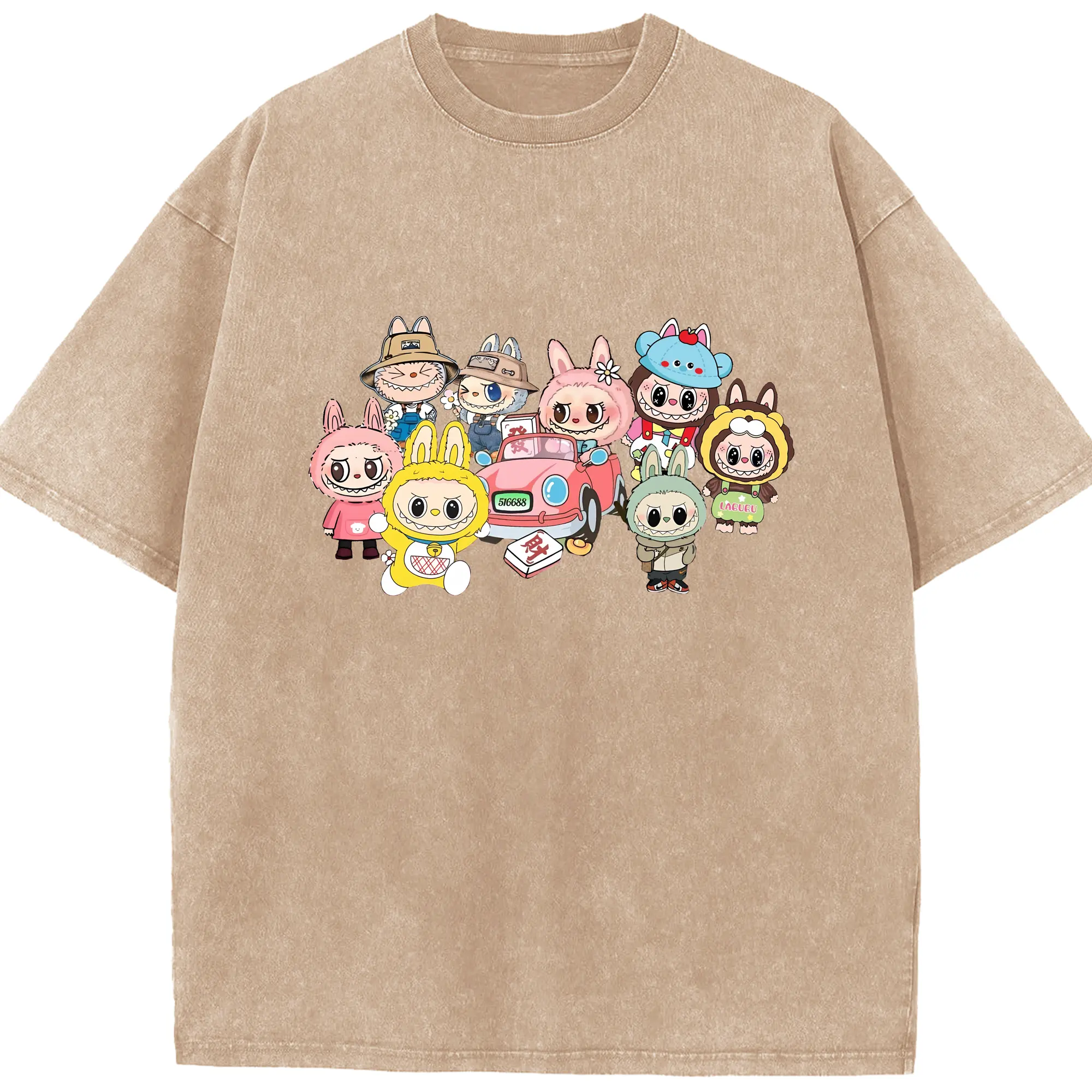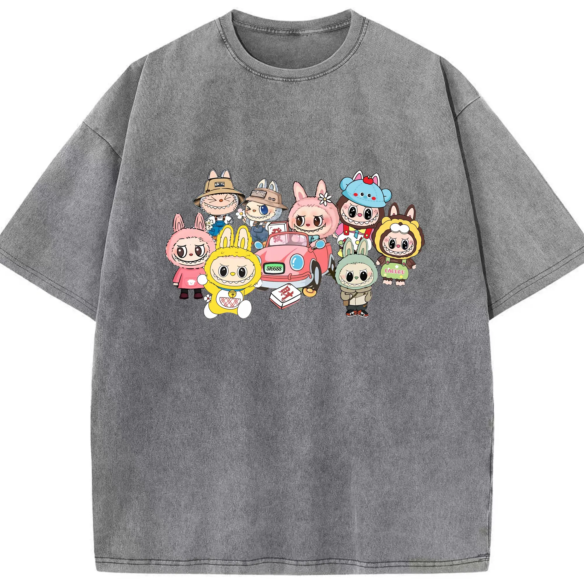 ラブブ グッズ ジモモ - 綿100% ヴィンテージ風 半袖Tシャツ ・ 背面プリント ・ 柔らか肌触り ・ 通気性 快適 ・ スポーツ カジュアル 外出用