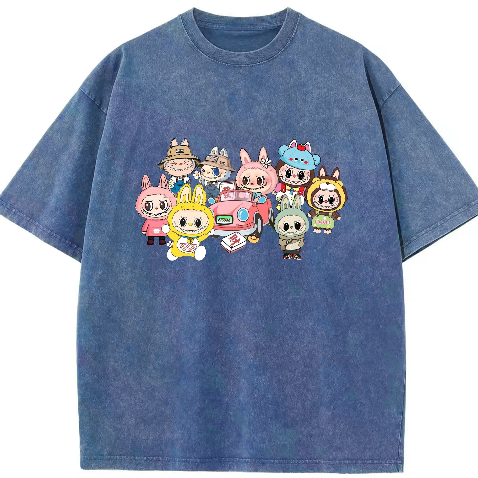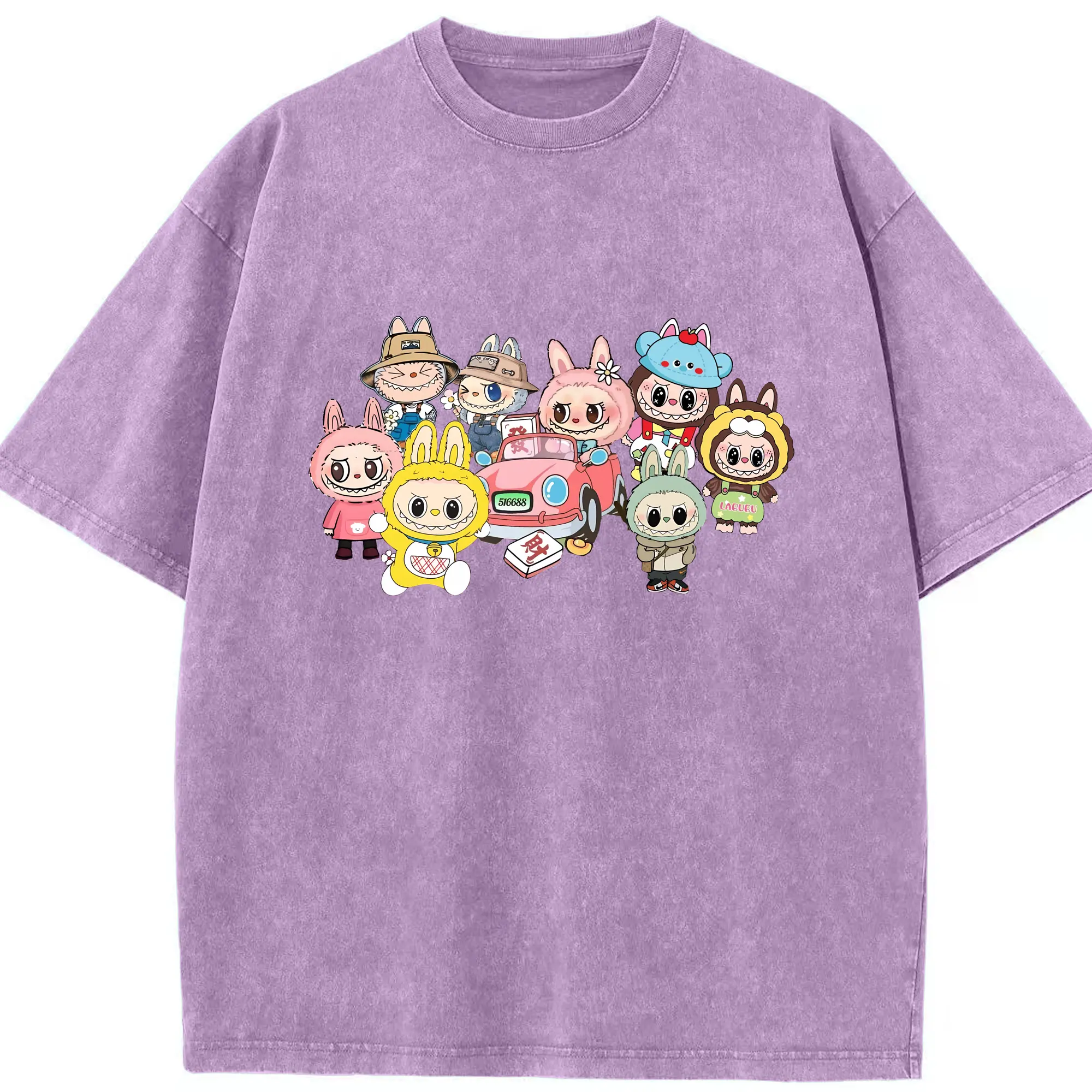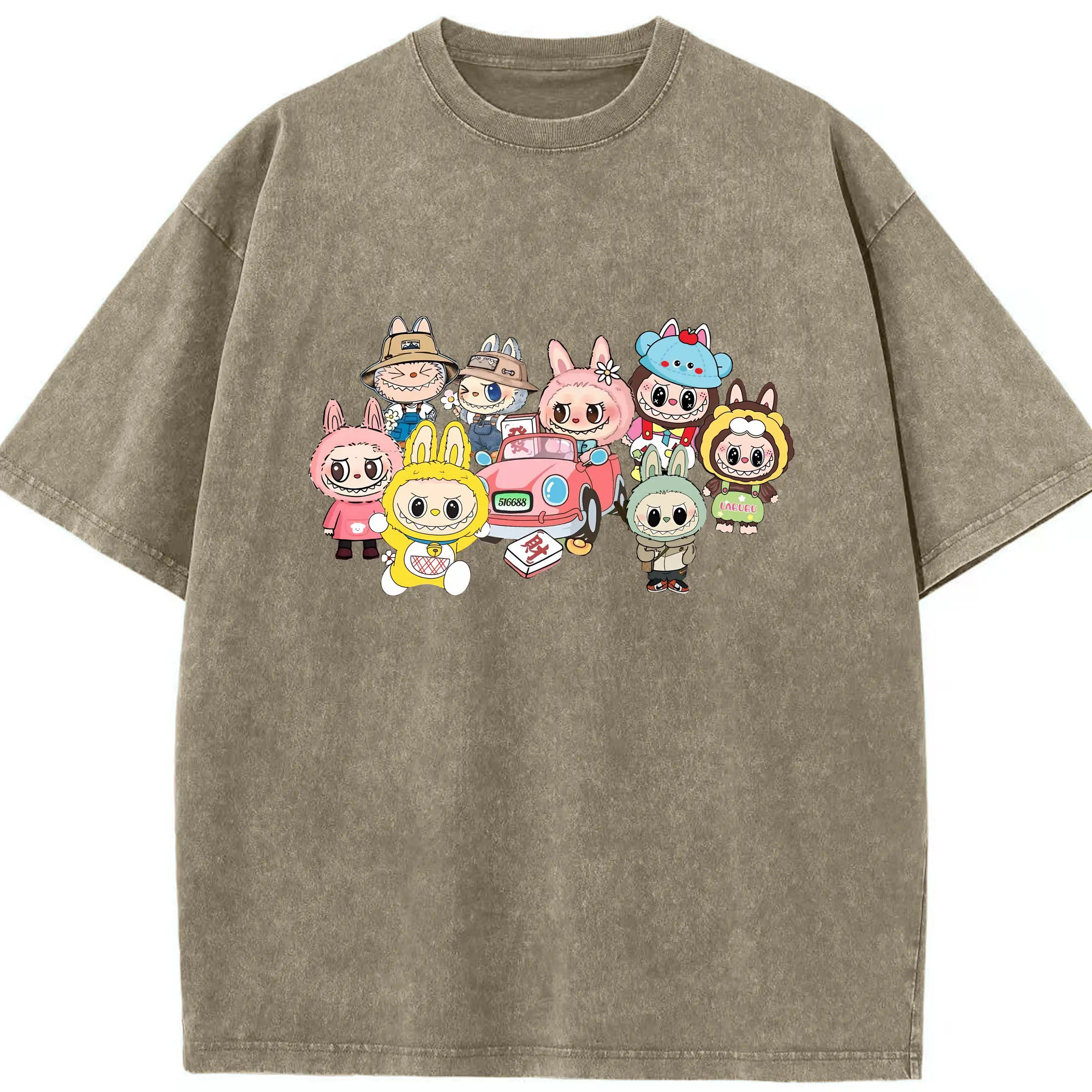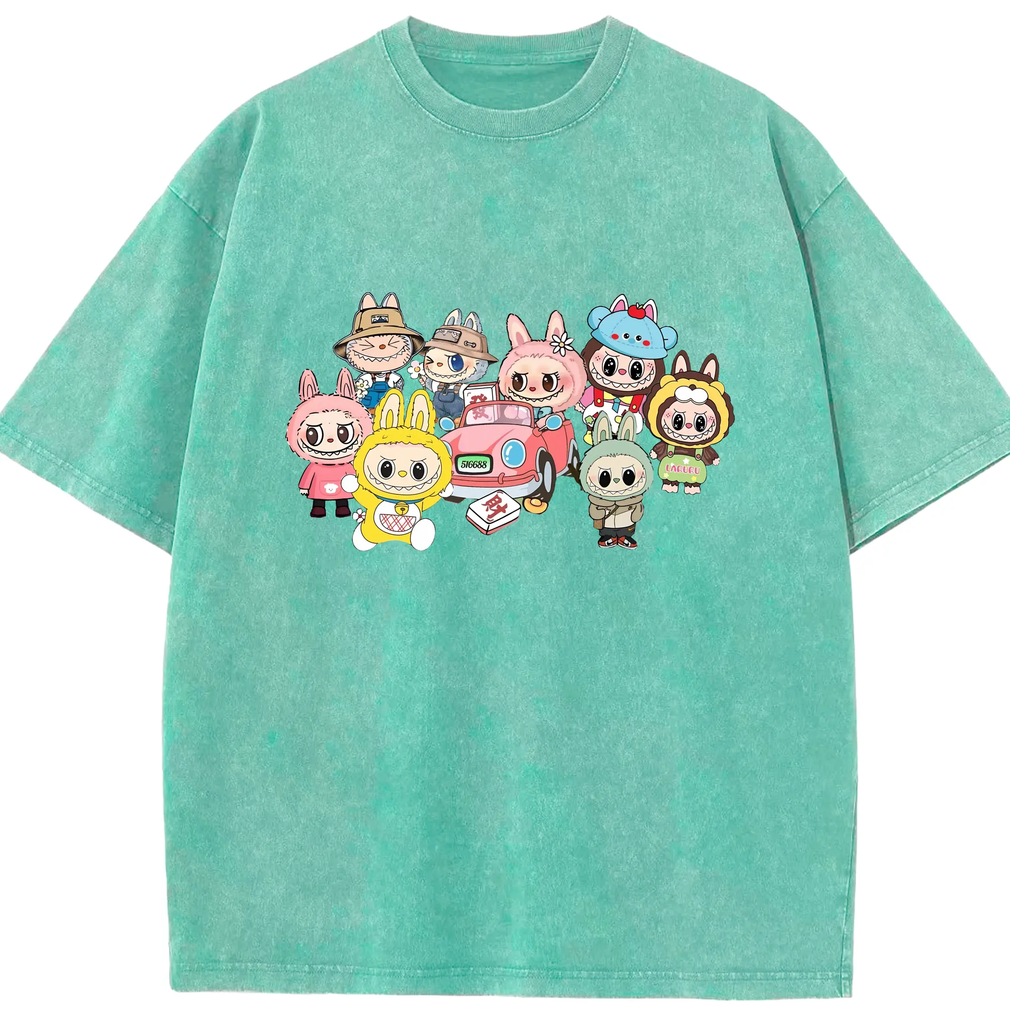 ラブブ グッズ ジモモ - 綿100% ヴィンテージ風 半袖Tシャツ ・ 背面プリント ・ 柔らか肌触り ・ 通気性 快適 ・ スポーツ カジュアル 外出用
