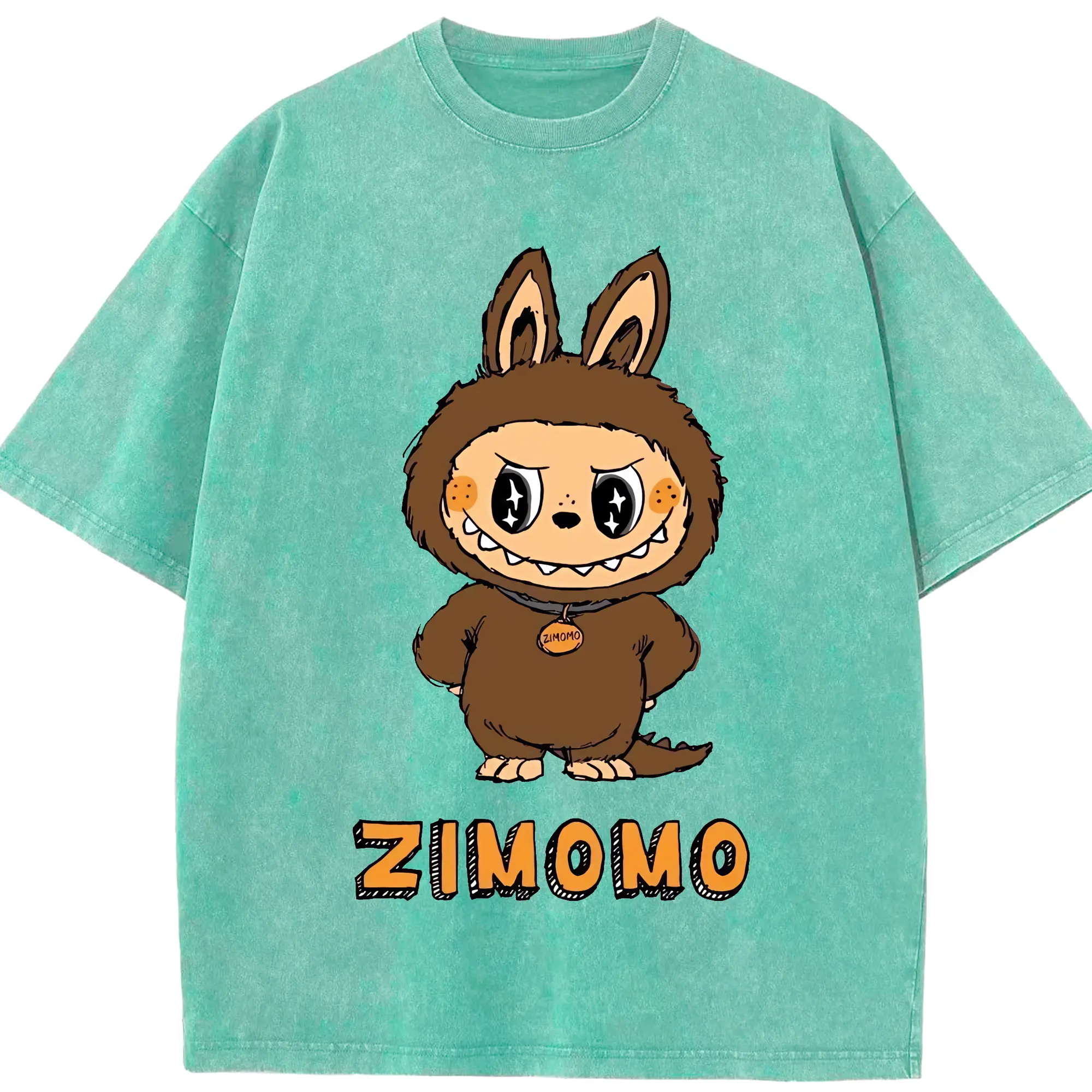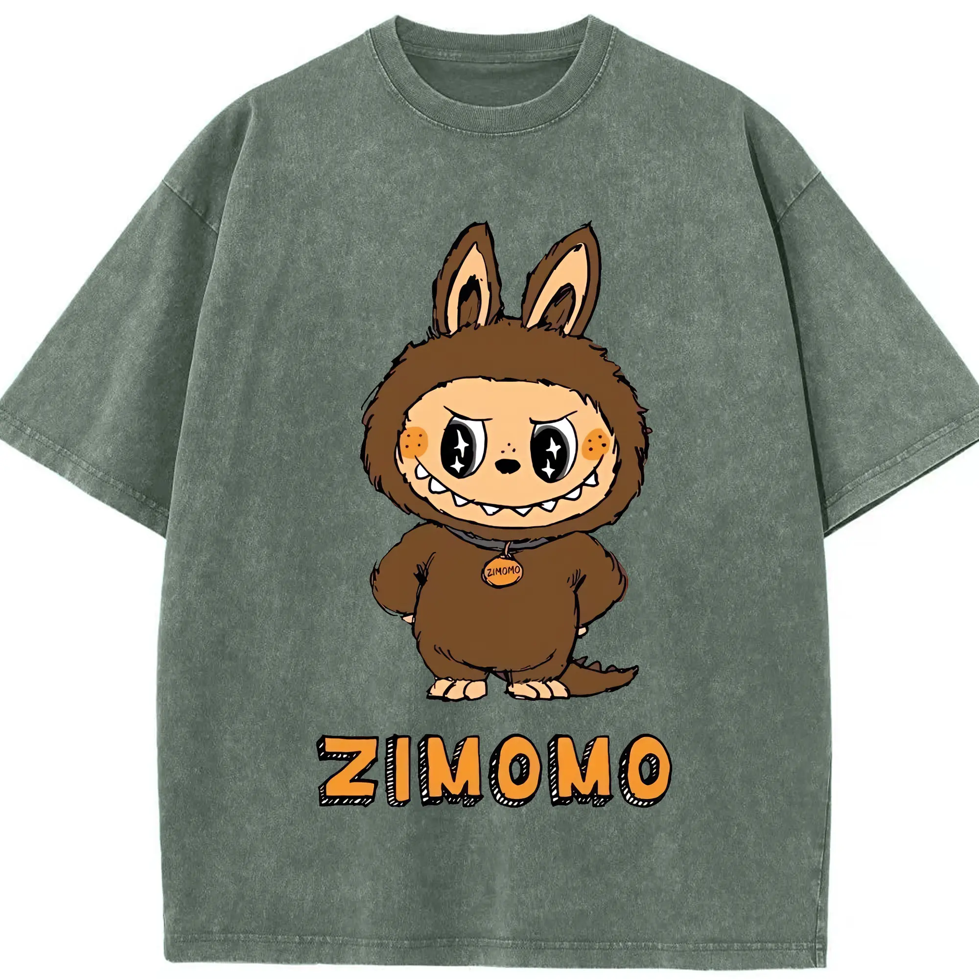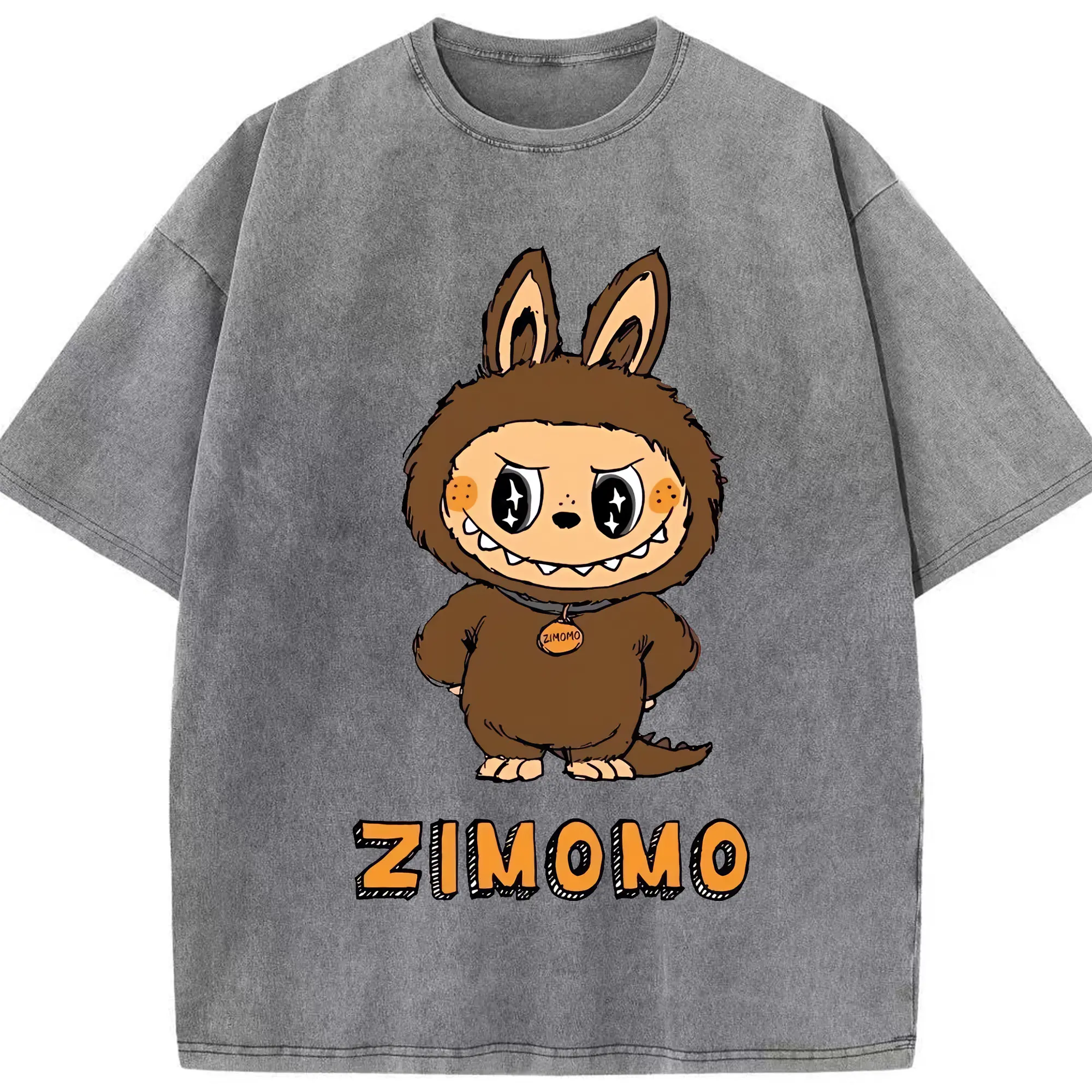 ラブブ グッズ ジモモ - 綿100% ヴィンテージ風 半袖Tシャツ ・ 背面プリント ・ 柔らか肌触り ・ 通気性 快適 ・ スポーツ カジュアル 外出用