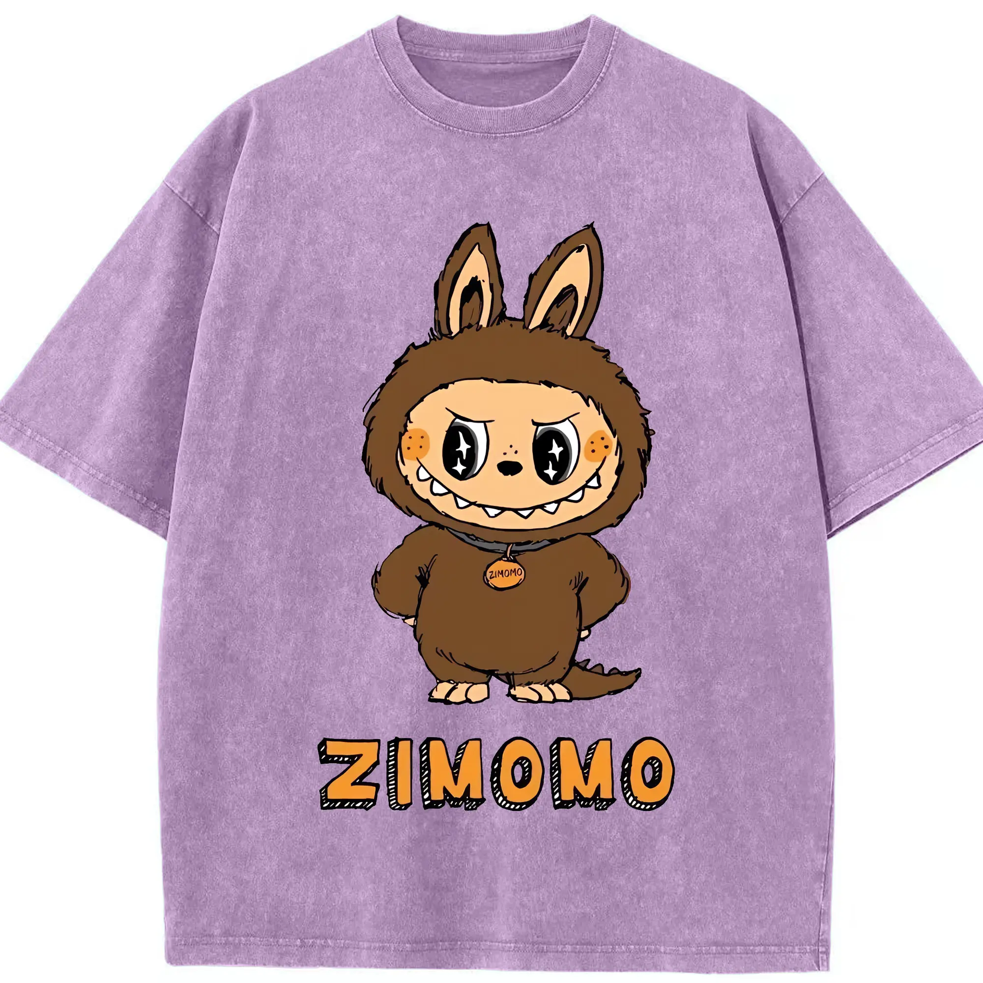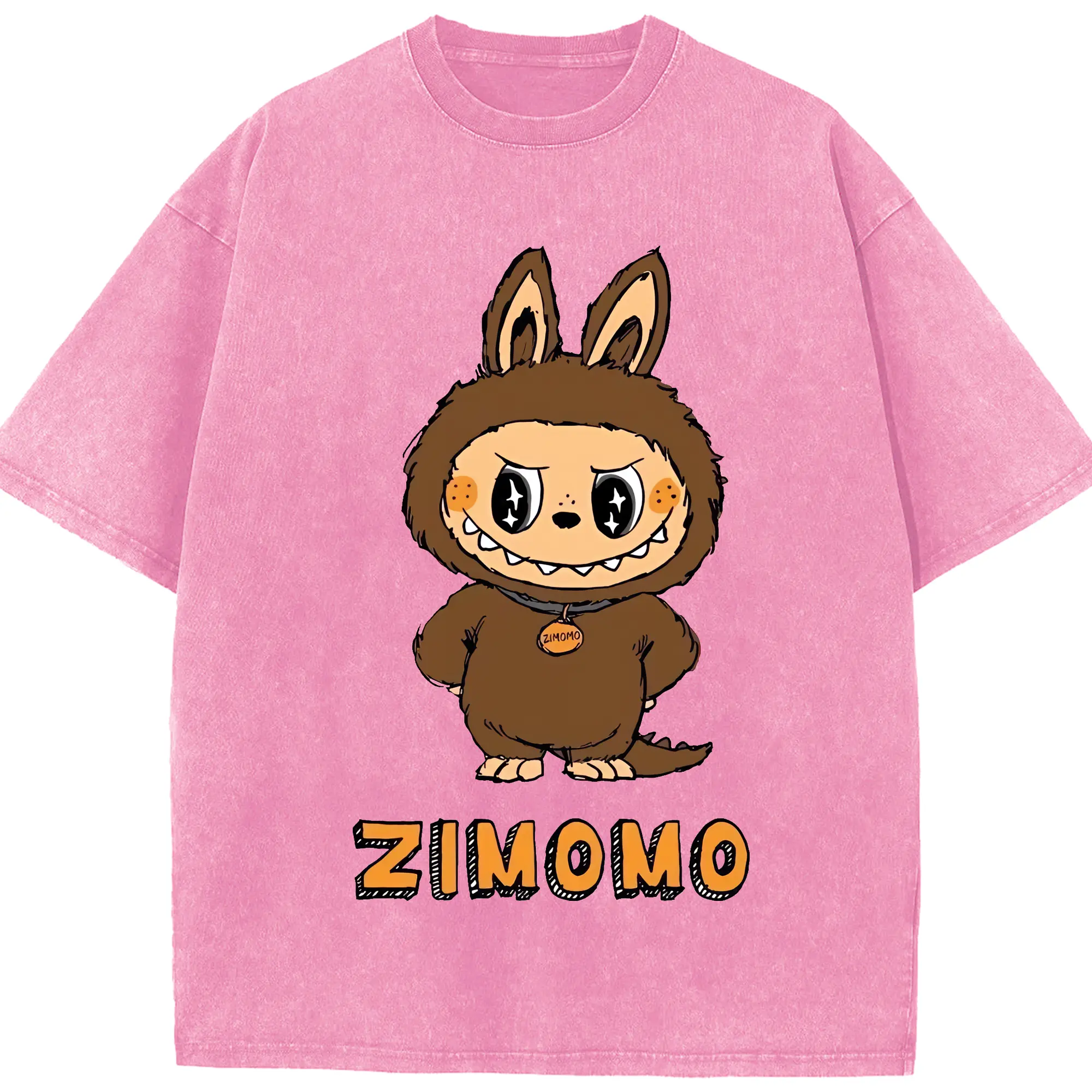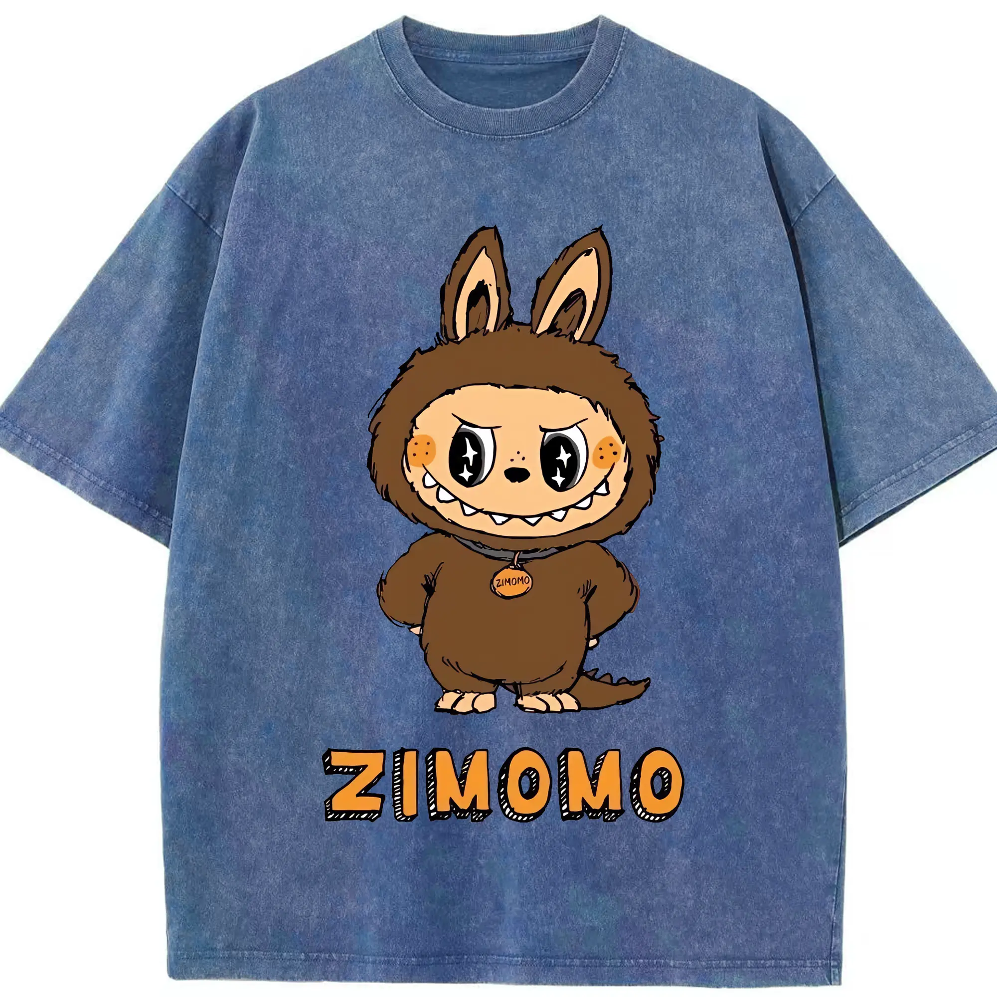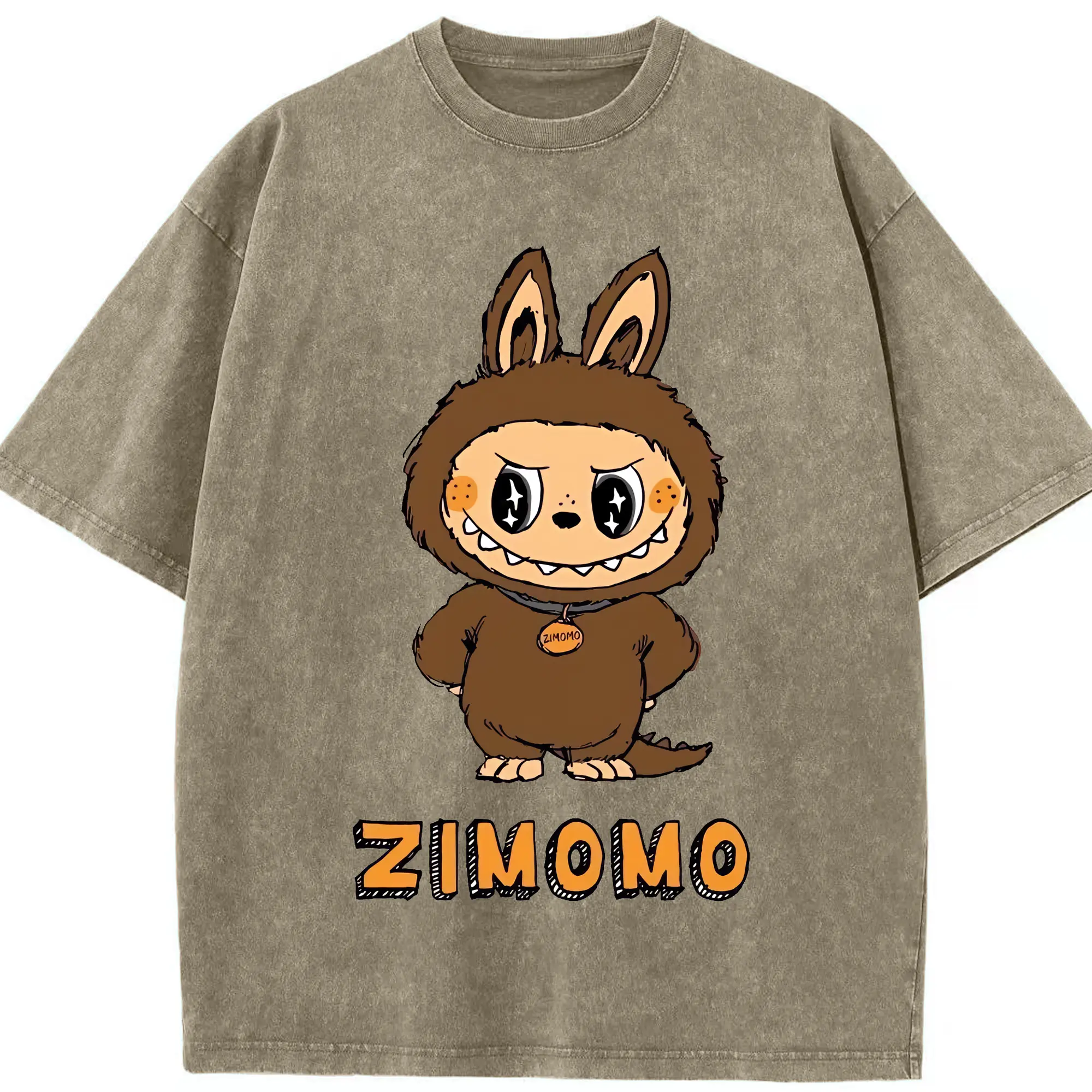 ラブブ グッズ ジモモ - 綿100% ヴィンテージ風 半袖Tシャツ ・ 背面プリント ・ 柔らか肌触り ・ 通気性 快適 ・ スポーツ カジュアル 外出用