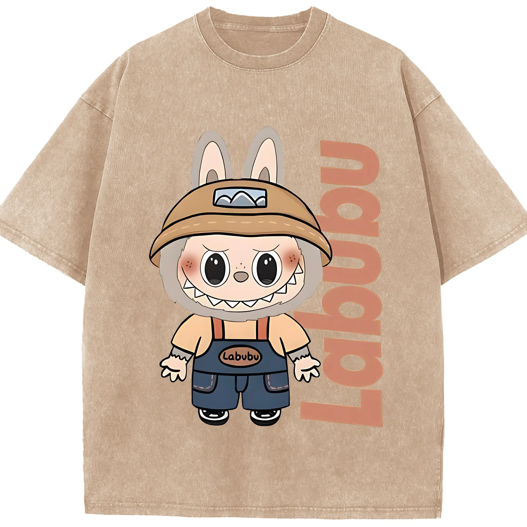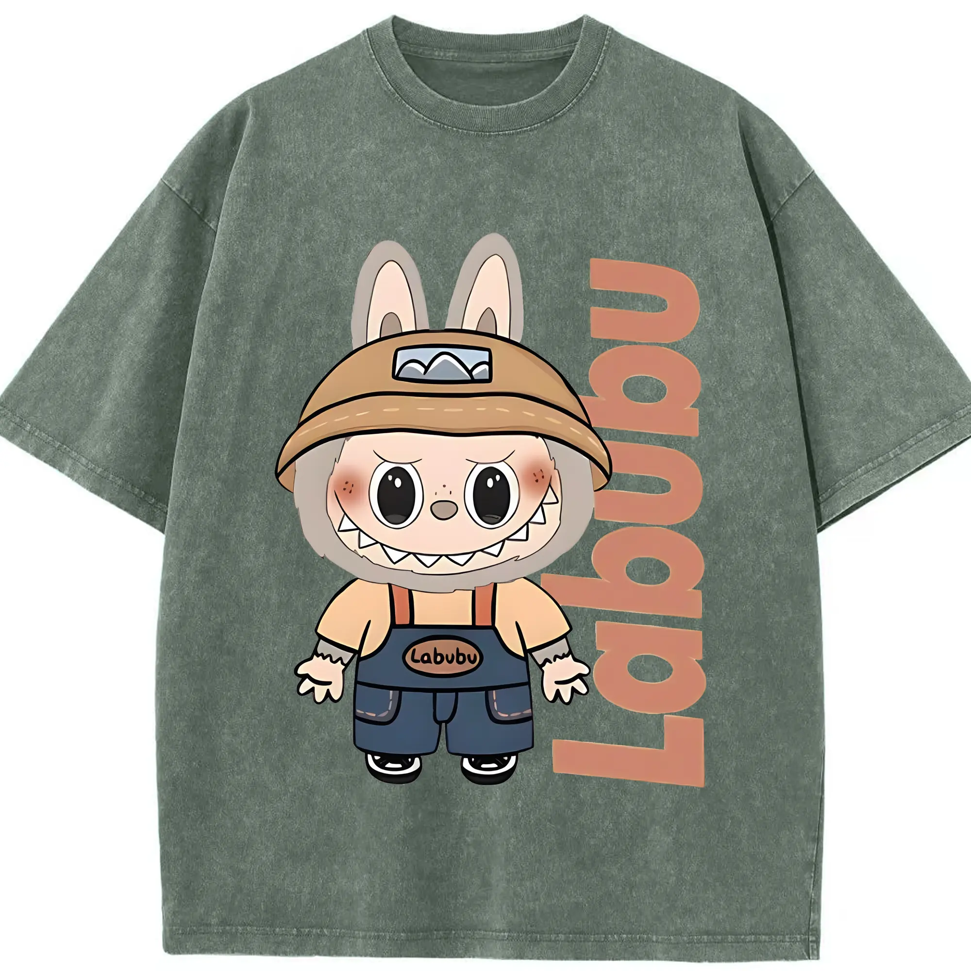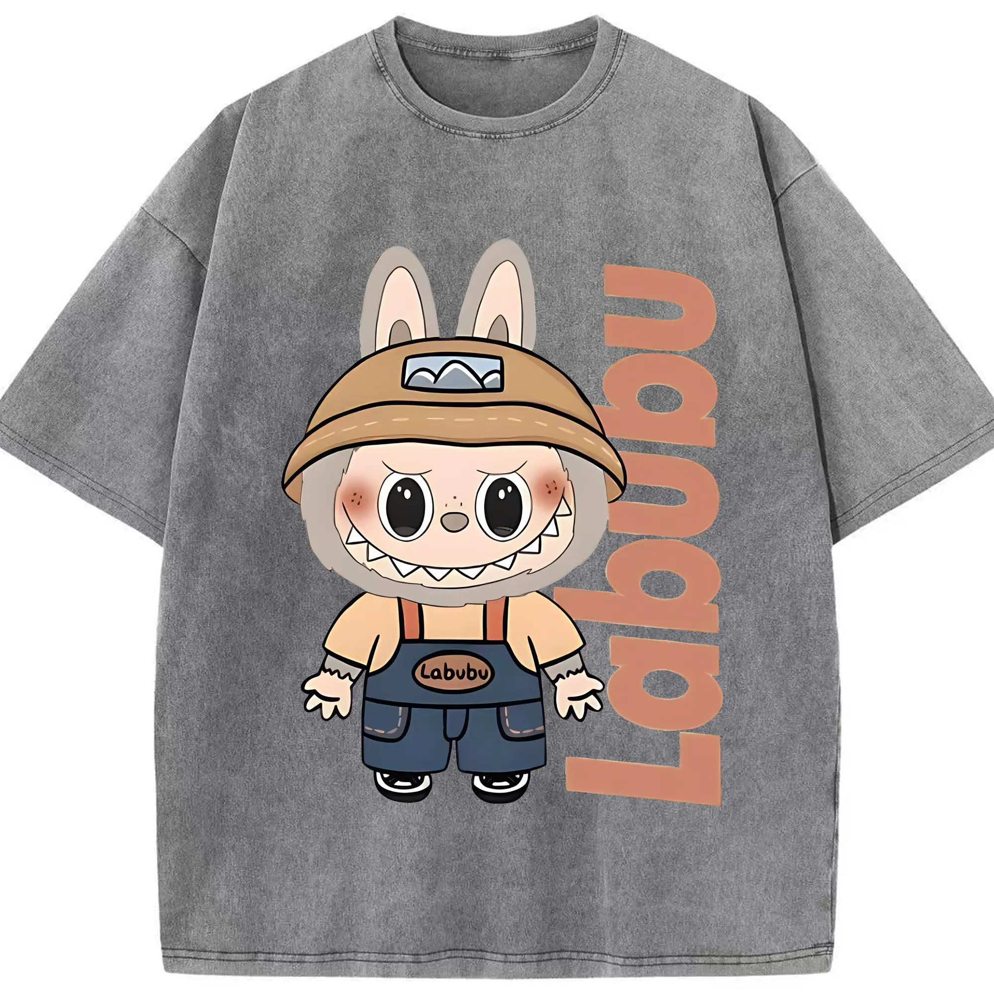 ラブブ グッズ ジモモ - 綿100% ヴィンテージ風 半袖Tシャツ ・ 背面プリント ・ 柔らか肌触り ・ 通気性 快適 ・ スポーツ カジュアル 外出用