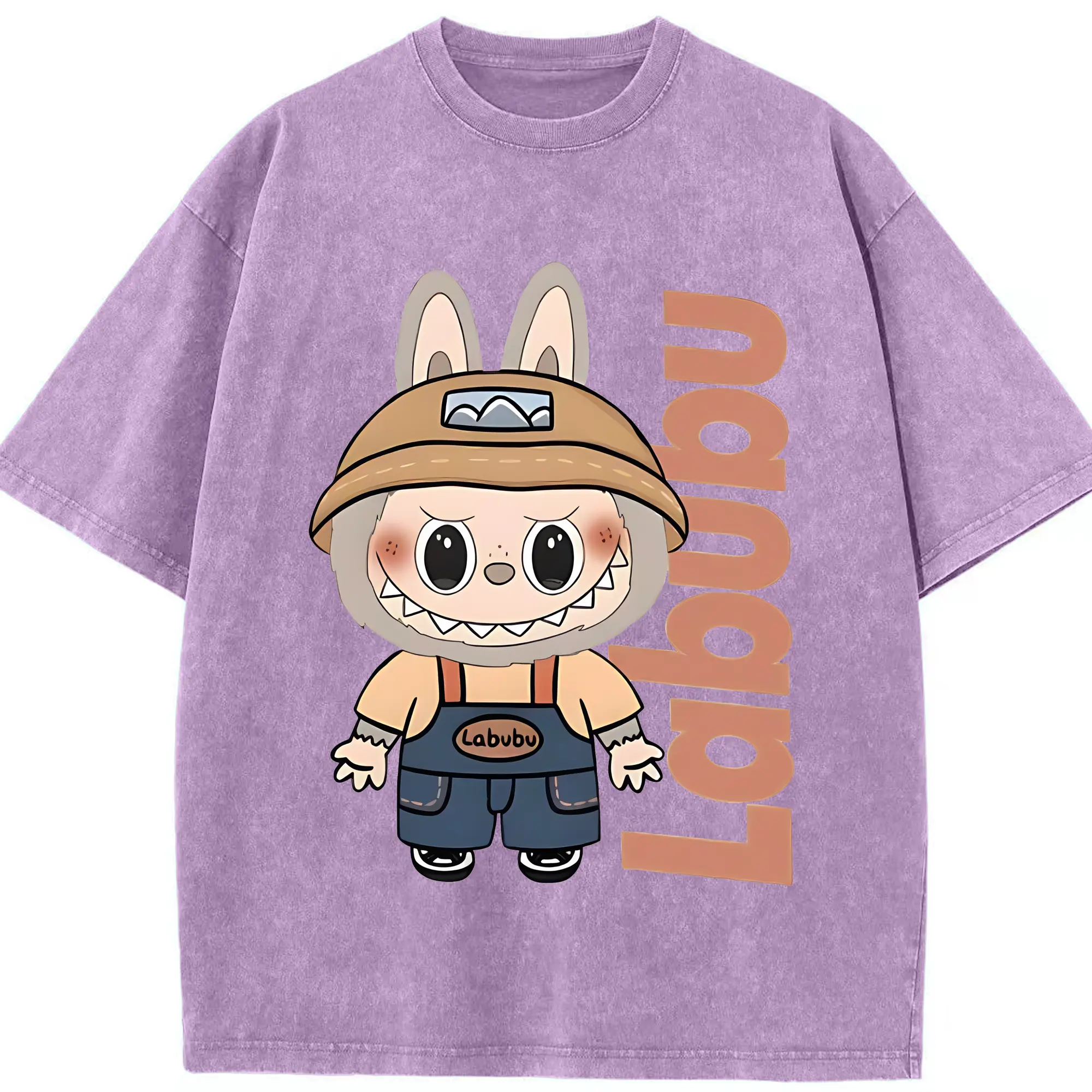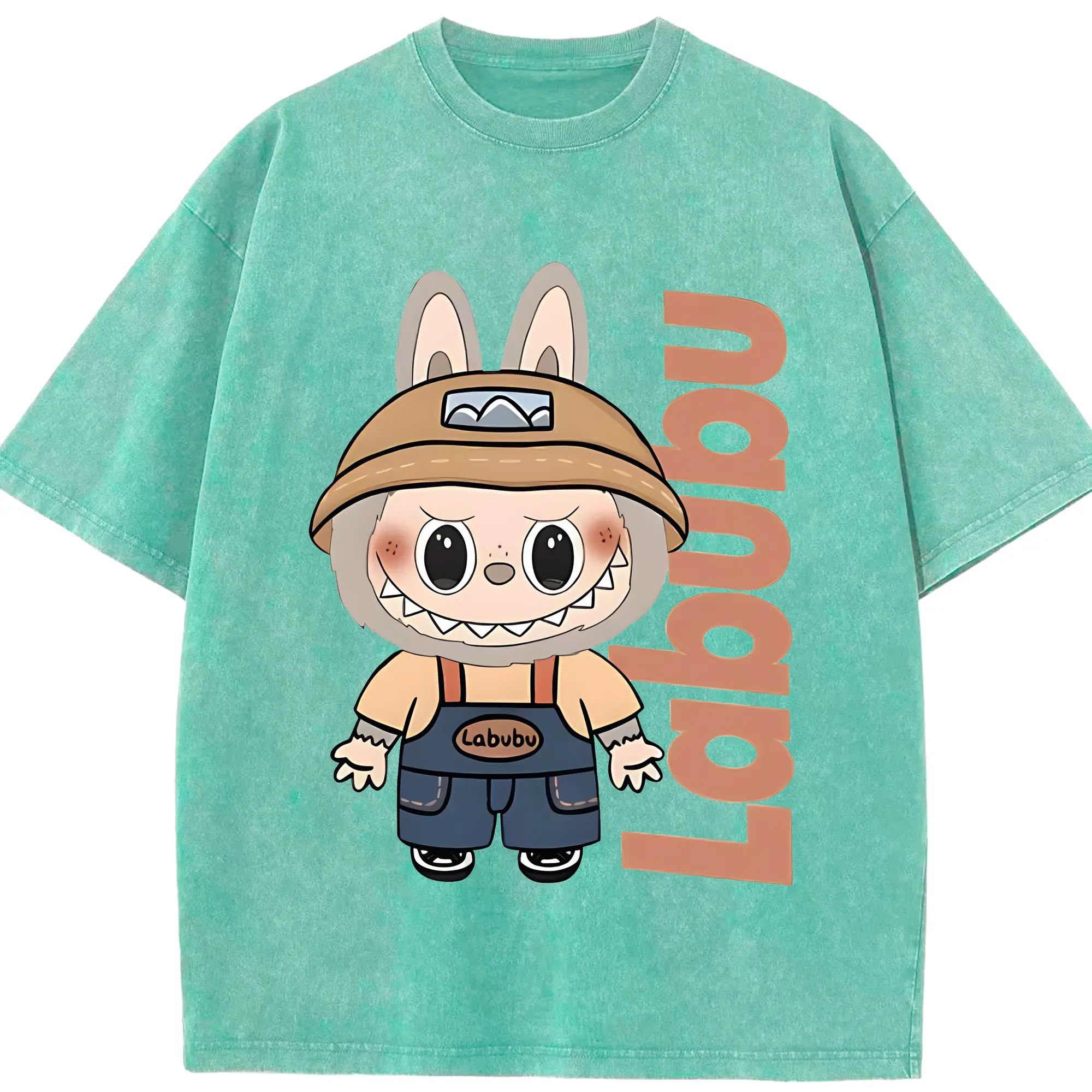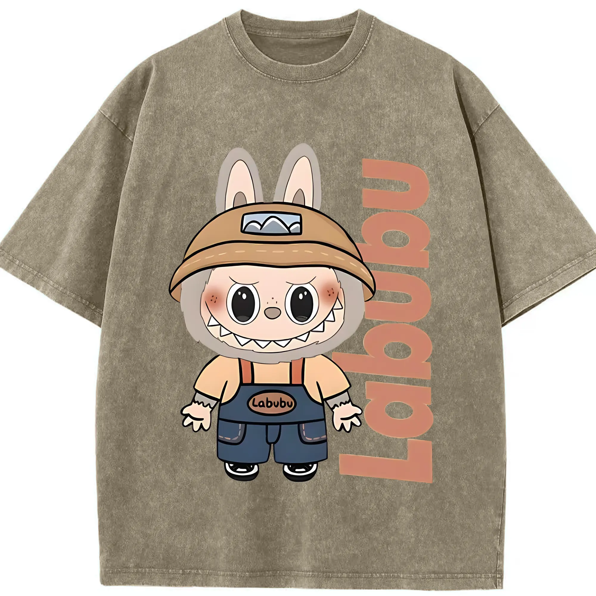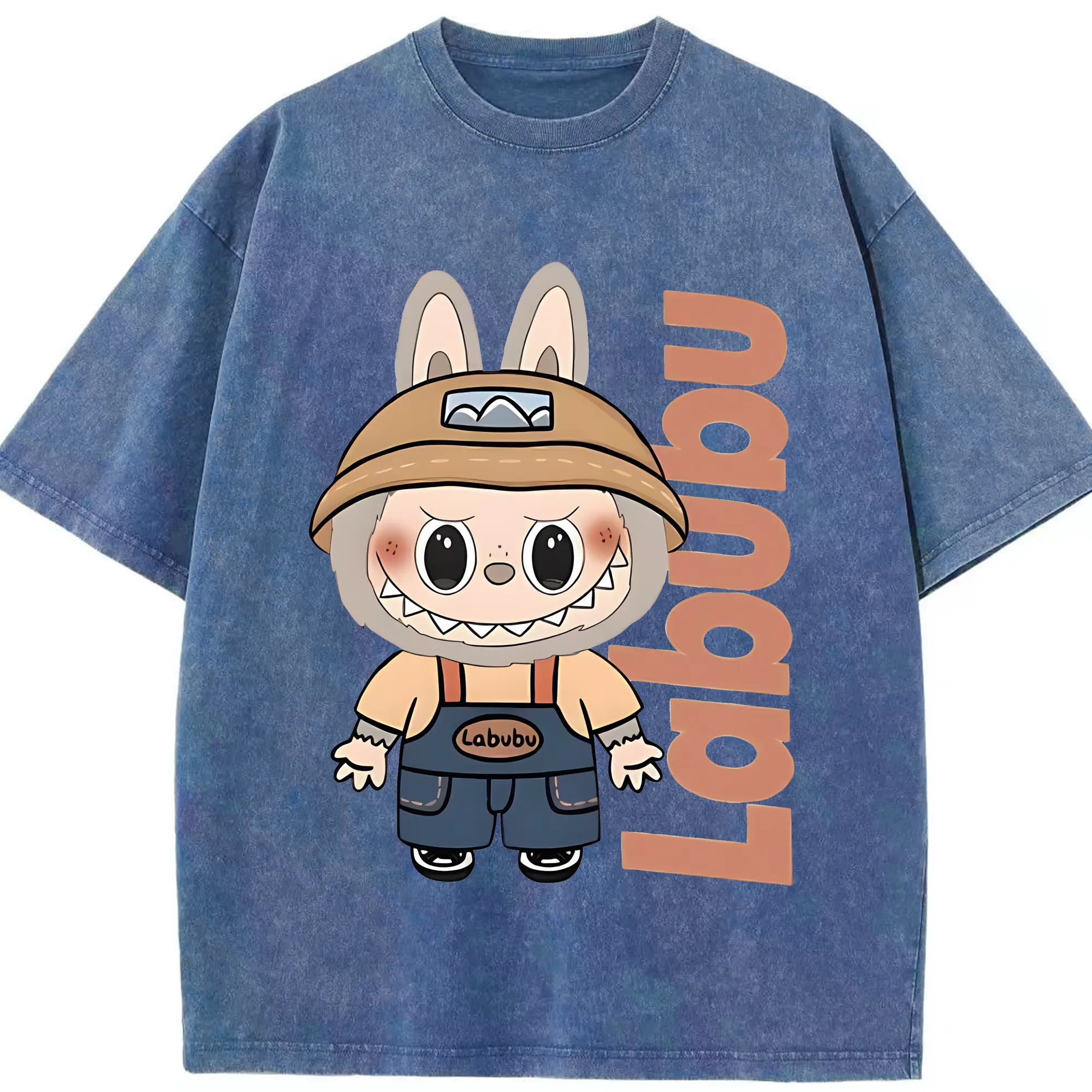 ラブブ グッズ ジモモ - 綿100% ヴィンテージ風 半袖Tシャツ ・ 背面プリント ・ 柔らか肌触り ・ 通気性 快適 ・ スポーツ カジュアル 外出用