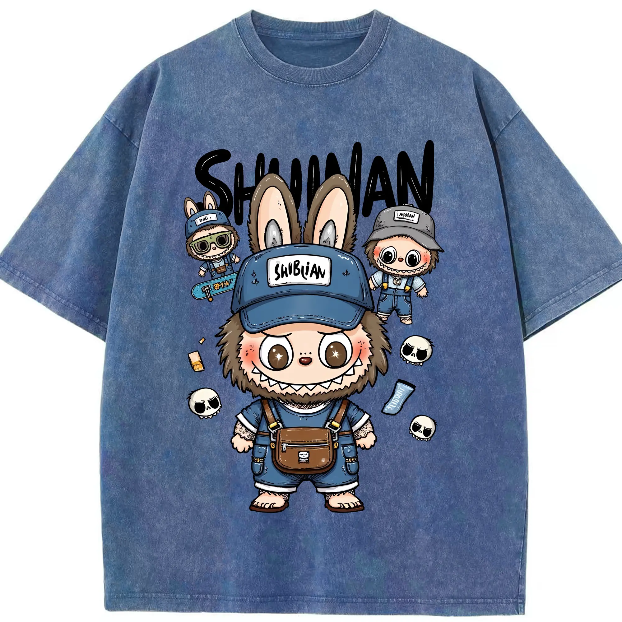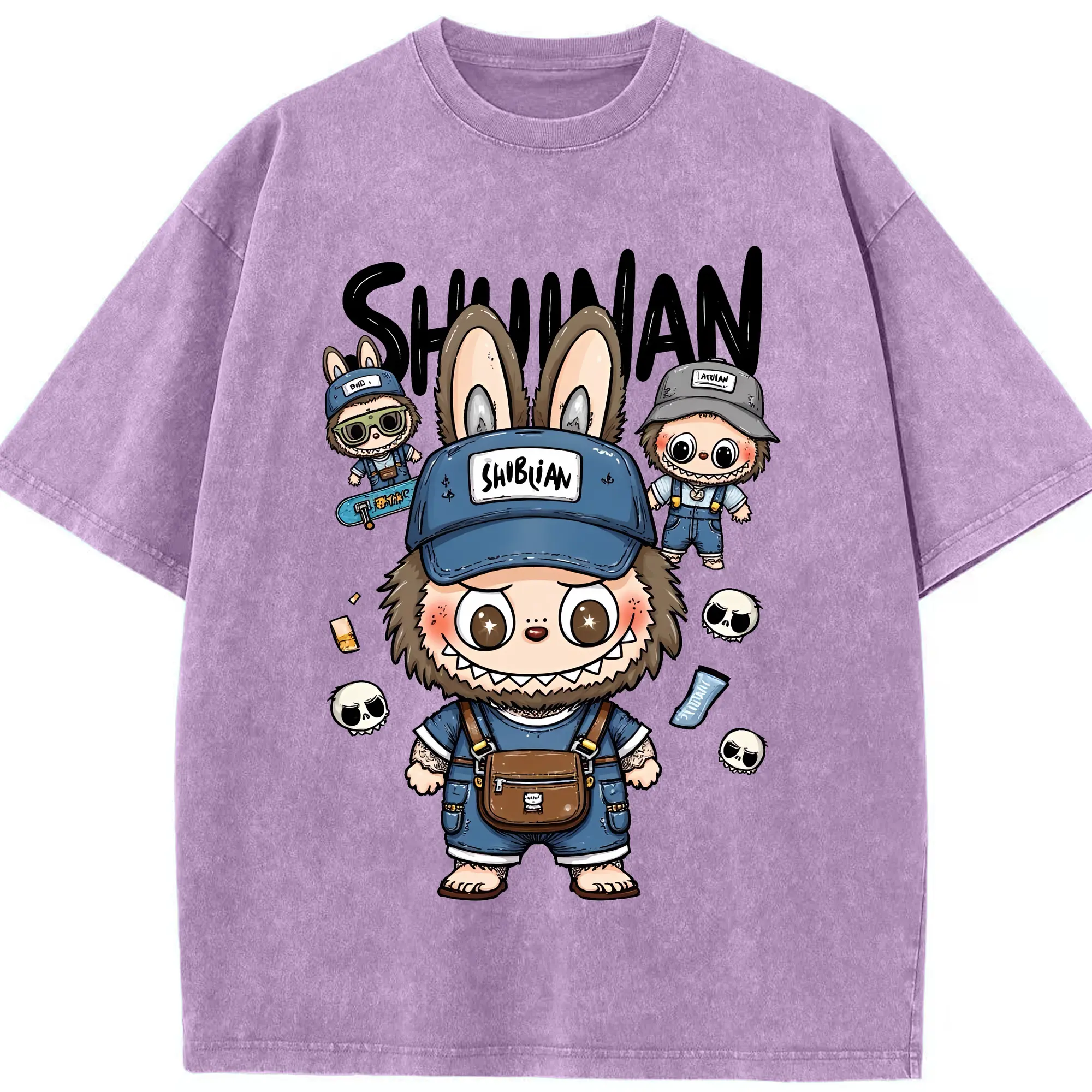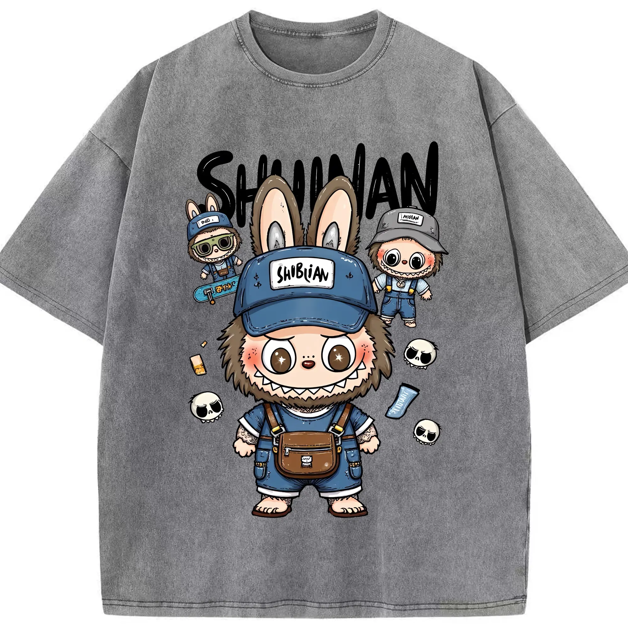 ラブブ グッズ ジモモ - 綿100% ヴィンテージ風 半袖Tシャツ ・ 背面プリント ・ 柔らか肌触り ・ 通気性 快適 ・ スポーツ カジュアル 外出用