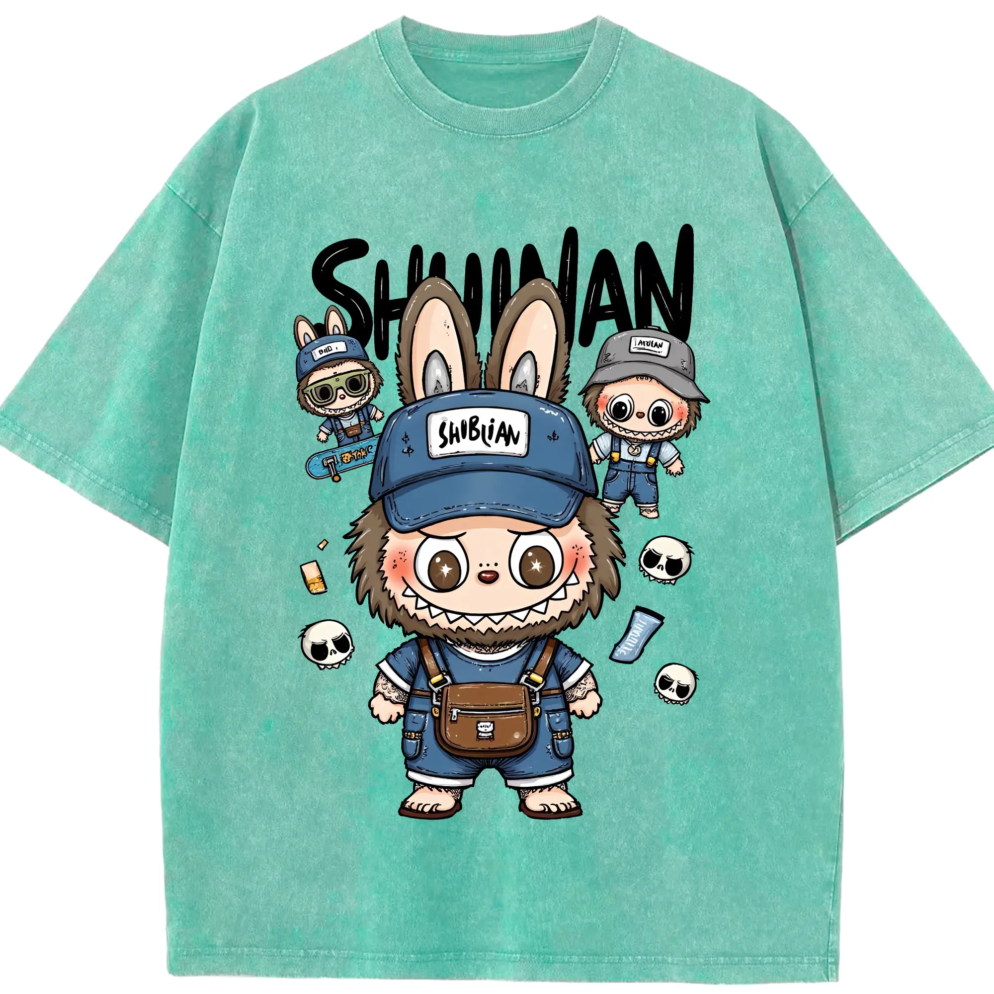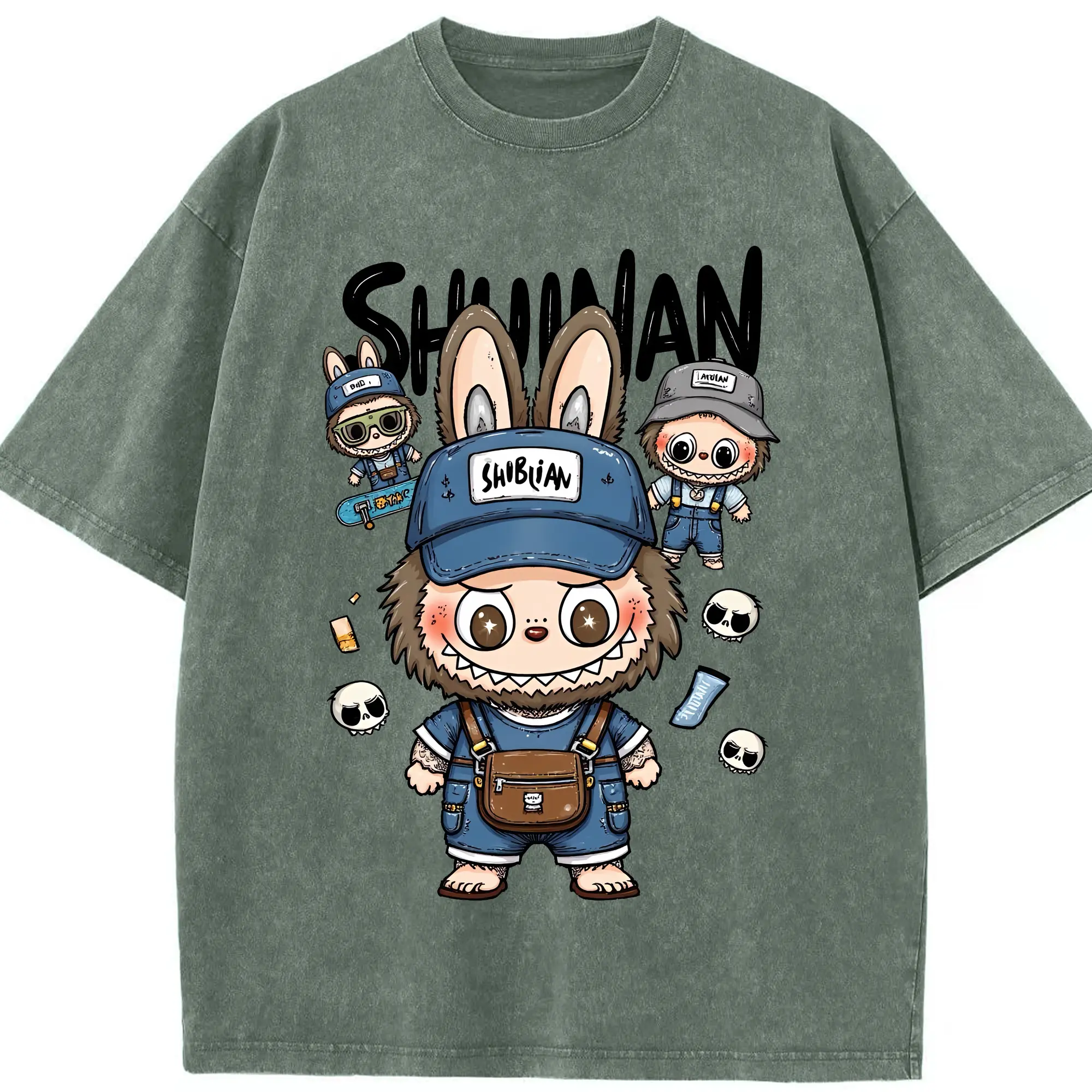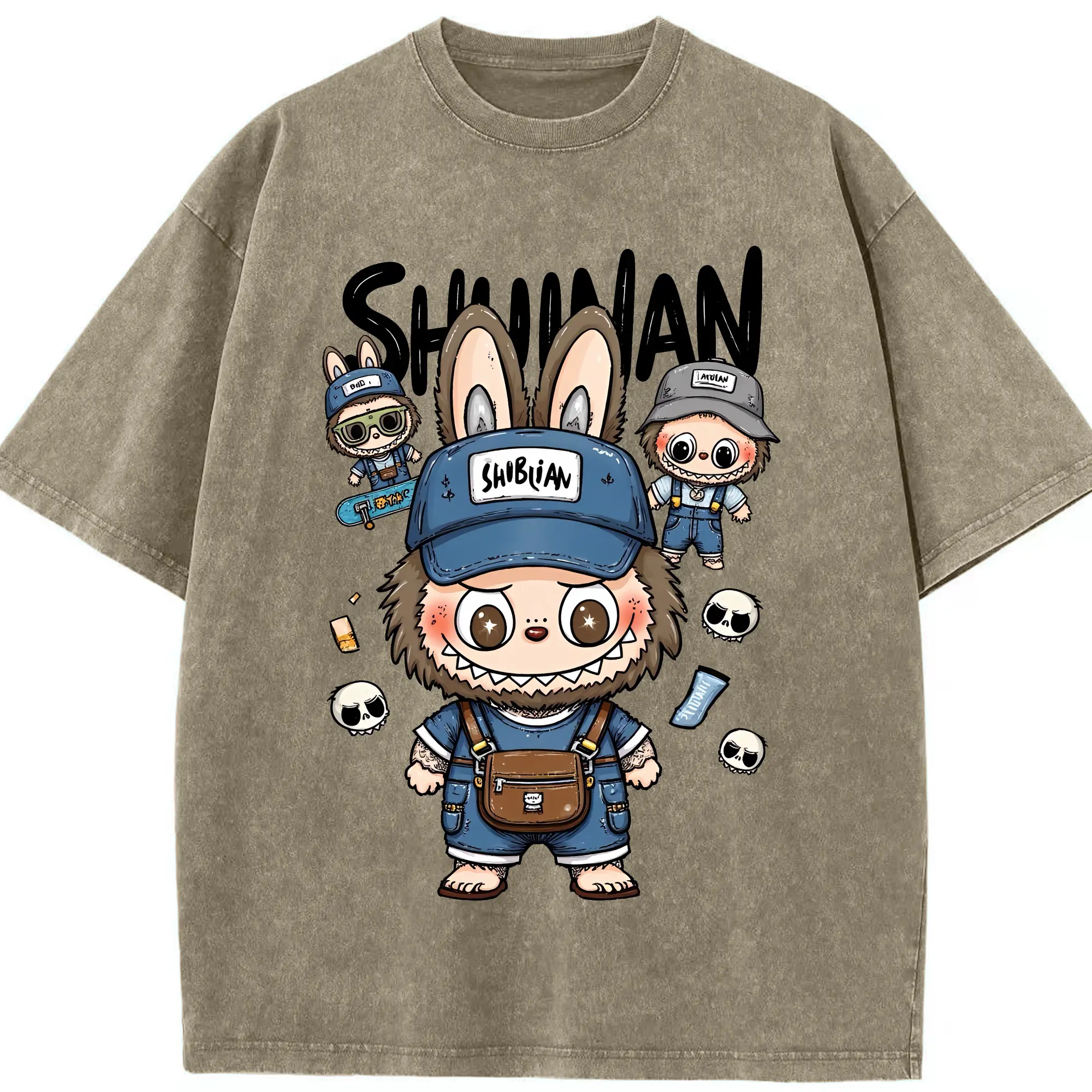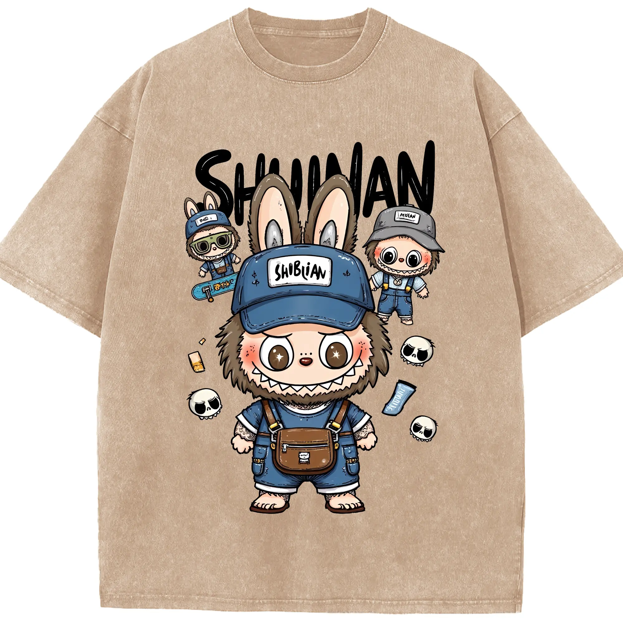 ラブブ グッズ ジモモ - 綿100% ヴィンテージ風 半袖Tシャツ ・ 背面プリント ・ 柔らか肌触り ・ 通気性 快適 ・ スポーツ カジュアル 外出用
