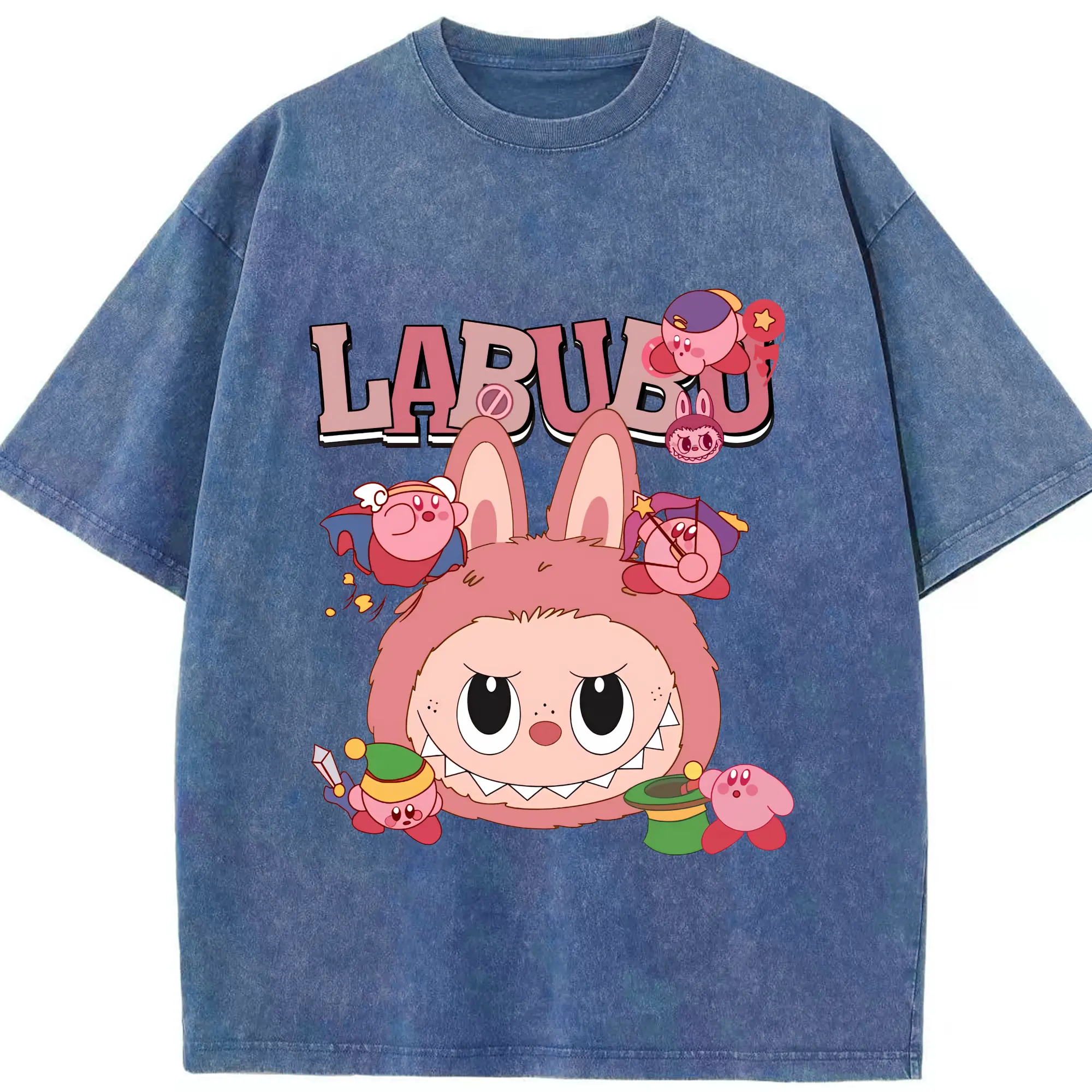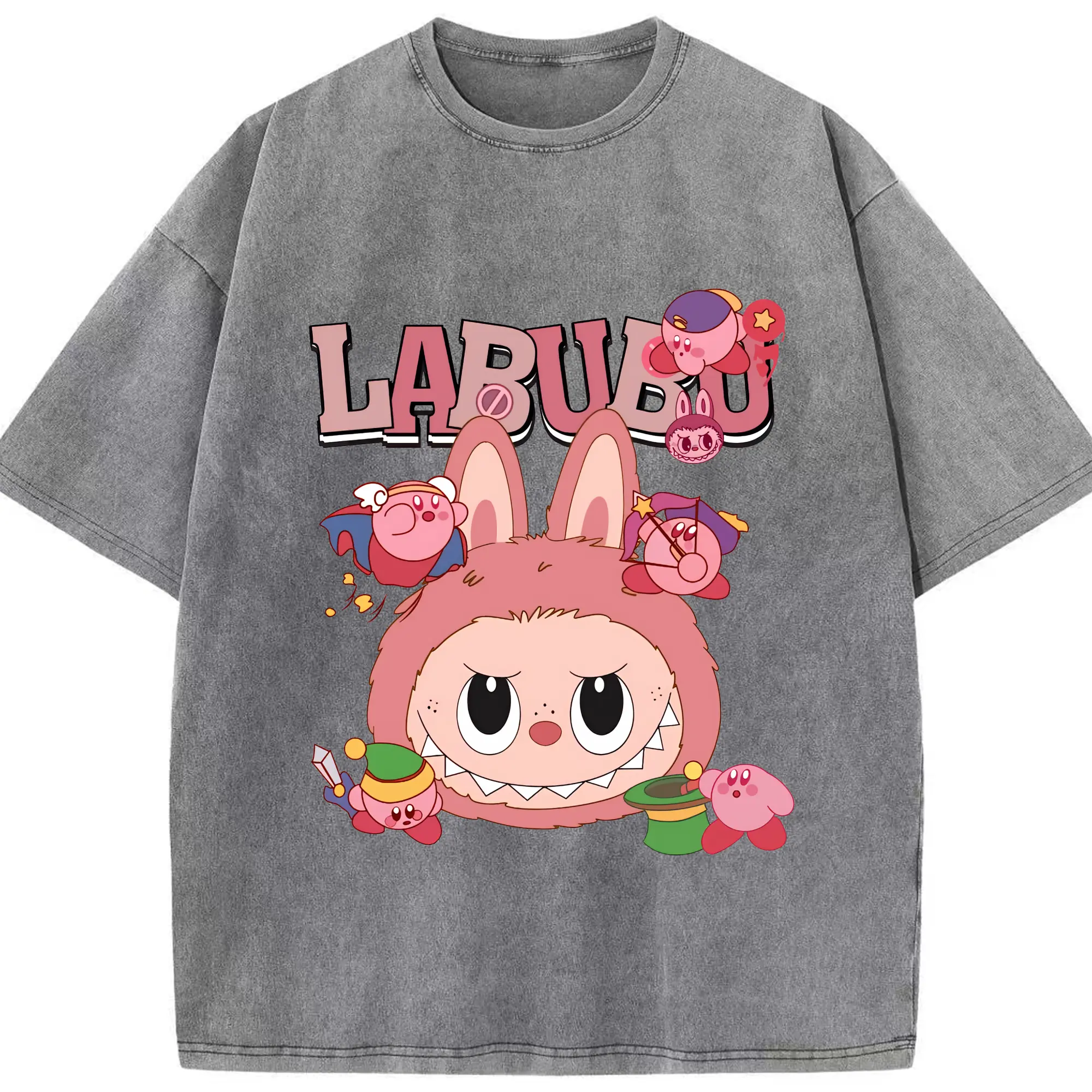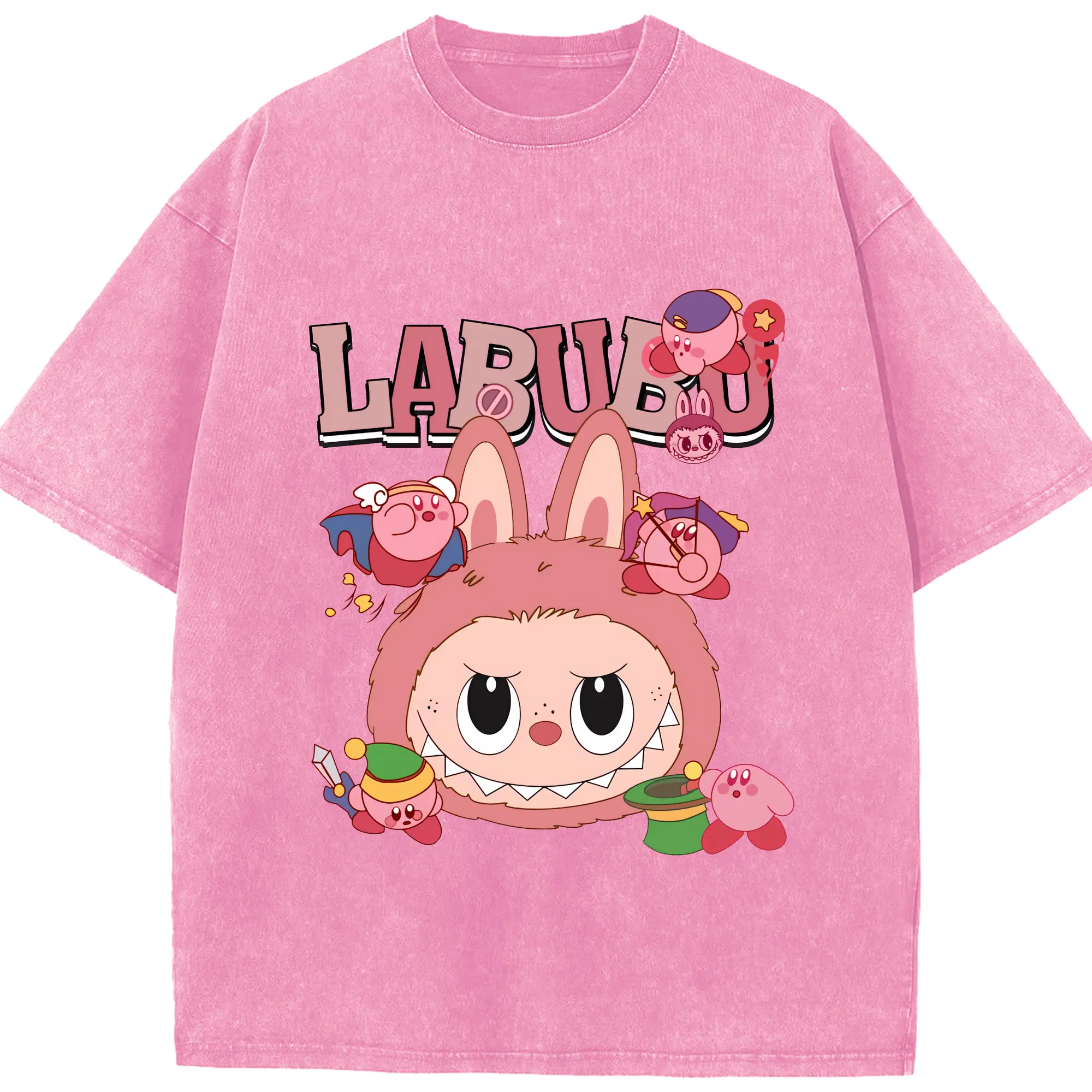 ラブブ グッズ ジモモ - 綿100% ヴィンテージ風 半袖Tシャツ ・ 背面プリント ・ 柔らか肌触り ・ 通気性 快適 ・ スポーツ カジュアル 外出用