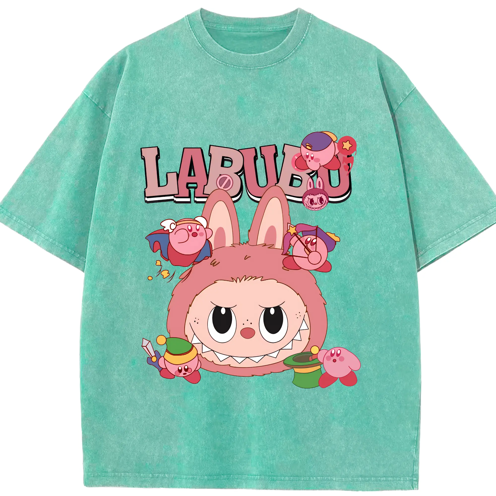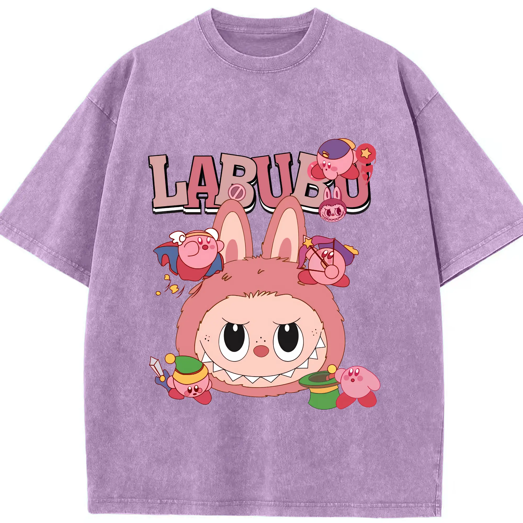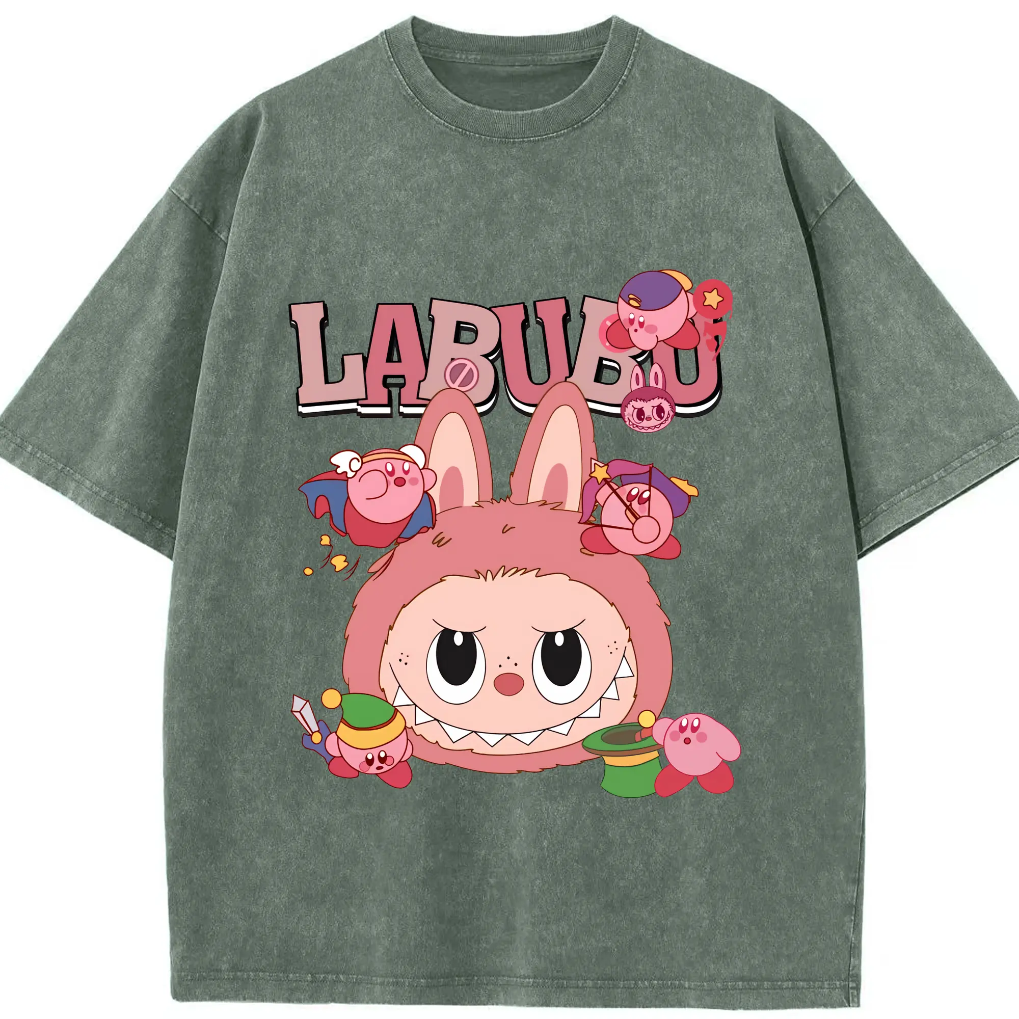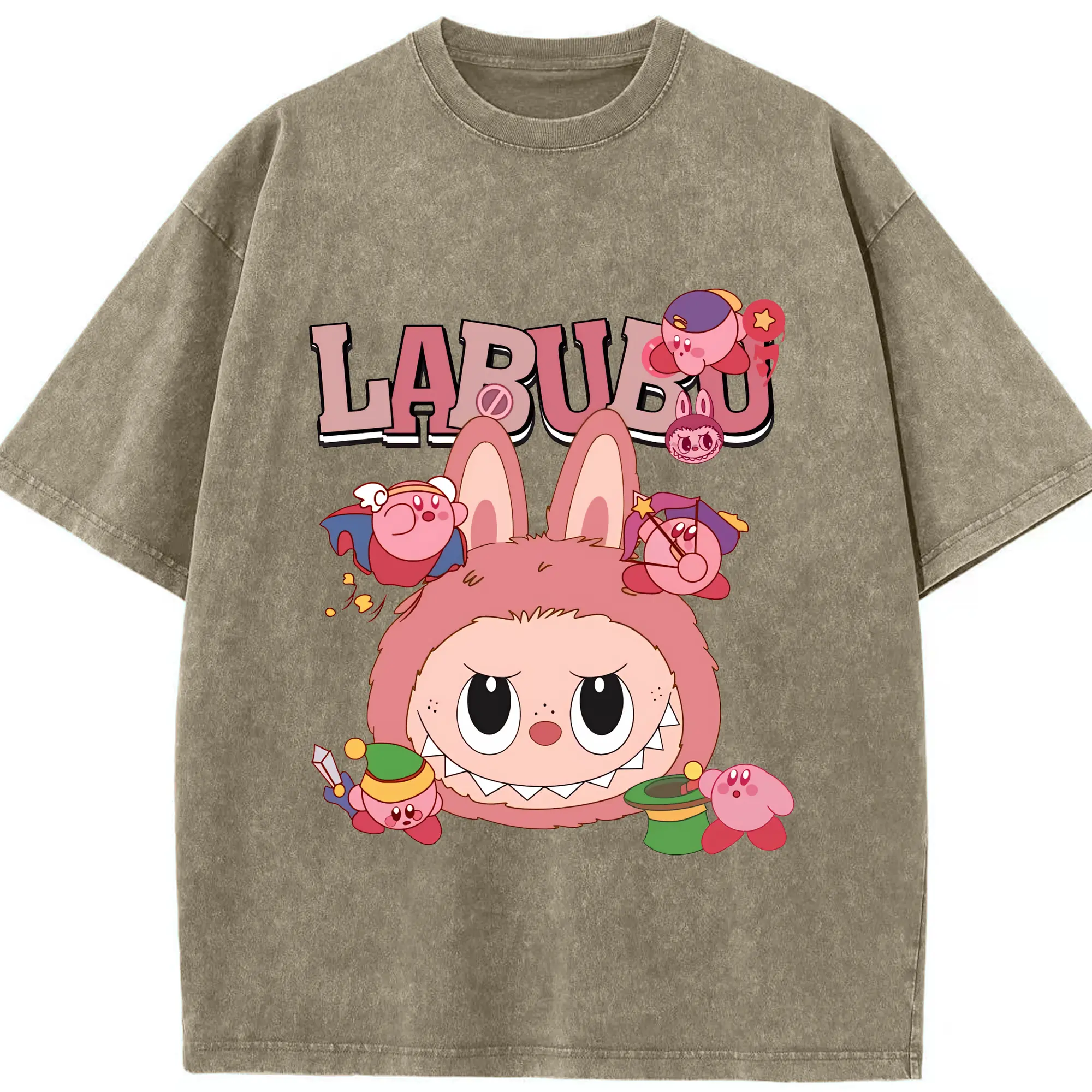 ラブブ グッズ ジモモ - 綿100% ヴィンテージ風 半袖Tシャツ ・ 背面プリント ・ 柔らか肌触り ・ 通気性 快適 ・ スポーツ カジュアル 外出用