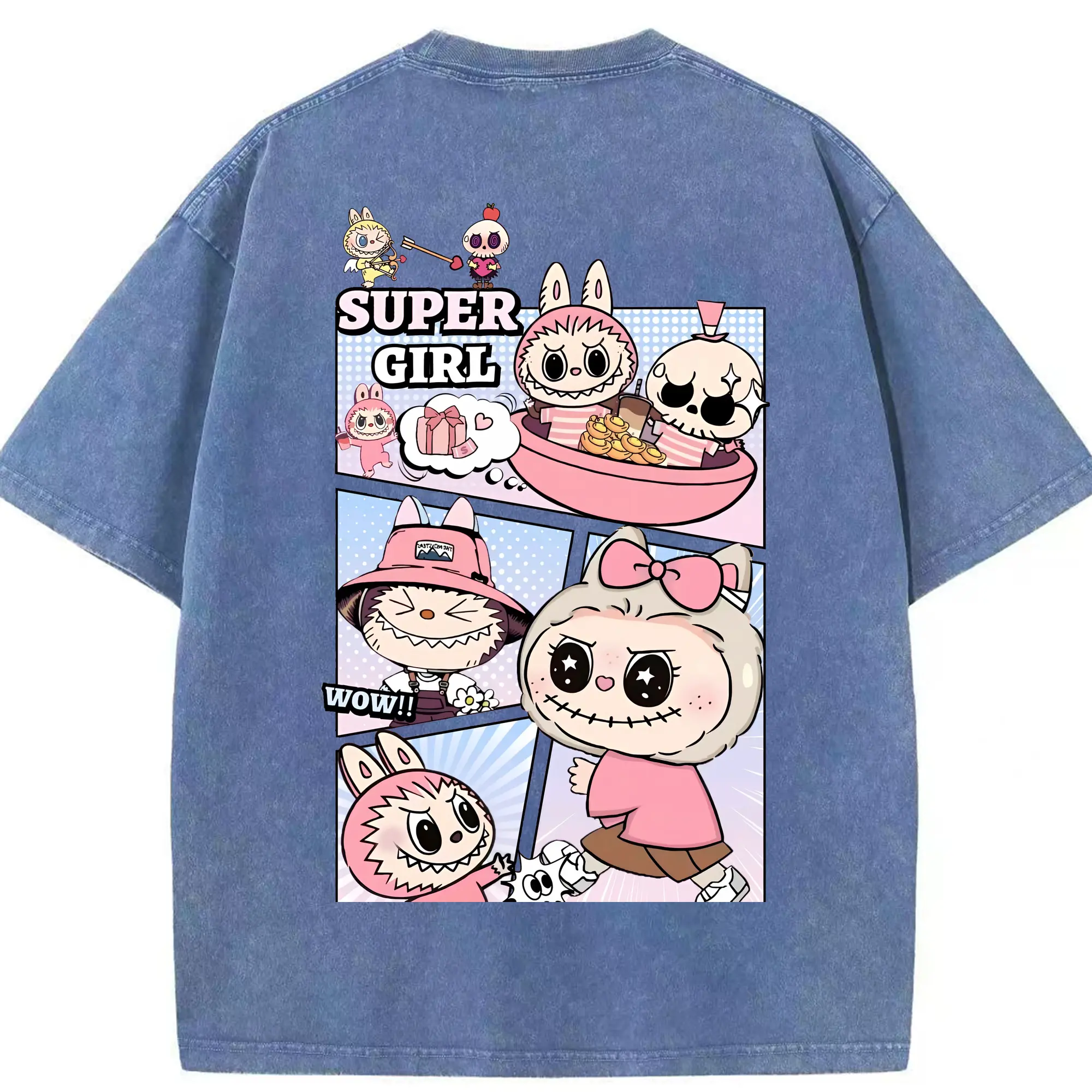 ラブブ グッズ ジモモ - 綿100% ヴィンテージ風 半袖Tシャツ ・ フロントプリント ・ 柔らか肌触り ・ 通気性 快適 ・ スポーツ カジュアル 外出用