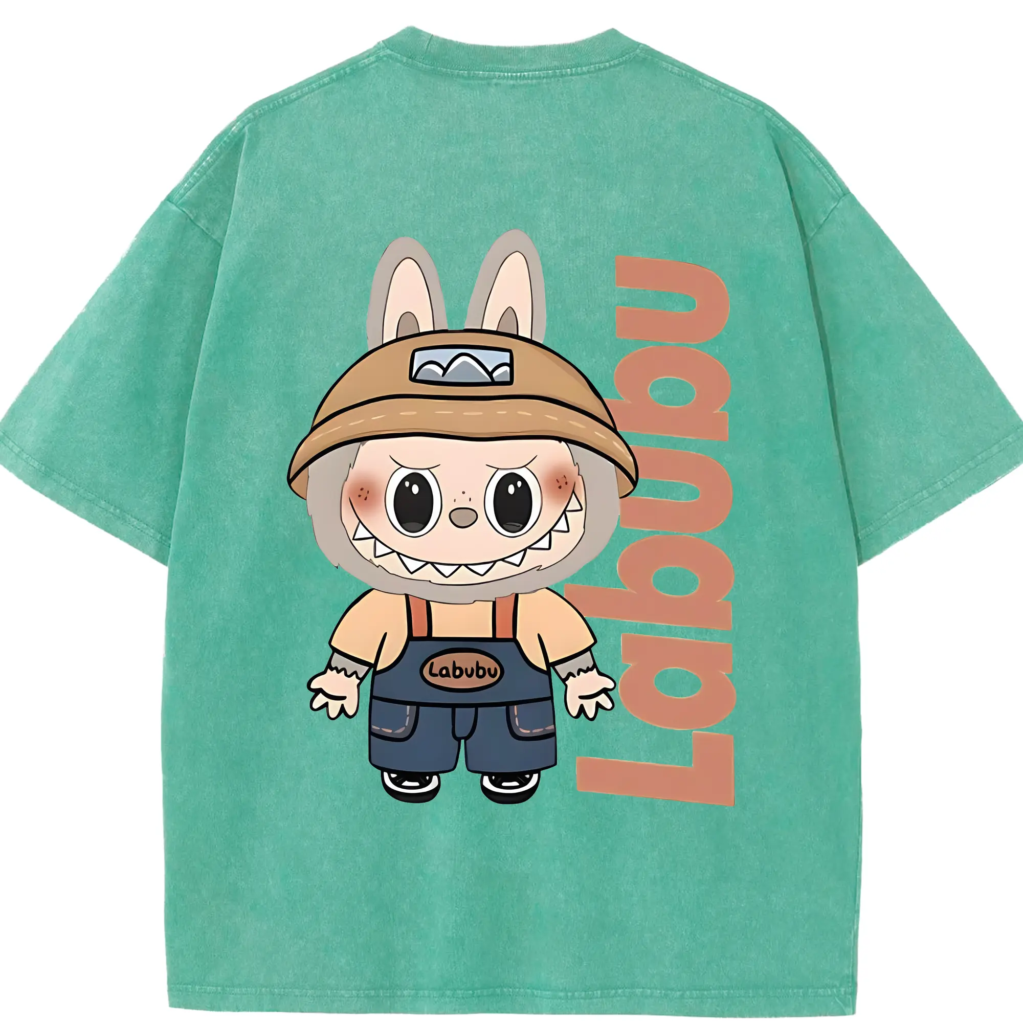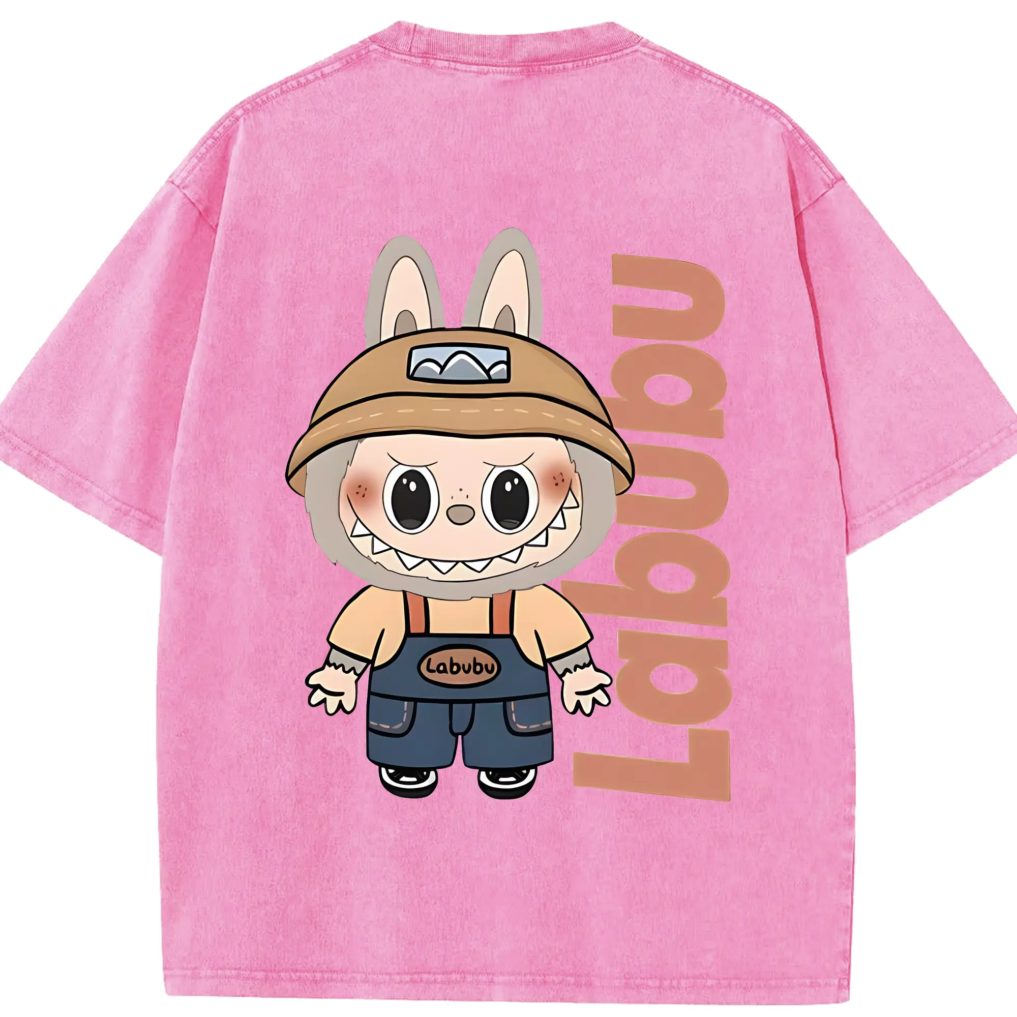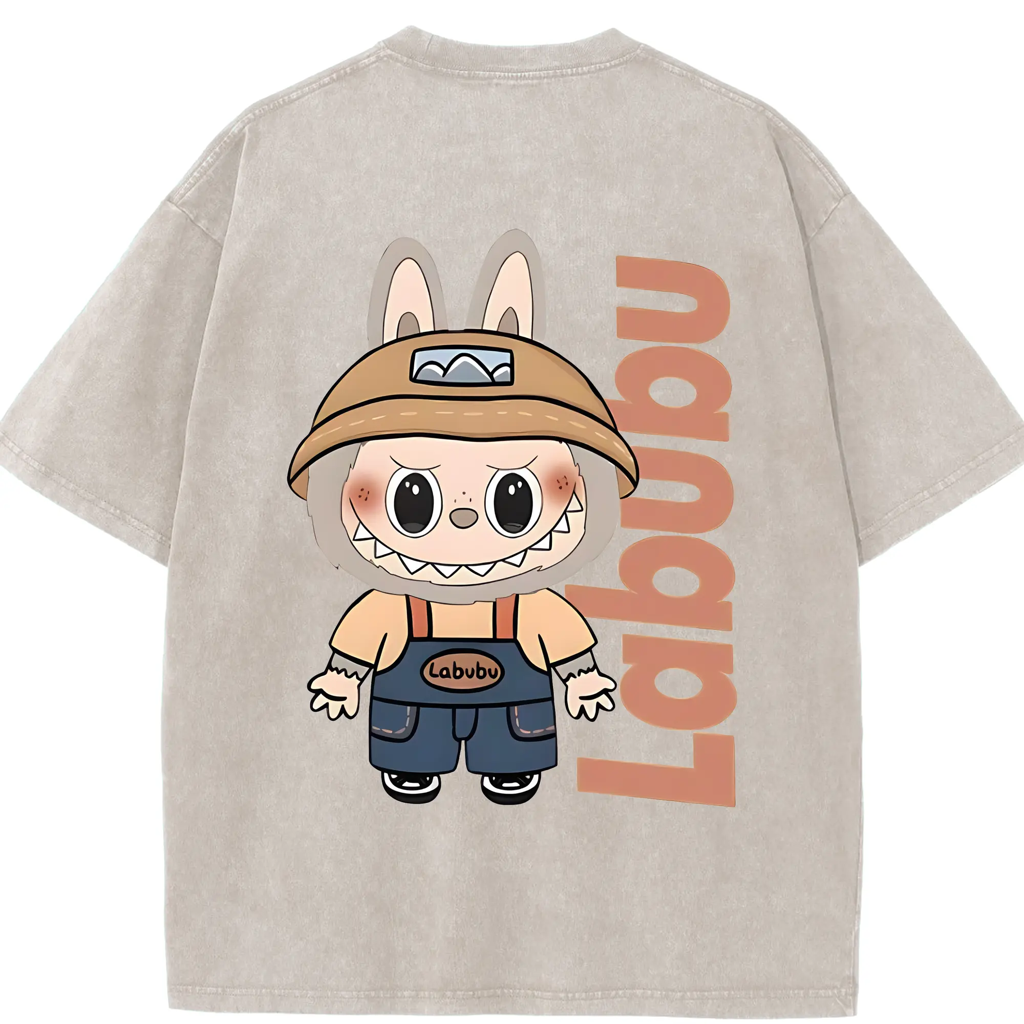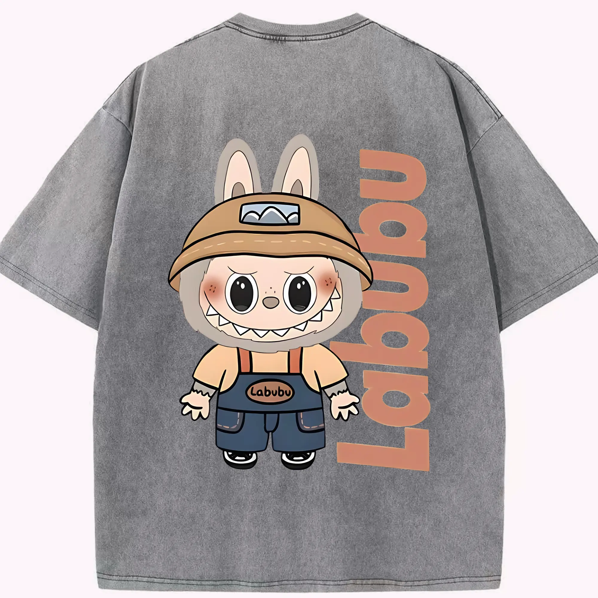 ラブブ グッズ ジモモ - 綿100% ヴィンテージ風 半袖Tシャツ ・ フロントプリント ・ 柔らか肌触り ・ 通気性 快適 ・ スポーツ カジュアル 外出用