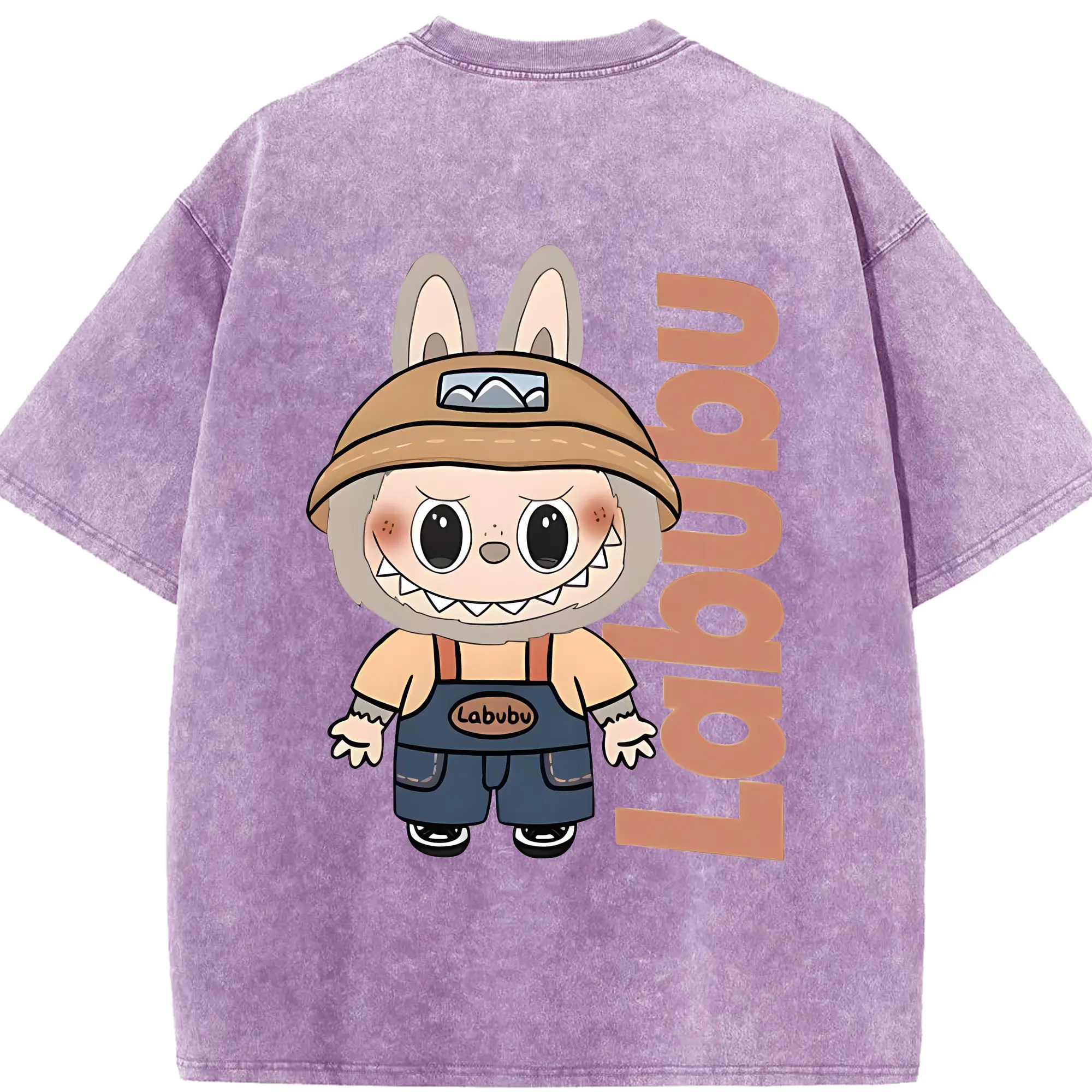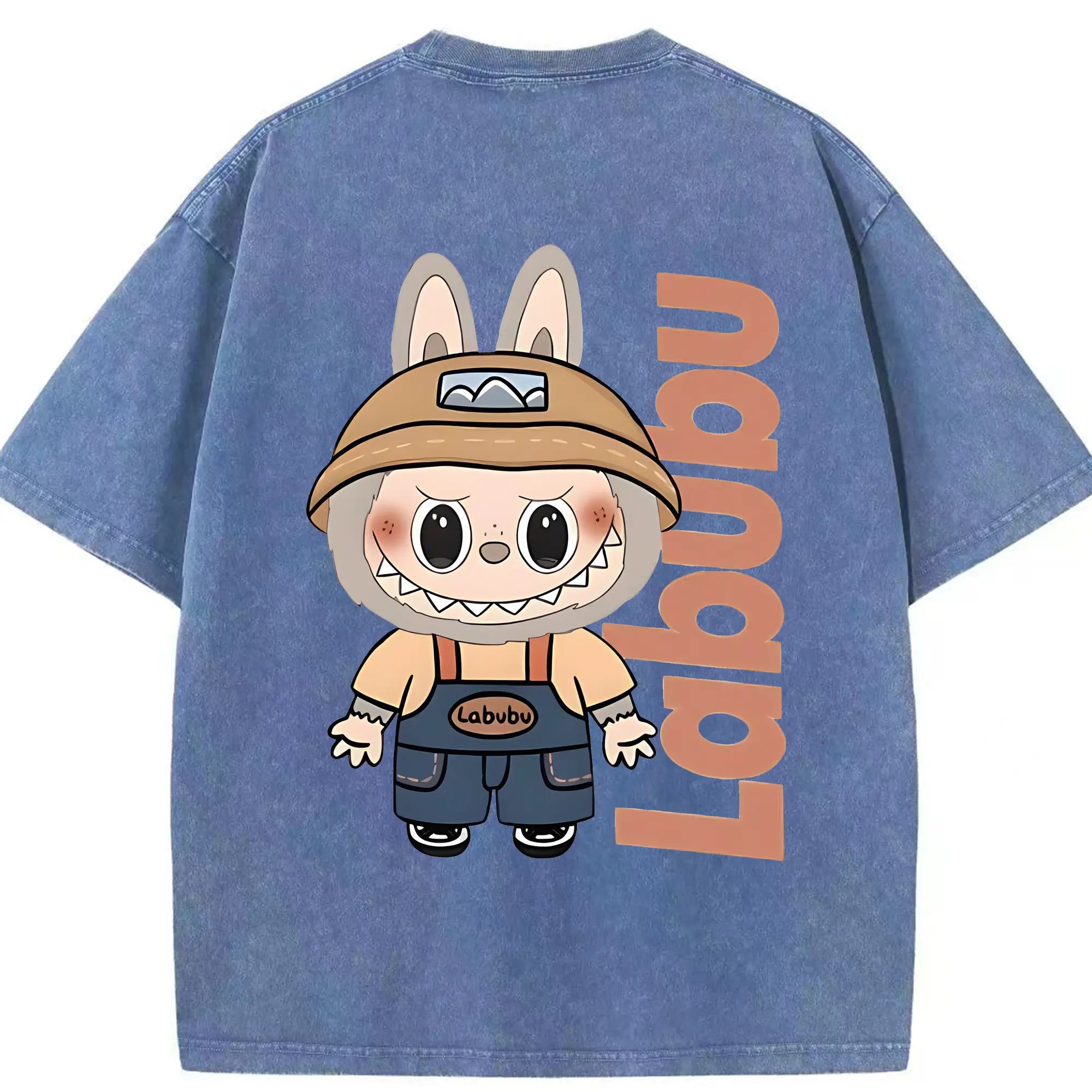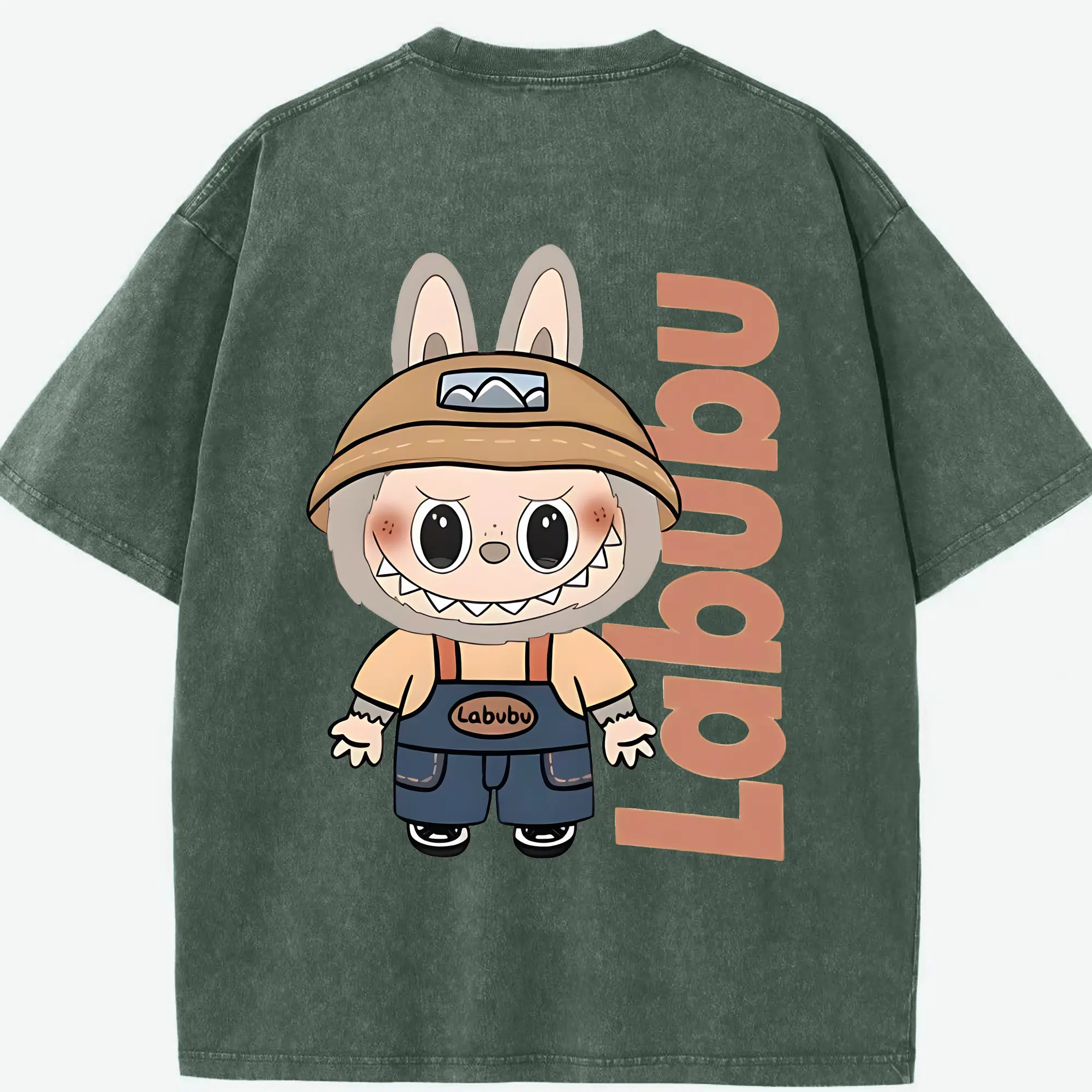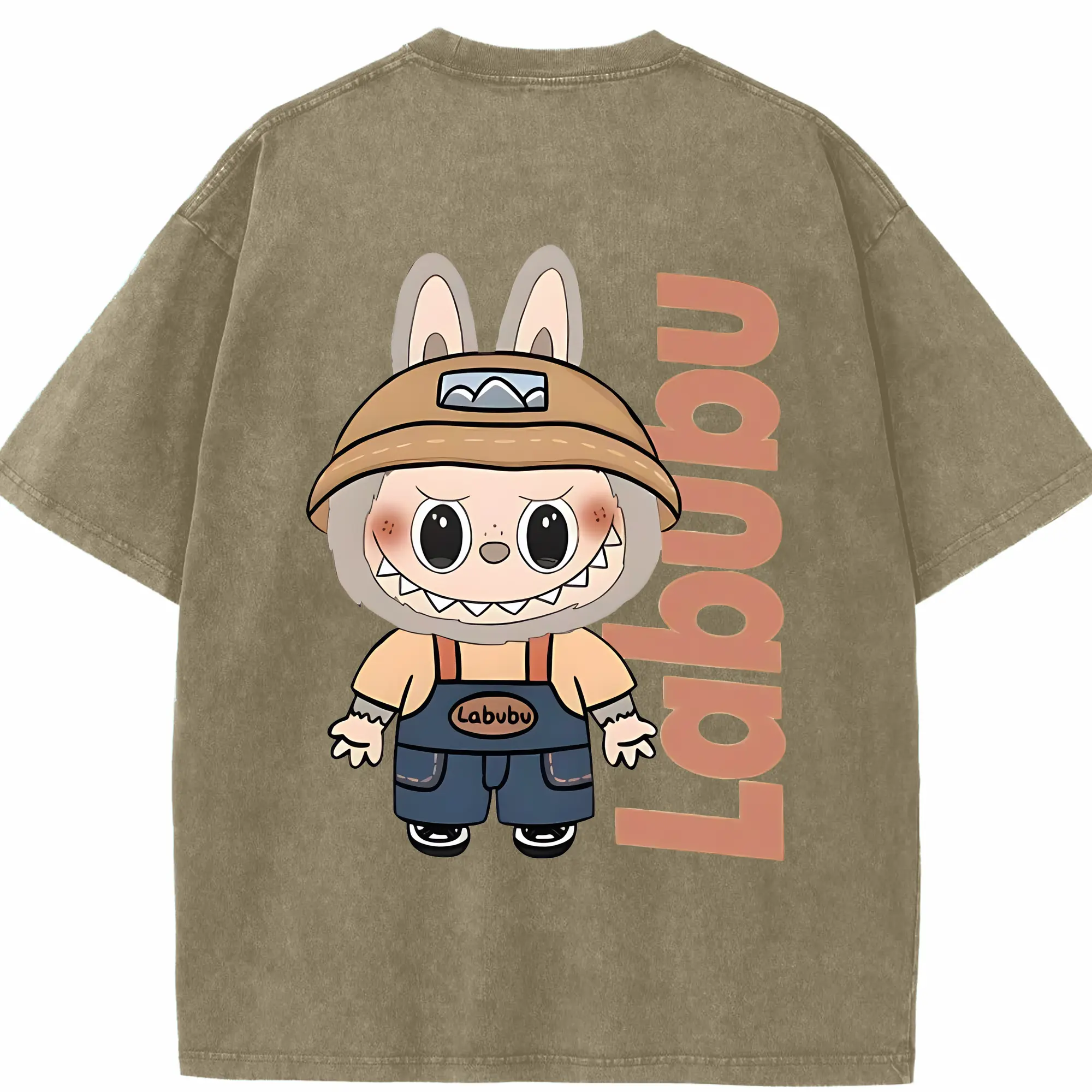 ラブブ グッズ ジモモ - 綿100% ヴィンテージ風 半袖Tシャツ ・ フロントプリント ・ 柔らか肌触り ・ 通気性 快適 ・ スポーツ カジュアル 外出用