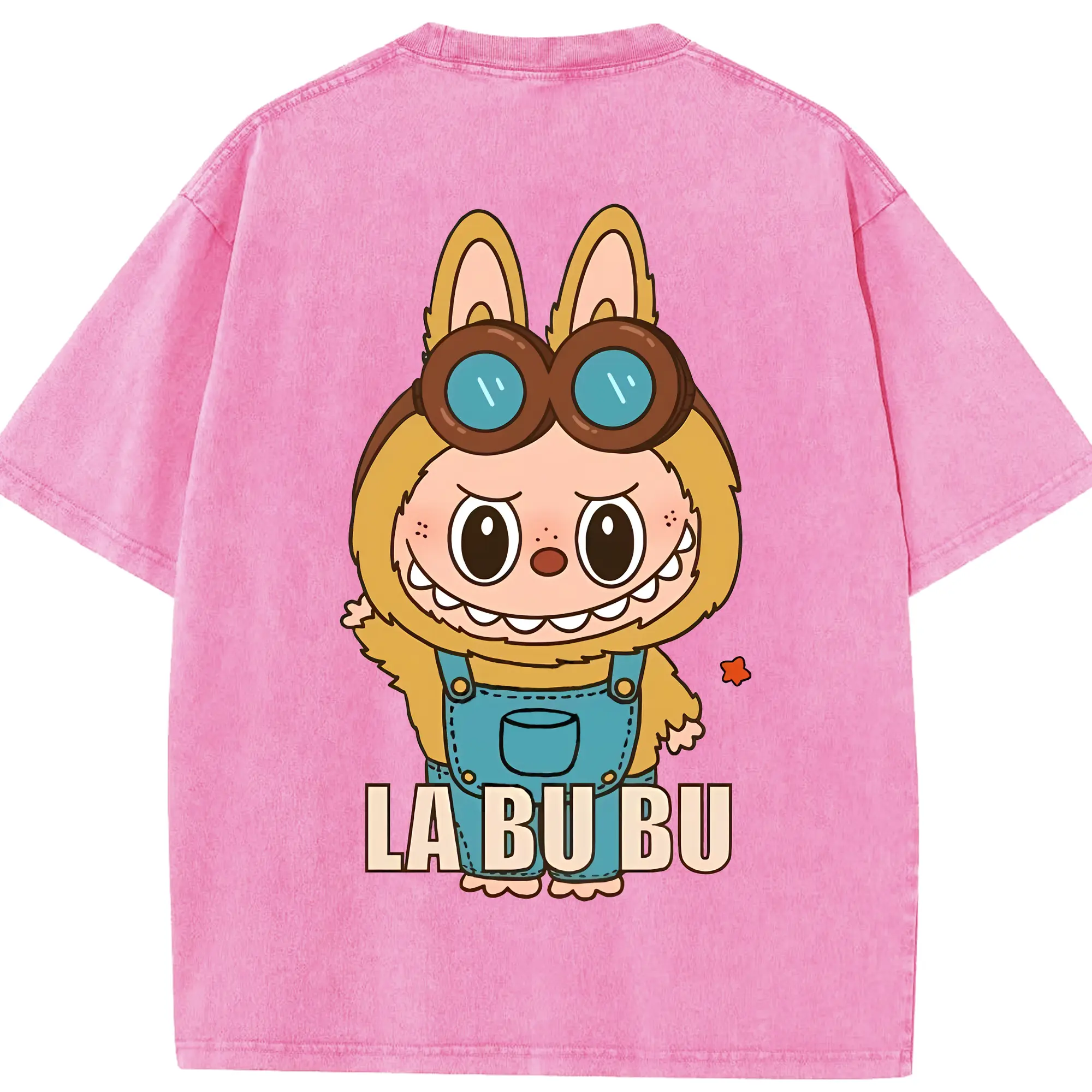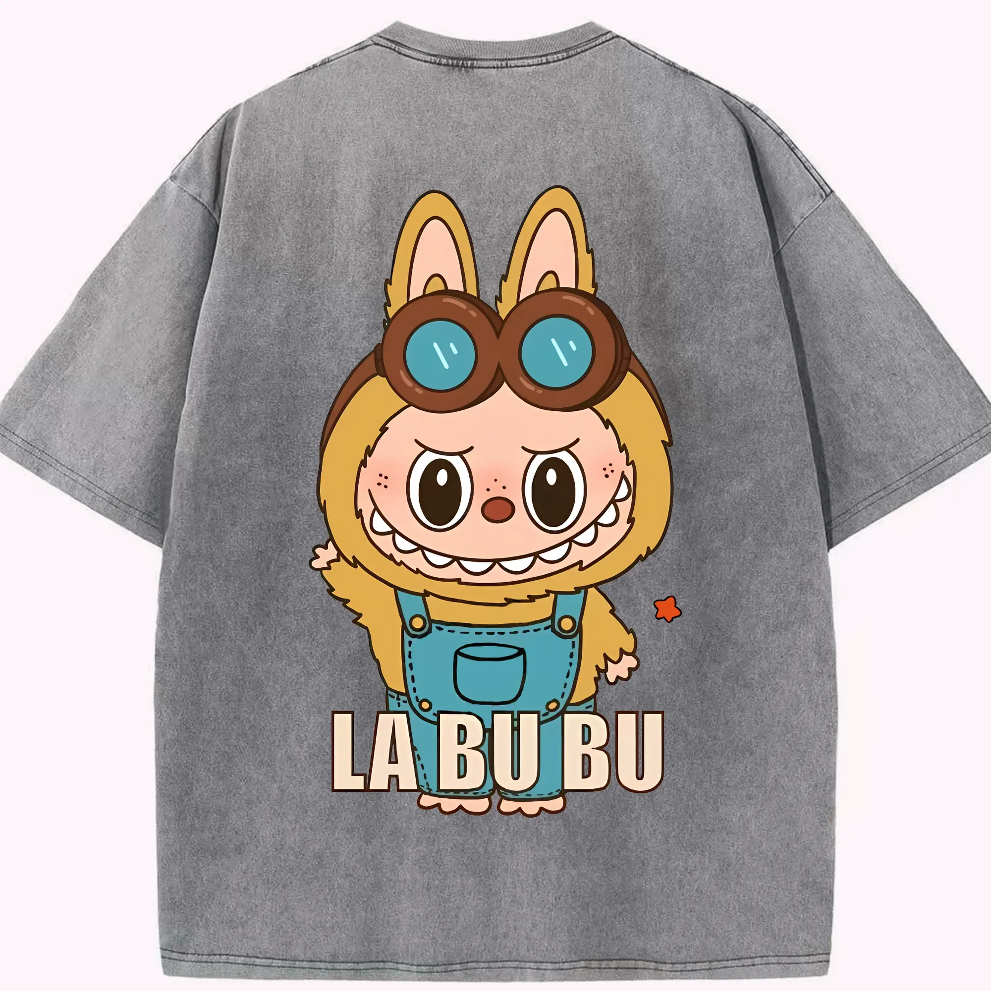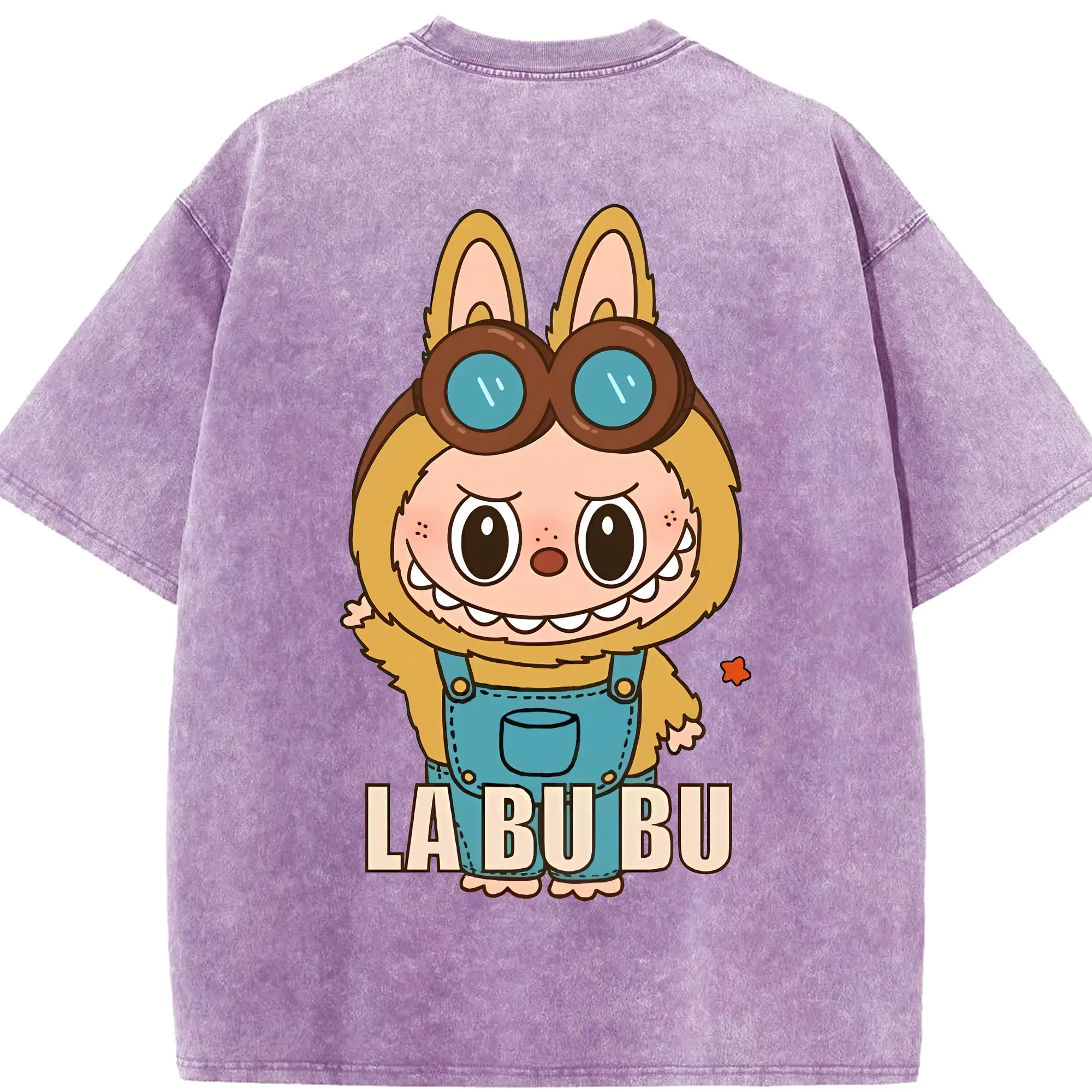 ラブブ グッズ ジモモ - 綿100% ヴィンテージ風 半袖Tシャツ ・ フロントプリント ・ 柔らか肌触り ・ 通気性 快適 ・ スポーツ カジュアル 外出用