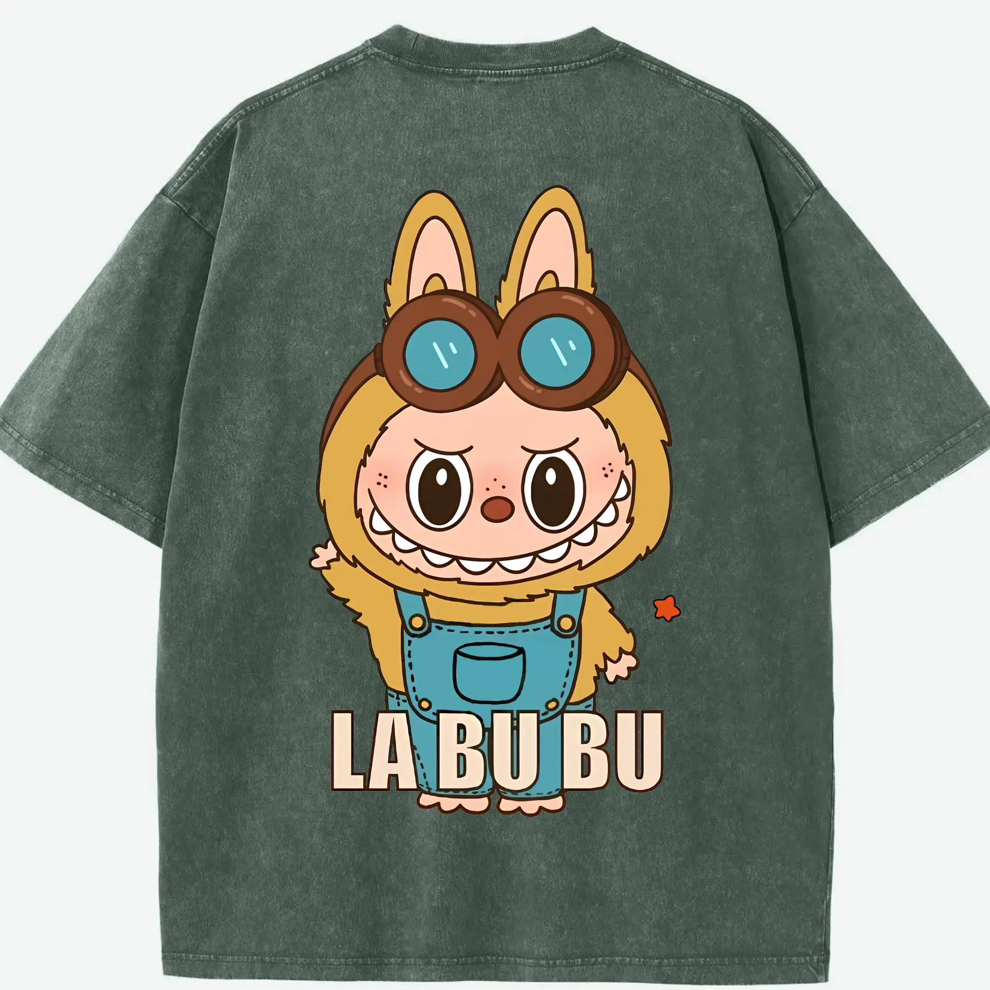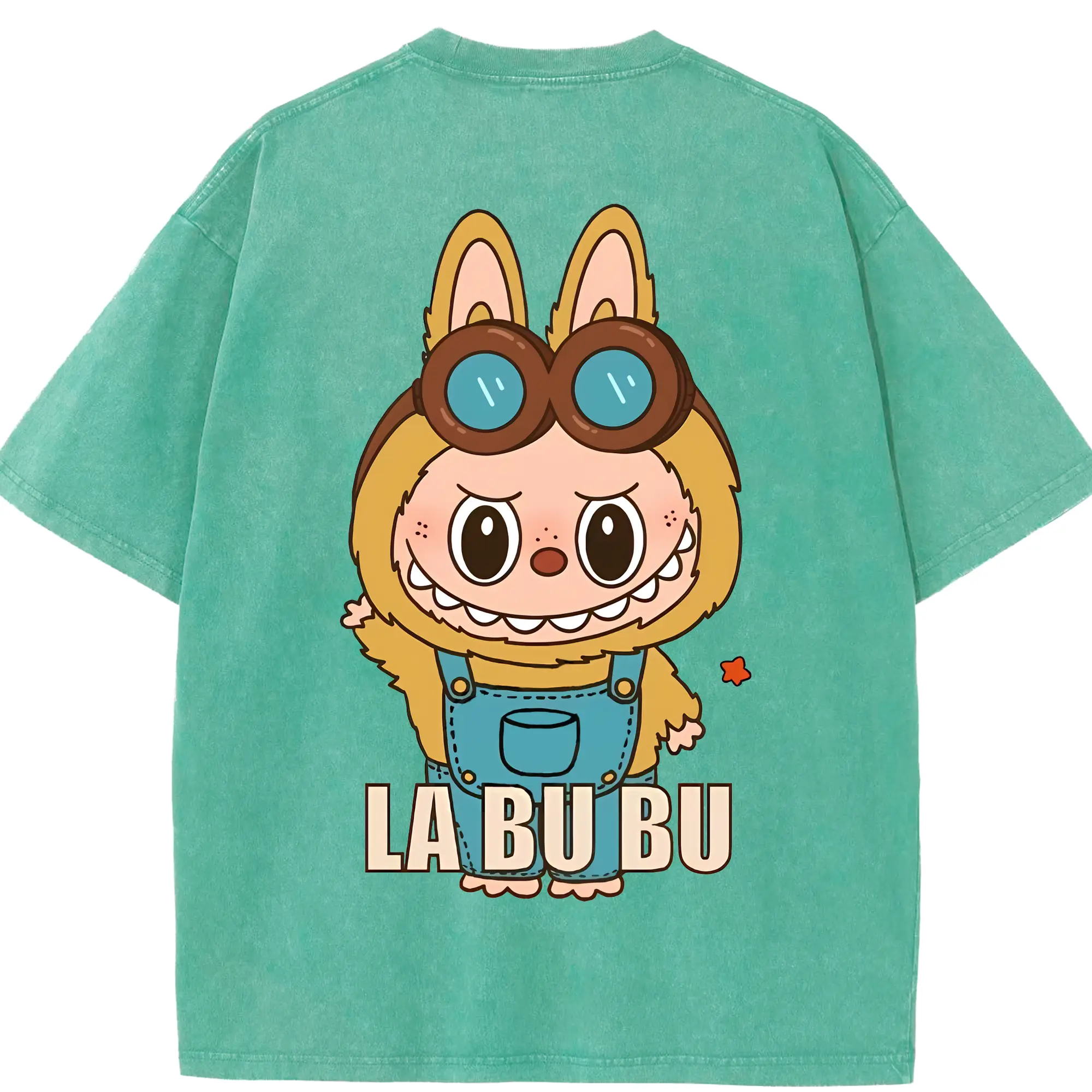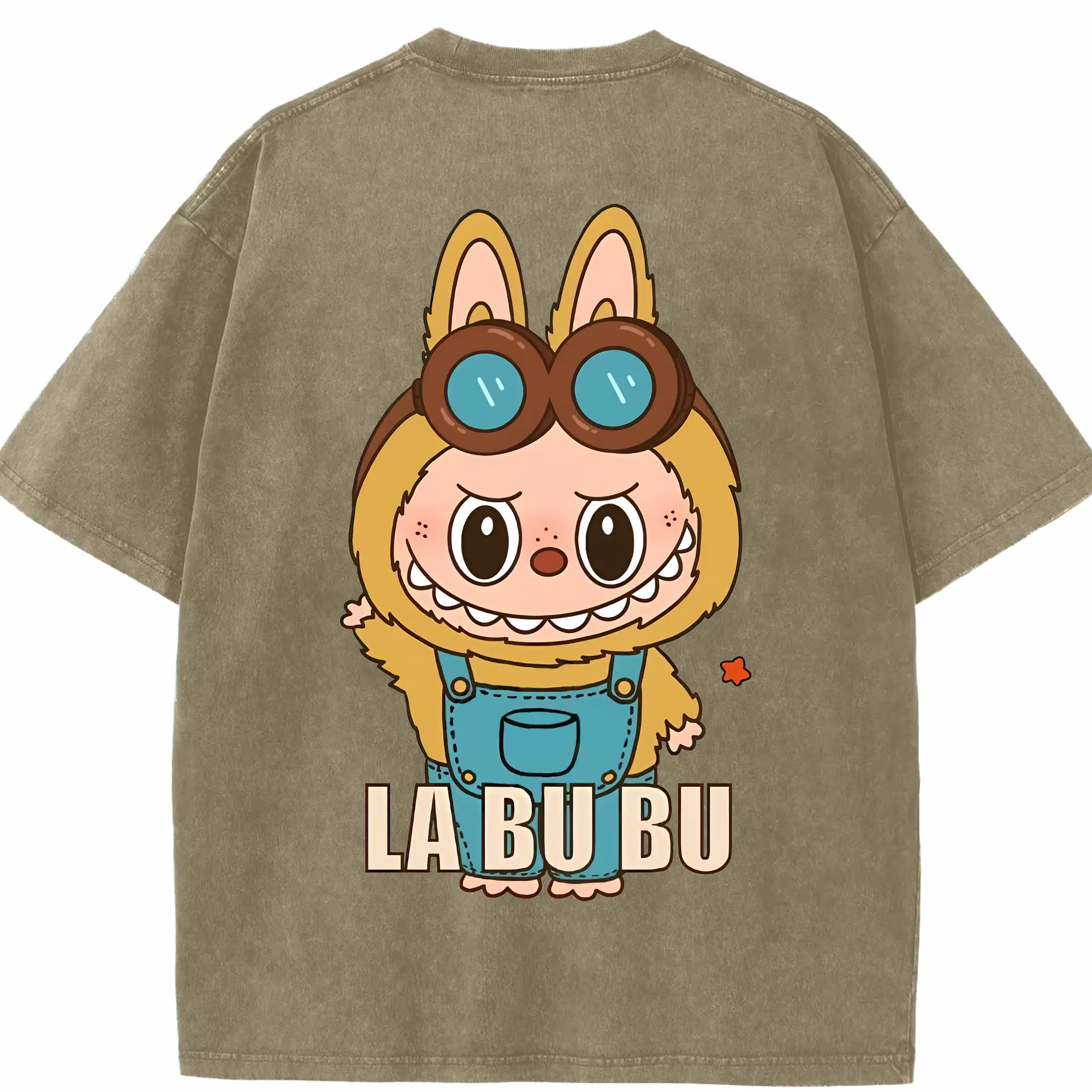 ラブブ グッズ ジモモ - 綿100% ヴィンテージ風 半袖Tシャツ ・ フロントプリント ・ 柔らか肌触り ・ 通気性 快適 ・ スポーツ カジュアル 外出用
