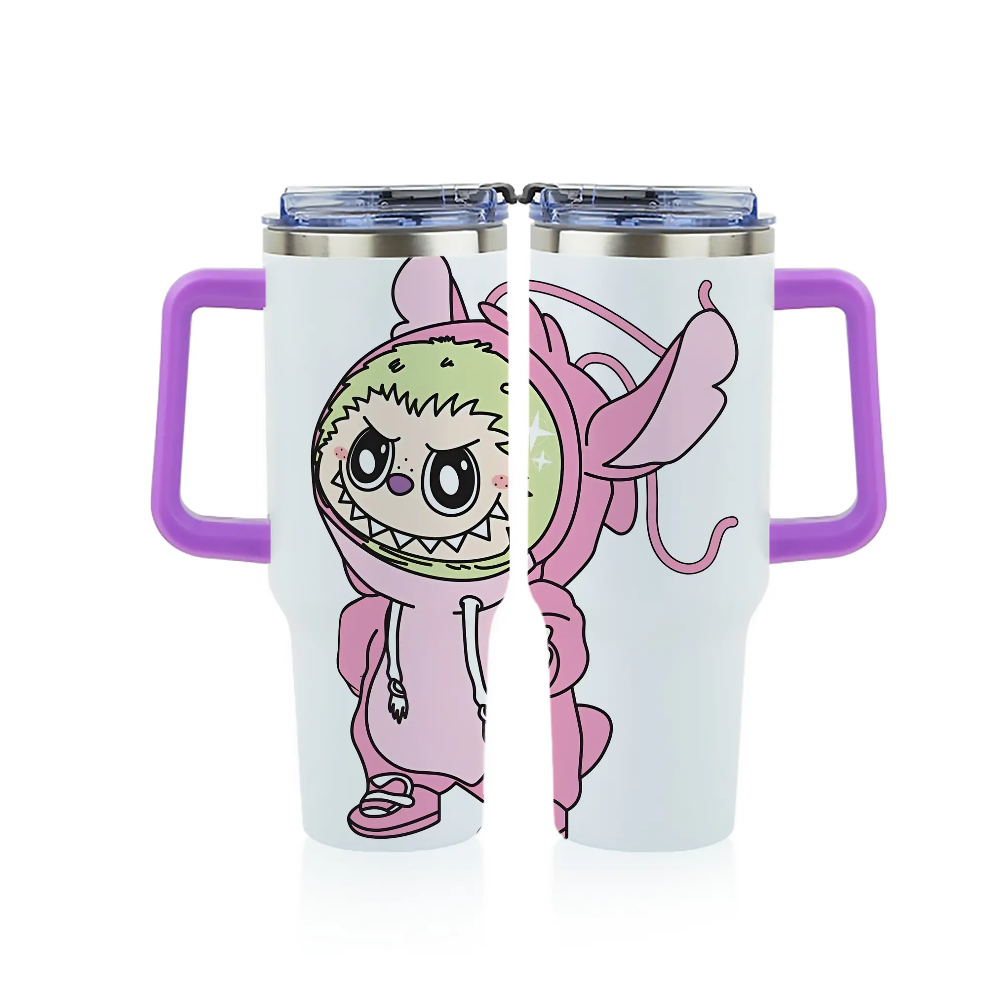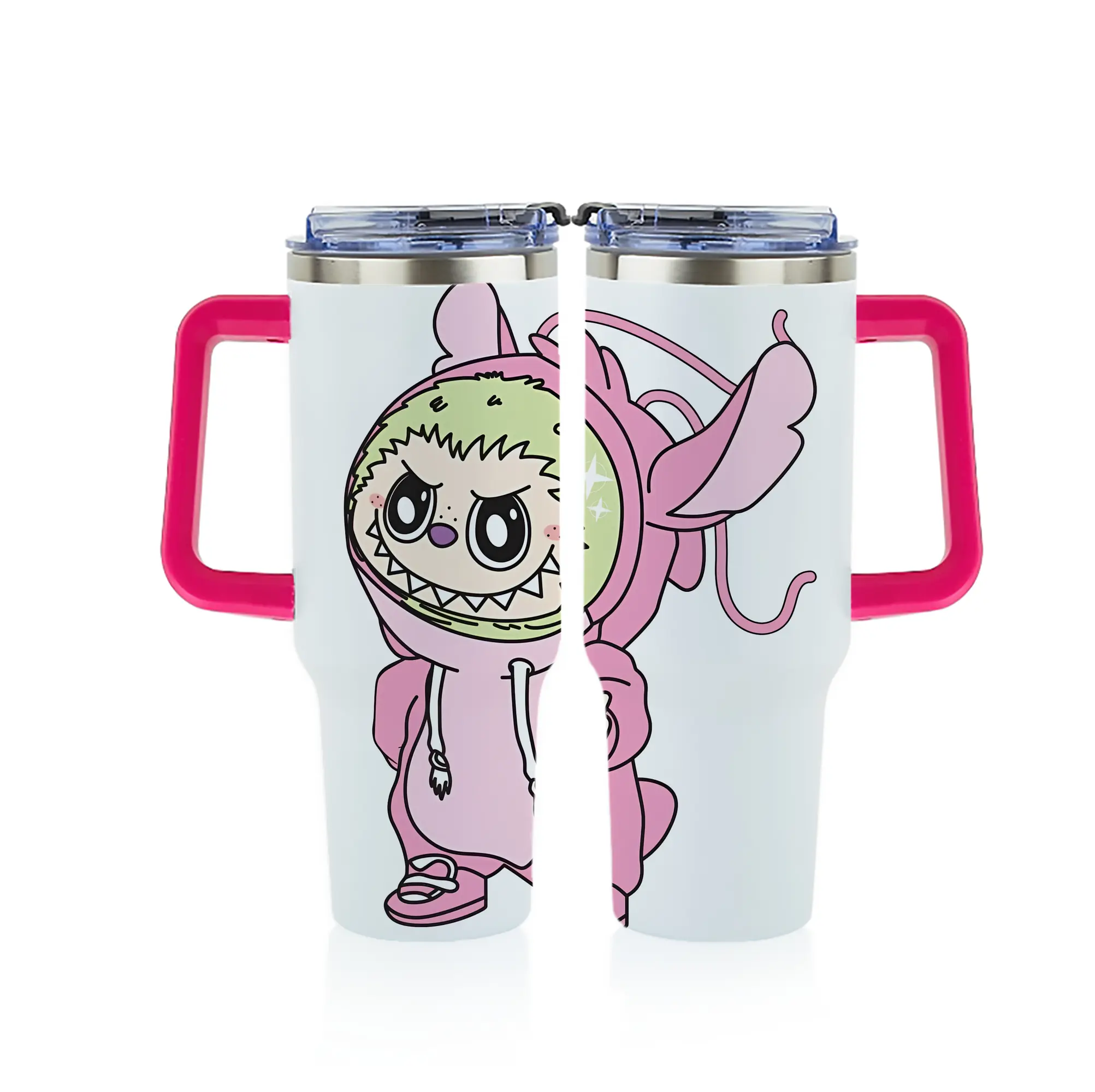 ラブブ グッズ モココ - 1200mL フルプリント車用タンブラー ・ 304ステンレス 内側 ・ 201ステンレス 外側 ・ 保温 保冷 ・ 通勤 ドライブ アウトドア用