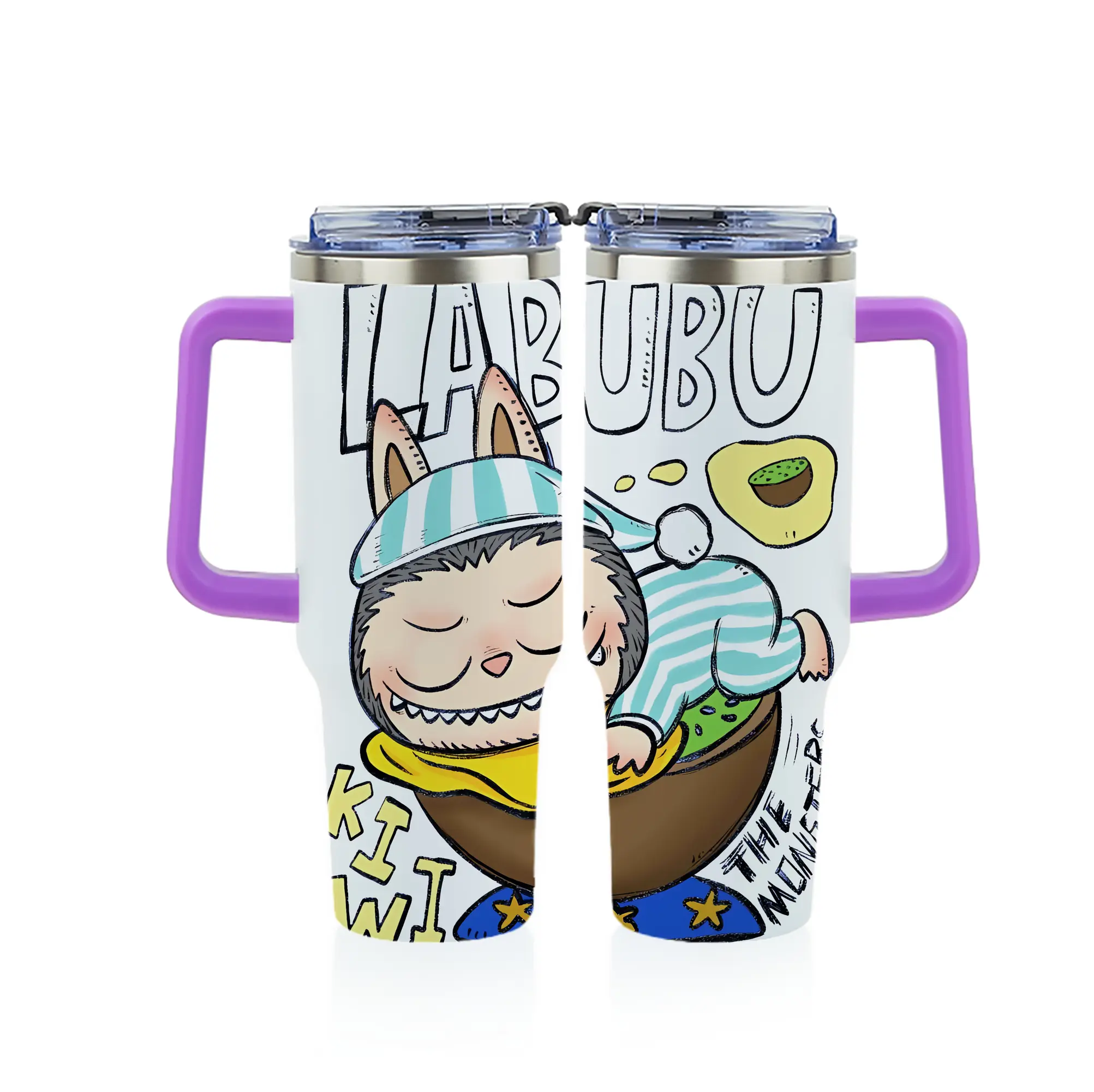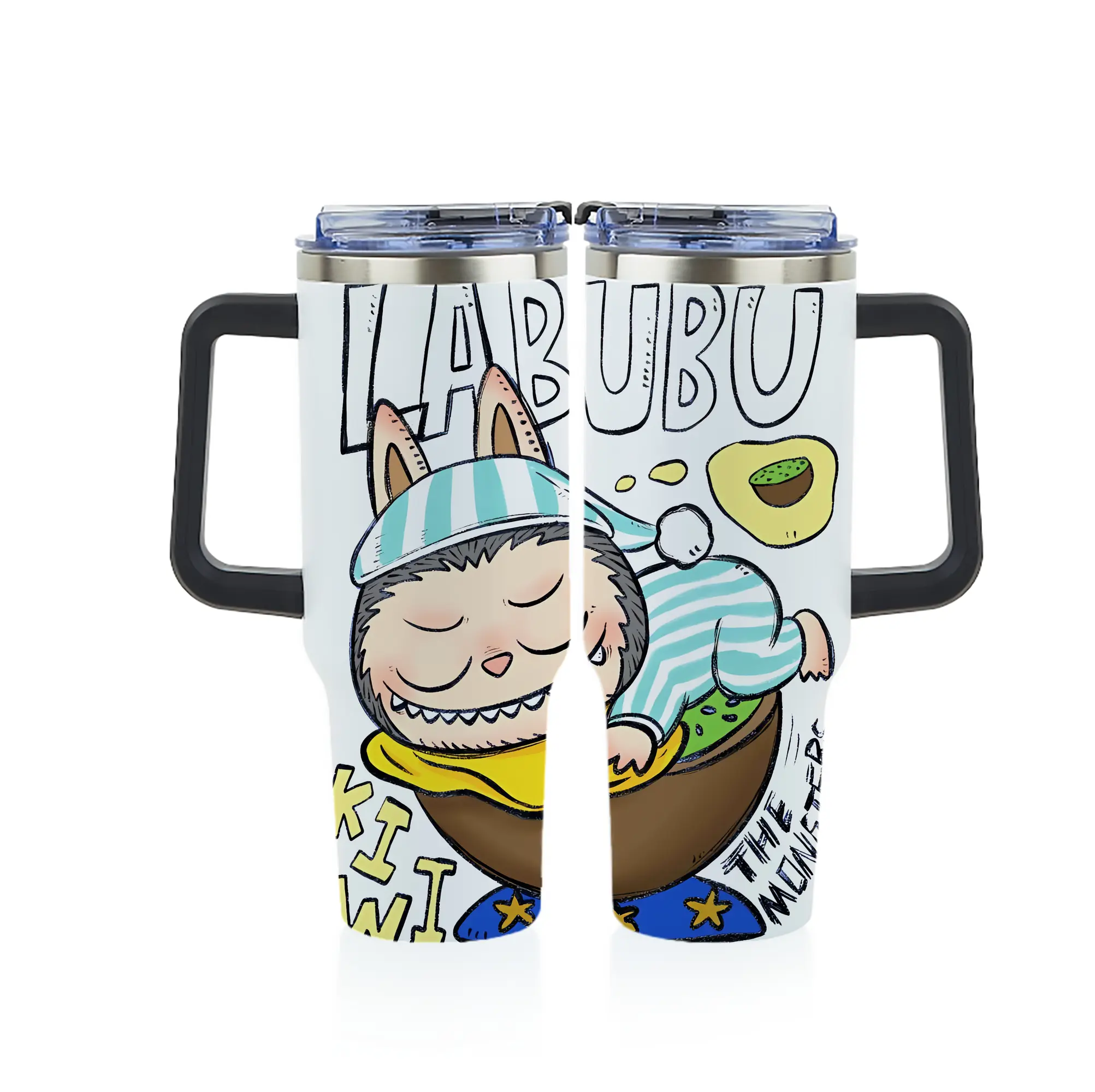 ラブブ グッズ モココ - 1200mL フルプリント車用タンブラー ・ 304ステンレス 内側 ・ 201ステンレス 外側 ・ 保温 保冷 ・ 通勤 ドライブ アウトドア用