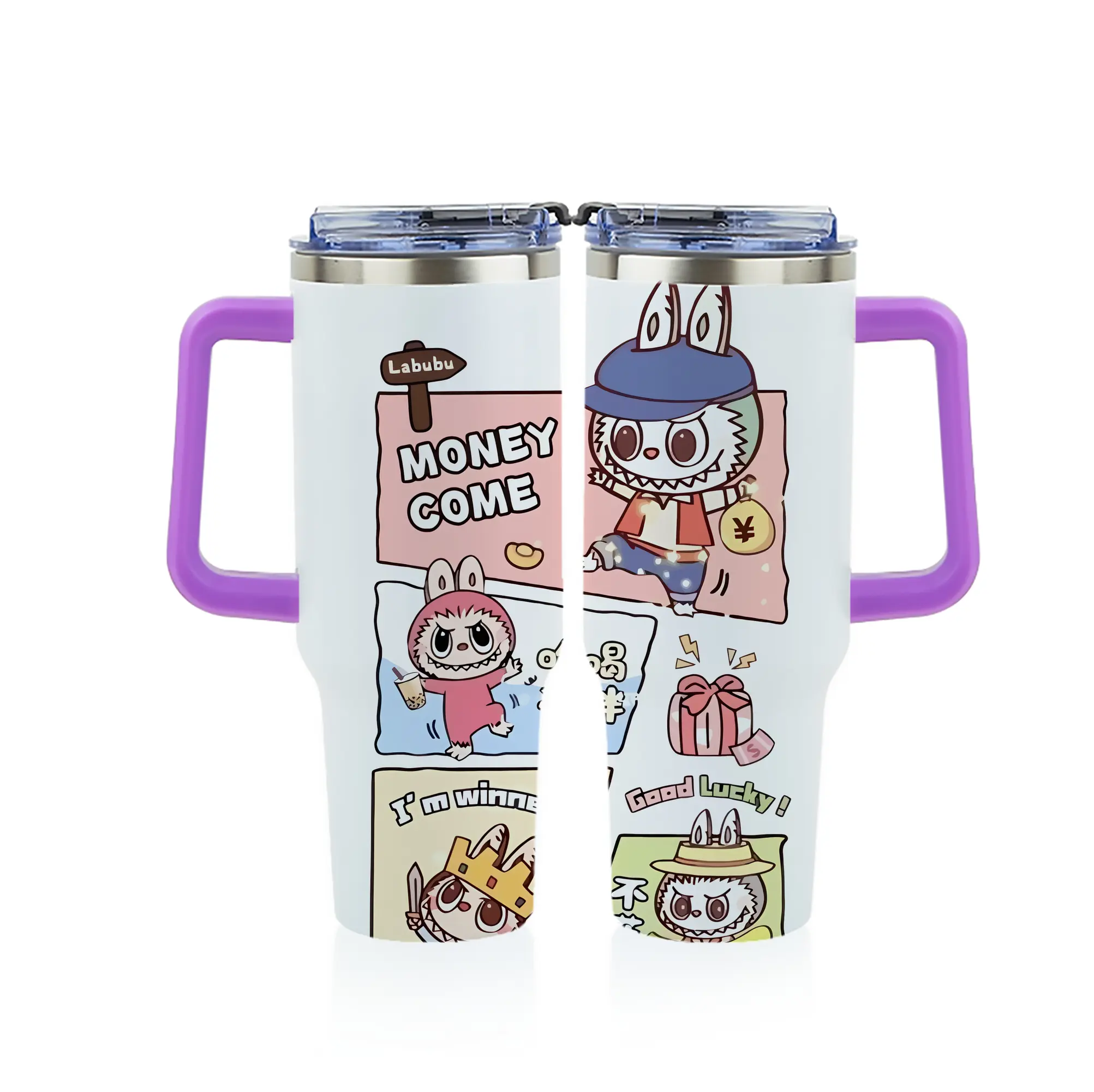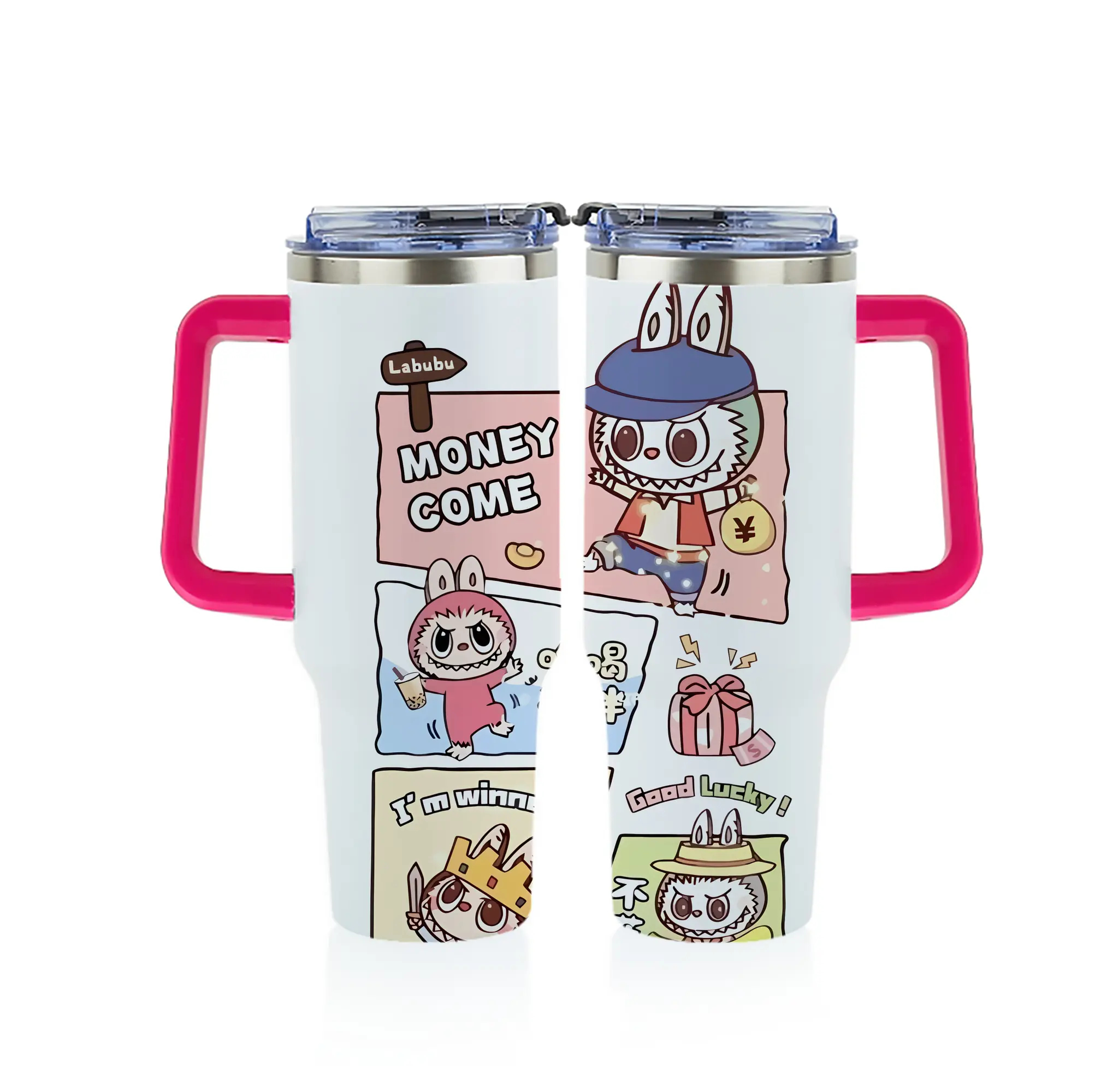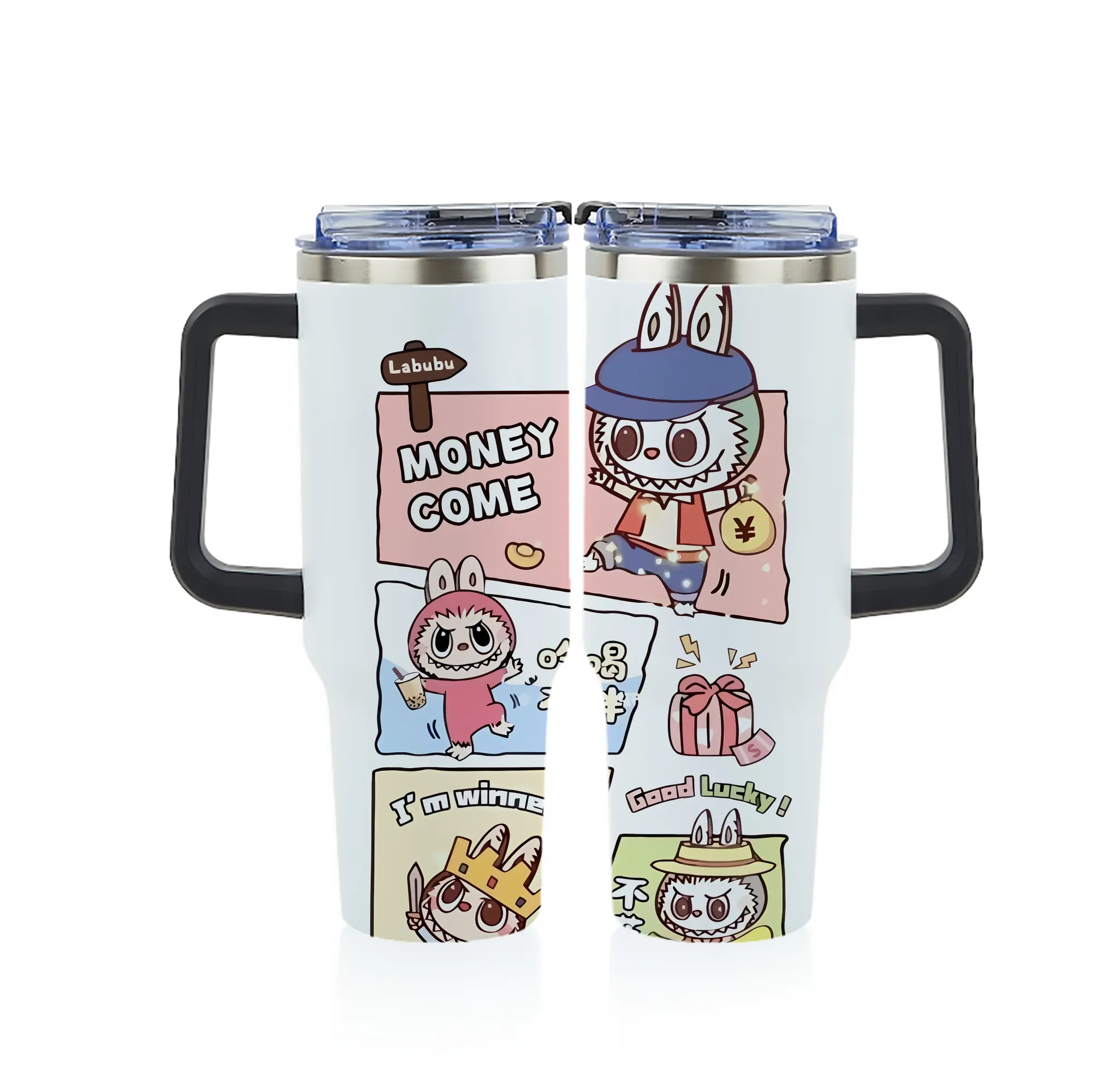 ラブブ グッズ モココ - 1200mL フルプリント車用タンブラー ・ 304ステンレス 内側 ・ 201ステンレス 外側 ・ 保温 保冷 ・ 通勤 ドライブ アウトドア用