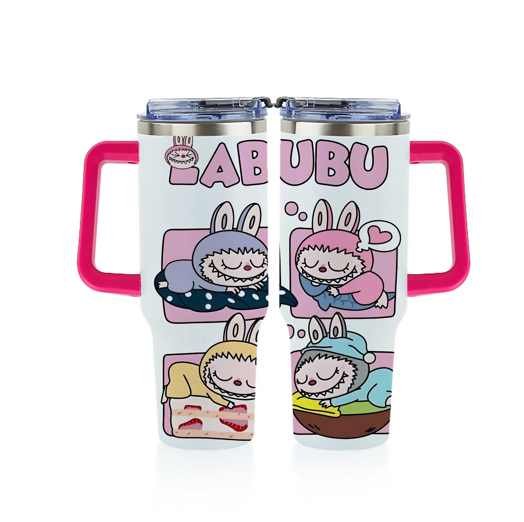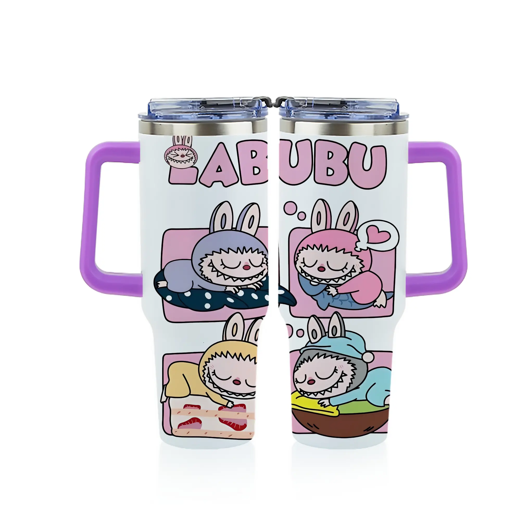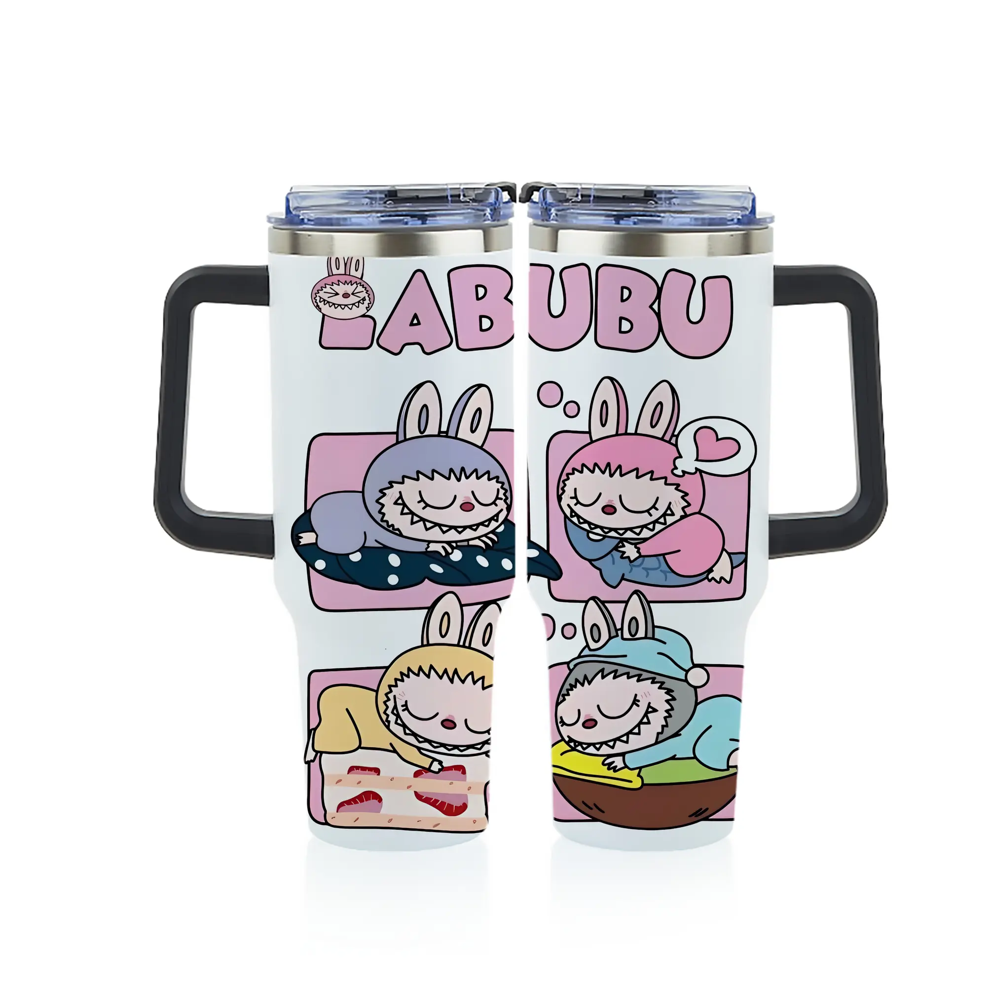 ラブブ グッズ モココ - 1200mL フルプリント車用タンブラー ・ 304ステンレス 内側 ・ 201ステンレス 外側 ・ 保温 保冷 ・ 通勤 ドライブ アウトドア用