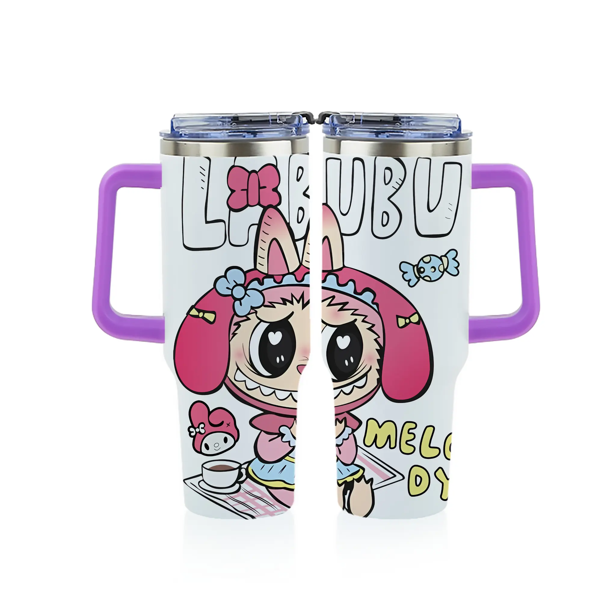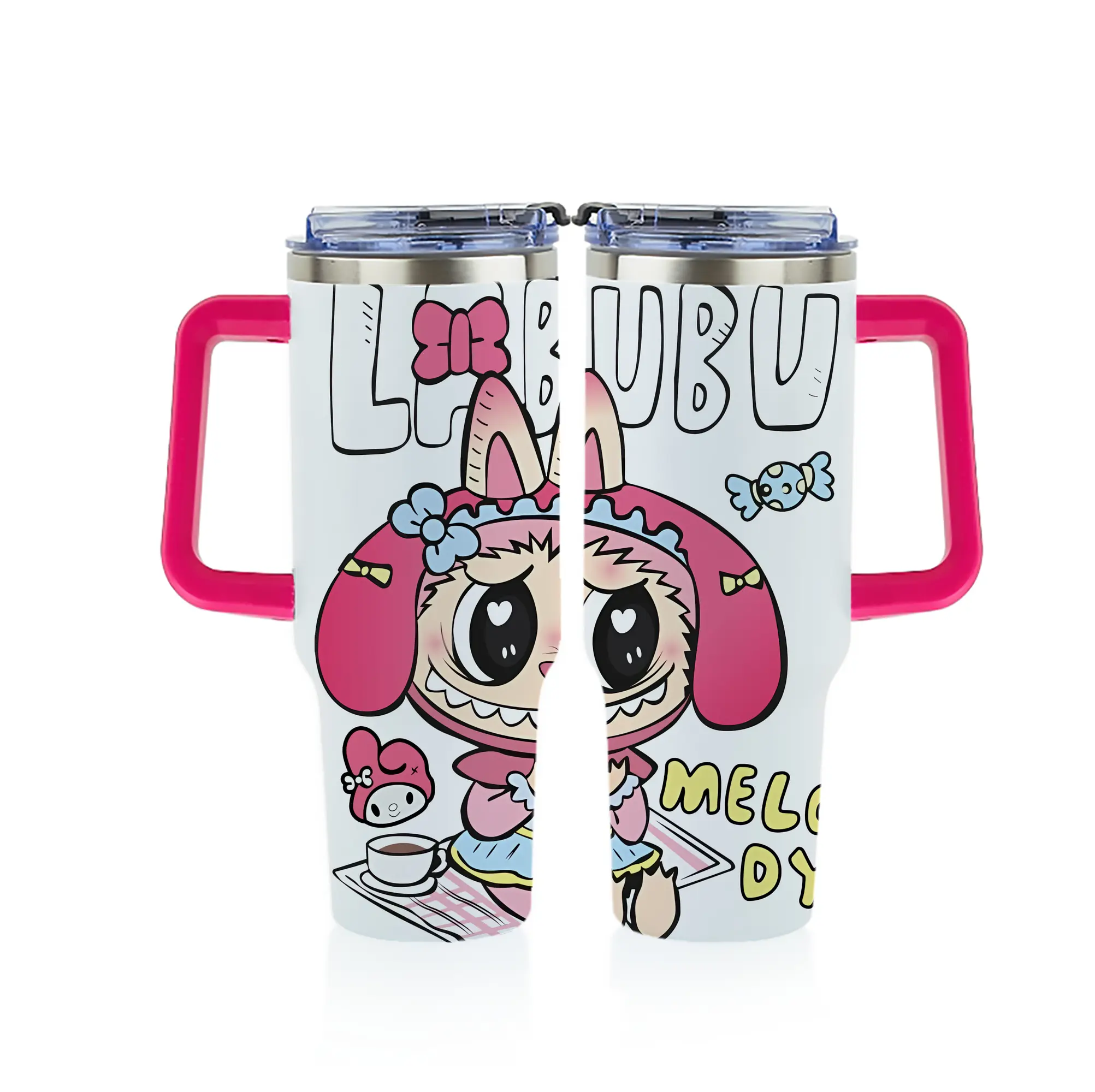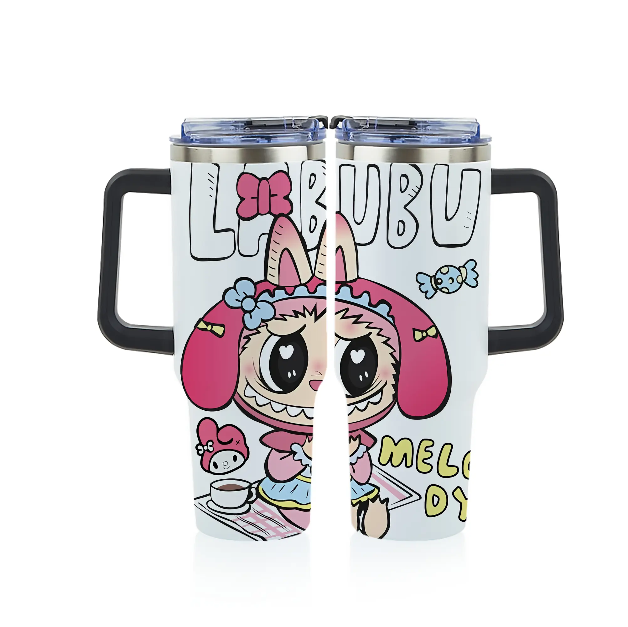 ラブブ グッズ モココ - 1200mL フルプリント車用タンブラー ・ 304ステンレス 内側 ・ 201ステンレス 外側 ・ 保温 保冷 ・ 通勤 ドライブ アウトドア用