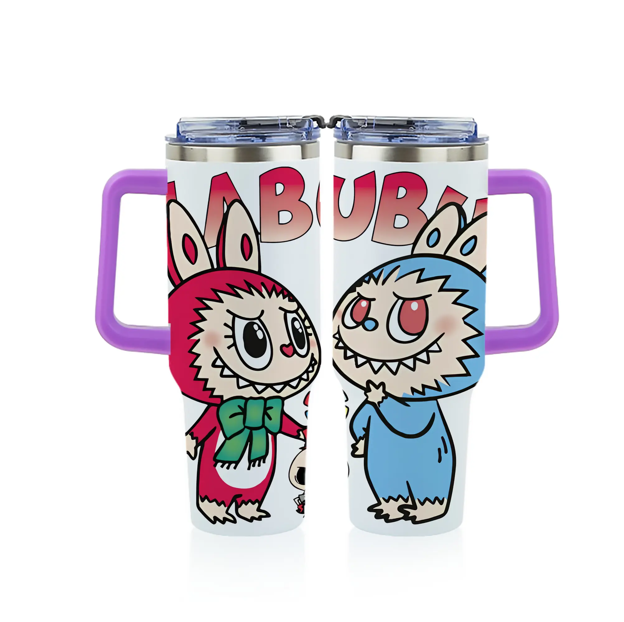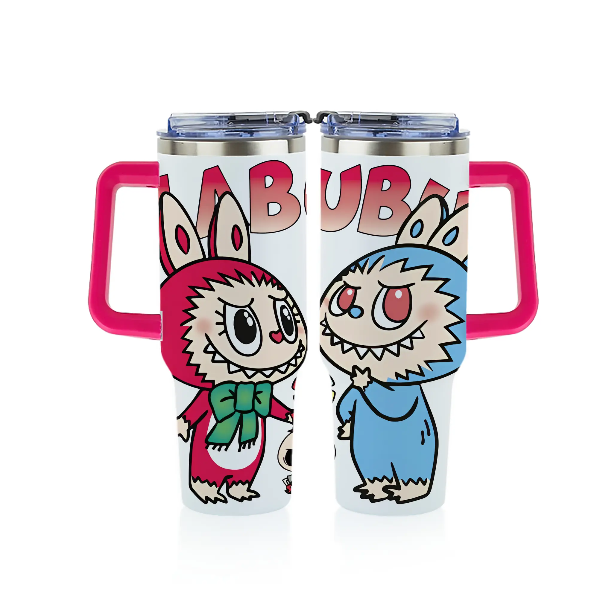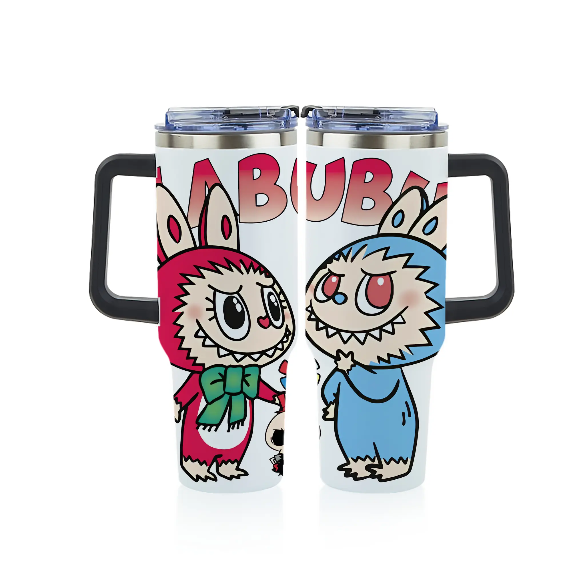 ラブブ グッズ モココ - 1200mL フルプリント車用タンブラー ・ 304ステンレス 内側 ・ 201ステンレス 外側 ・ 保温 保冷 ・ 通勤 ドライブ アウトドア用