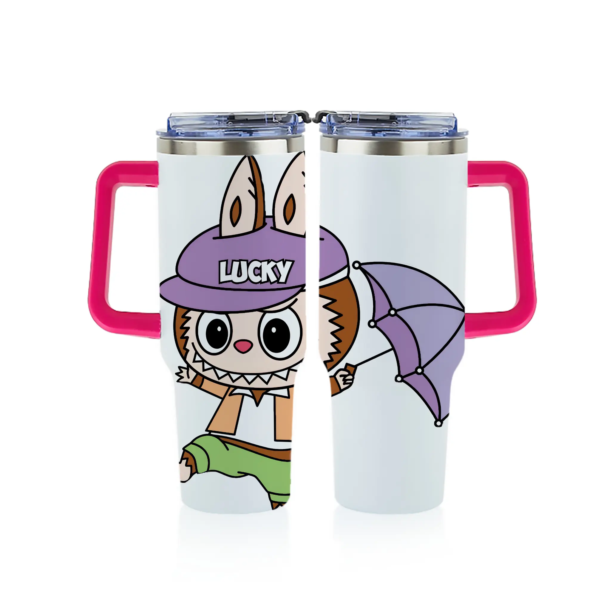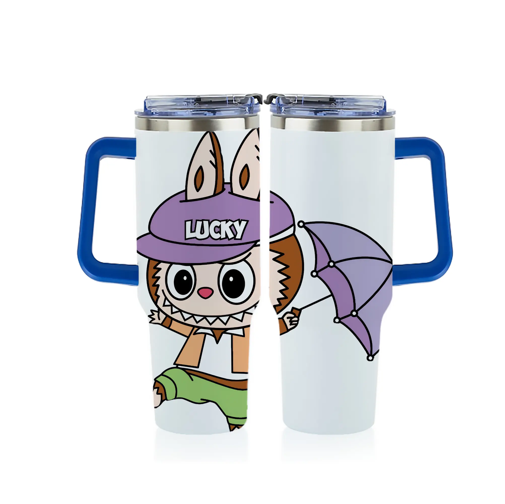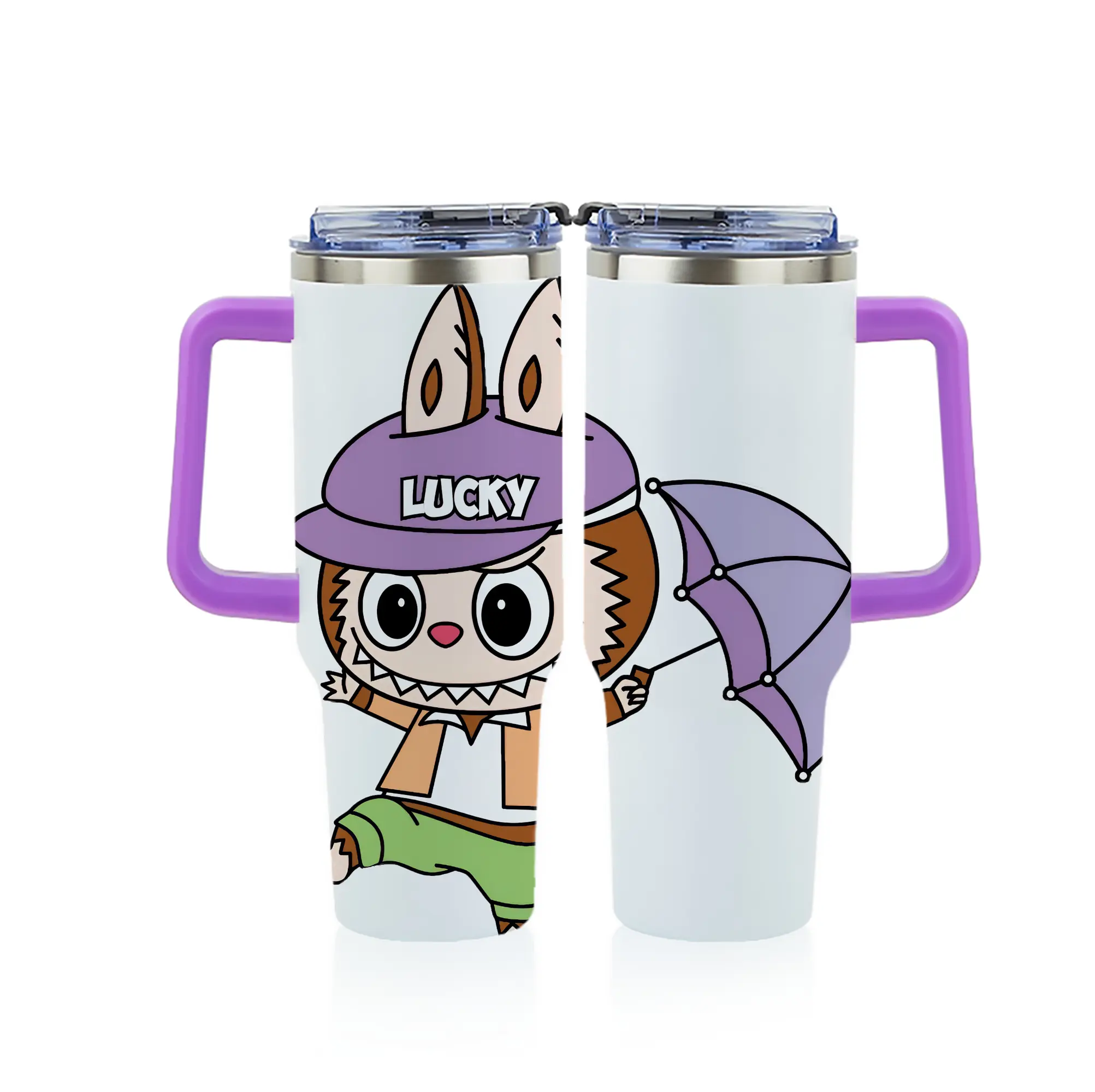ラブブ グッズ モココ - 1200mL フルプリント車用タンブラー ・ 304ステンレス 内側 ・ 201ステンレス 外側 ・ 保温 保冷 ・ 通勤 ドライブ アウトドア用