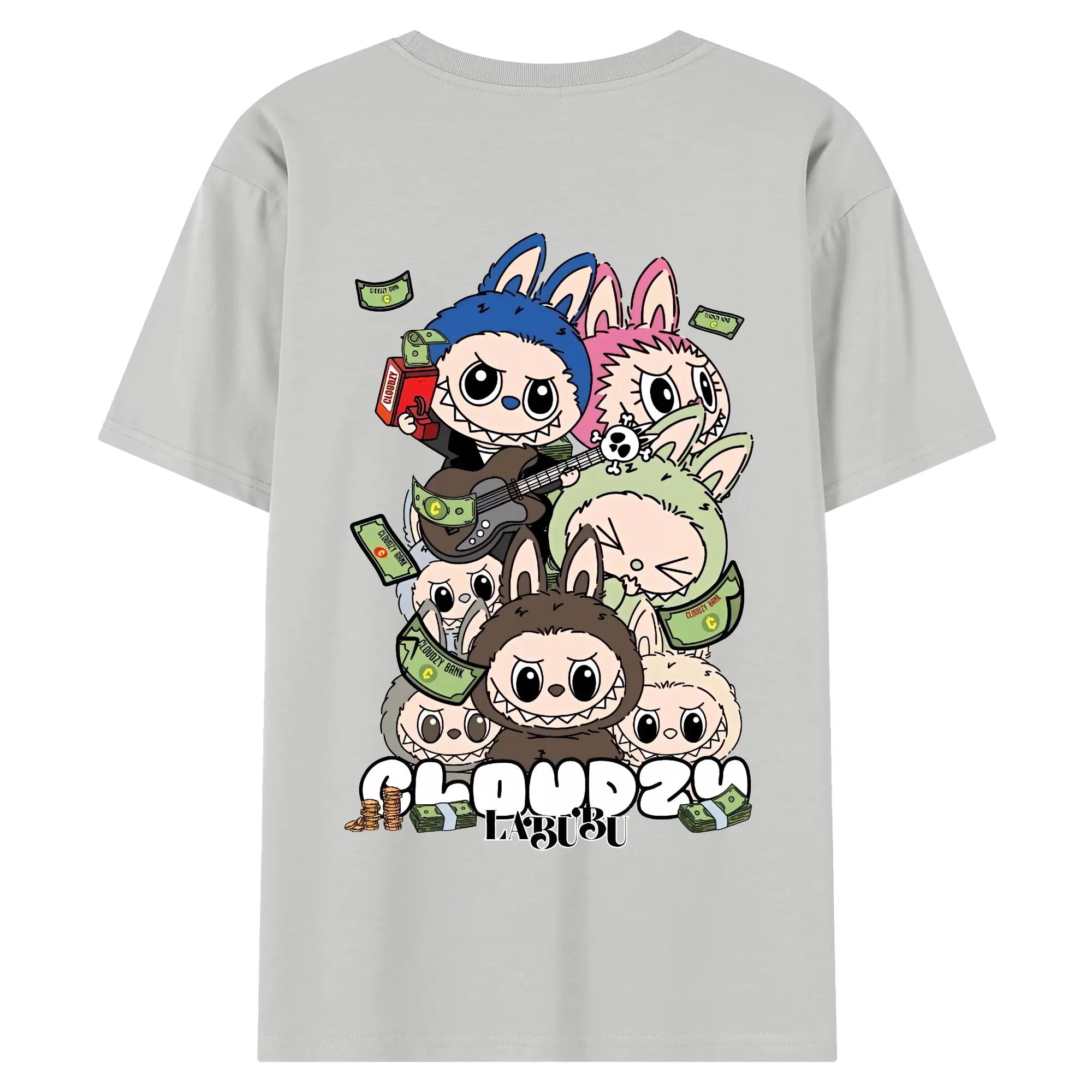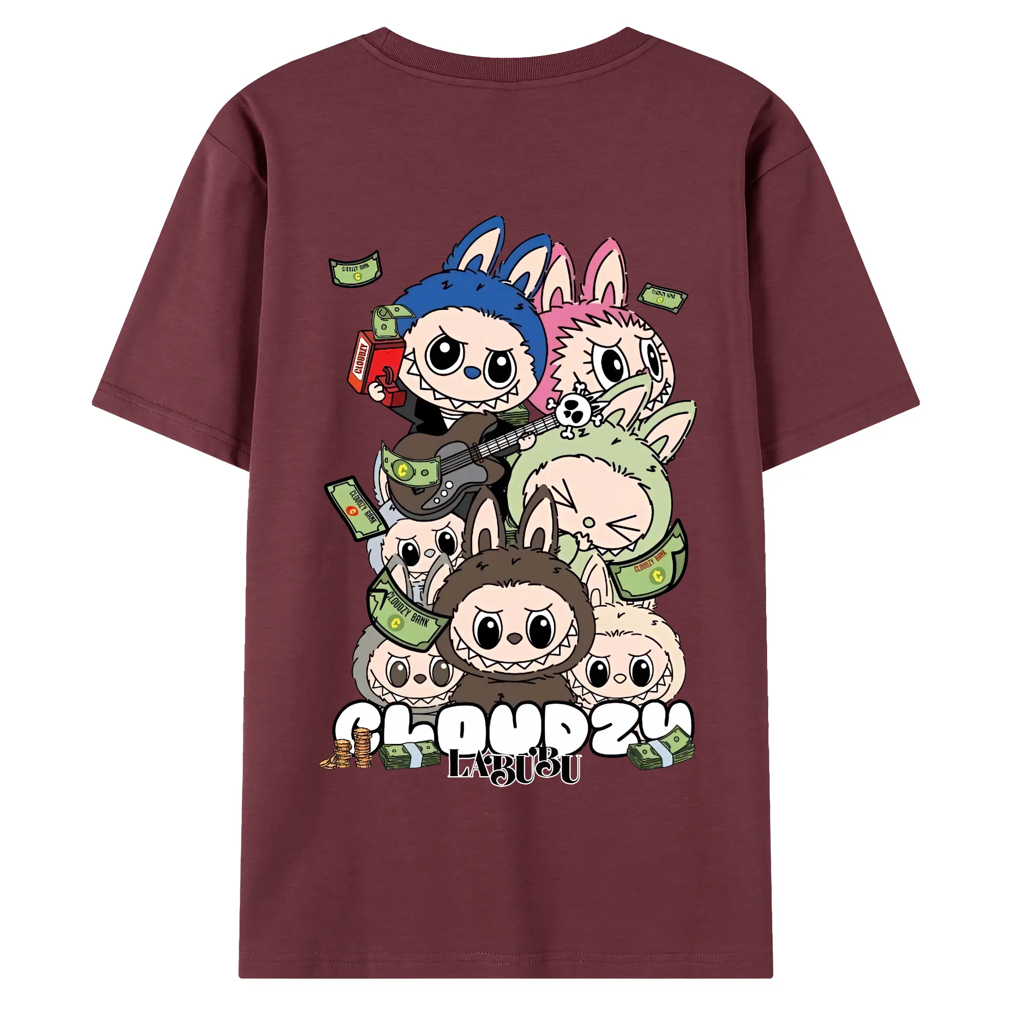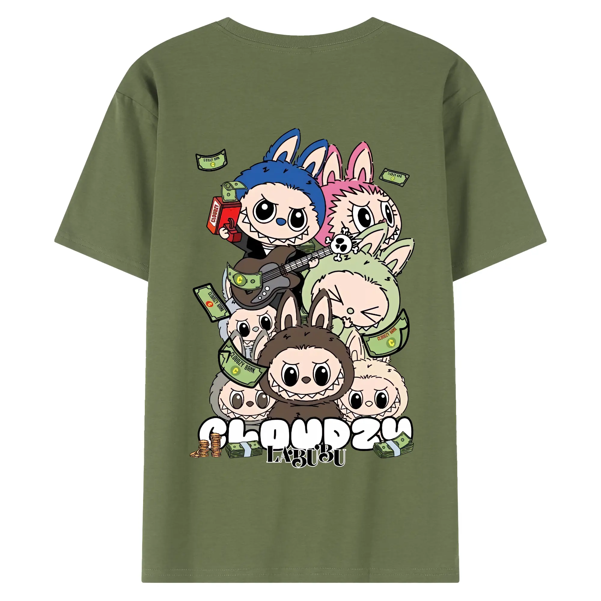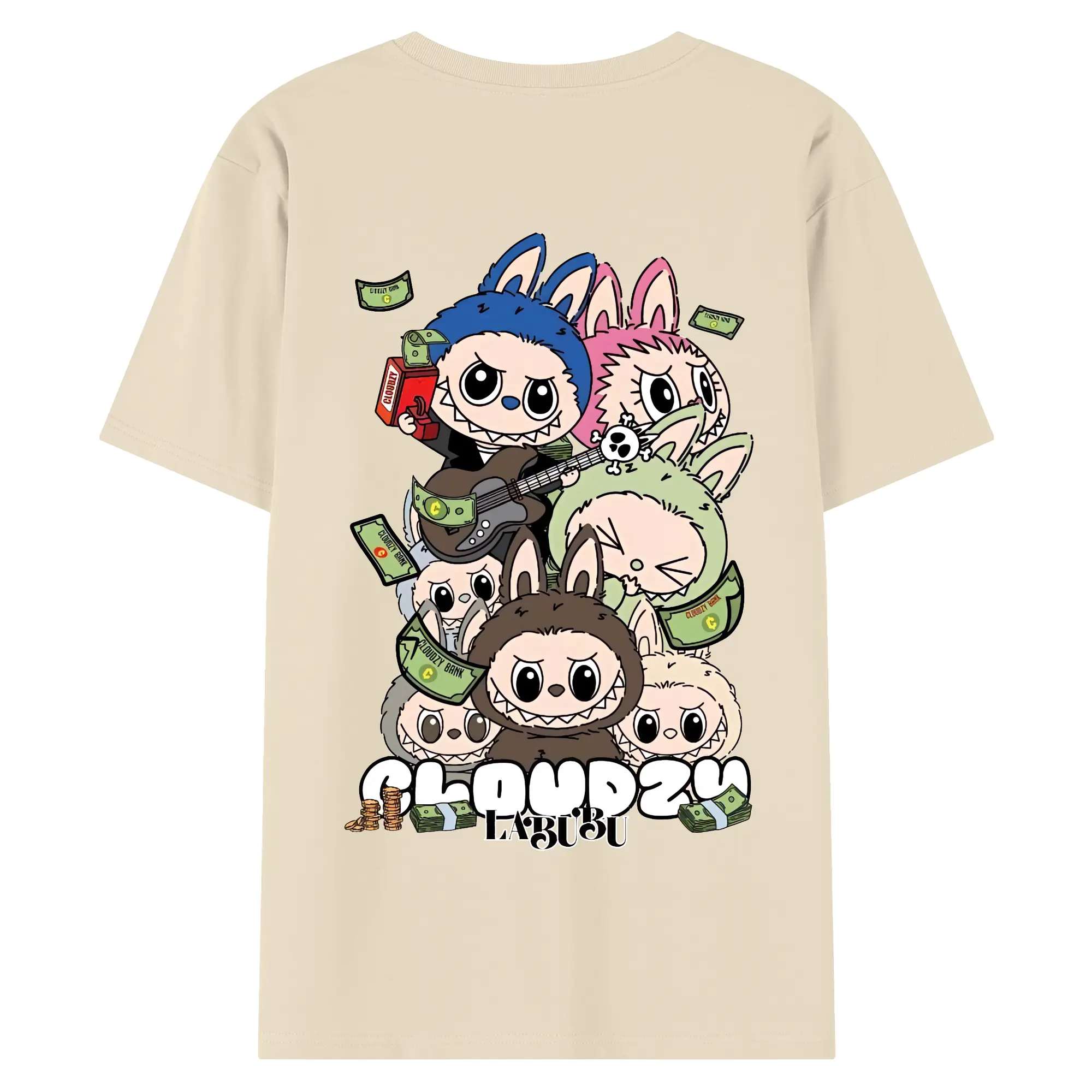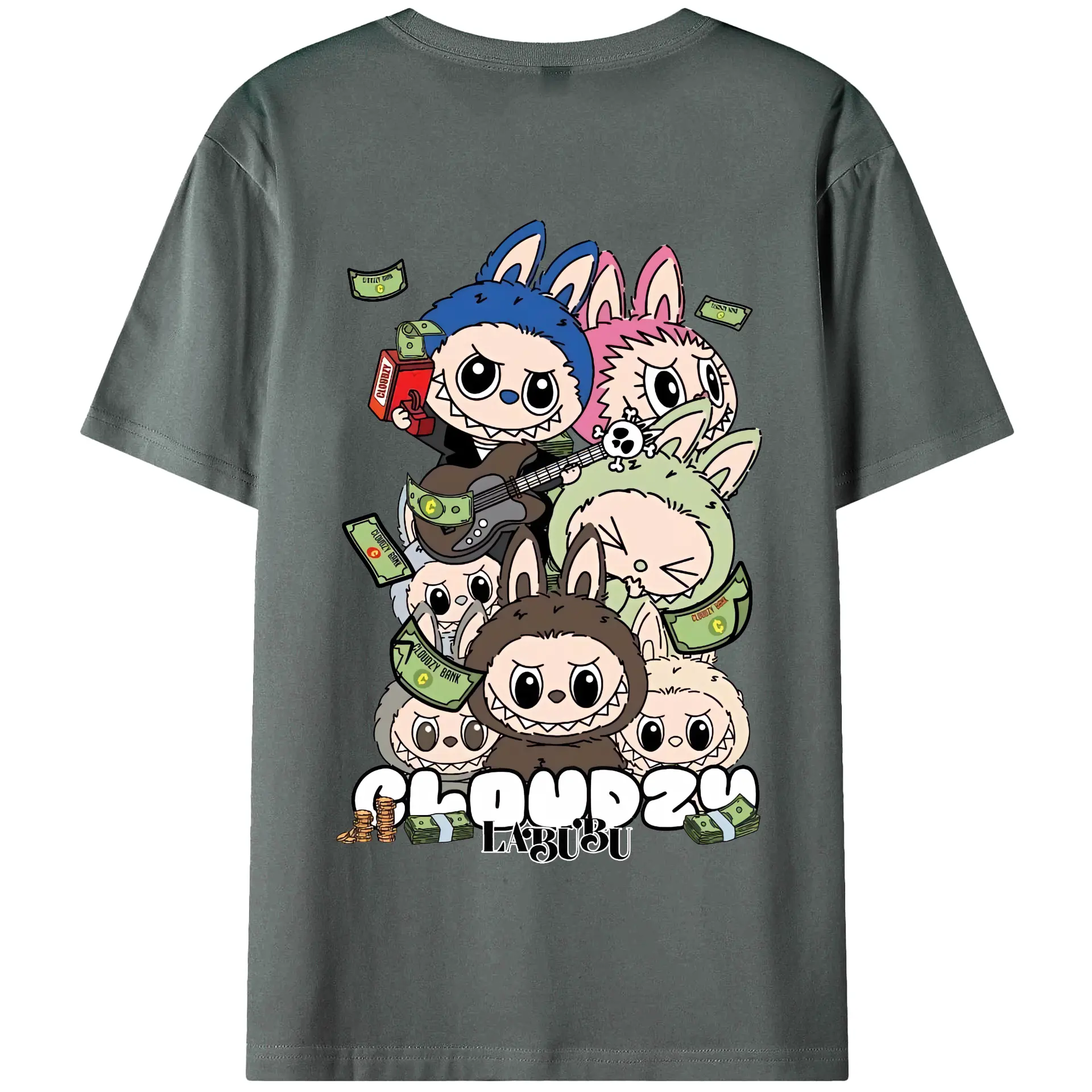 ラブブ グッズ モココ - 綿100% ヴィンテージ風 半袖Tシャツ ・ 背面プリント ・ 柔らか肌触り ・ 通気性 快適 ・ スポーツ カジュアル 外出用