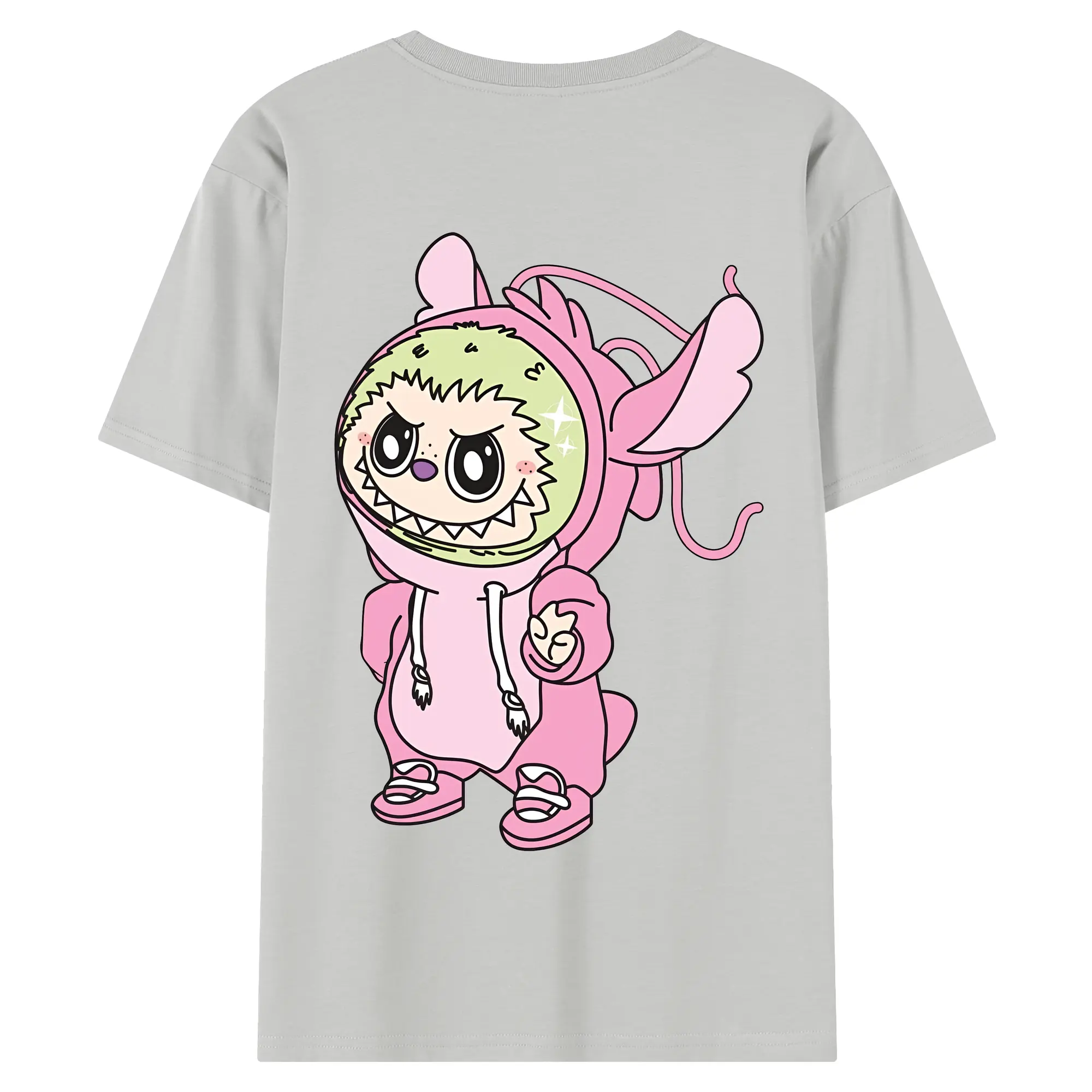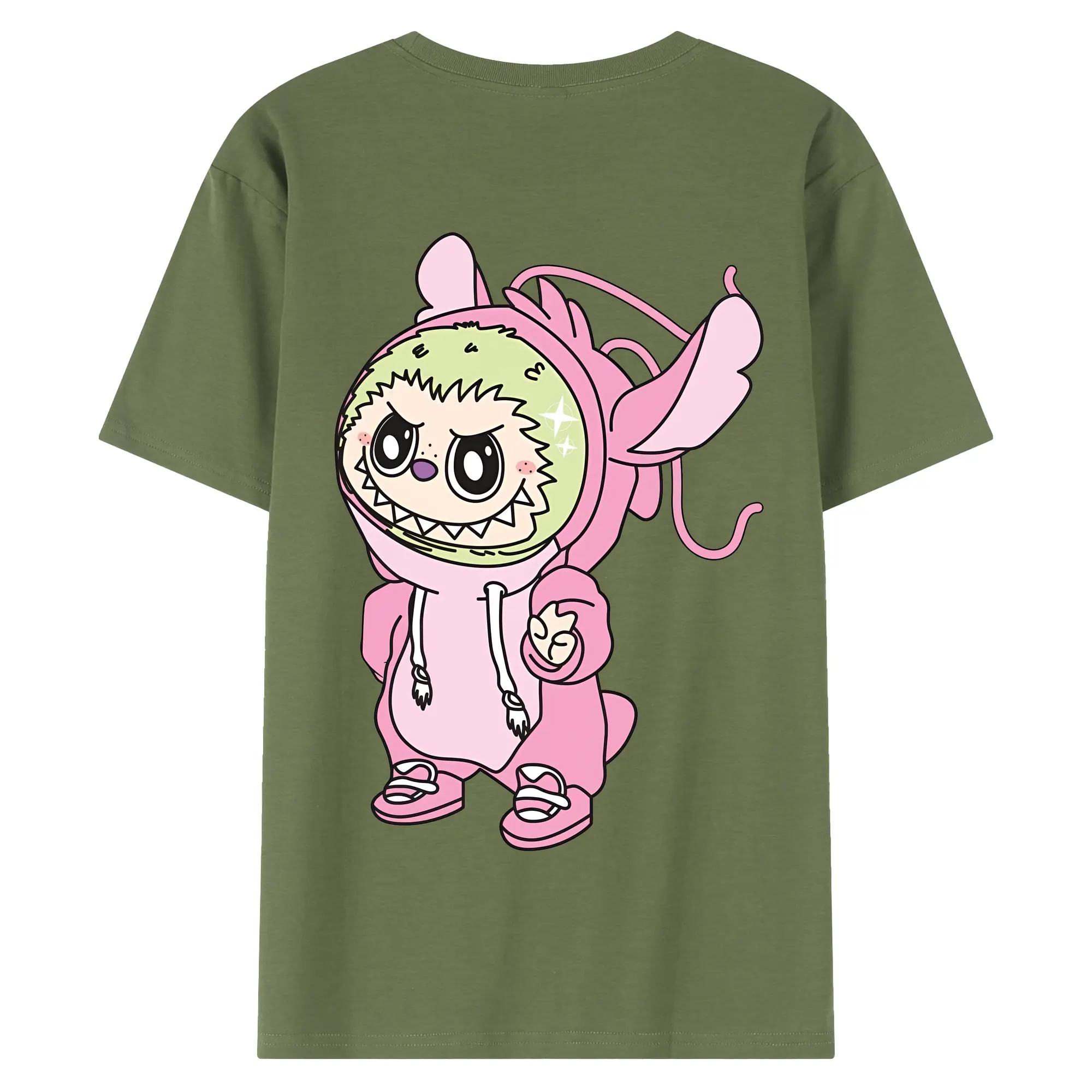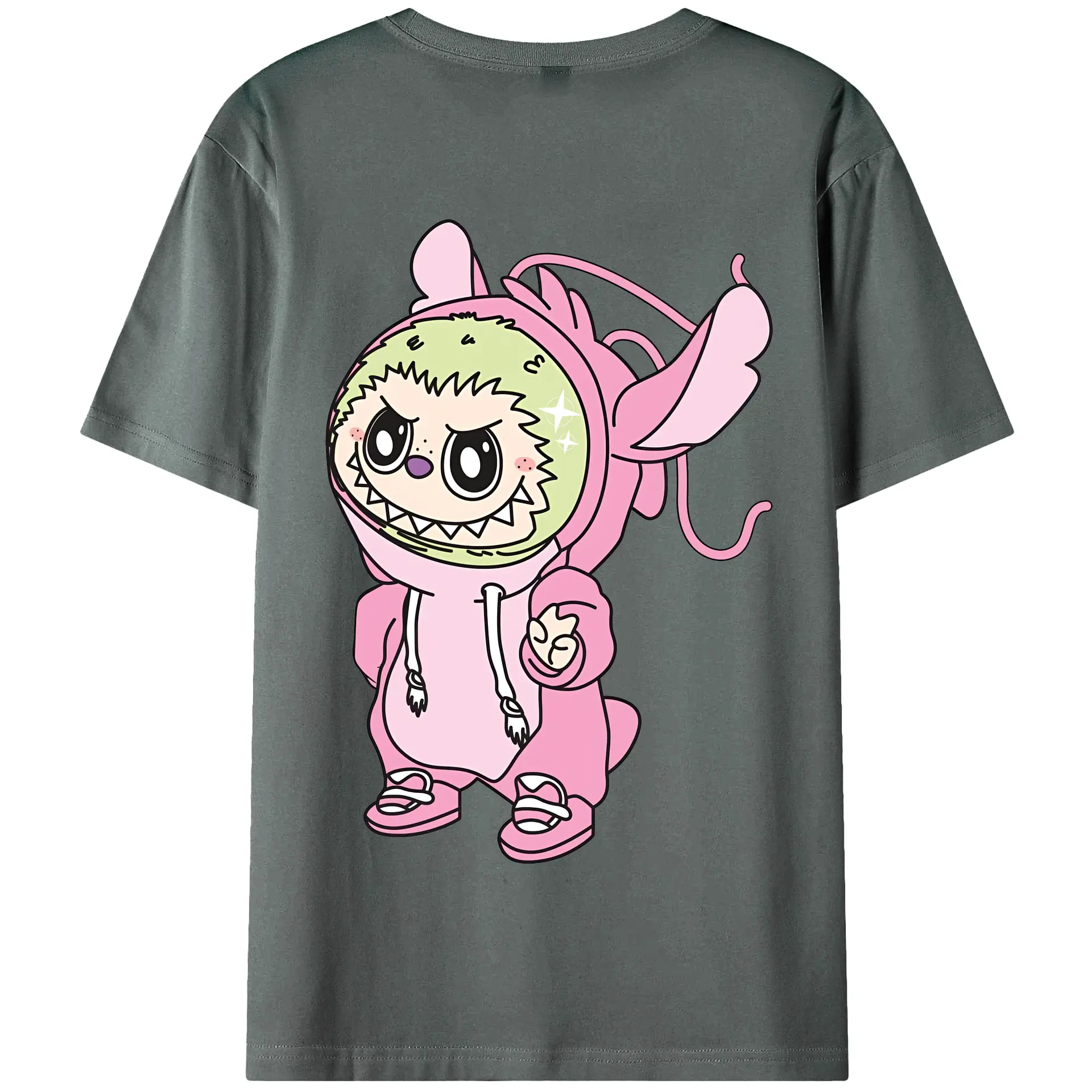 ラブブ グッズ モココ - 綿100% ヴィンテージ風 半袖Tシャツ ・ 背面プリント ・ 柔らか肌触り ・ 通気性 快適 ・ スポーツ カジュアル 外出用