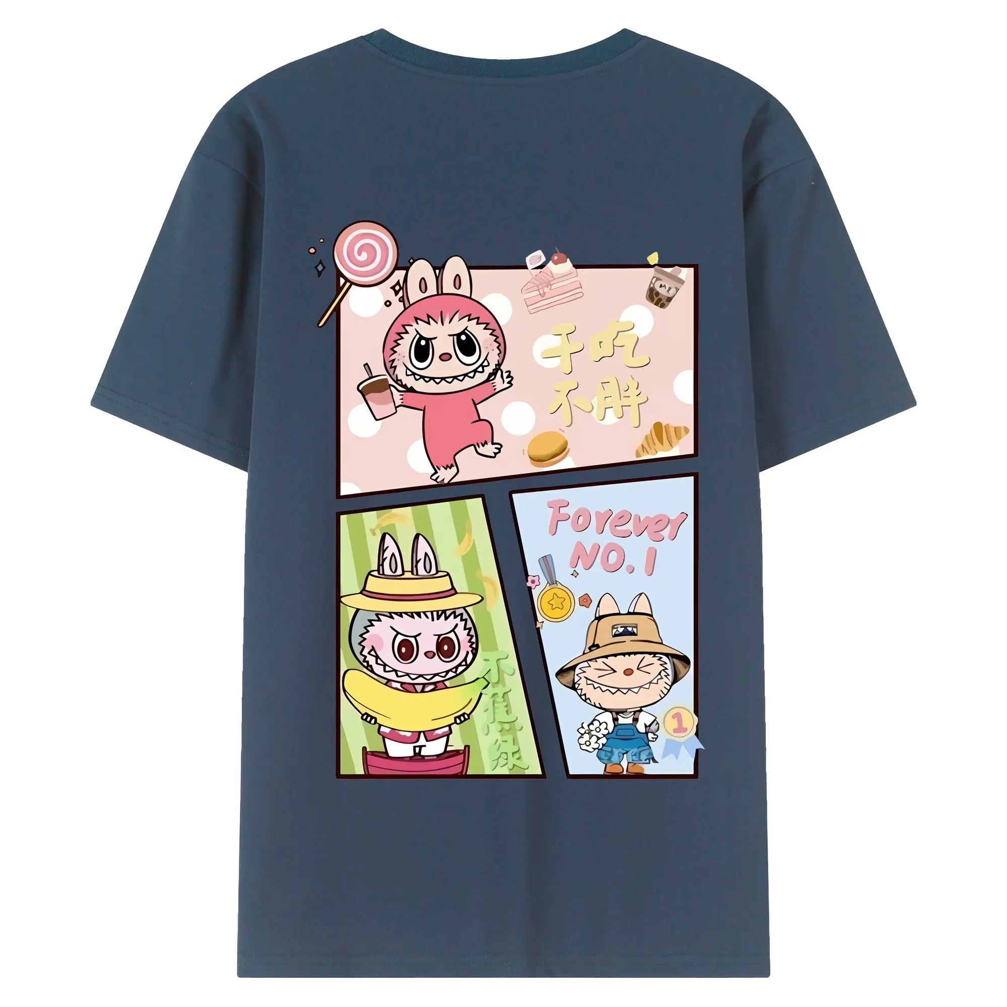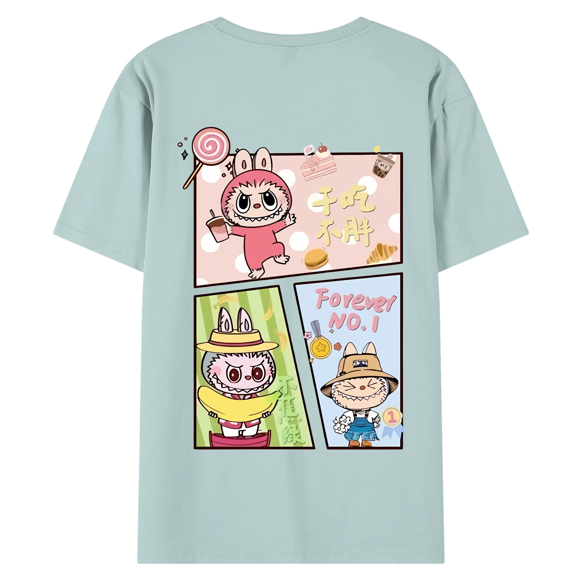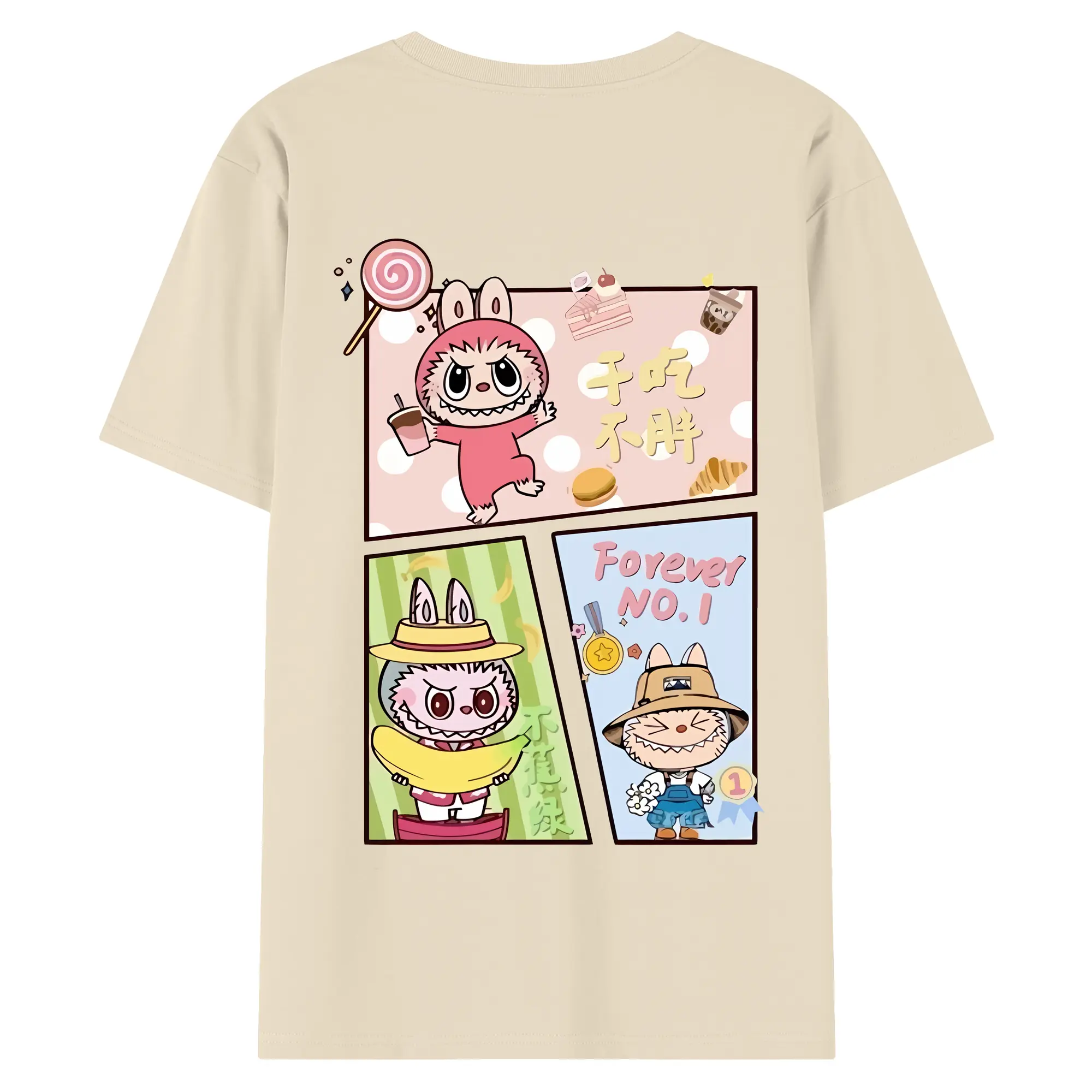 ラブブ グッズ モココ - 綿100% ヴィンテージ風 半袖Tシャツ ・ 背面プリント ・ 柔らか肌触り ・ 通気性 快適 ・ スポーツ カジュアル 外出用