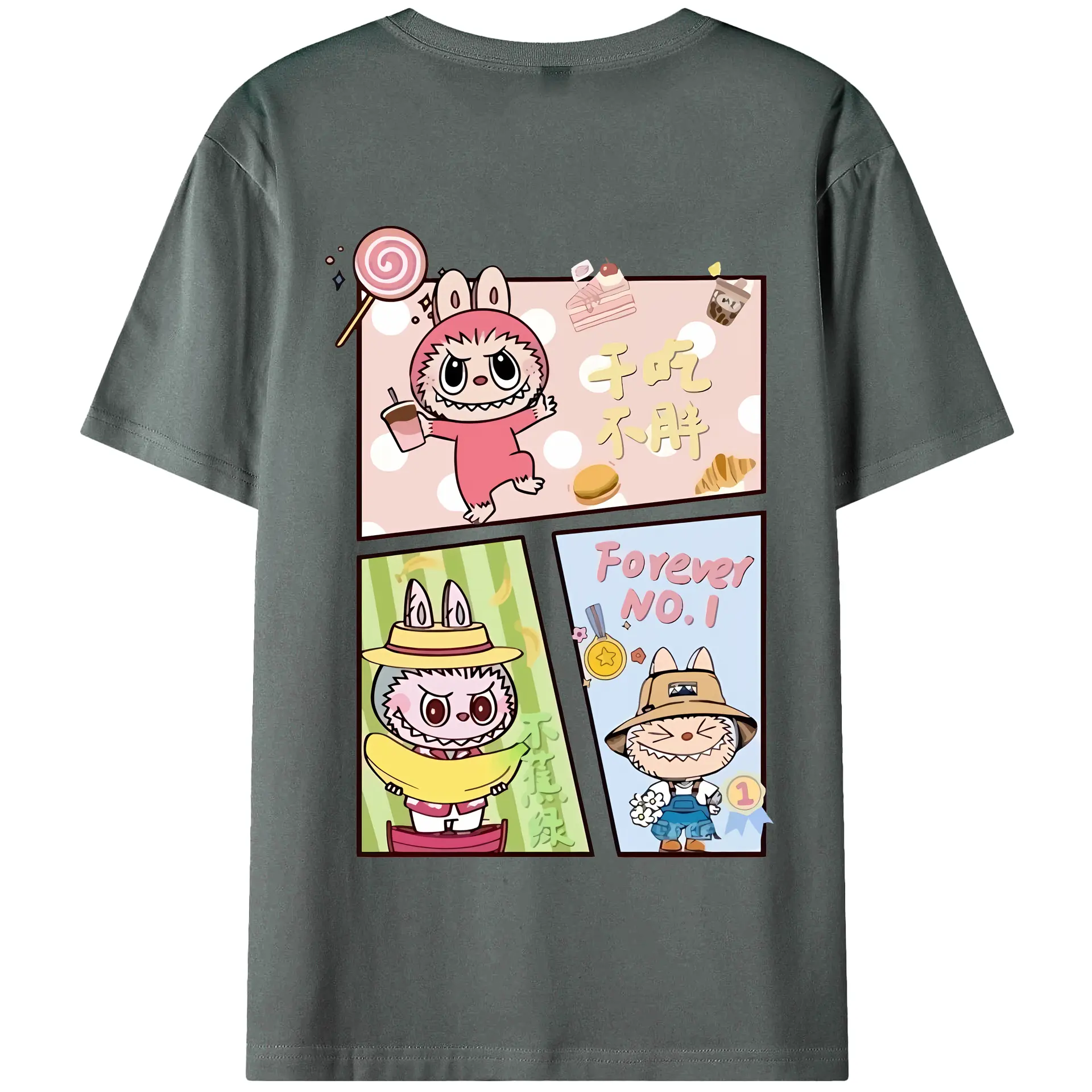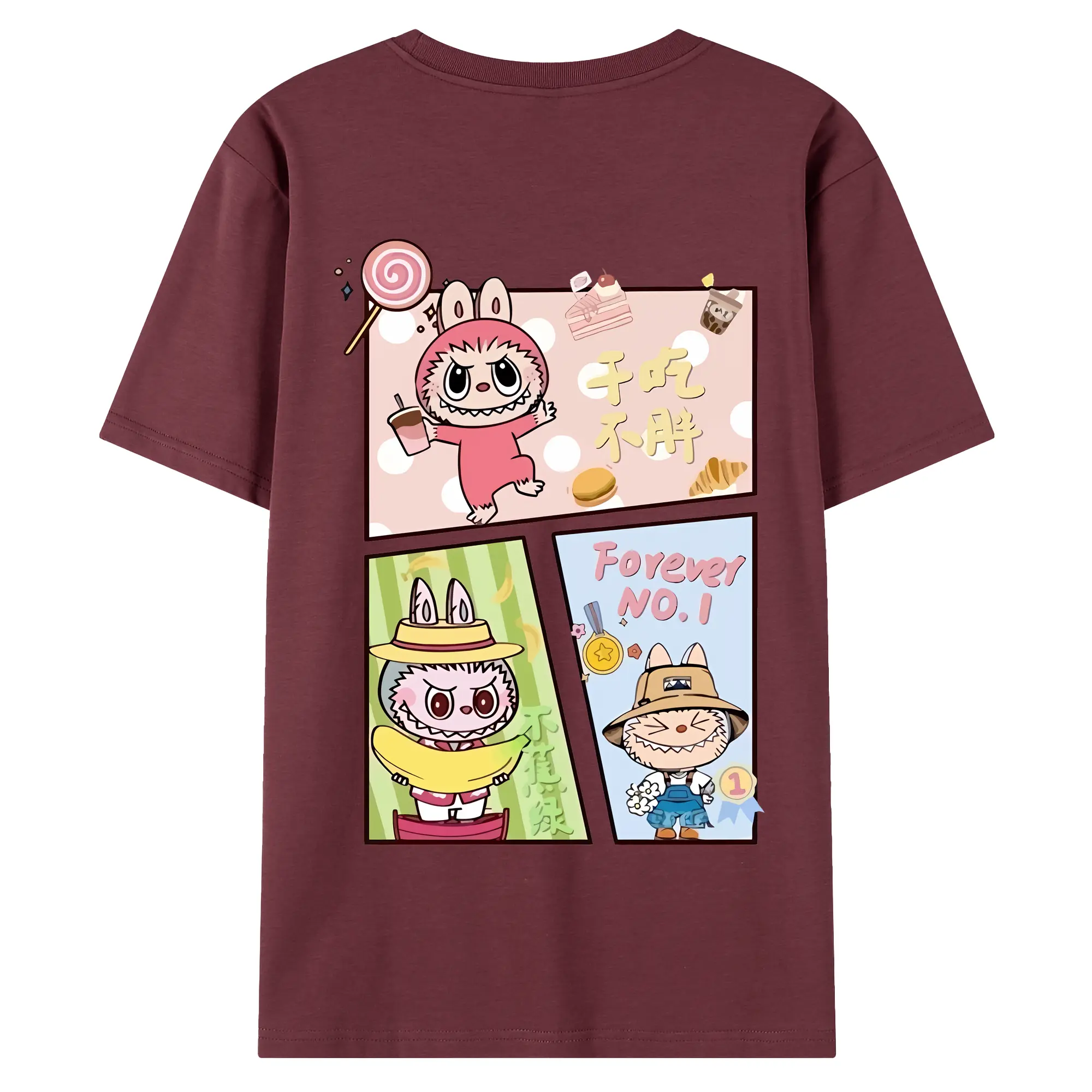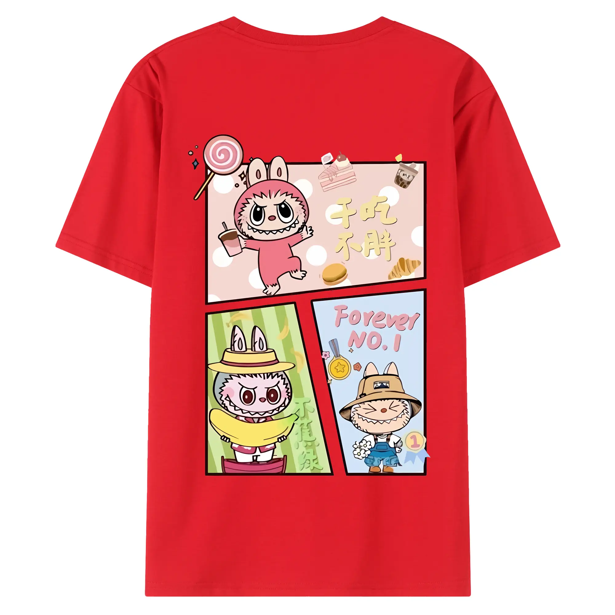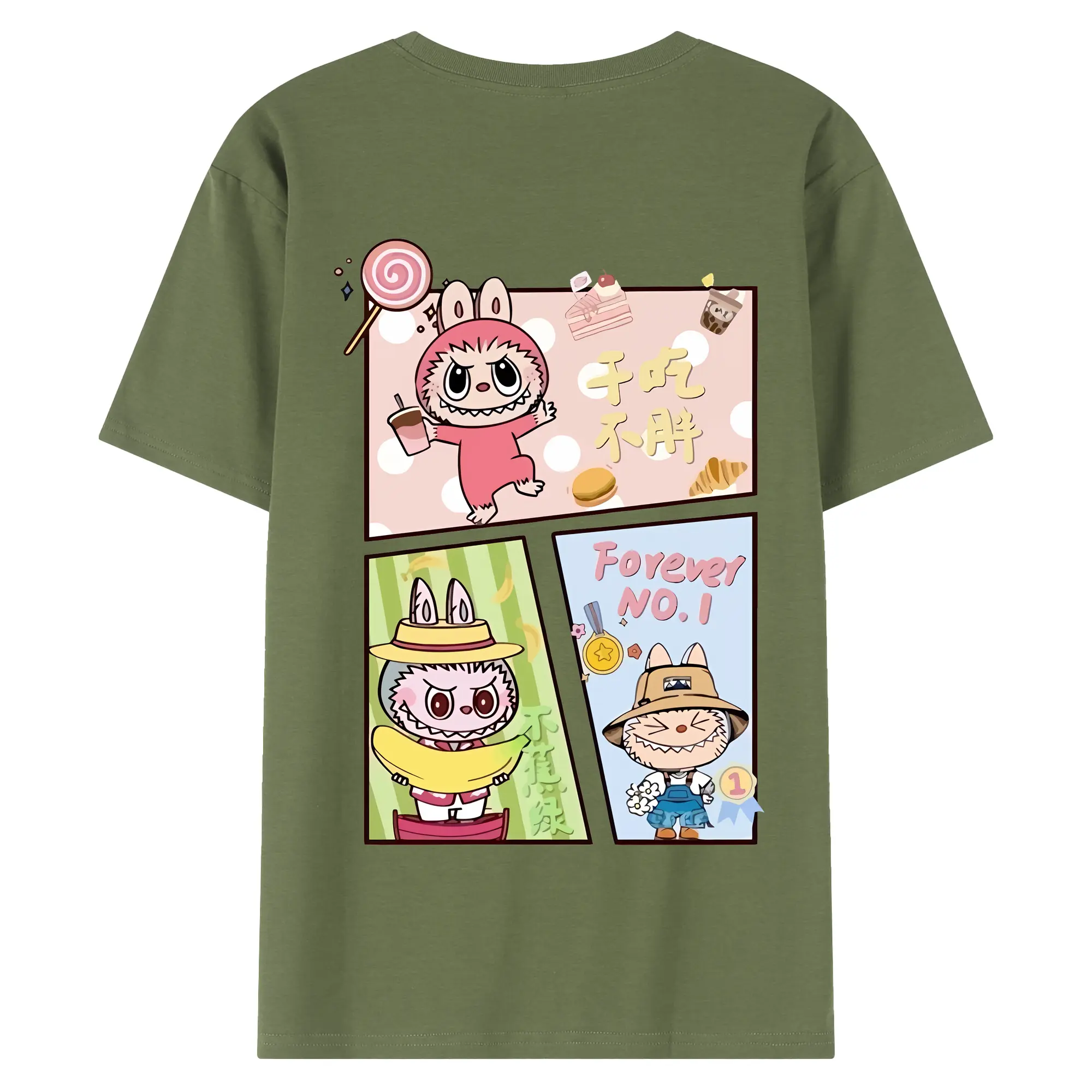 ラブブ グッズ モココ - 綿100% ヴィンテージ風 半袖Tシャツ ・ 背面プリント ・ 柔らか肌触り ・ 通気性 快適 ・ スポーツ カジュアル 外出用