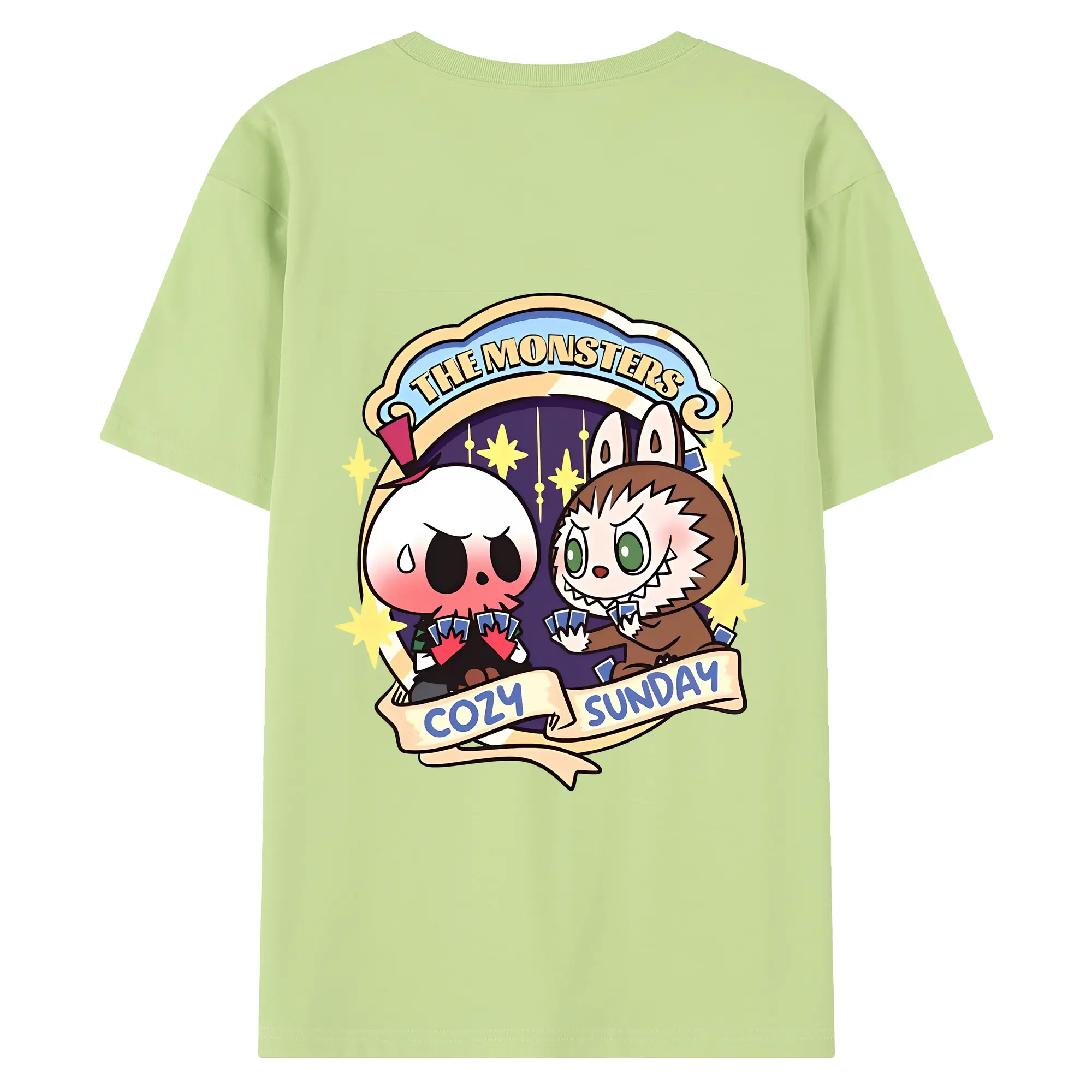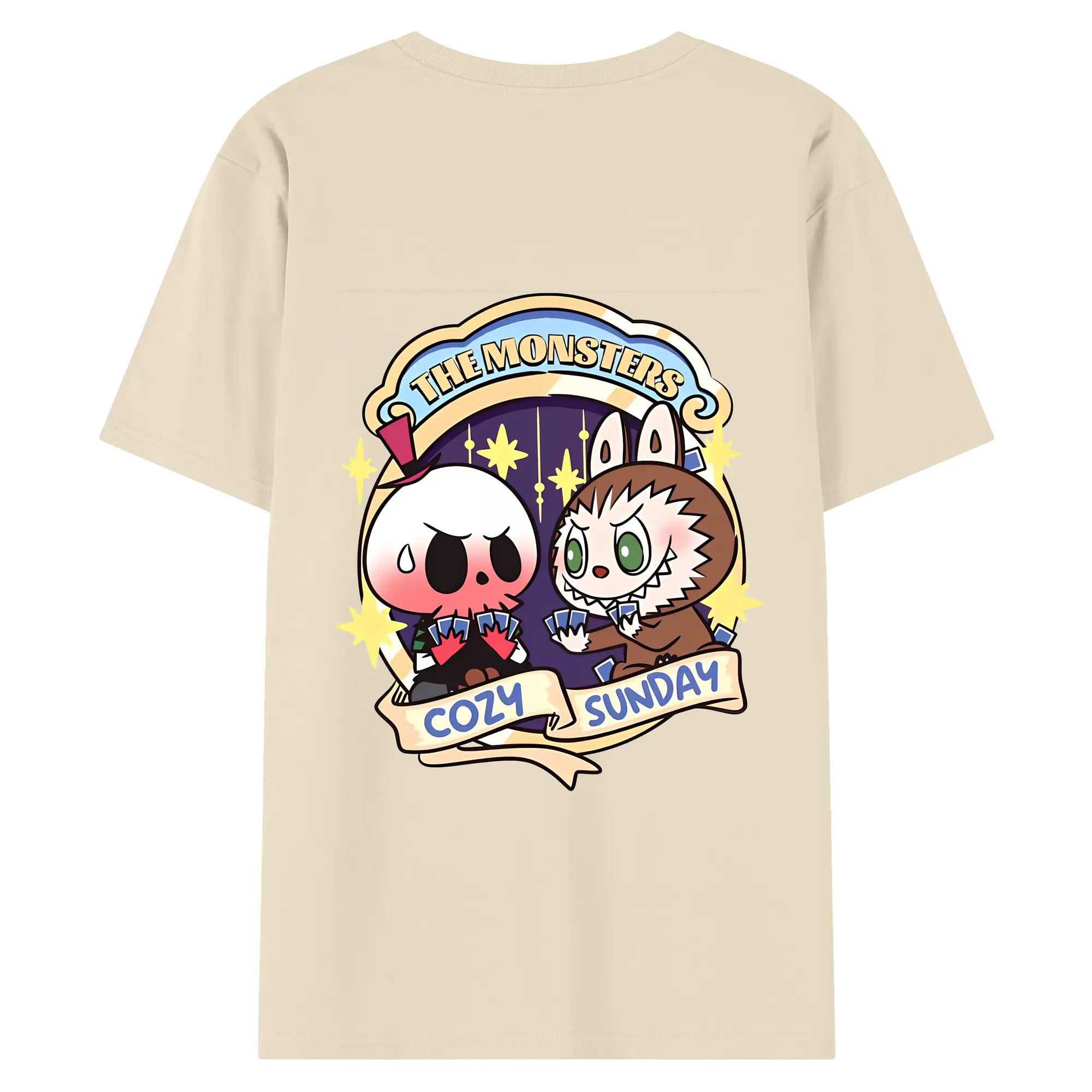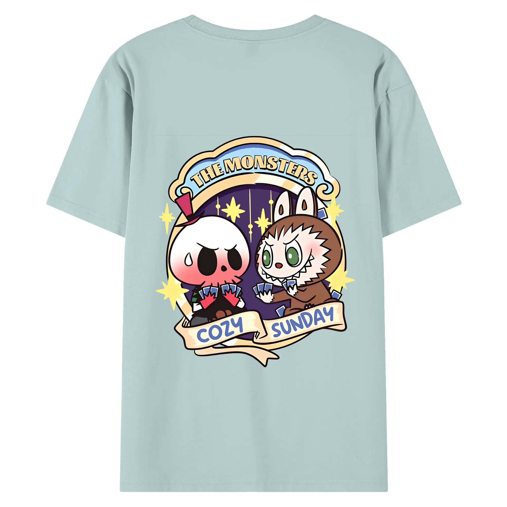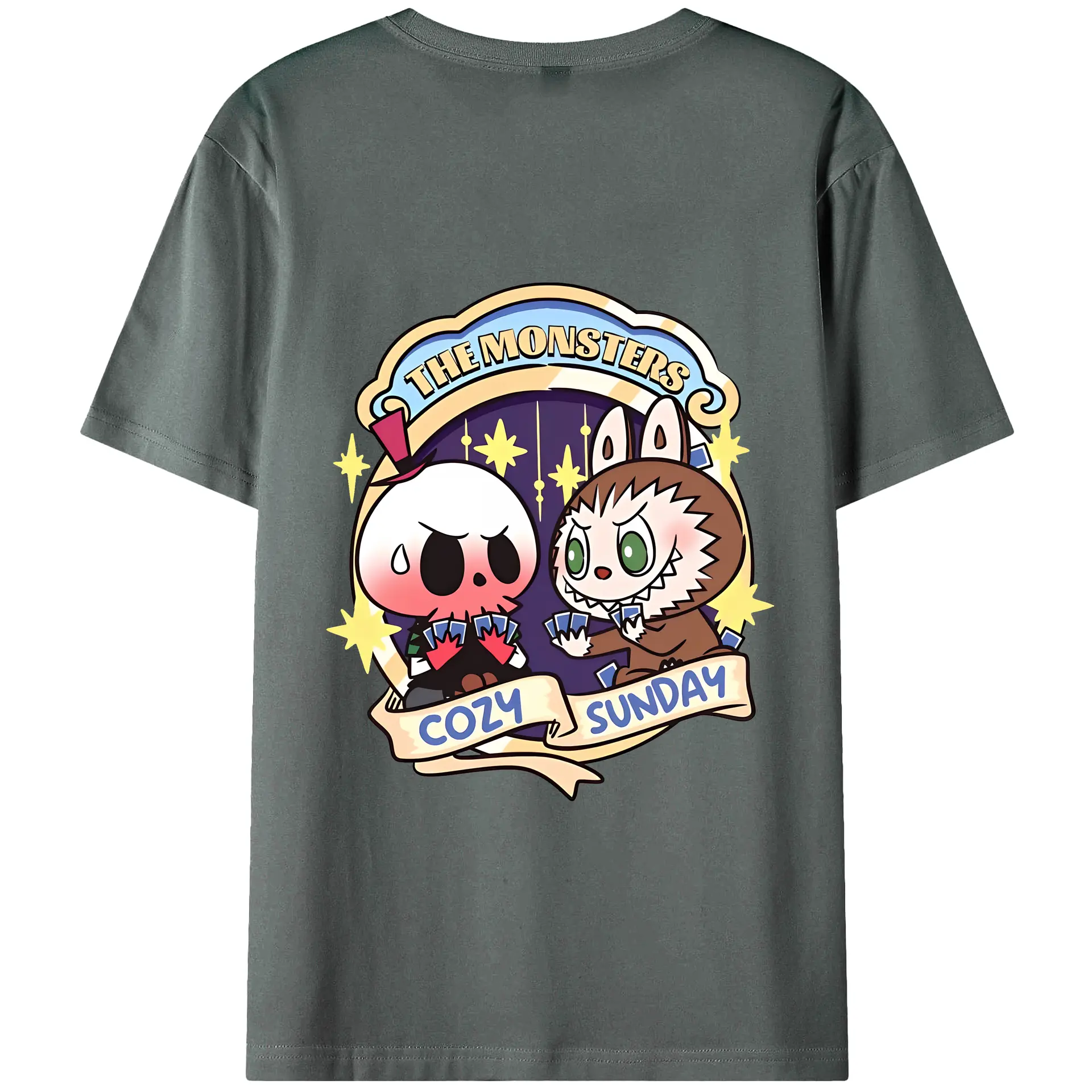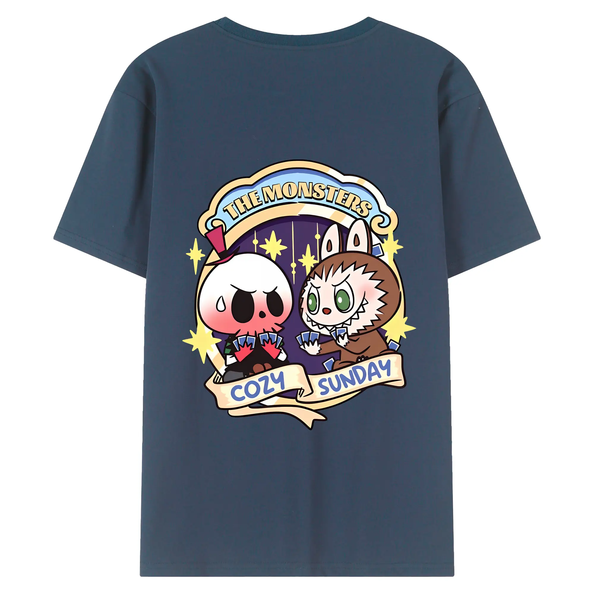 ラブブ グッズ モココ - 綿100% ヴィンテージ風 半袖Tシャツ ・ 背面プリント ・ 柔らか肌触り ・ 通気性 快適 ・ スポーツ カジュアル 外出用