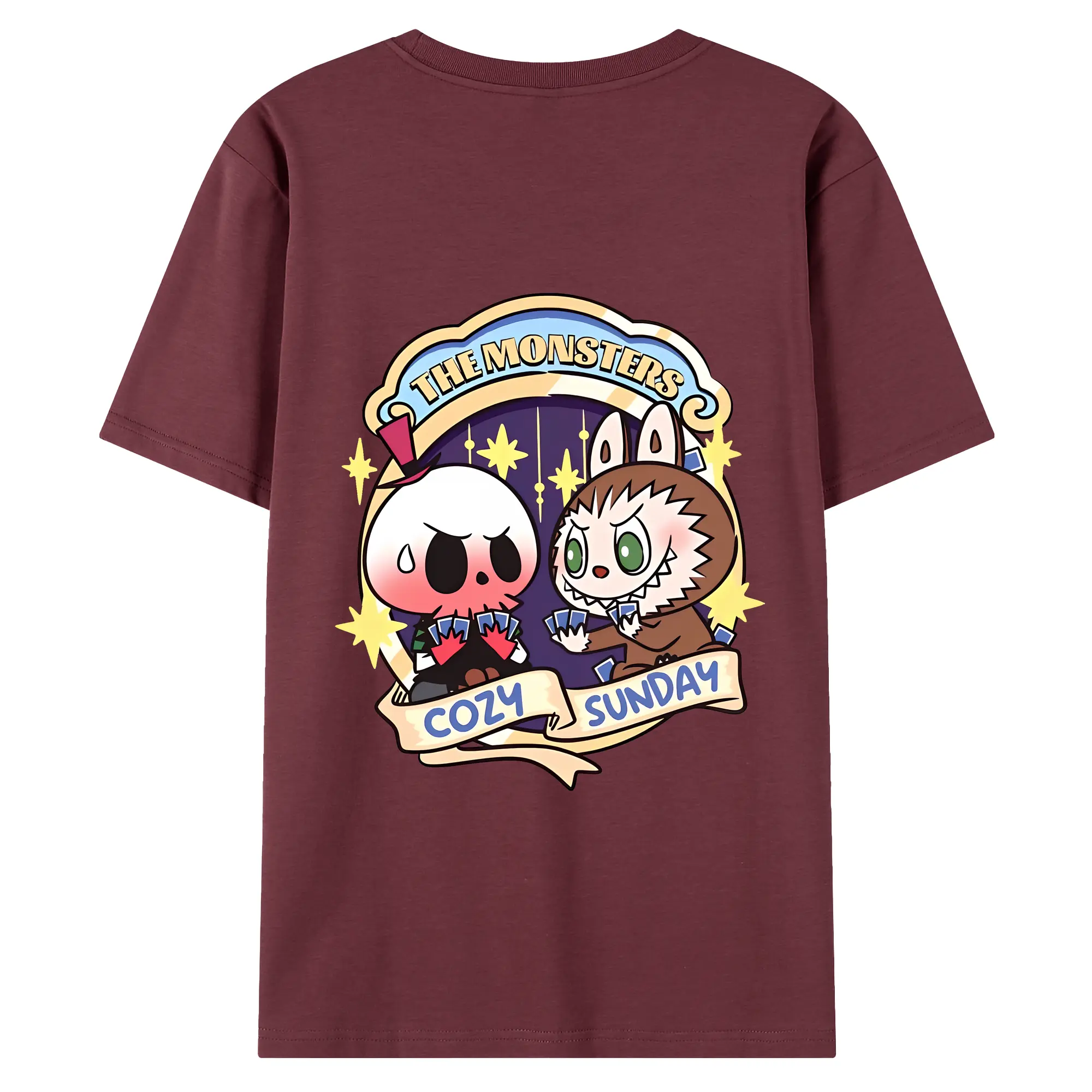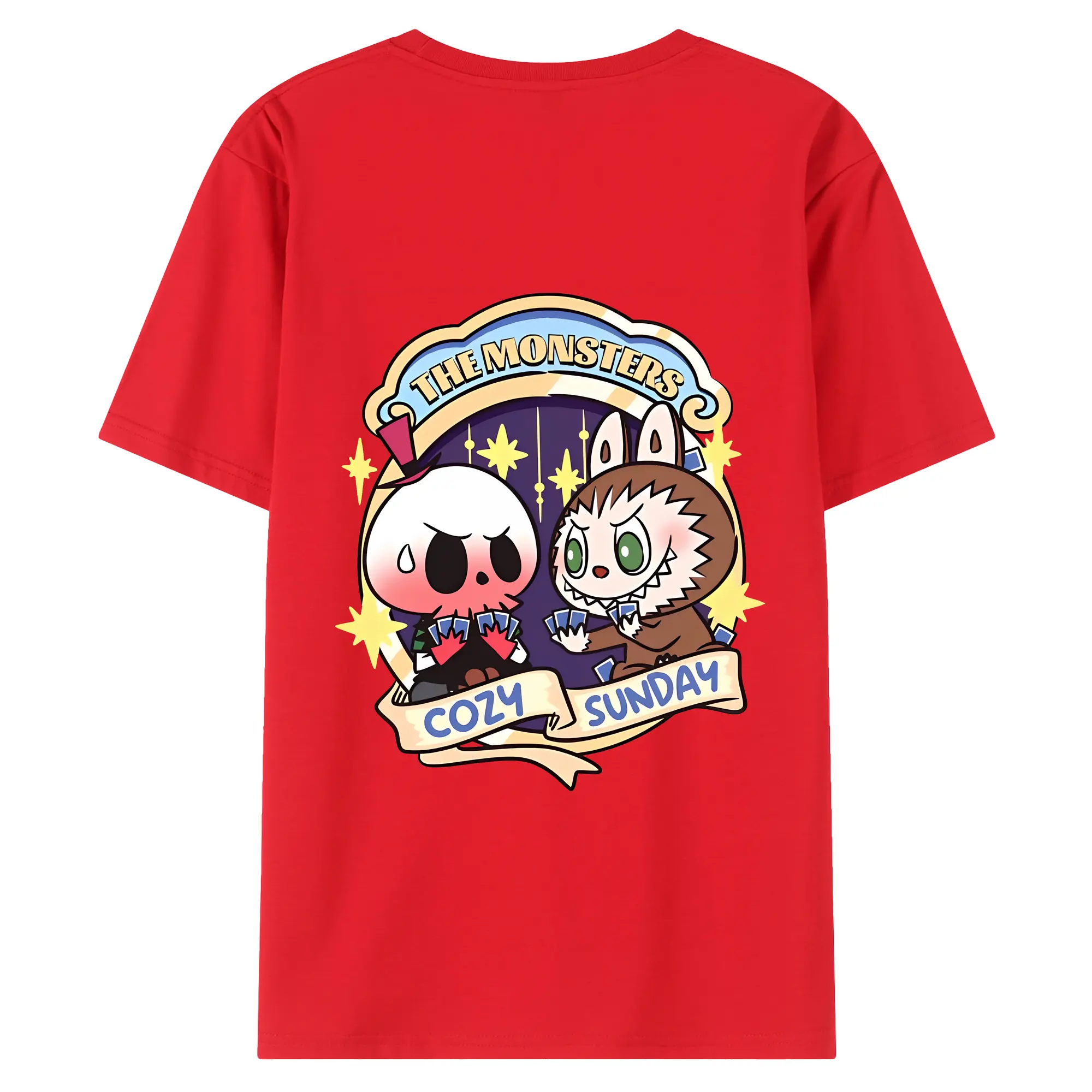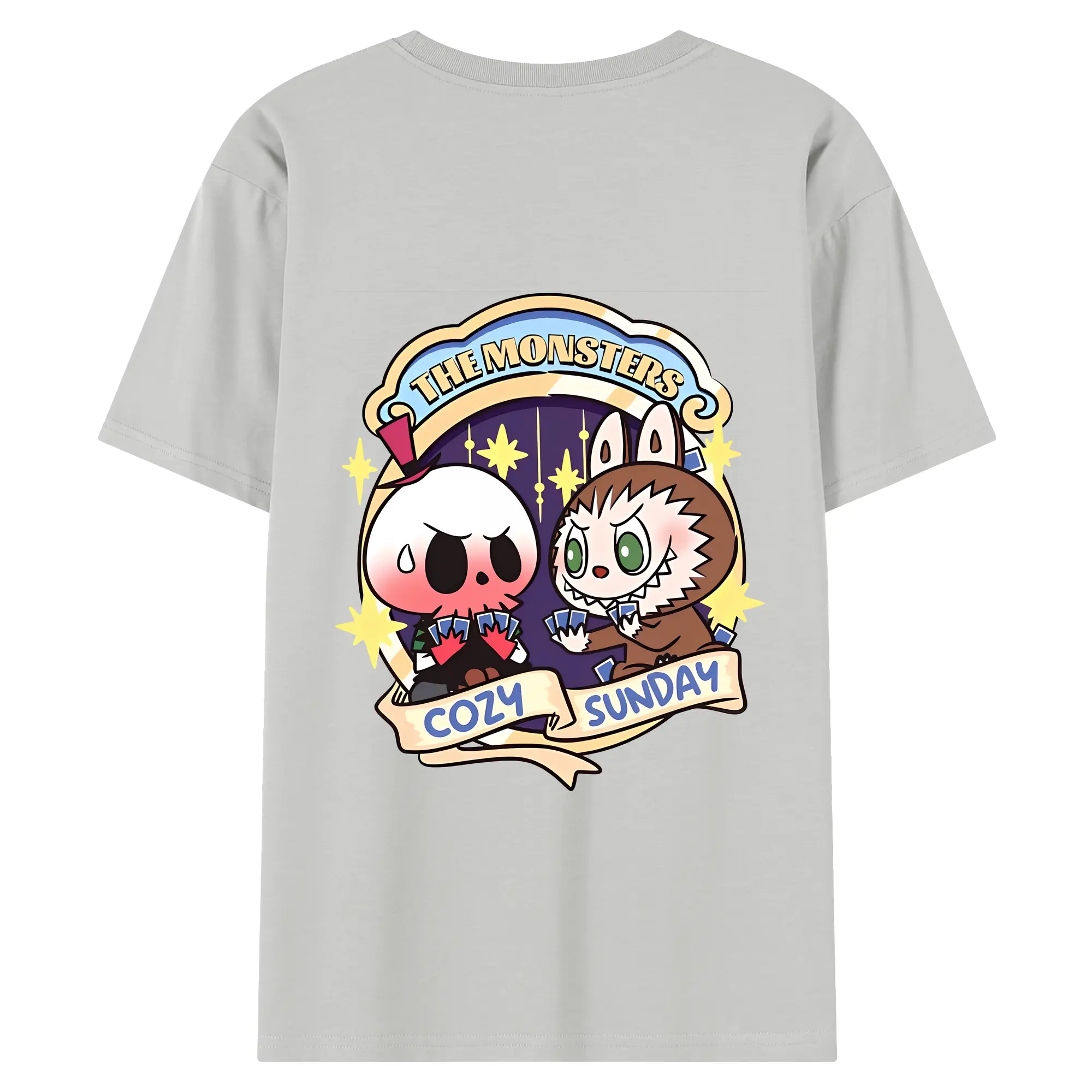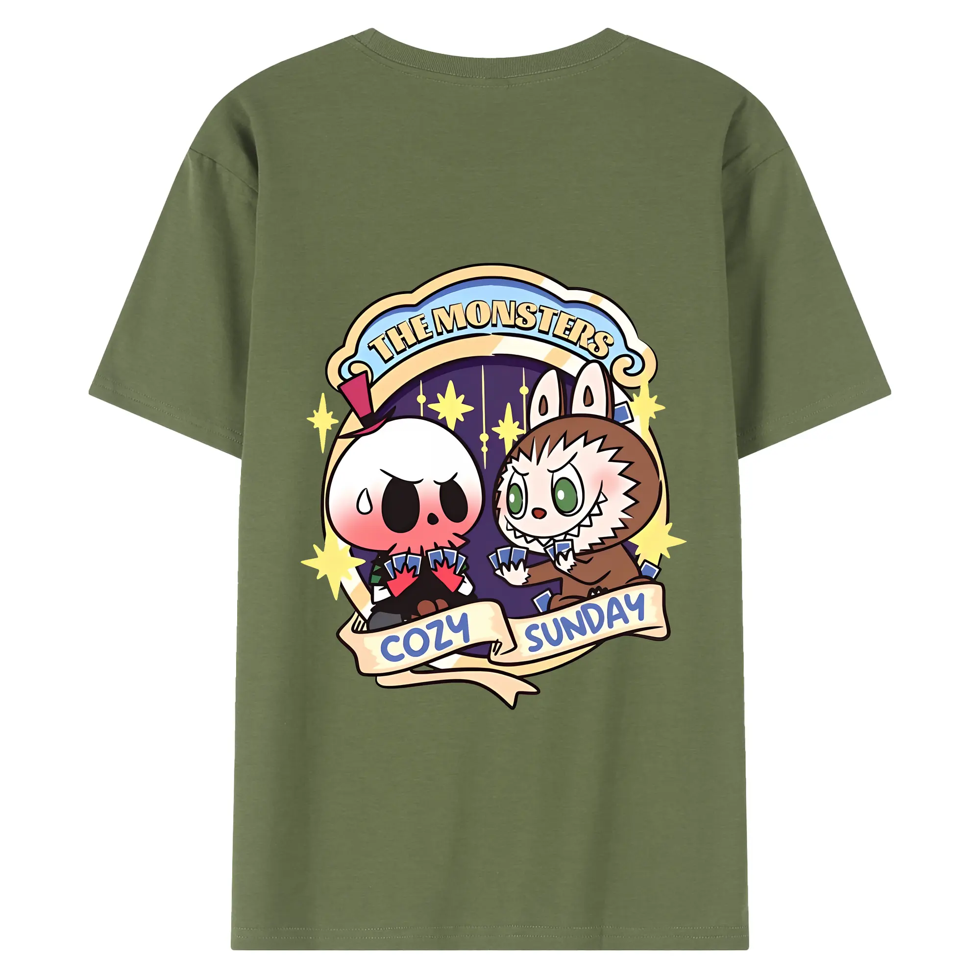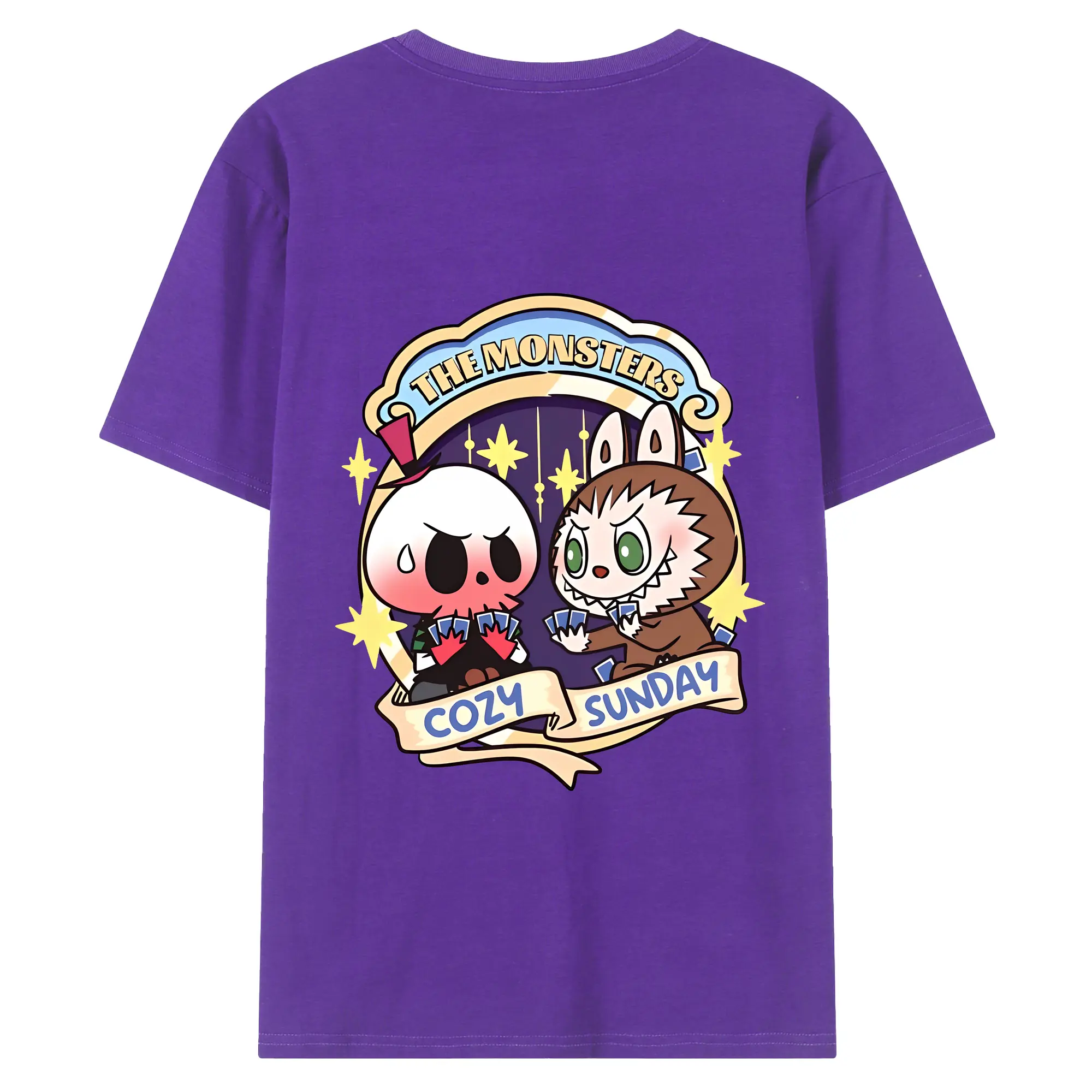 ラブブ グッズ モココ - 綿100% ヴィンテージ風 半袖Tシャツ ・ 背面プリント ・ 柔らか肌触り ・ 通気性 快適 ・ スポーツ カジュアル 外出用