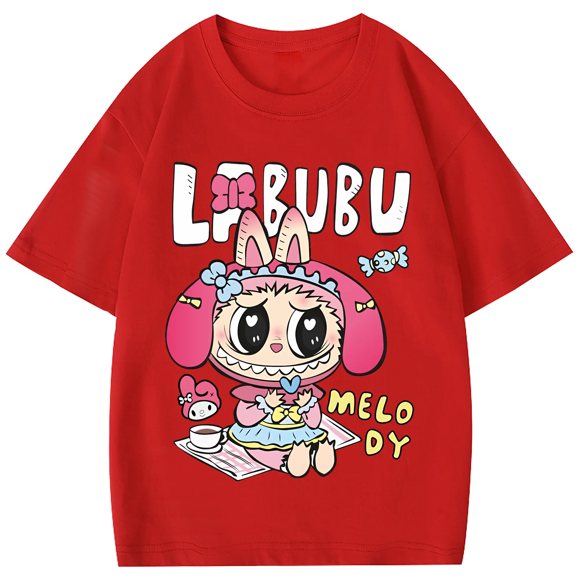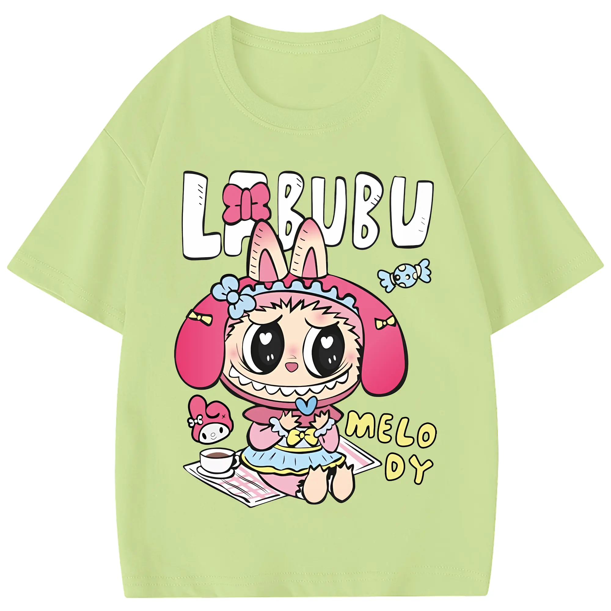 ラブブ グッズ モココ - 綿100% 半袖Tシャツ ・ フロントプリント ・ 快適 通気性 ・ 日常使い 散歩 スポーツ用