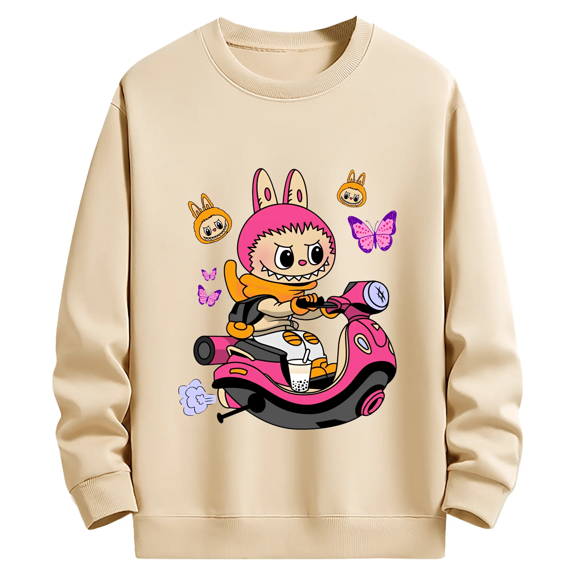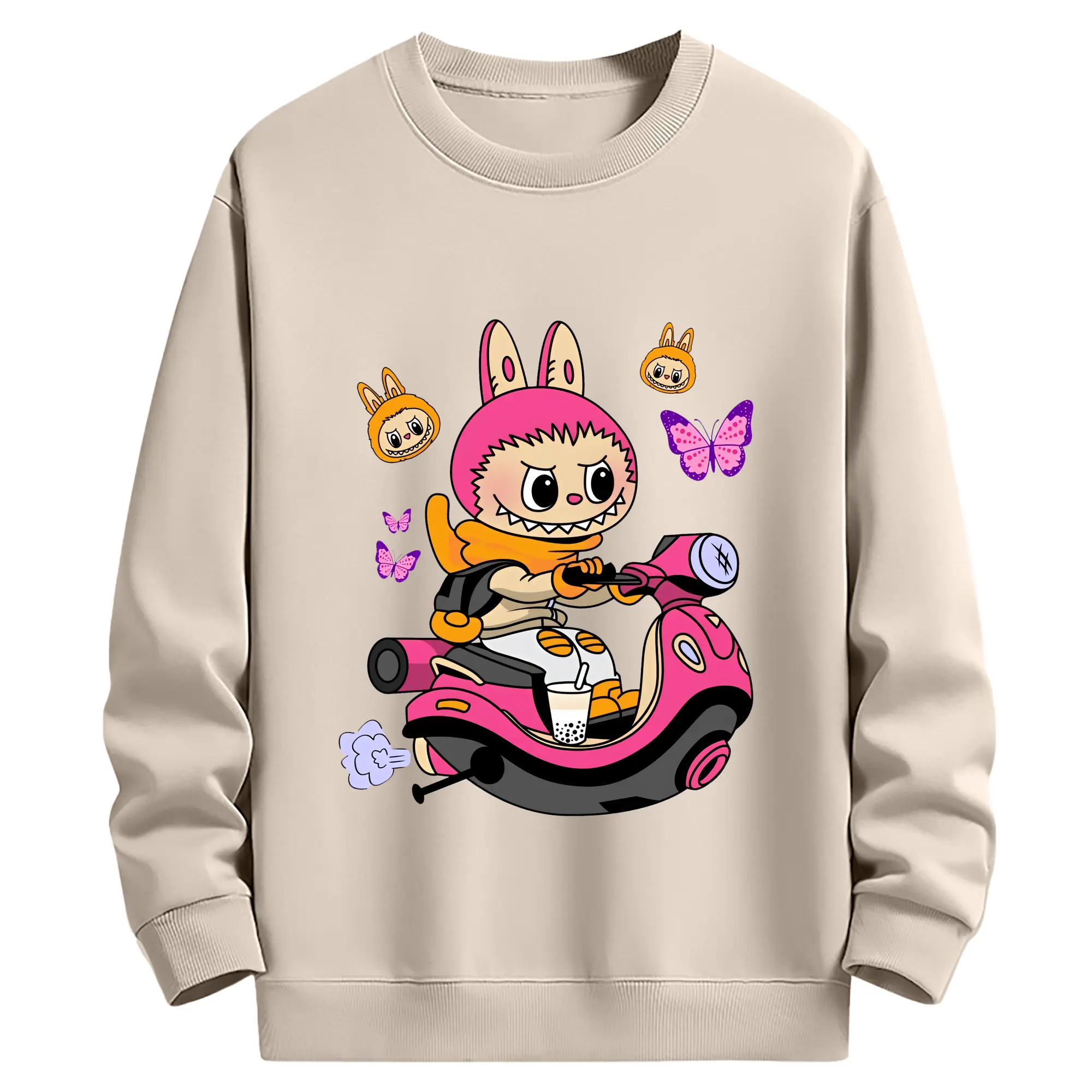 ラブブ グッズ モココ - 薄手 クルーネック スウェット 裏毛260g · ポリエステル 春秋向け カジュアル 男女兼用 · トレーナー デイリー スポーツ 散歩に最適