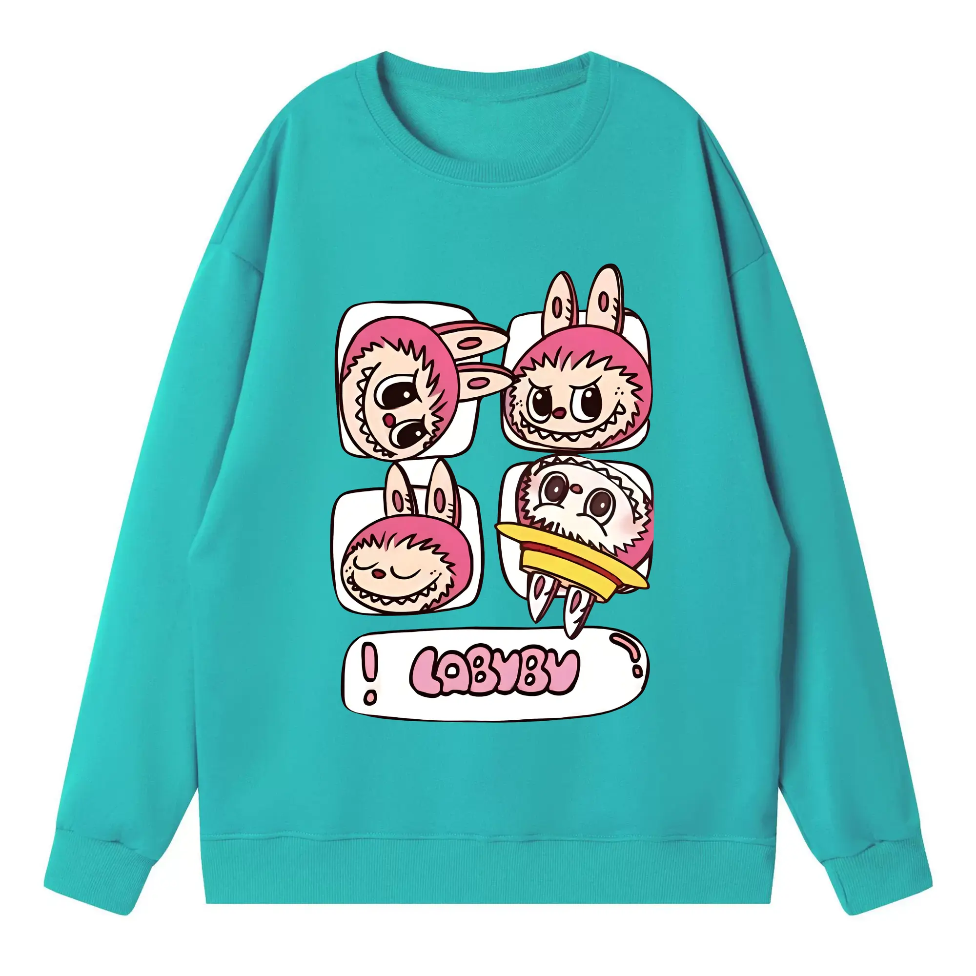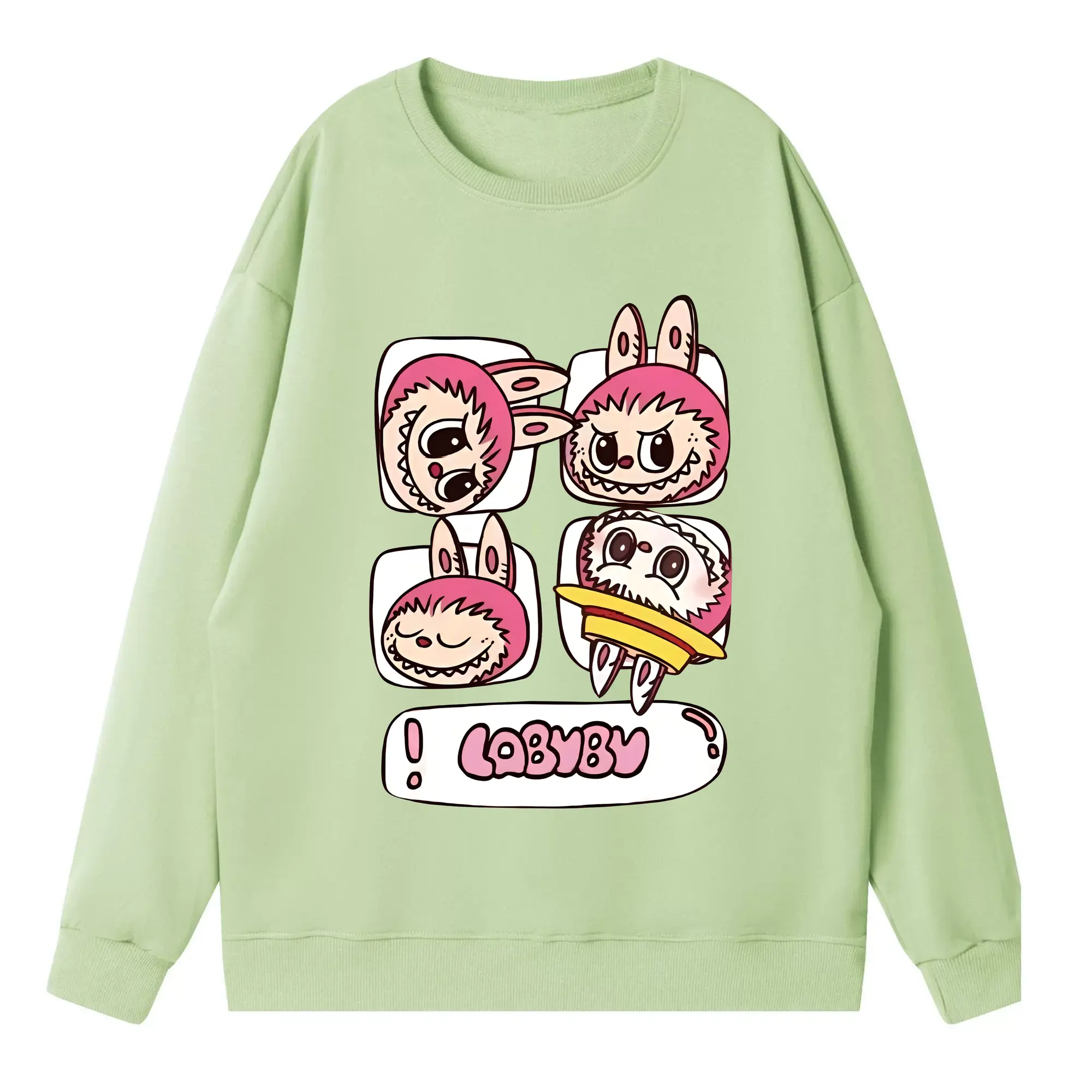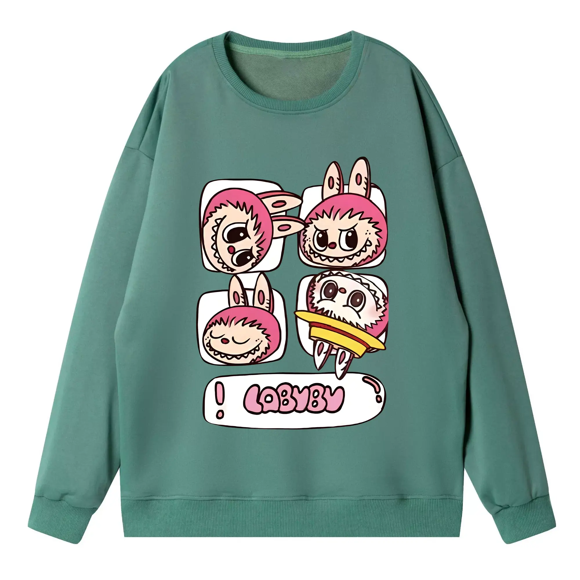 ラブブ グッズ モココ - 高品質 クルーネック スウェット ・ コットン59% ポリエステル41% ・ ユニセックス 長袖 トレーナー ・ カジュアル デイリー スポーツ 散歩用