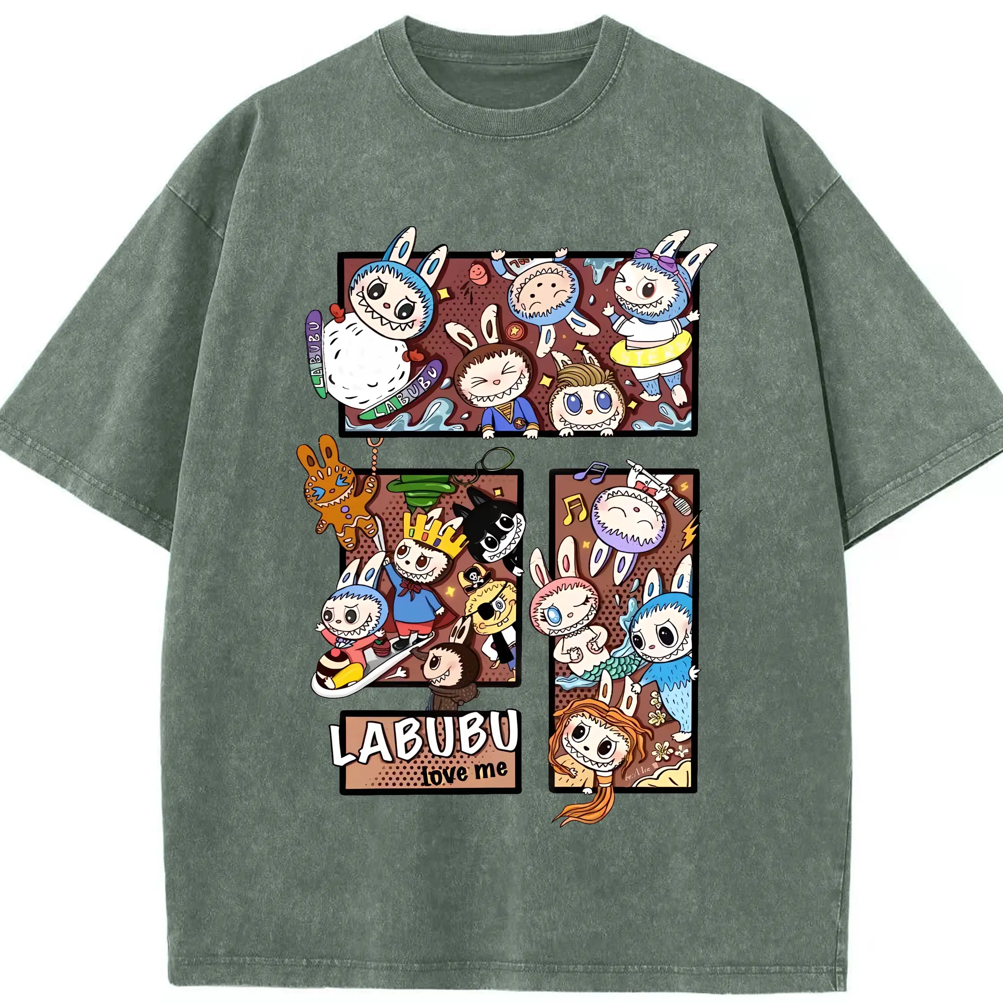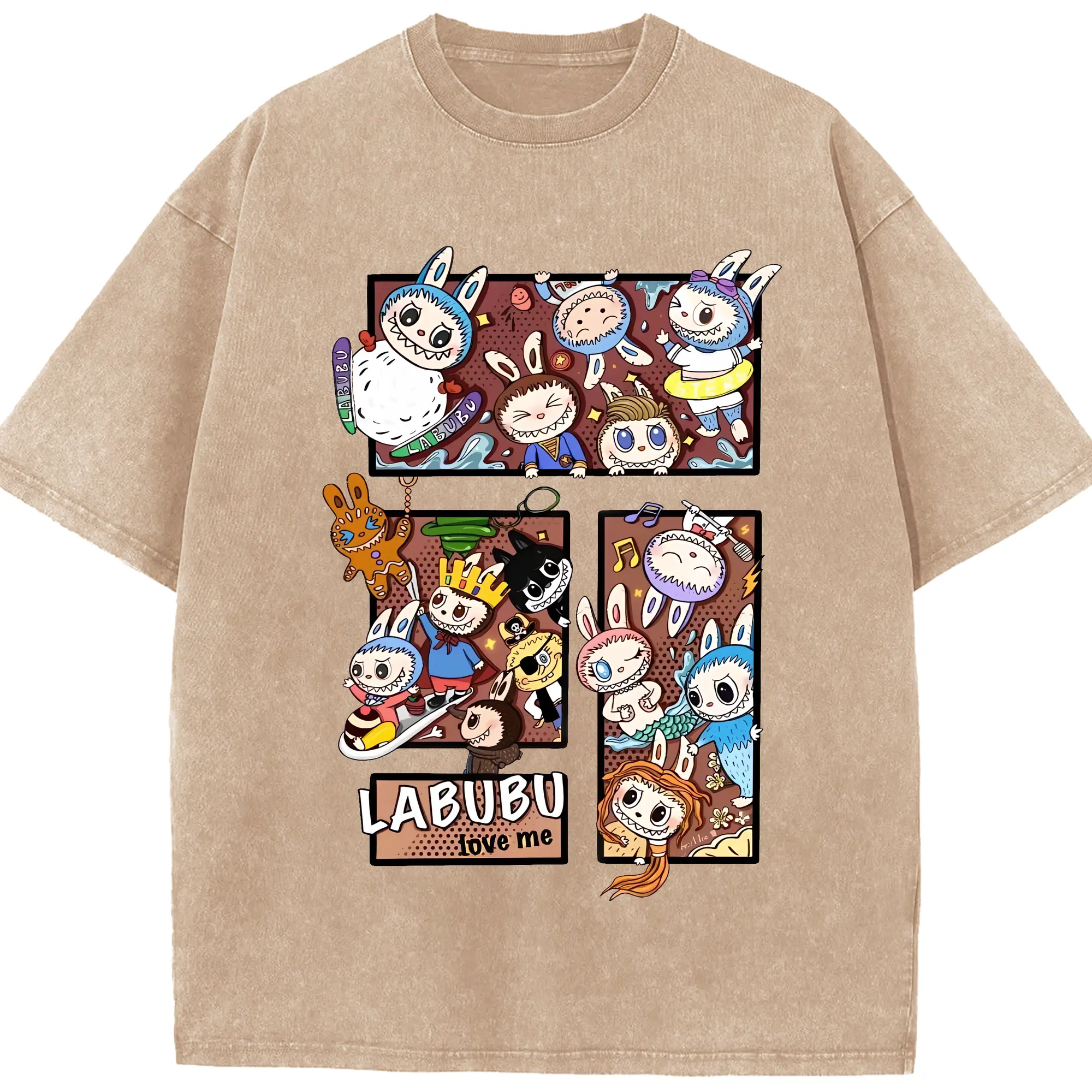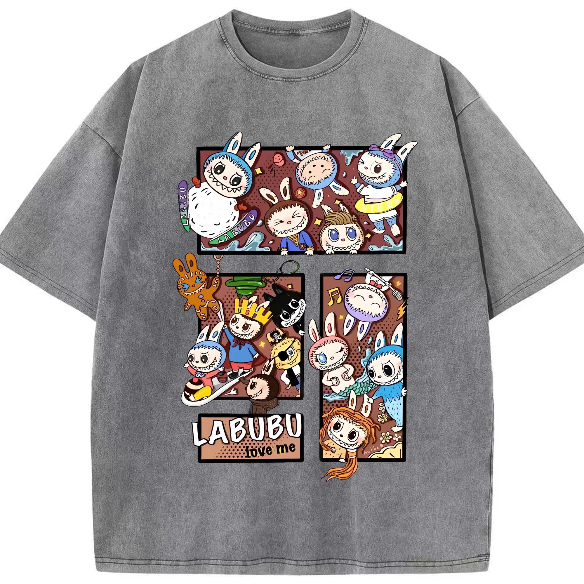 ラブブ グッズ モココ - 綿100% ヴィンテージ風 半袖Tシャツ ・ 背面プリント ・ 柔らか肌触り ・ 通気性 快適 ・ スポーツ カジュアル 外出用