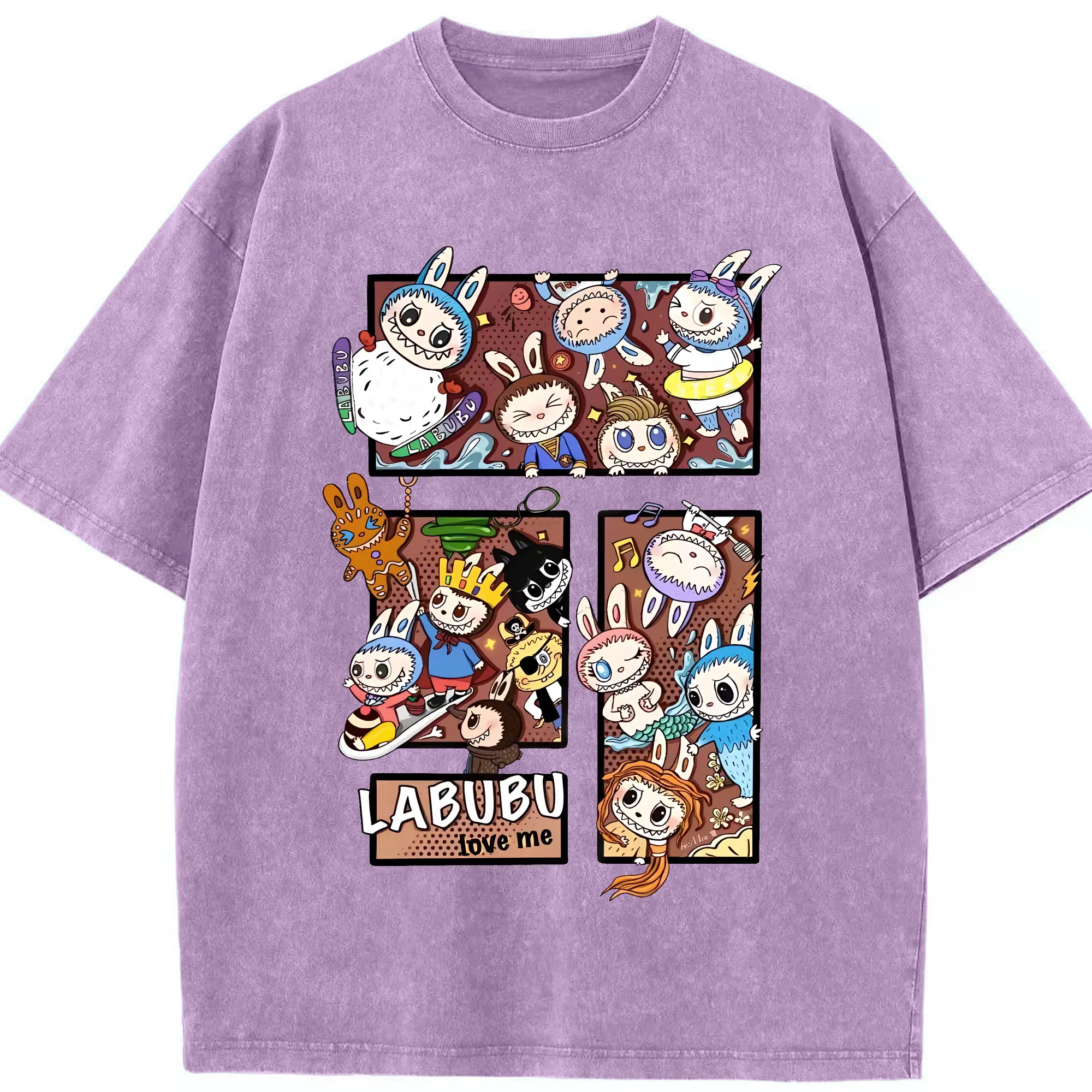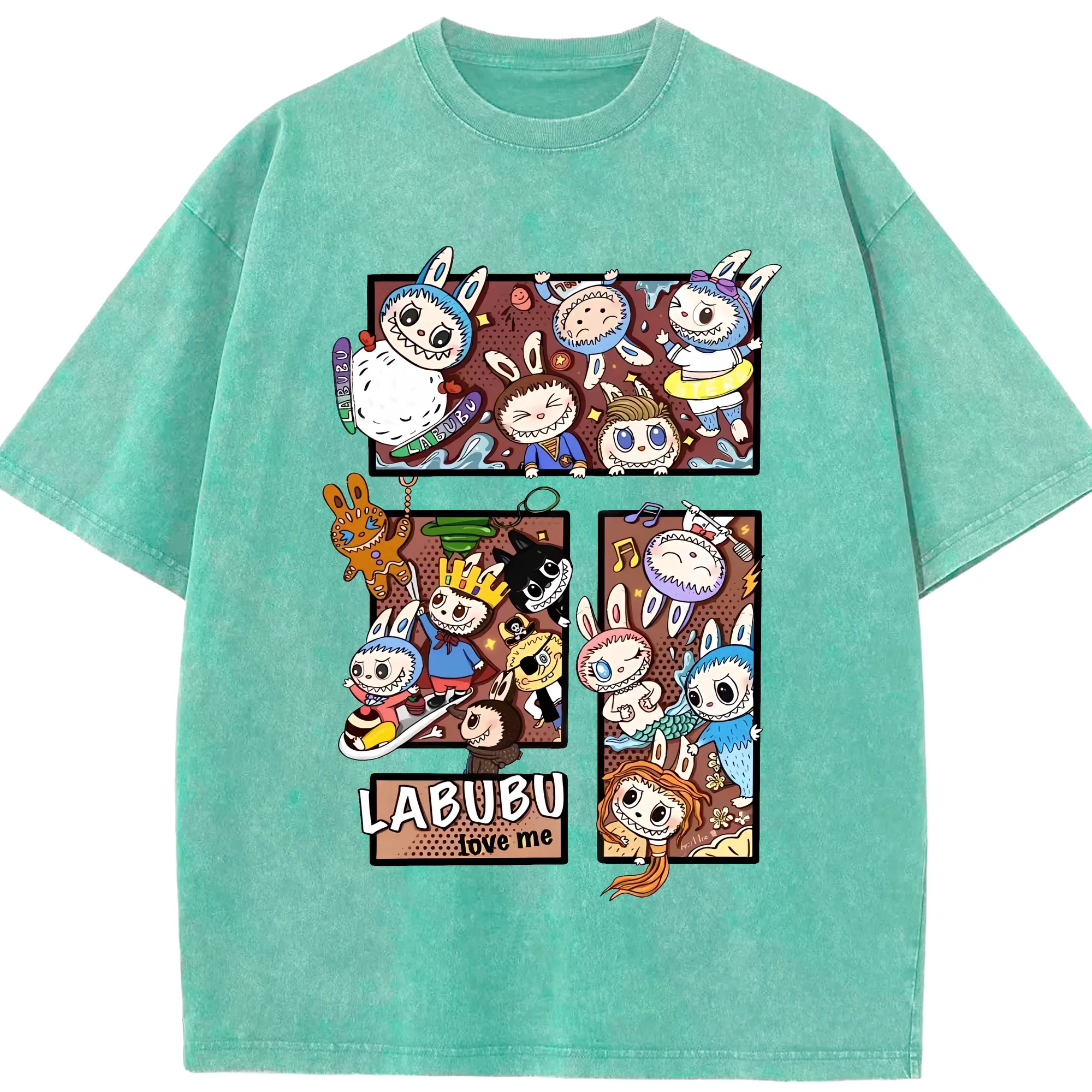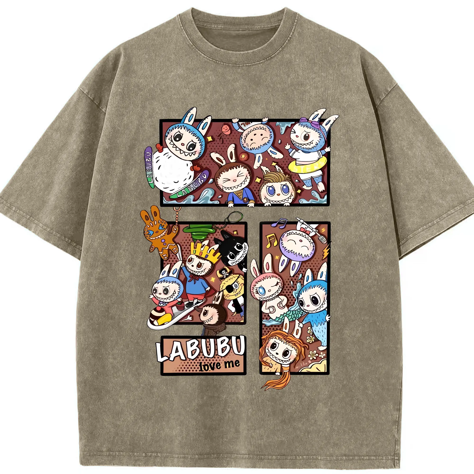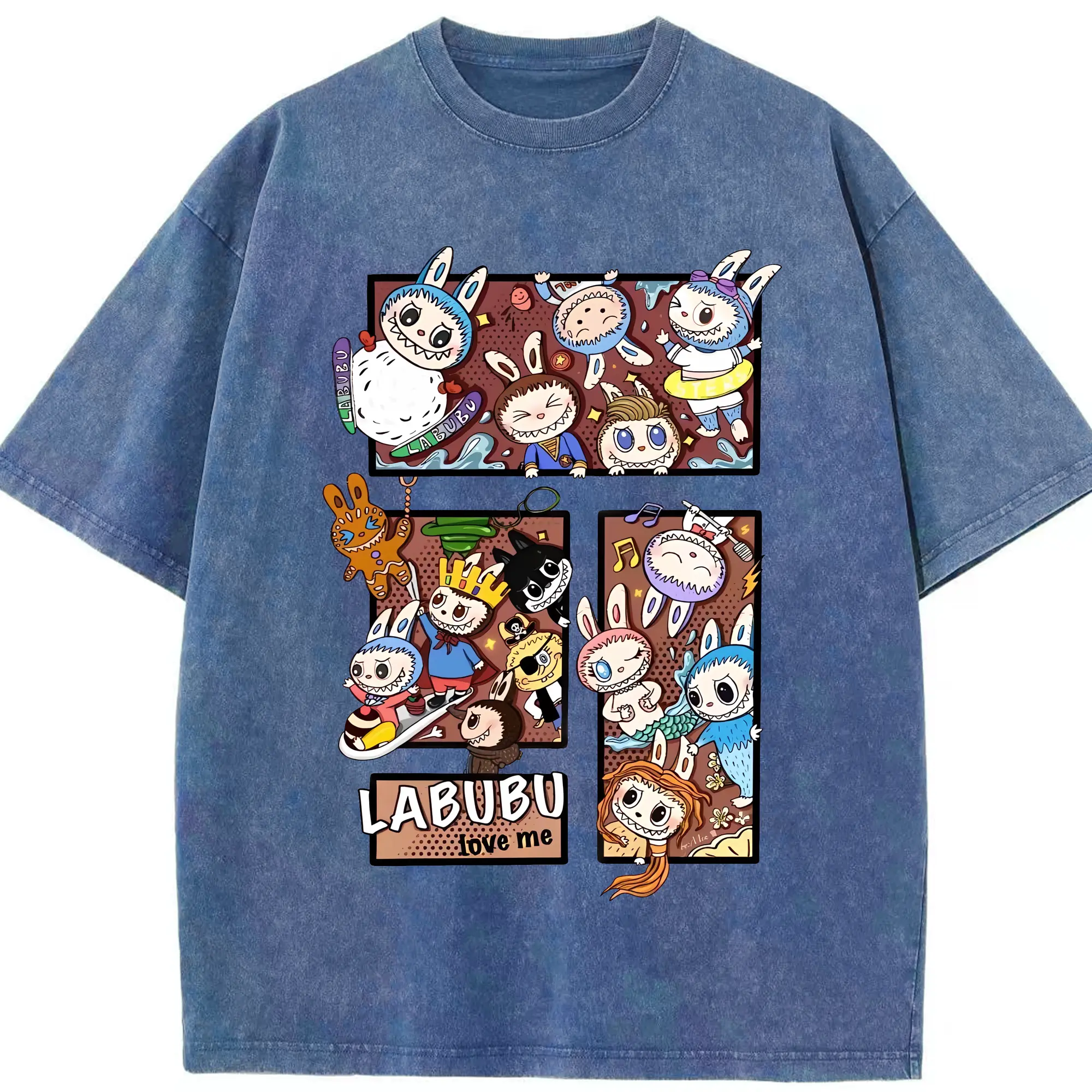 ラブブ グッズ モココ - 綿100% ヴィンテージ風 半袖Tシャツ ・ 背面プリント ・ 柔らか肌触り ・ 通気性 快適 ・ スポーツ カジュアル 外出用