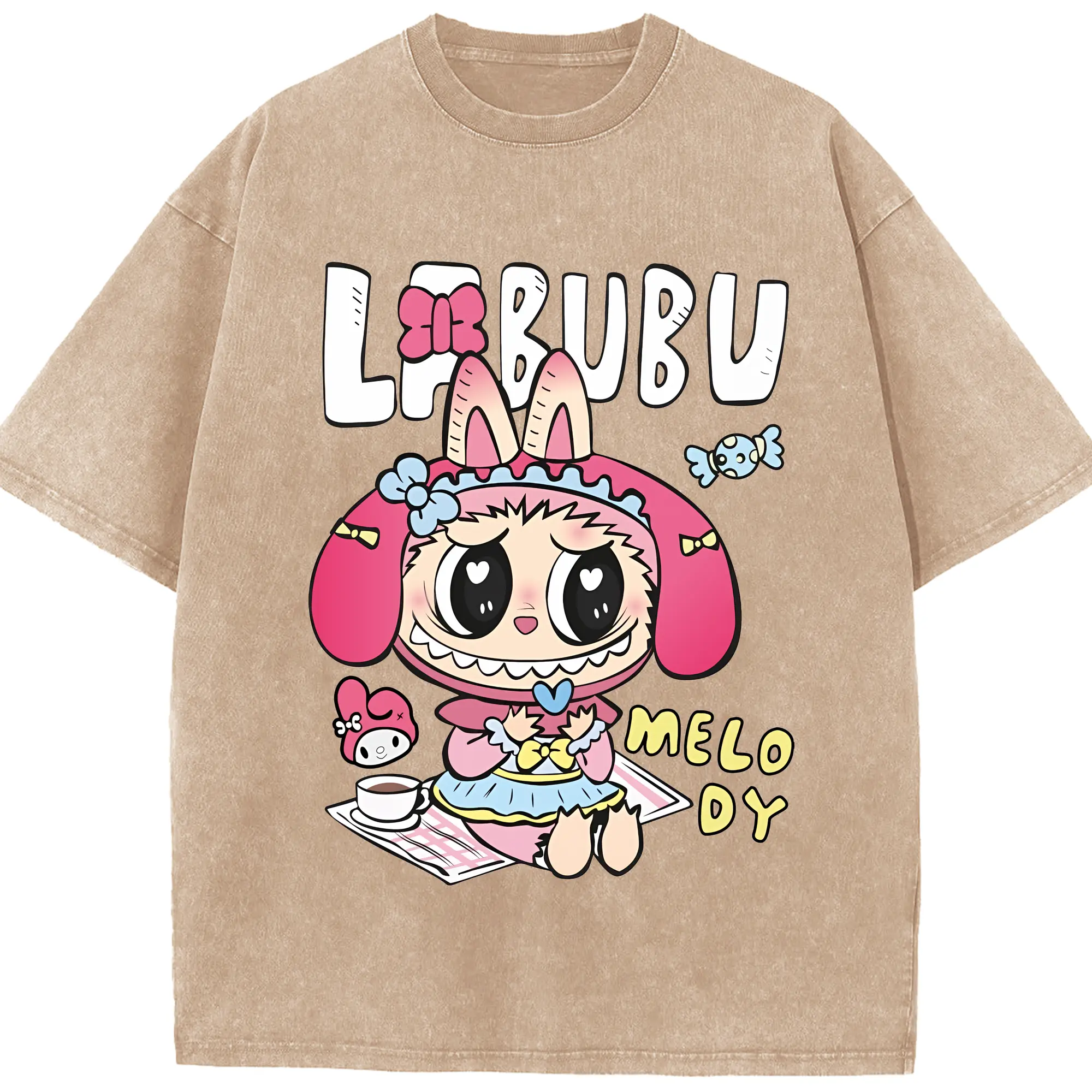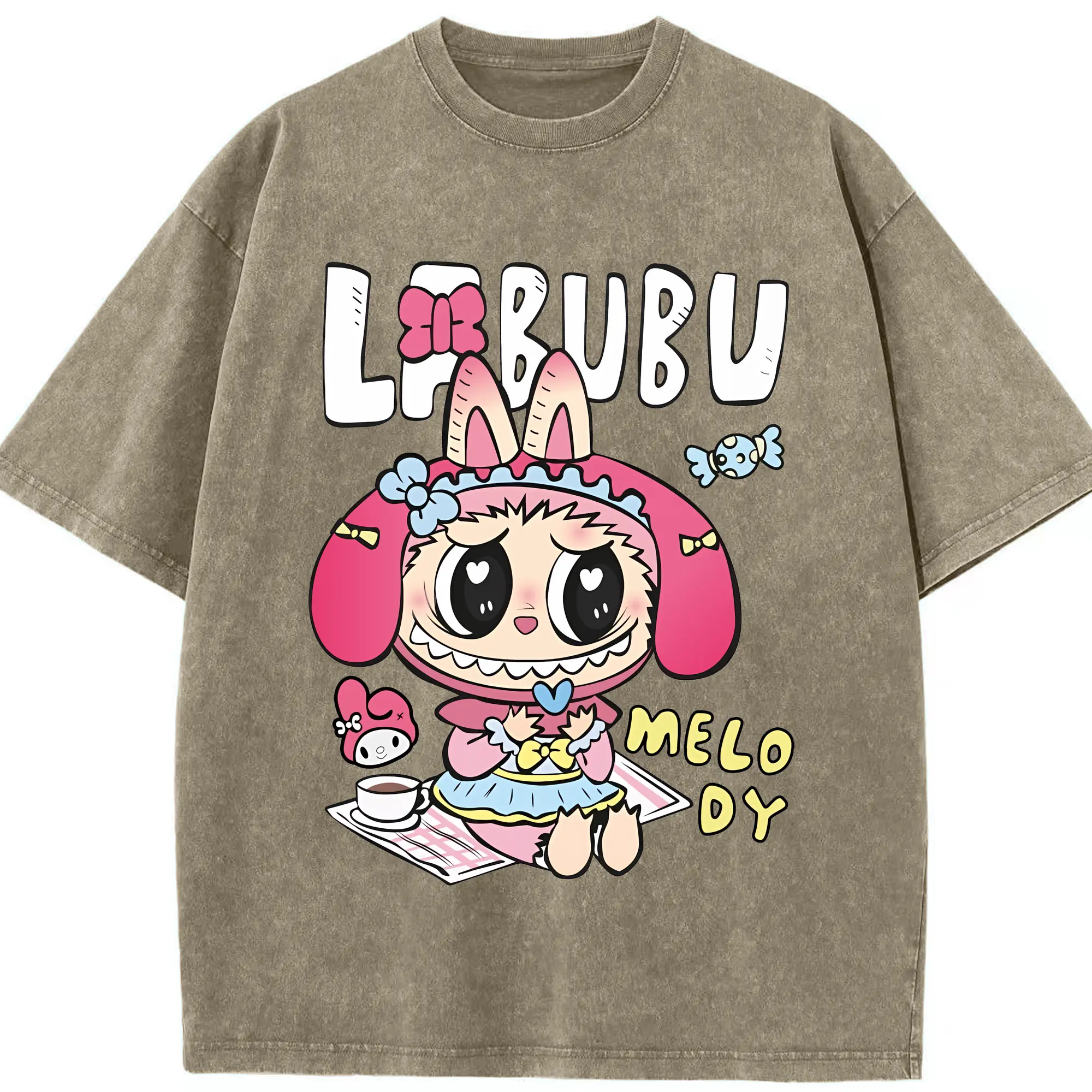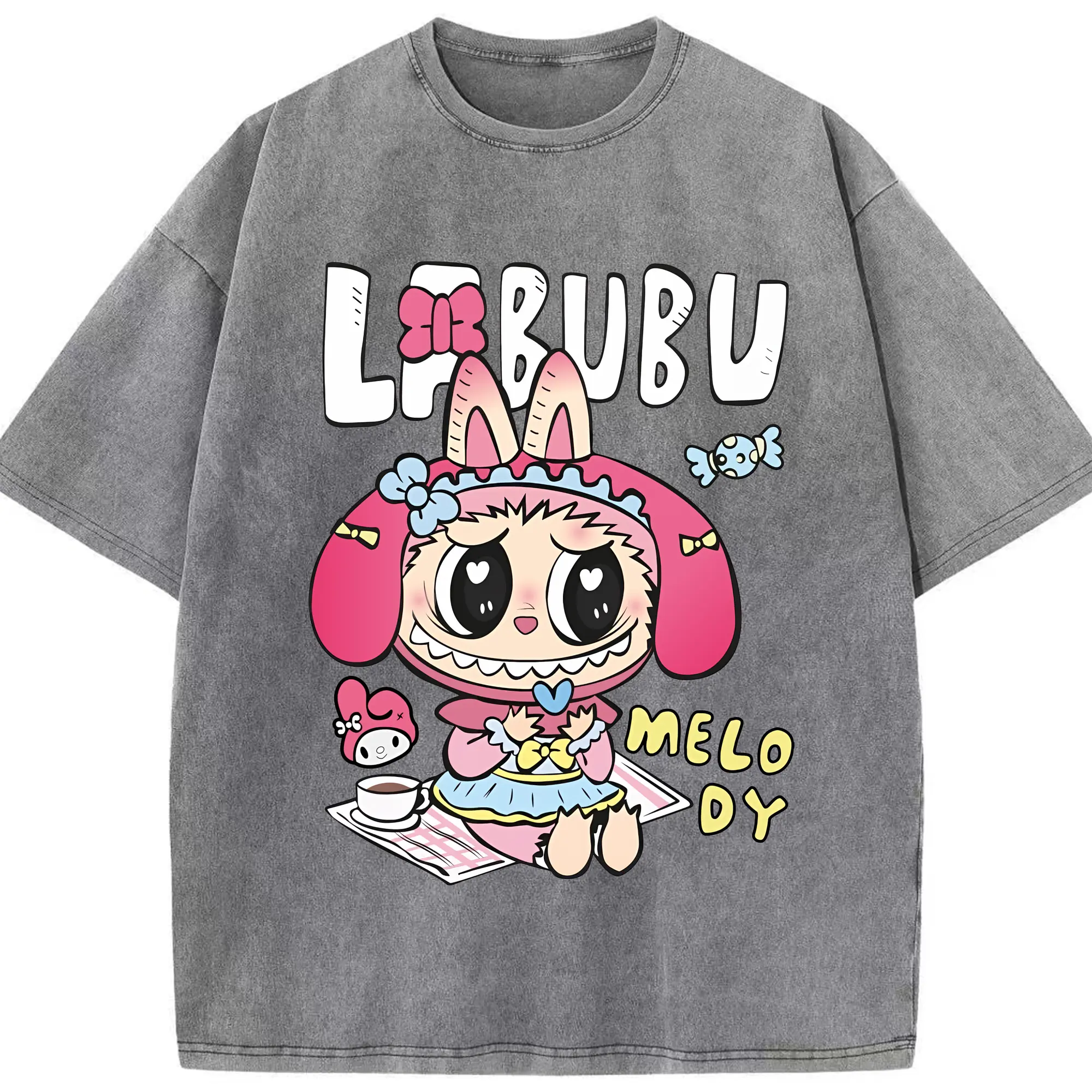 ラブブ グッズ ラブブ - 綿100% ヴィンテージ風 半袖Tシャツ ・ フロントプリント ・ 柔らか肌触り ・ 通気性 快適 ・ スポーツ カジュアル 外出用