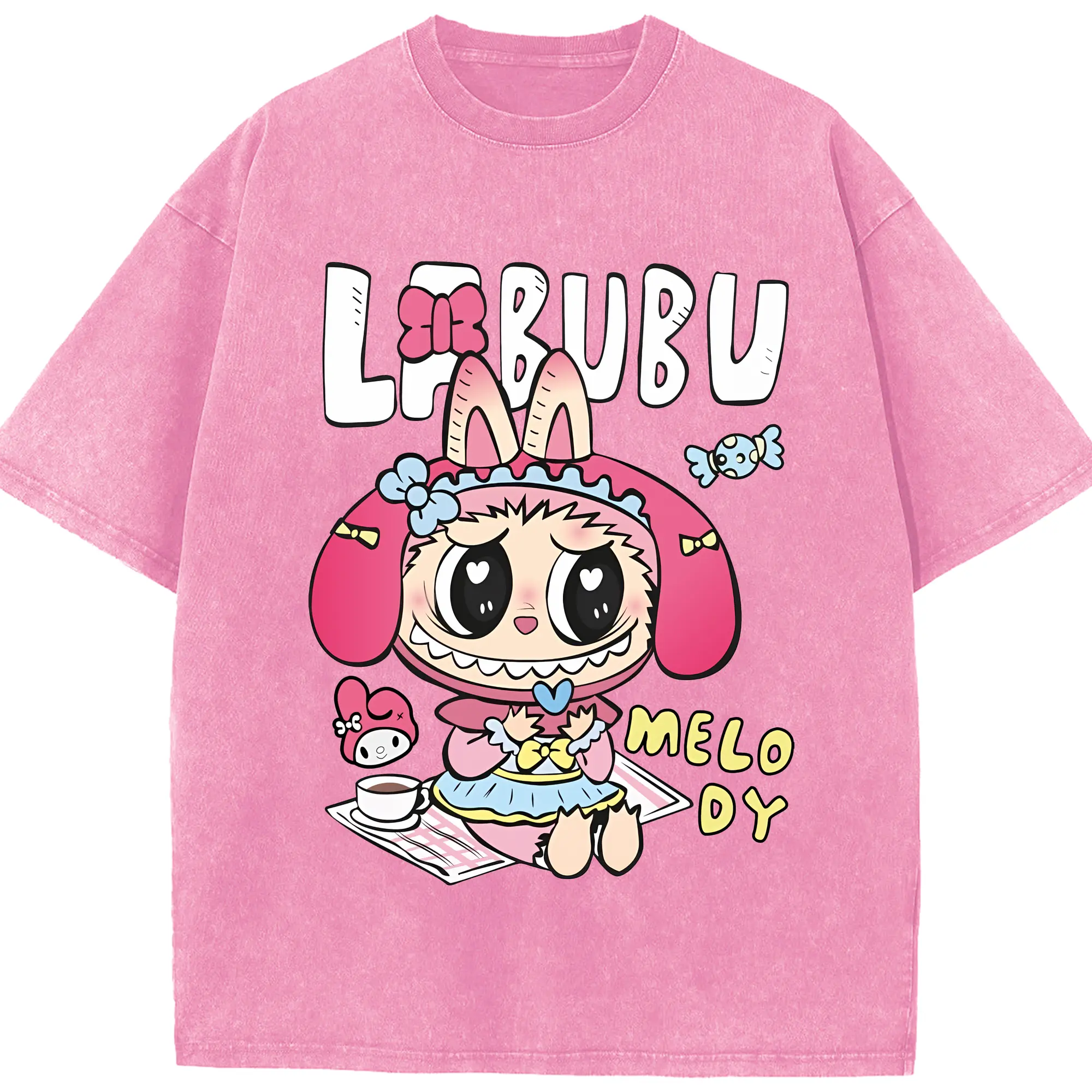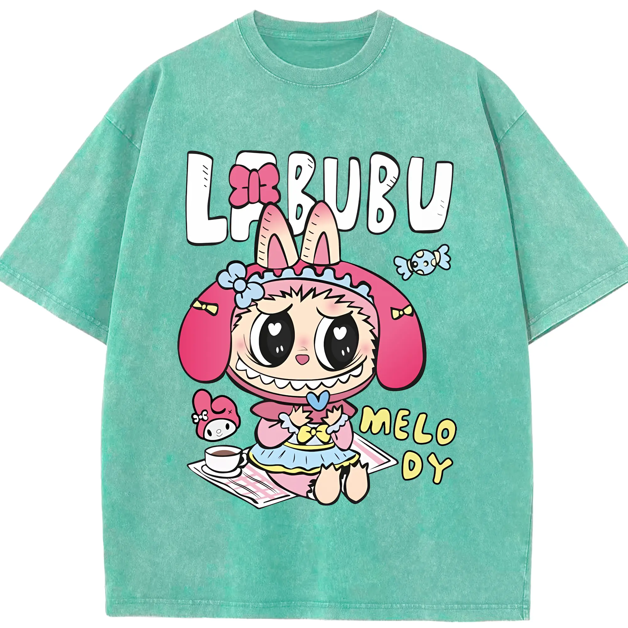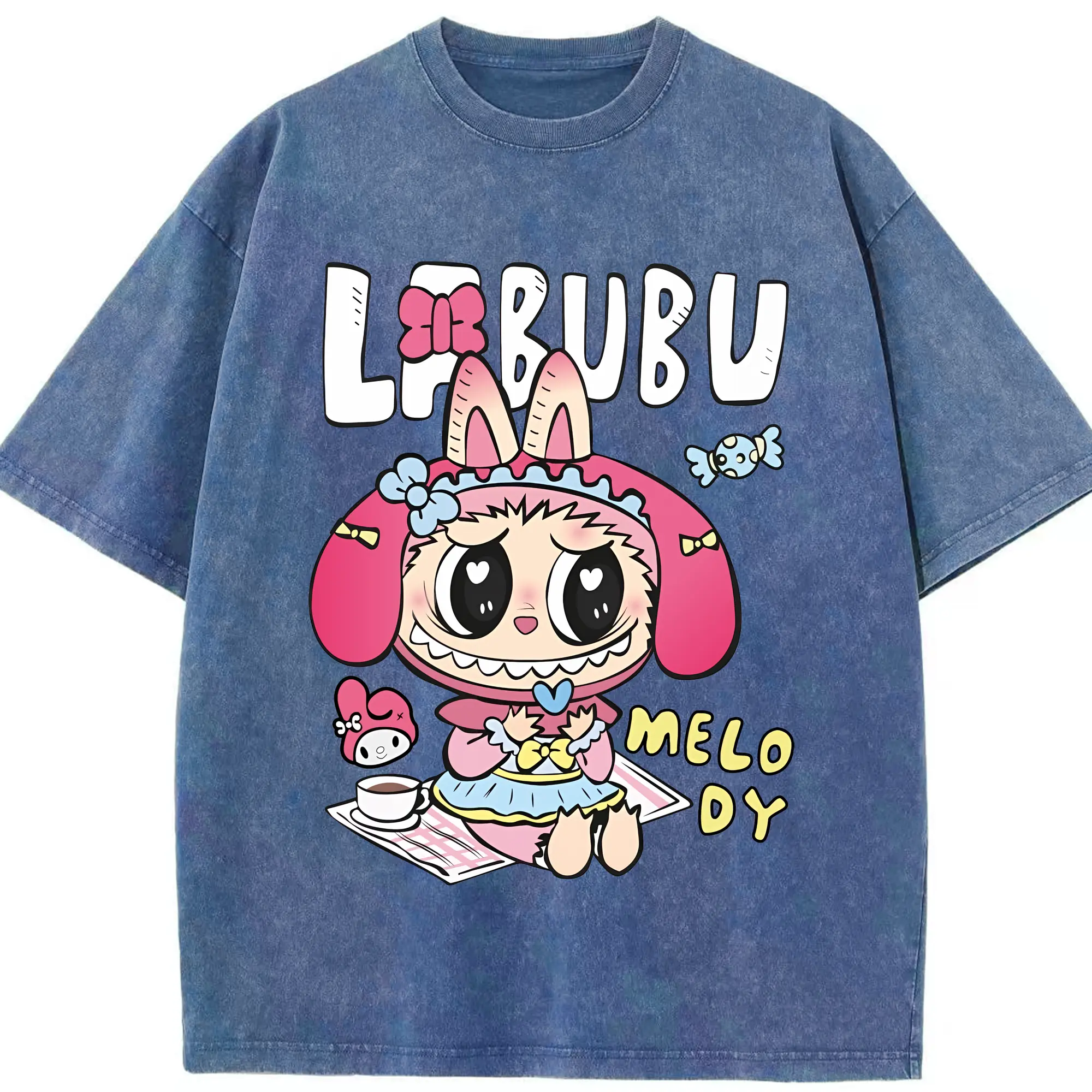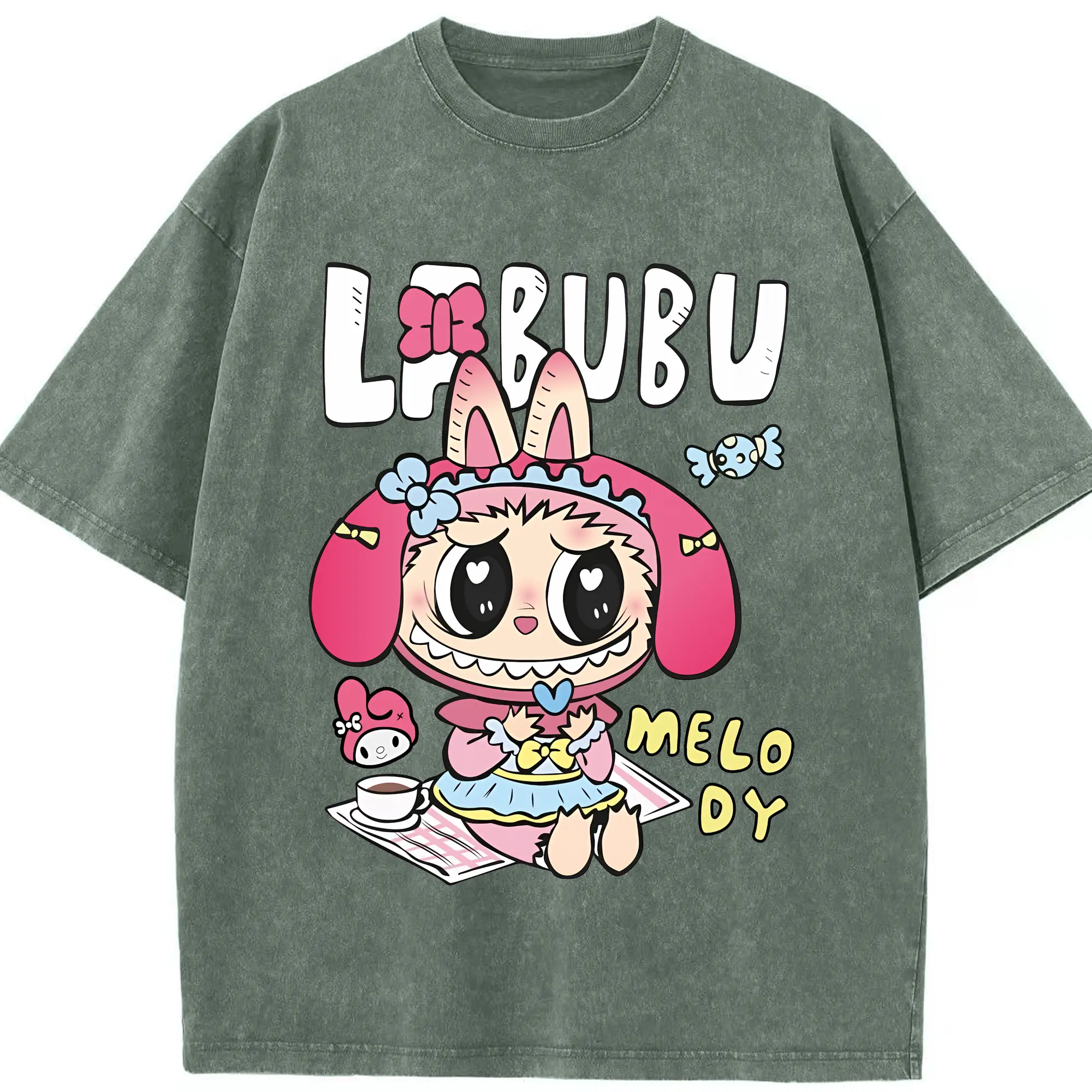 ラブブ グッズ ラブブ - 綿100% ヴィンテージ風 半袖Tシャツ ・ フロントプリント ・ 柔らか肌触り ・ 通気性 快適 ・ スポーツ カジュアル 外出用