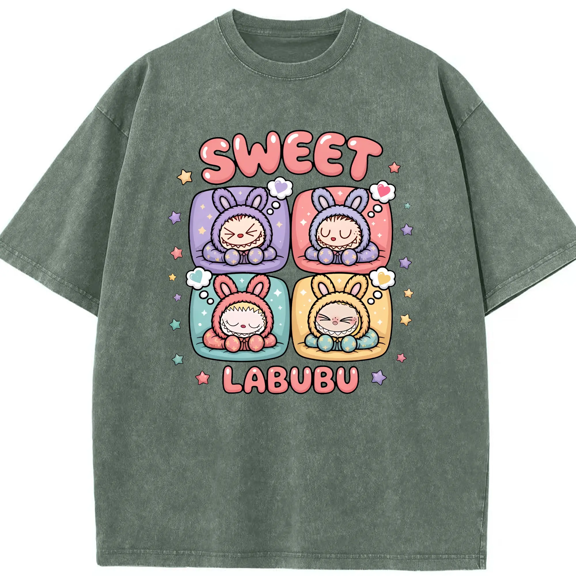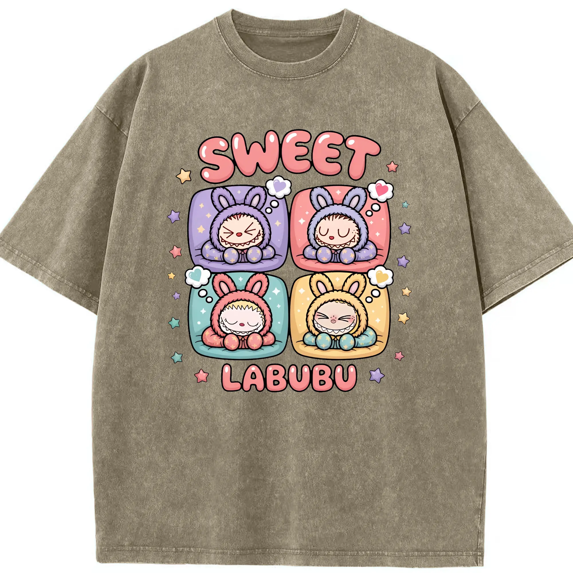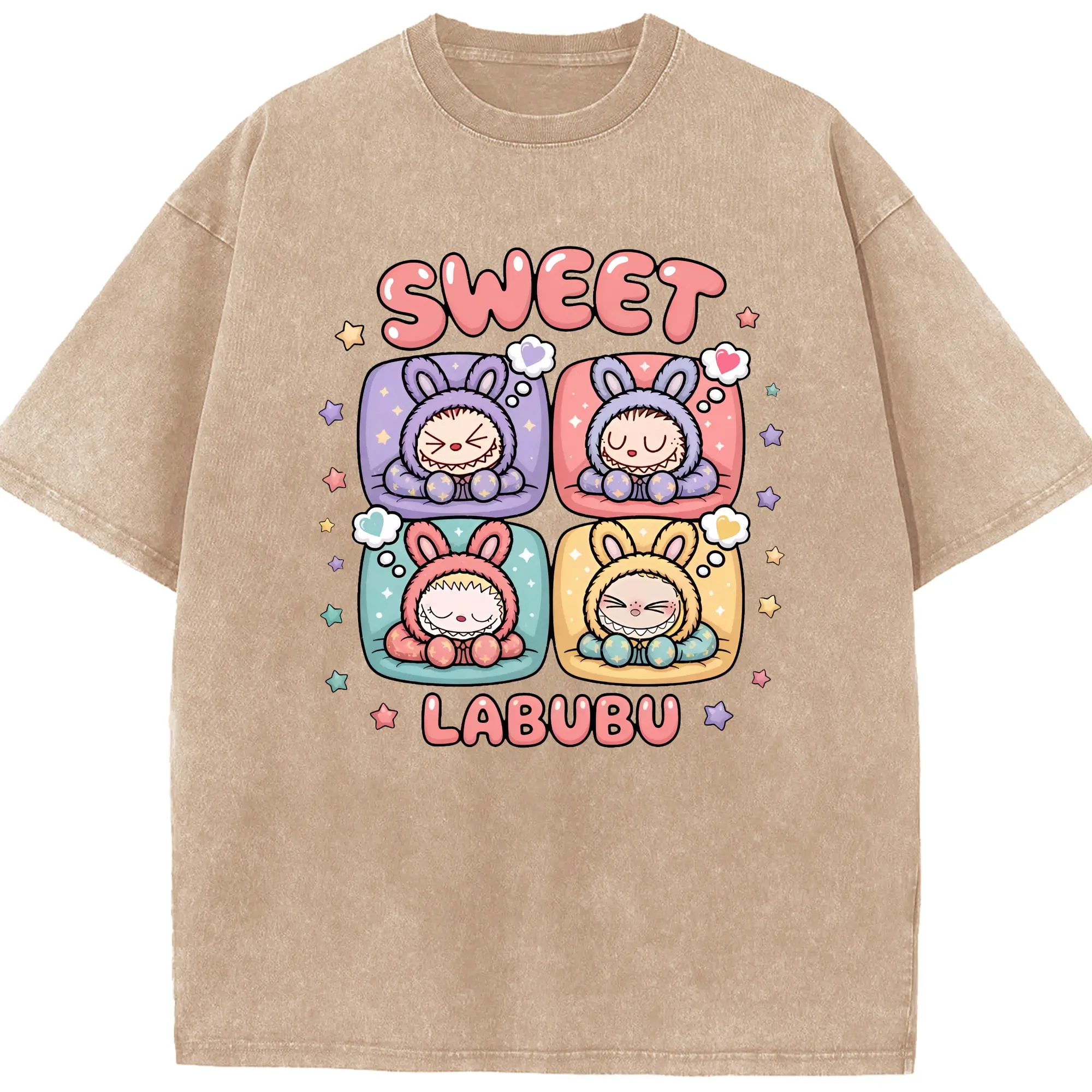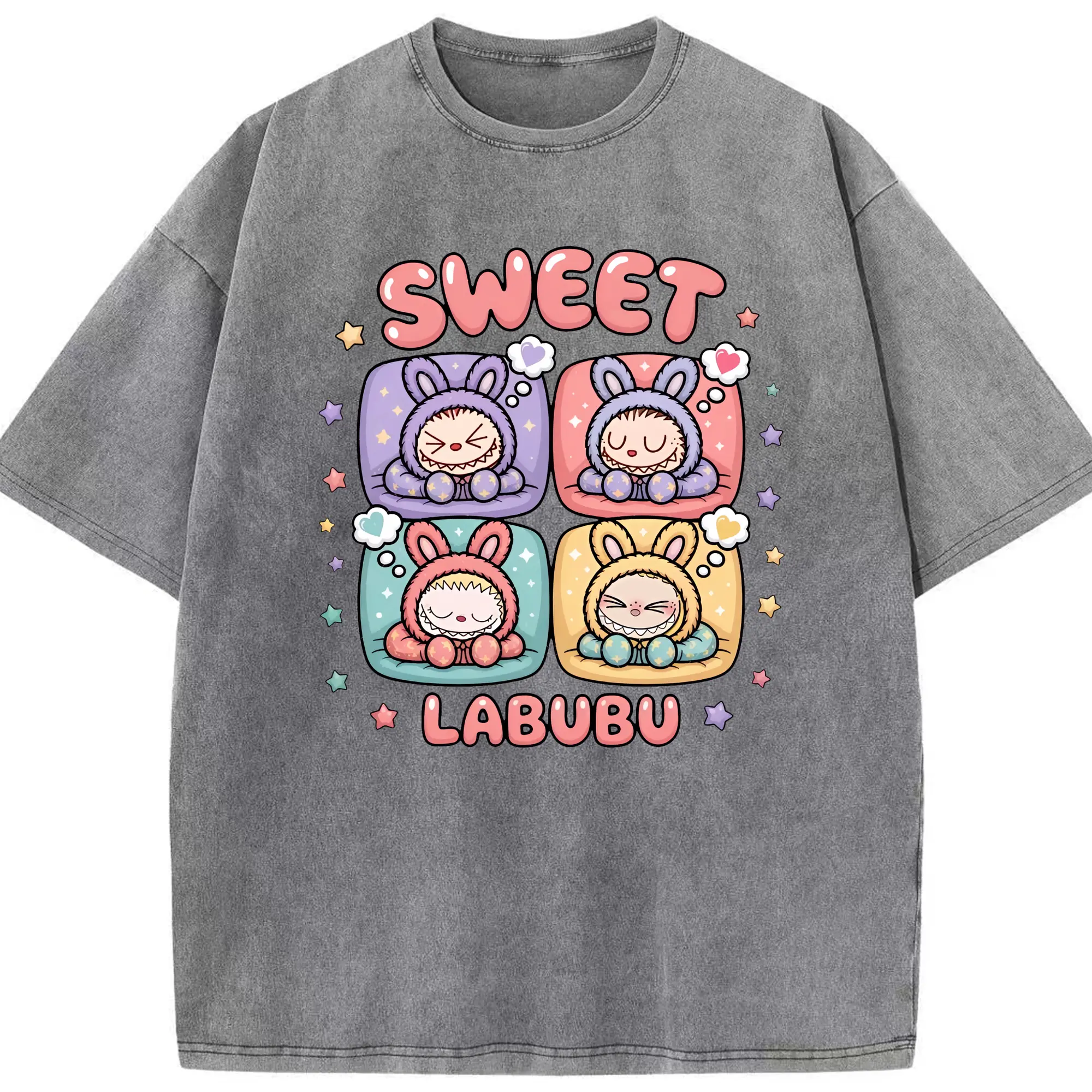 ラブブ グッズ モココ - 綿100% ヴィンテージ風 半袖Tシャツ ・ 背面プリント ・ 柔らか肌触り ・ 通気性 快適 ・ スポーツ カジュアル 外出用