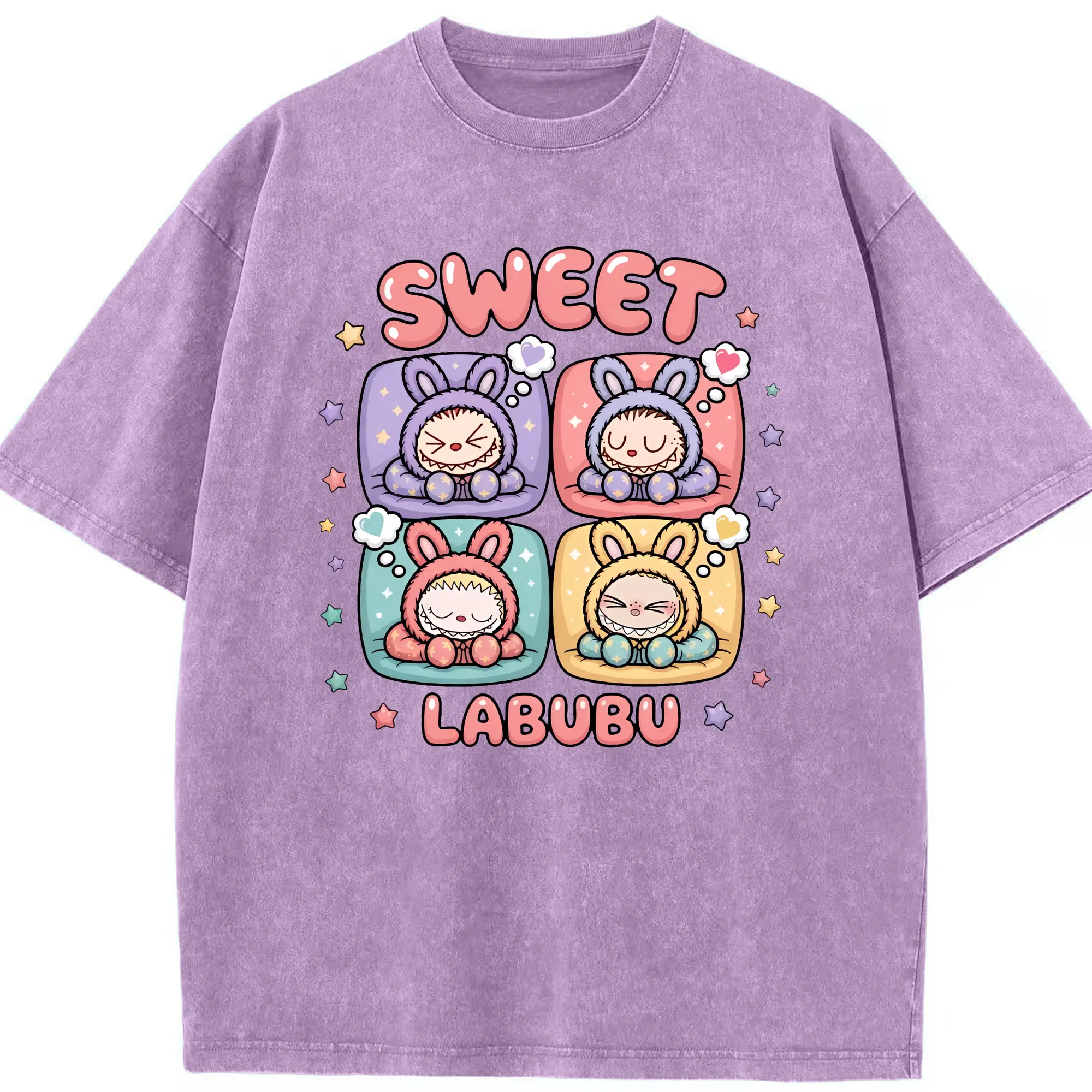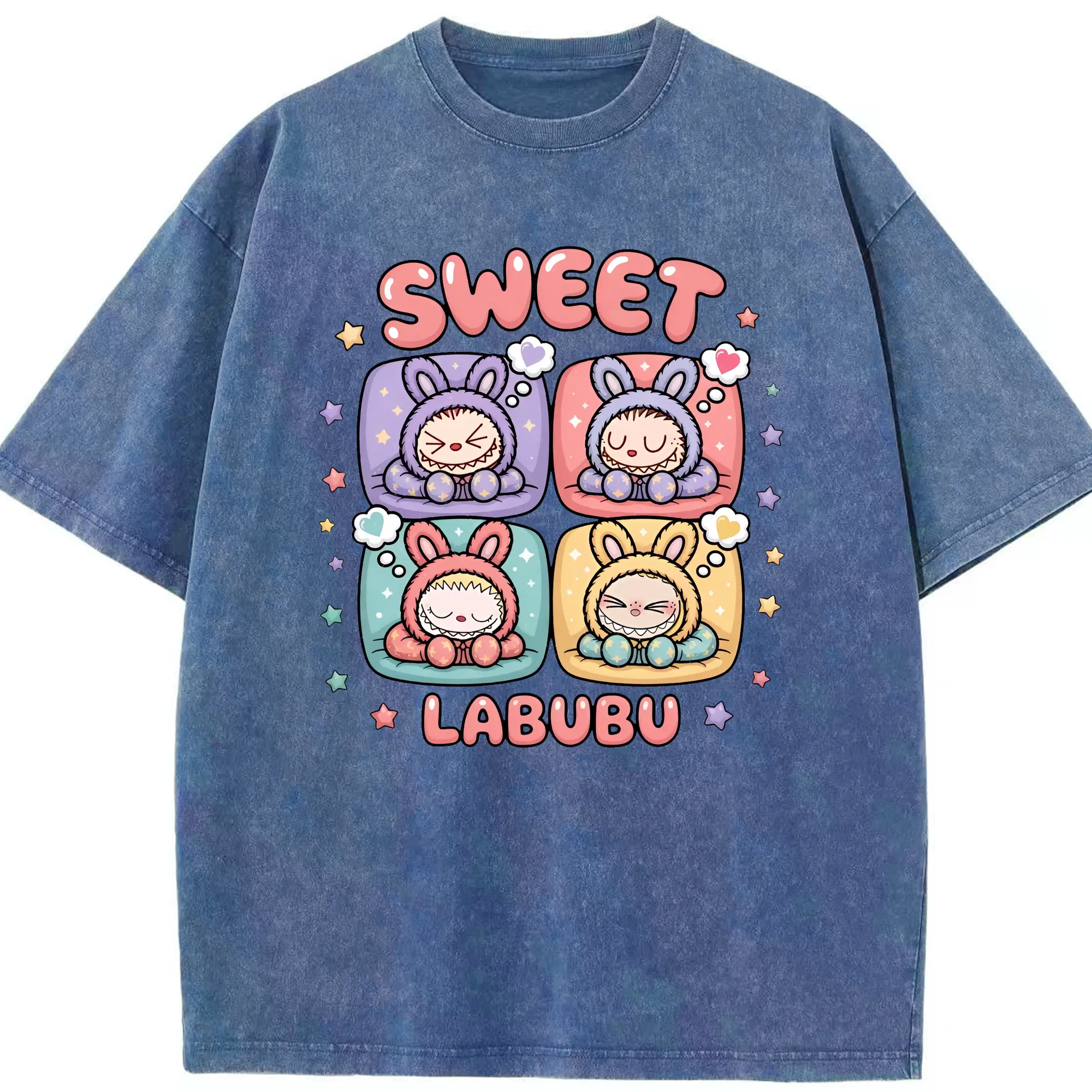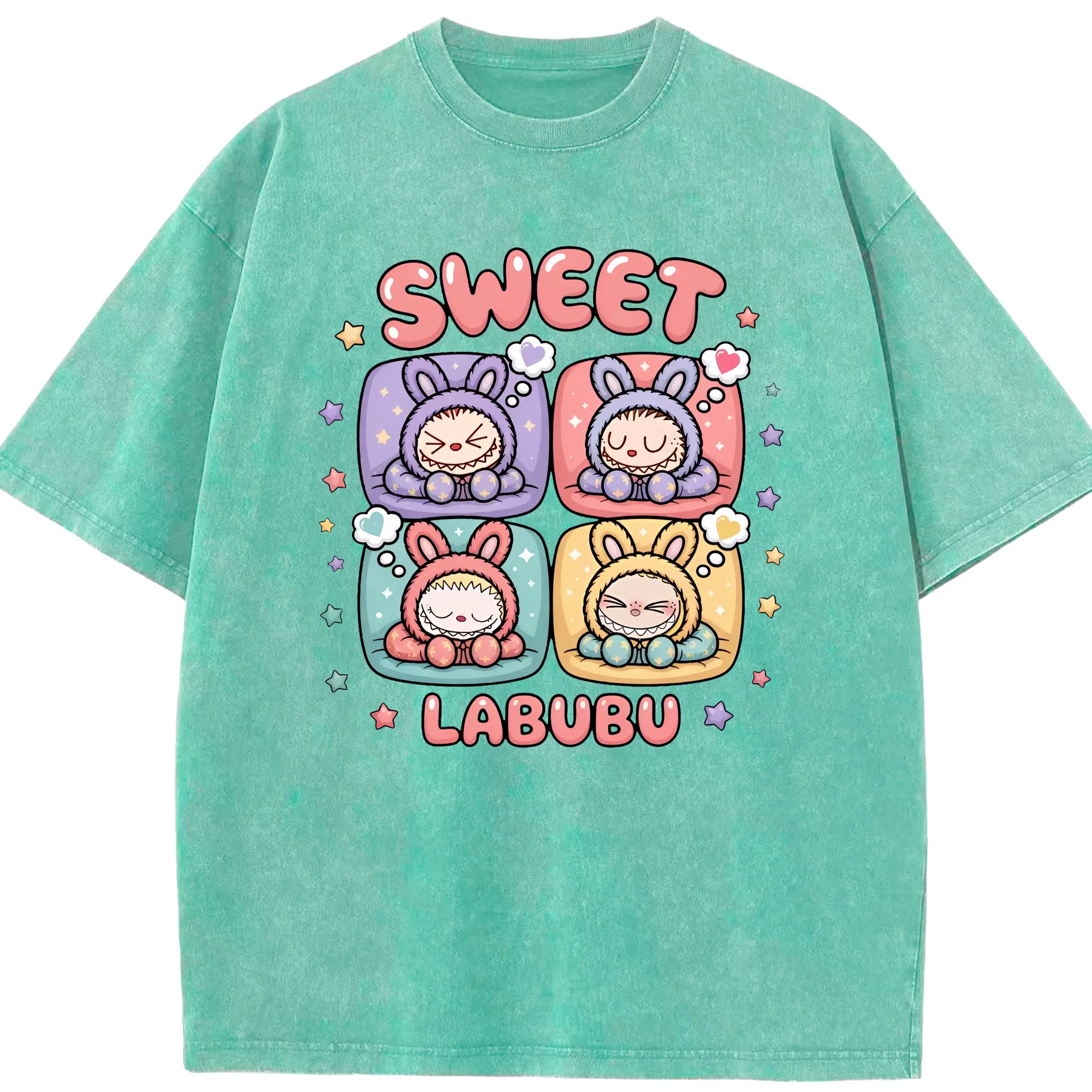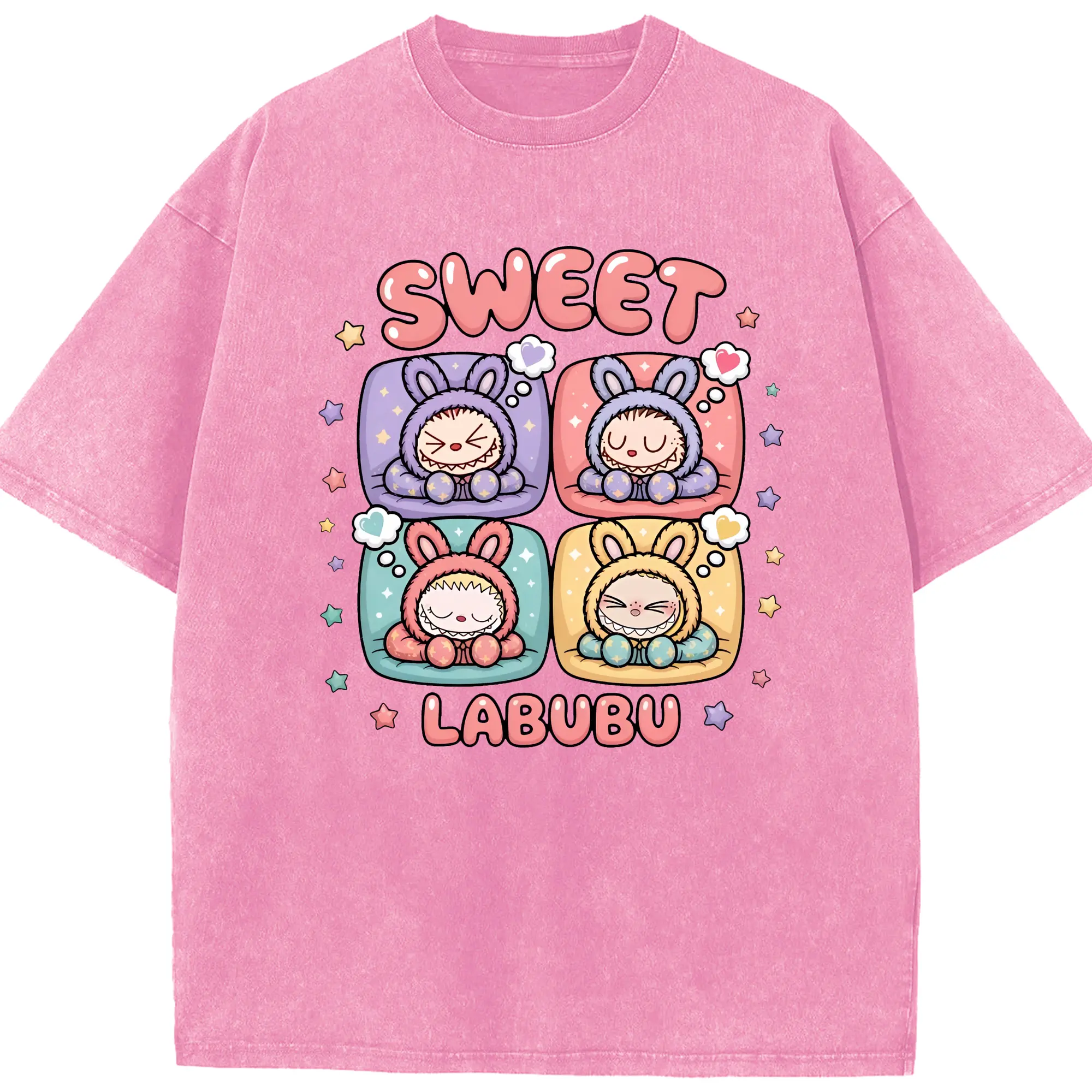 ラブブ グッズ モココ - 綿100% ヴィンテージ風 半袖Tシャツ ・ 背面プリント ・ 柔らか肌触り ・ 通気性 快適 ・ スポーツ カジュアル 外出用