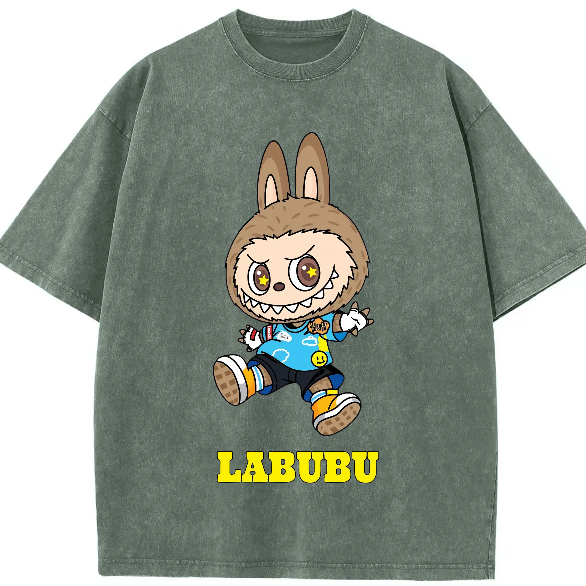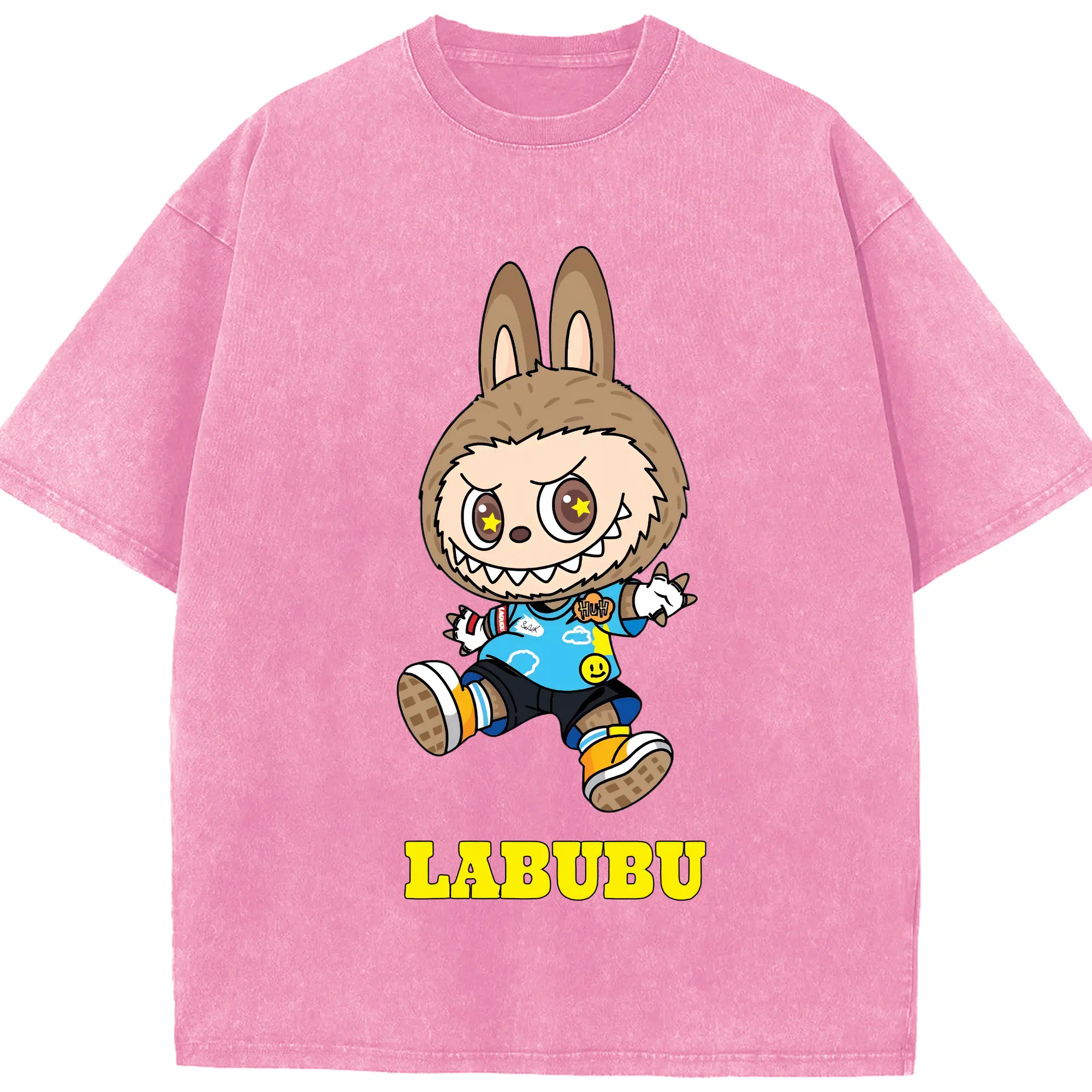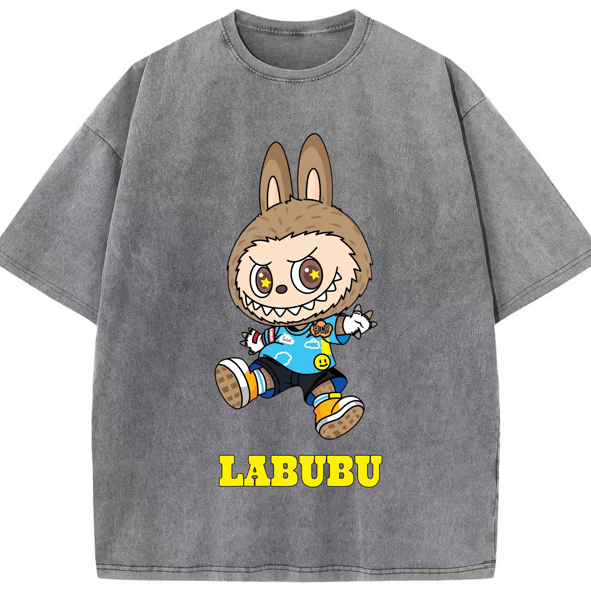 ラブブ グッズ モココ - 綿100% ヴィンテージ風 半袖Tシャツ ・ フロントプリント ・ 柔らか肌触り ・ 通気性 快適 ・ スポーツ カジュアル 外出用