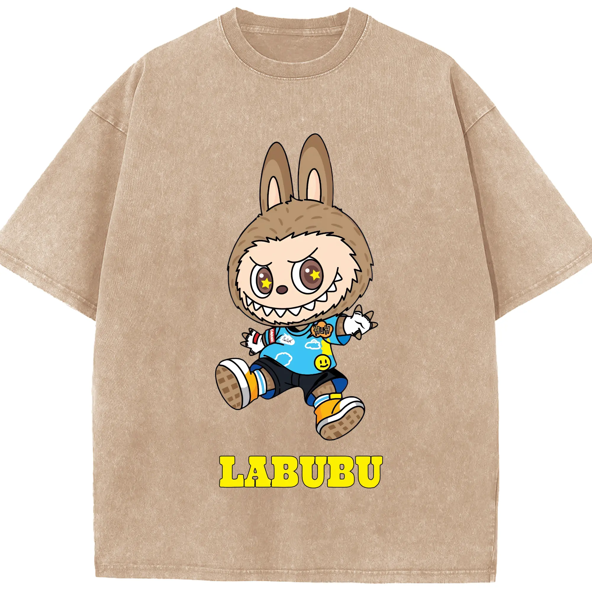 ラブブ グッズ モココ - 綿100% ヴィンテージ風 半袖Tシャツ ・ 背面プリント ・ 柔らか肌触り ・ 通気性 快適 ・ スポーツ カジュアル 外出用