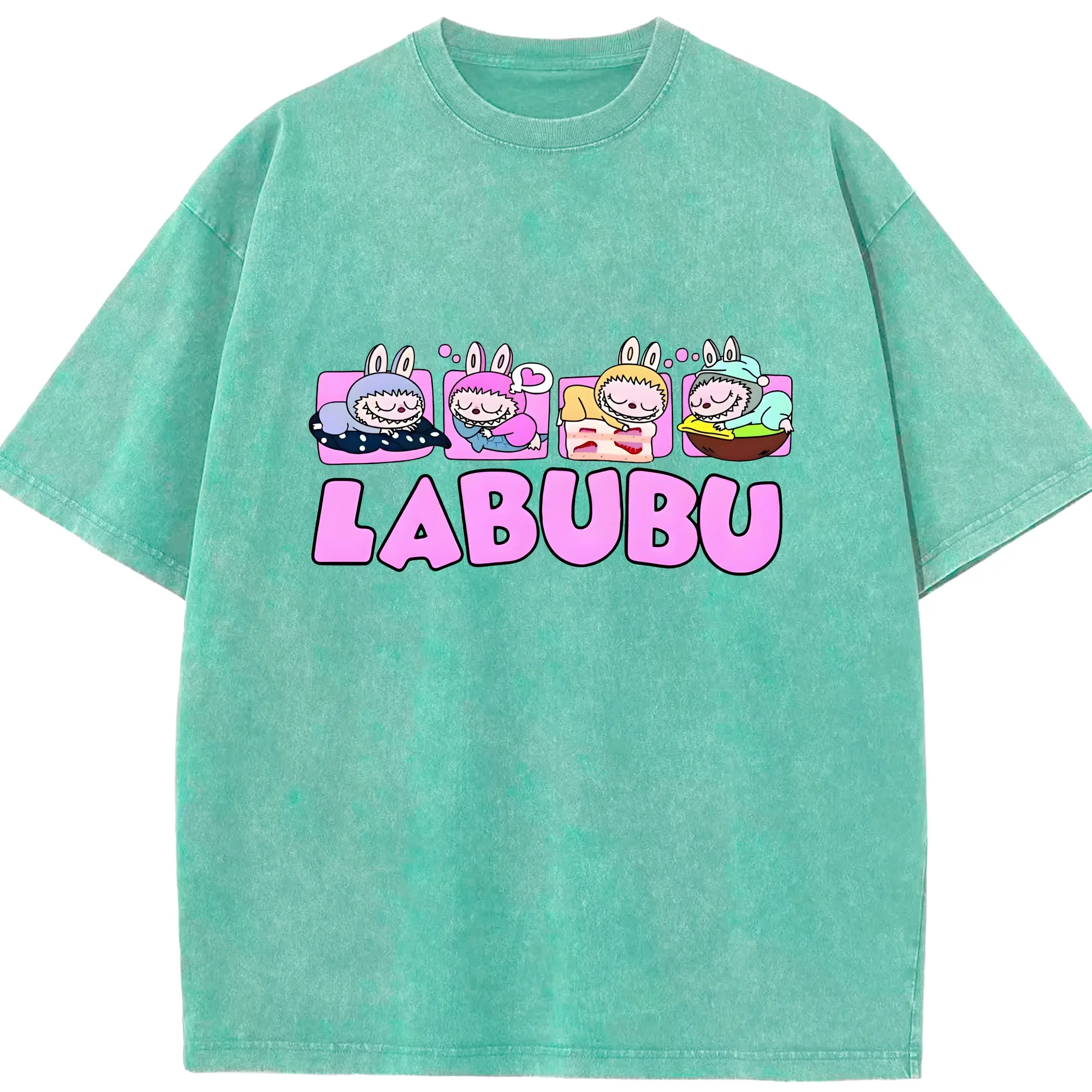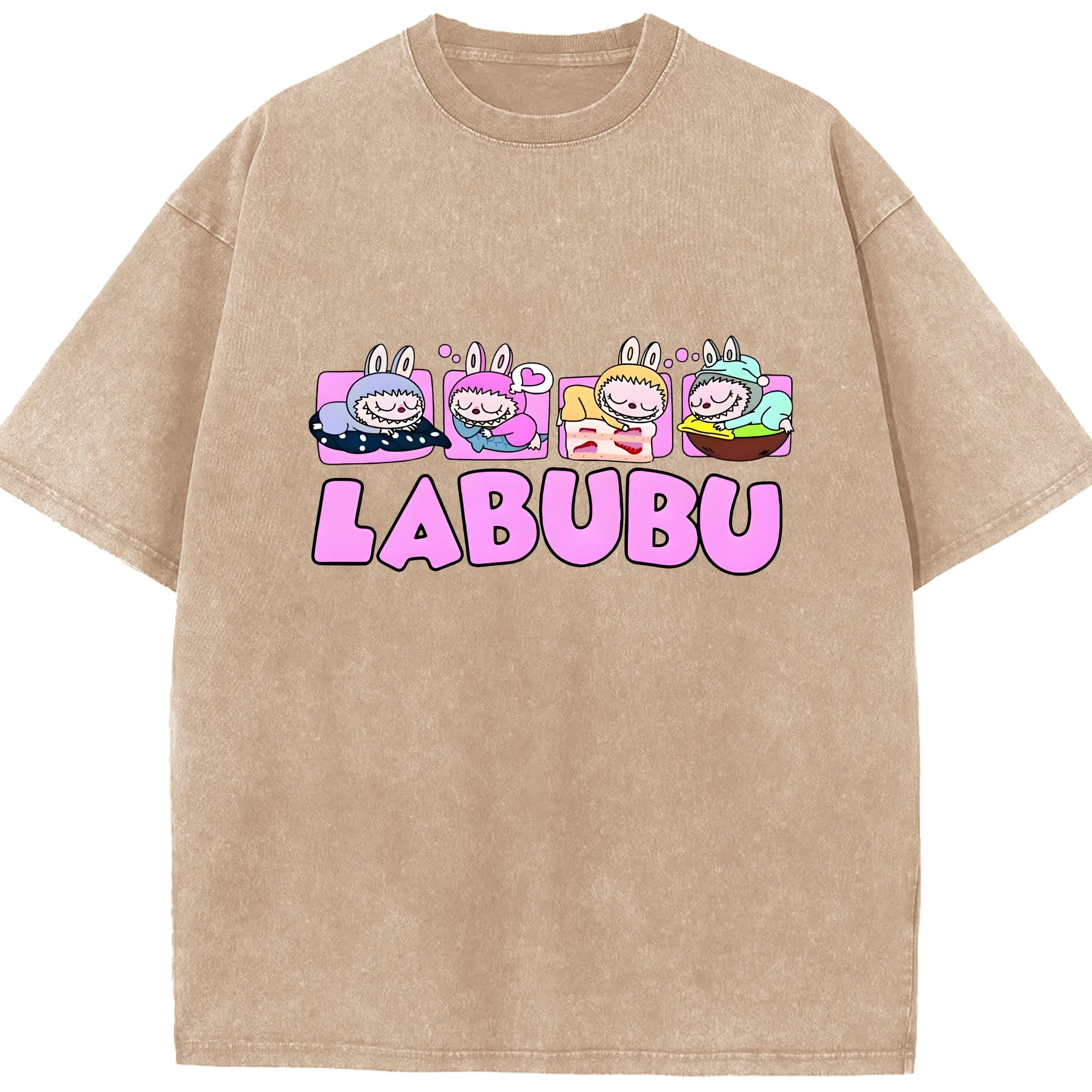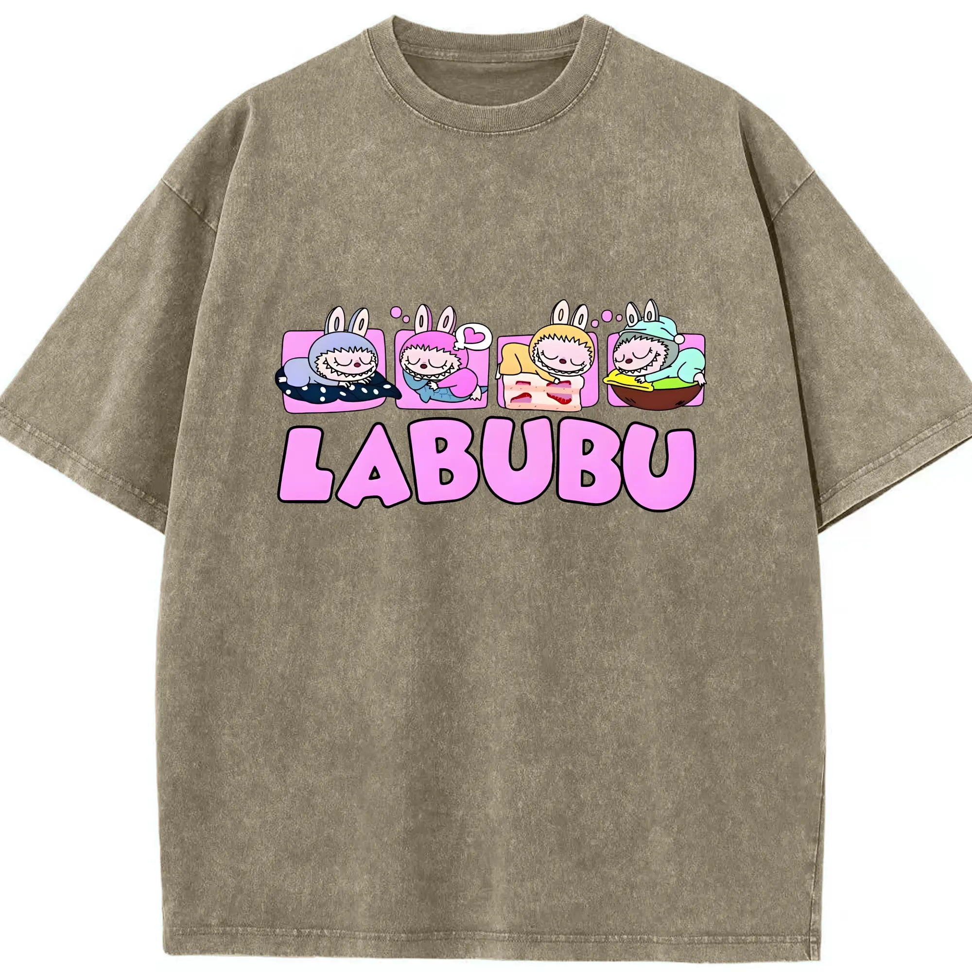 ラブブ グッズ モココ - 綿100% ヴィンテージ風 半袖Tシャツ ・ 背面プリント ・ 柔らか肌触り ・ 通気性 快適 ・ スポーツ カジュアル 外出用
