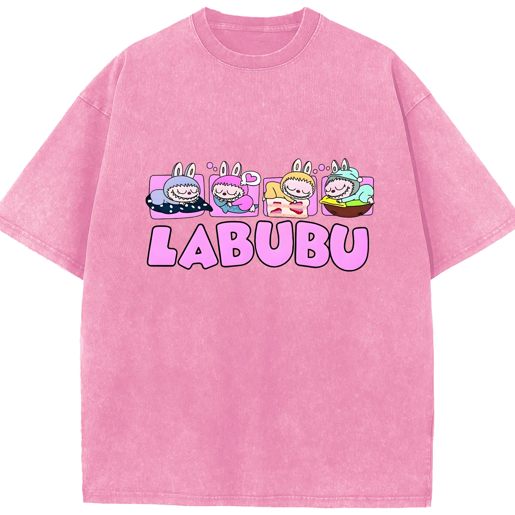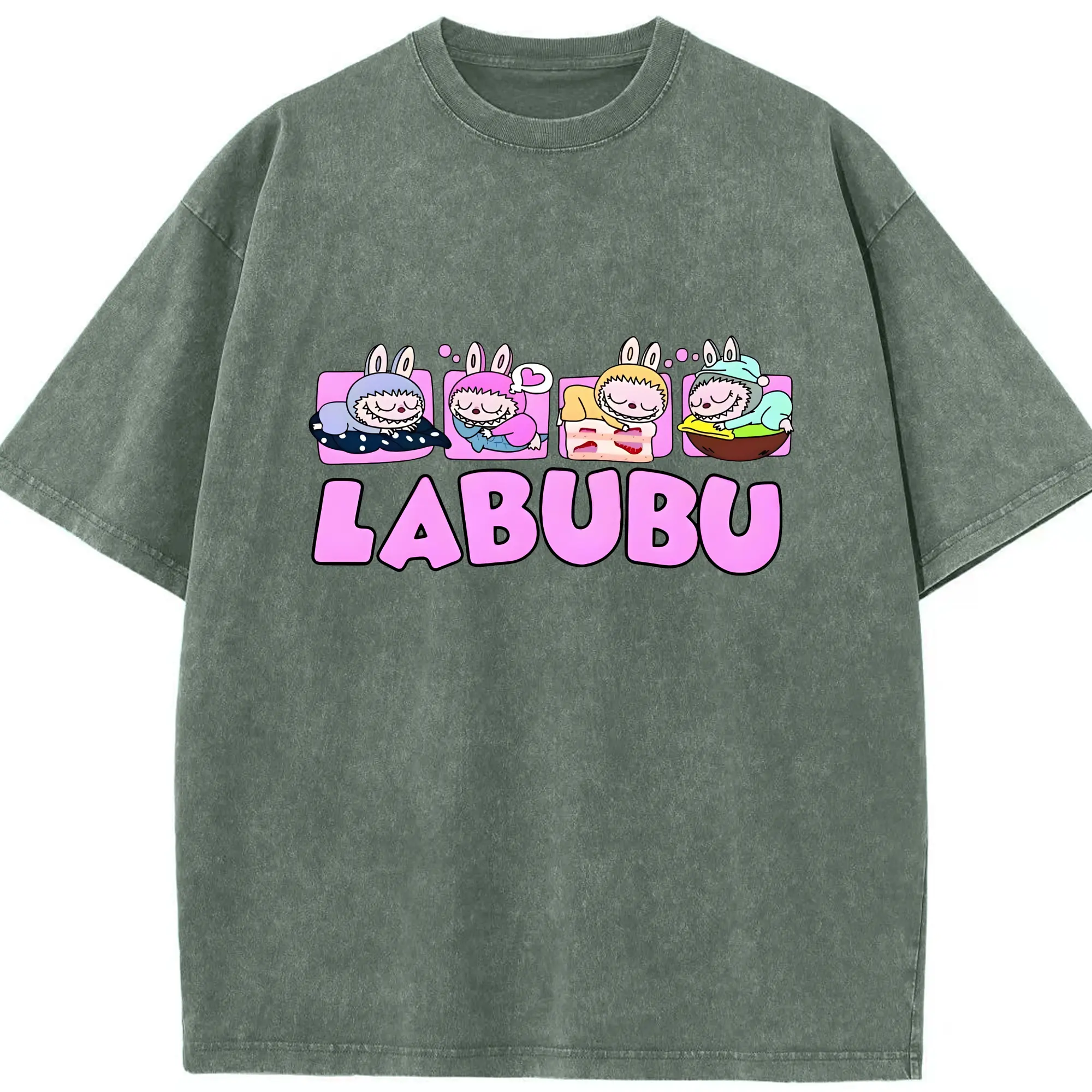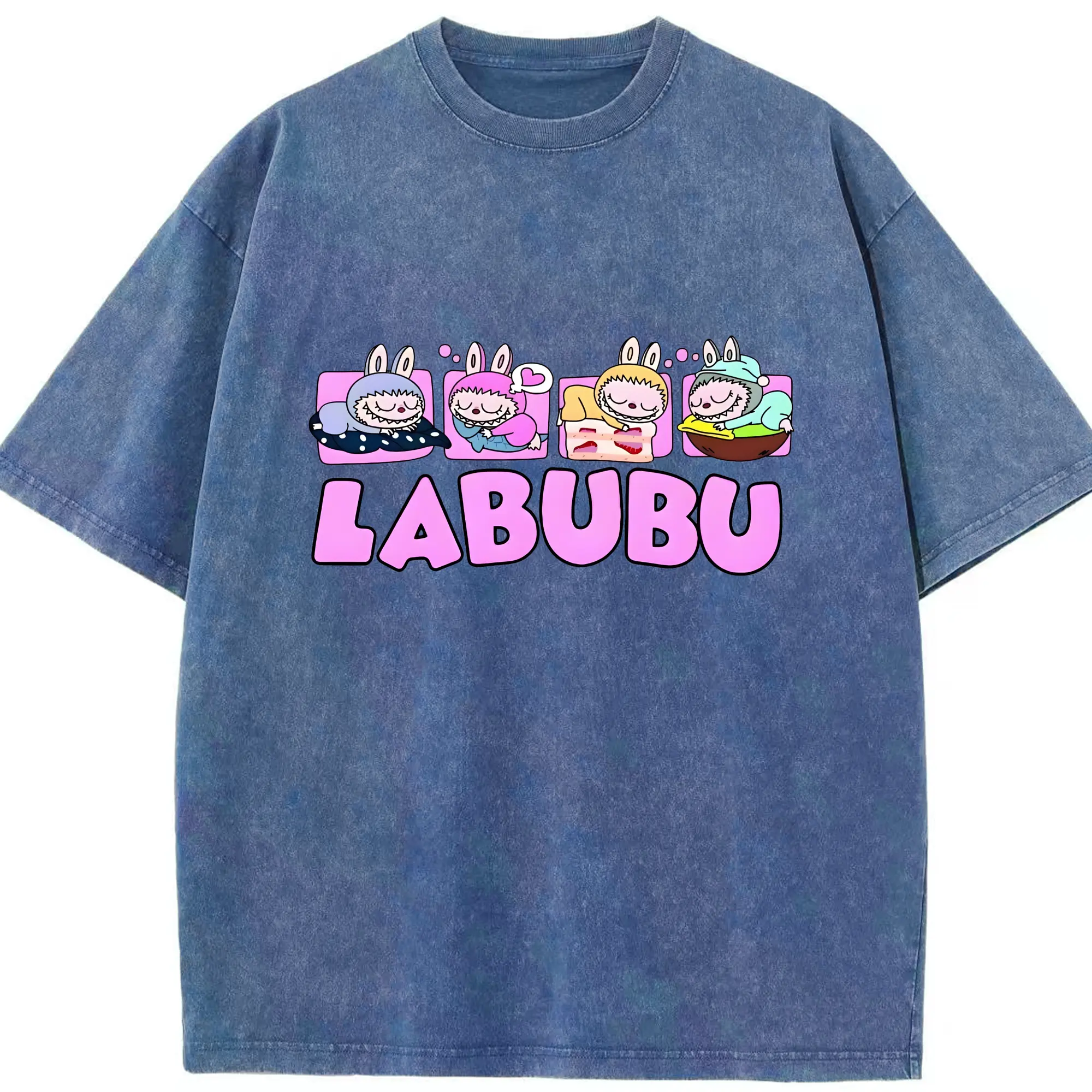 ラブブ グッズ モココ - 綿100% ヴィンテージ風 半袖Tシャツ ・ 背面プリント ・ 柔らか肌触り ・ 通気性 快適 ・ スポーツ カジュアル 外出用