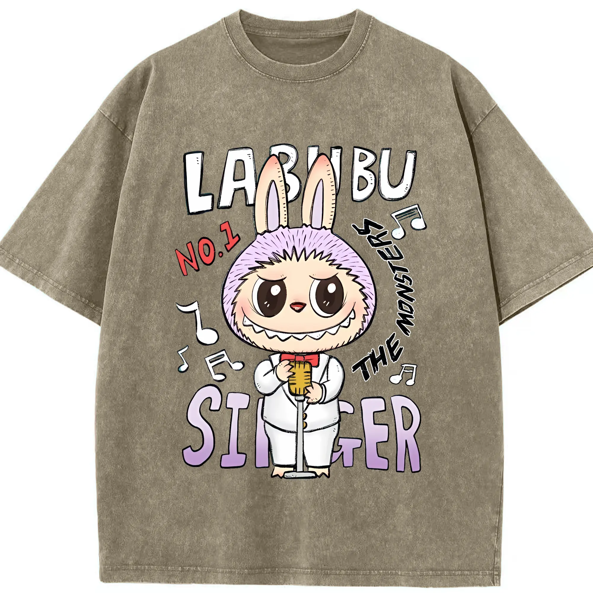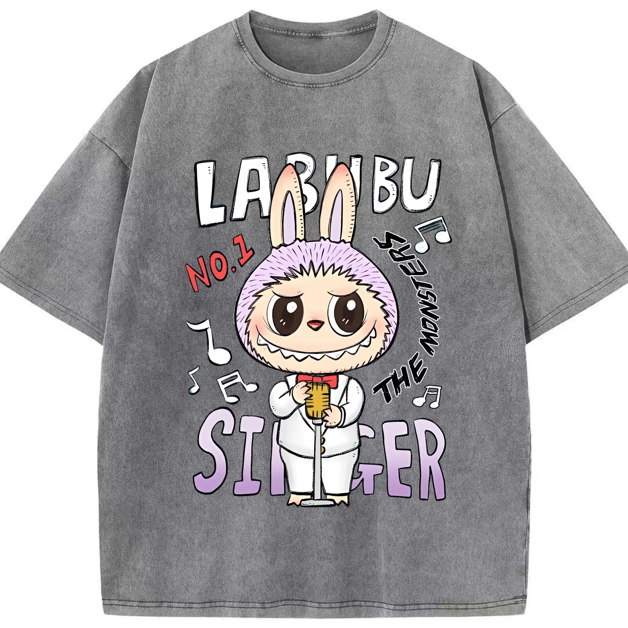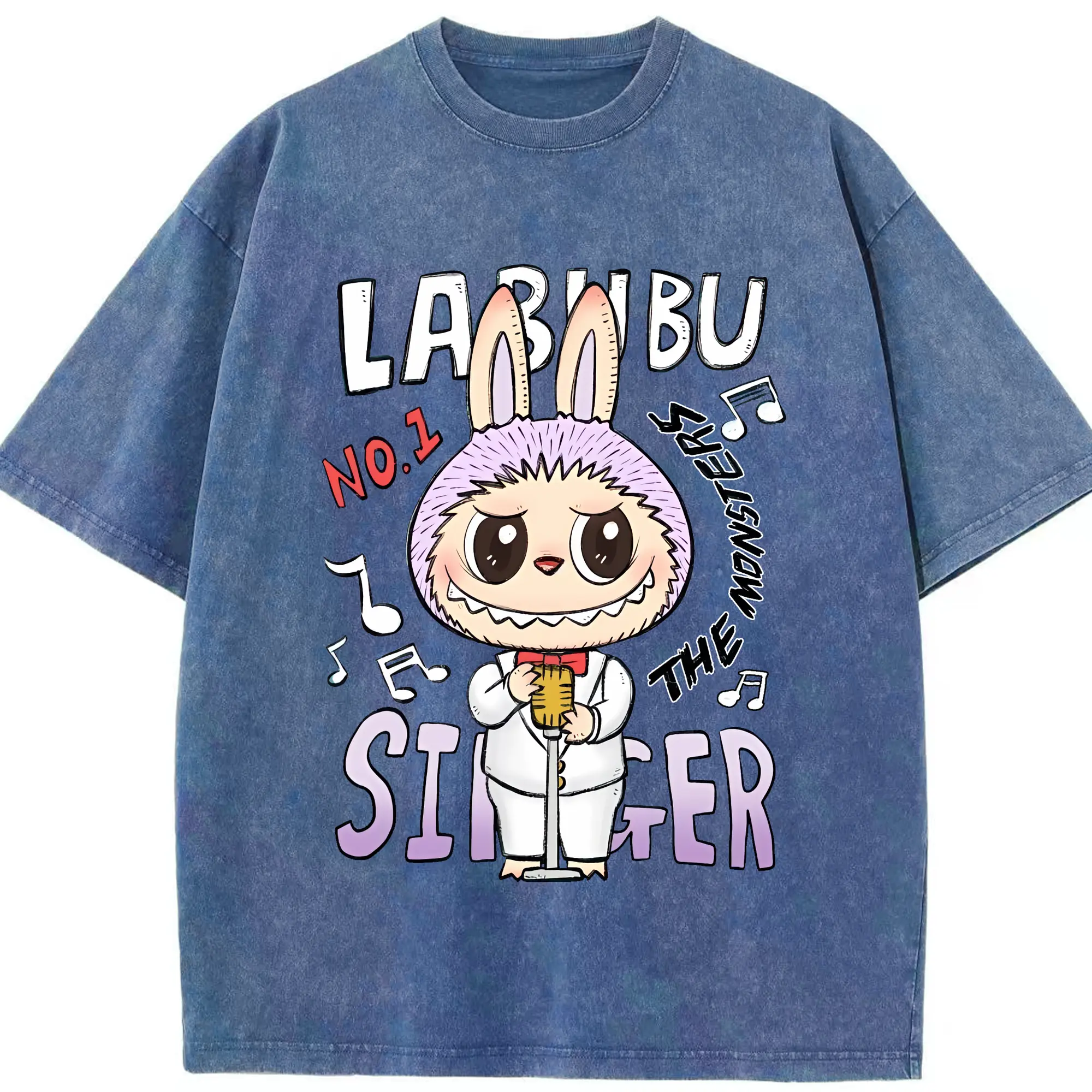 ラブブ グッズ モココ - 綿100% ヴィンテージ風 半袖Tシャツ ・ 背面プリント ・ 柔らか肌触り ・ 通気性 快適 ・ スポーツ カジュアル 外出用