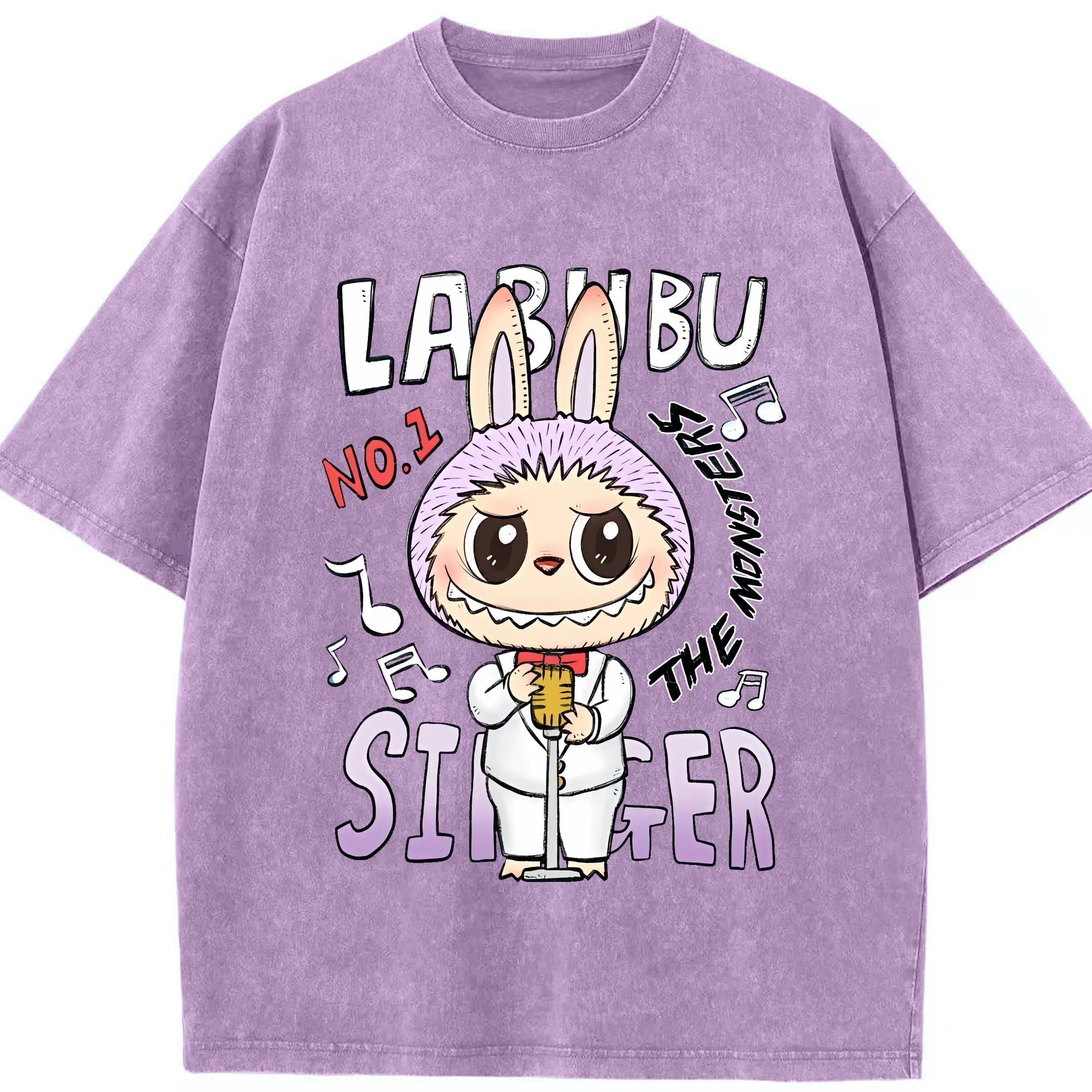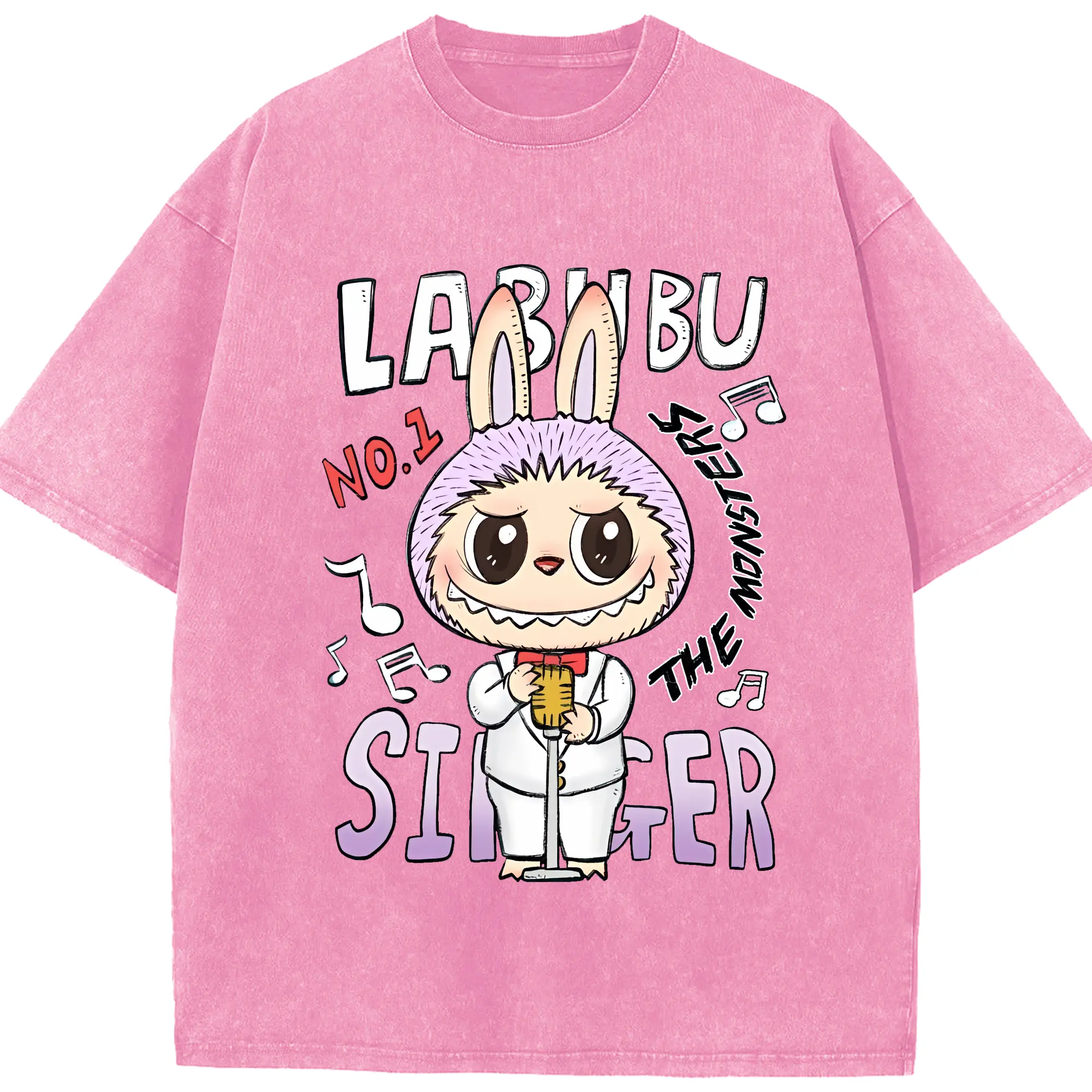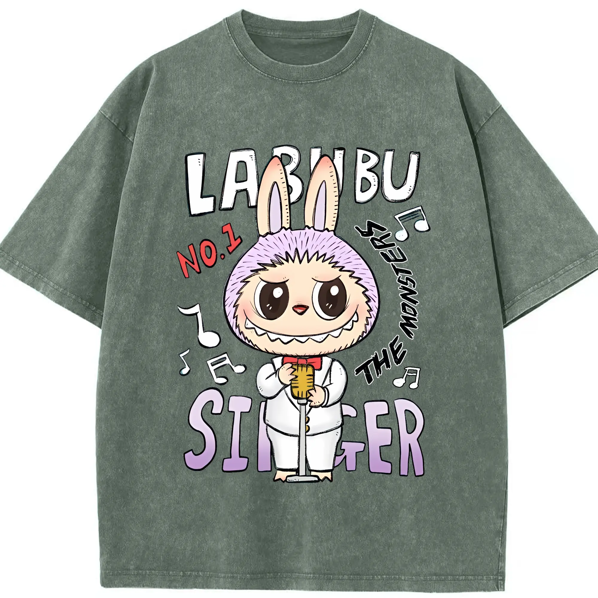 ラブブ グッズ モココ - 綿100% ヴィンテージ風 半袖Tシャツ ・ 背面プリント ・ 柔らか肌触り ・ 通気性 快適 ・ スポーツ カジュアル 外出用