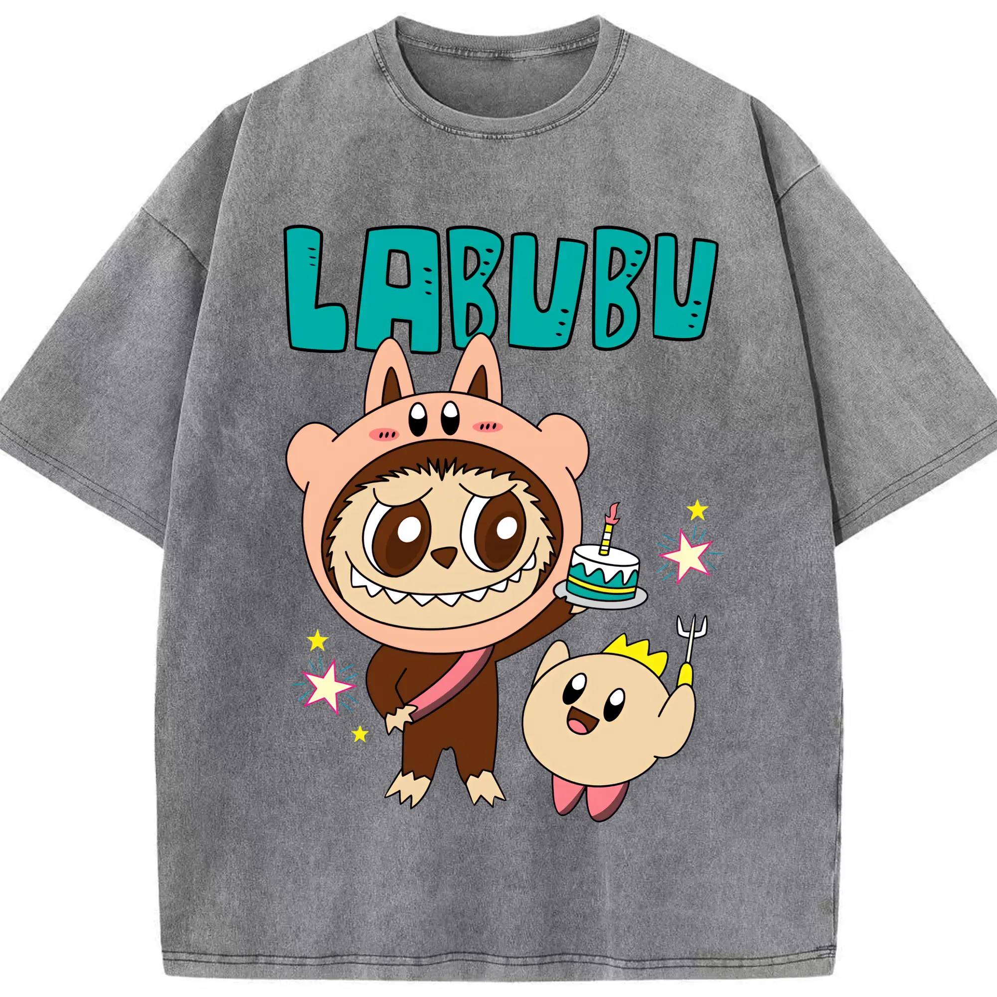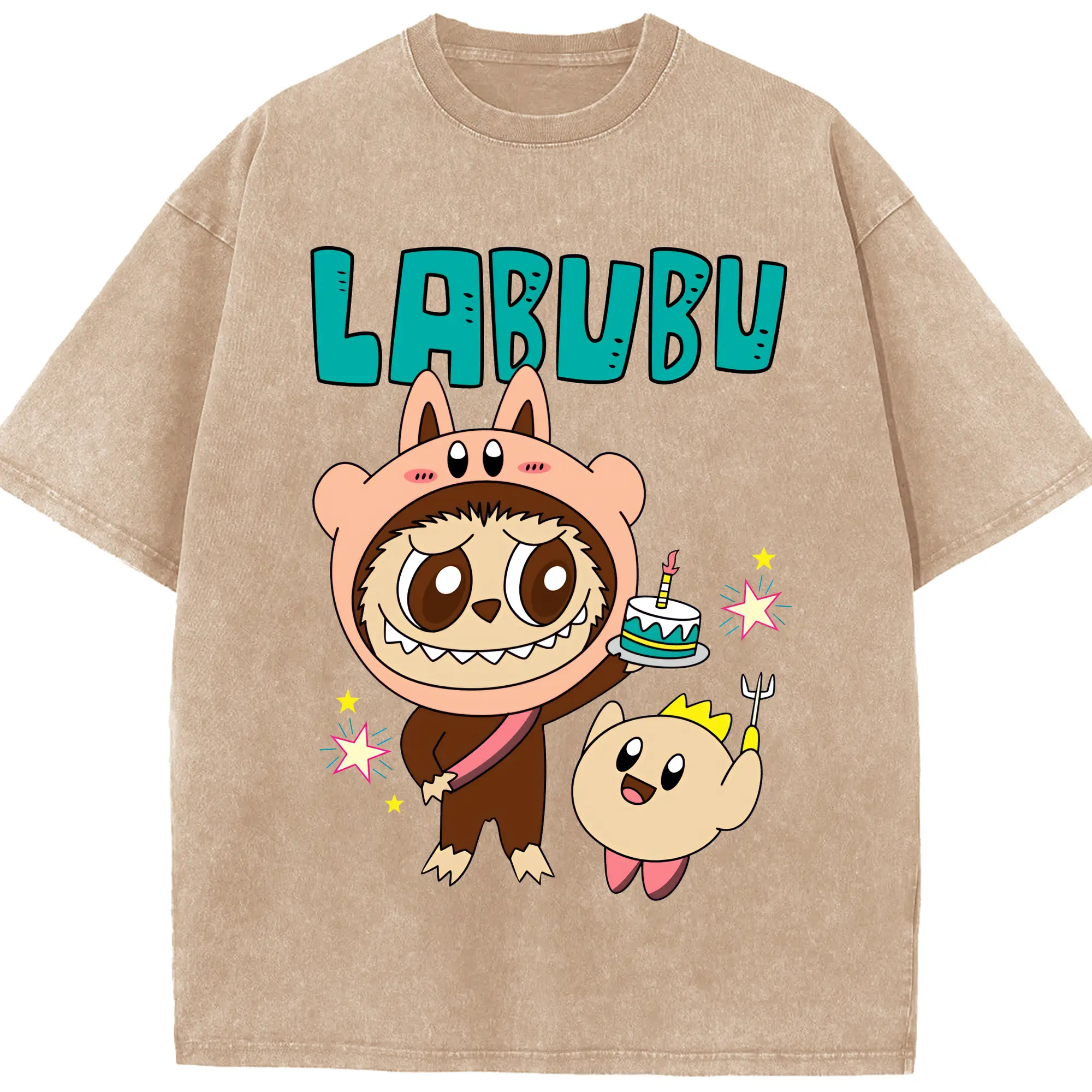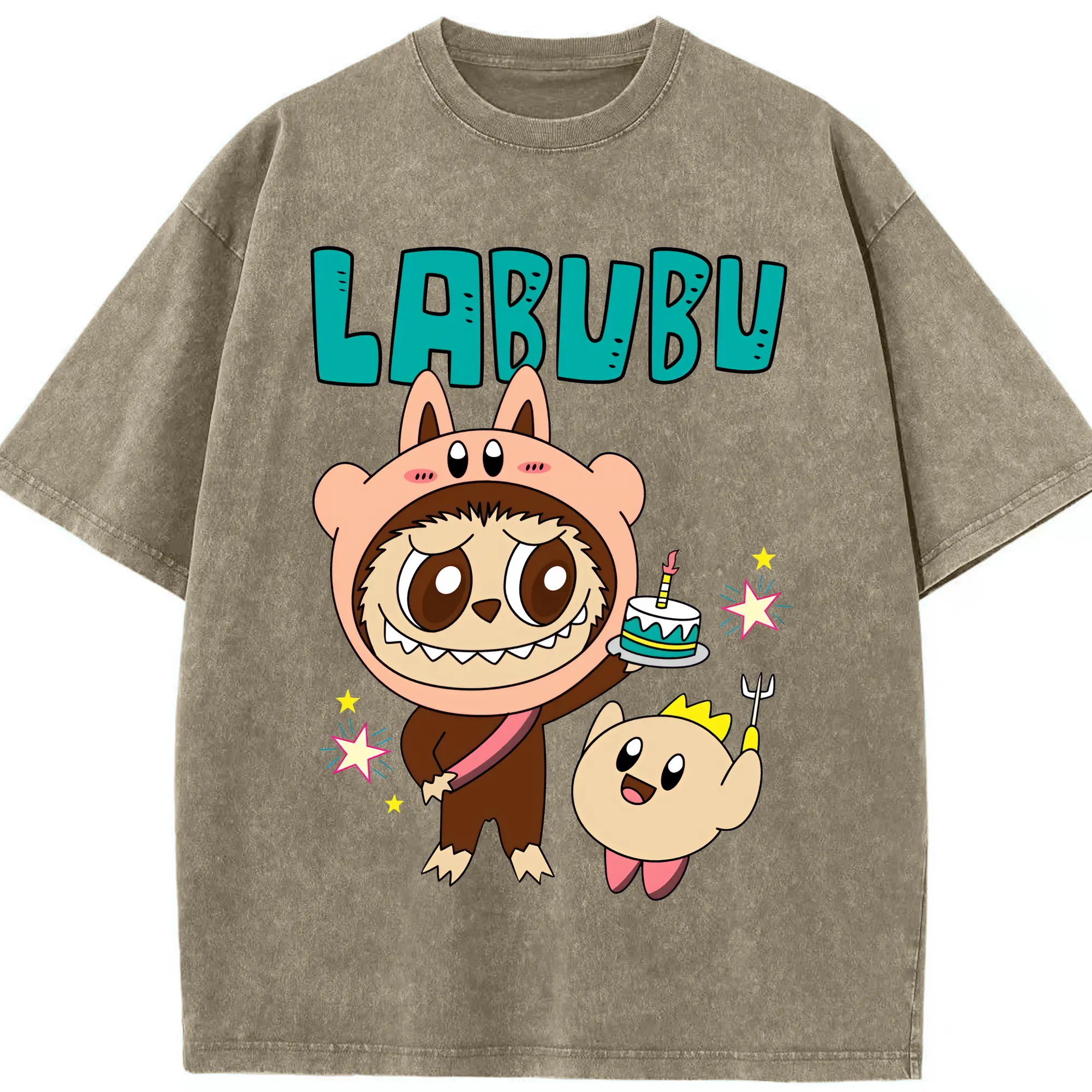 ラブブ グッズ モココ - 綿100% ヴィンテージ風 半袖Tシャツ ・ 背面プリント ・ 柔らか肌触り ・ 通気性 快適 ・ スポーツ カジュアル 外出用