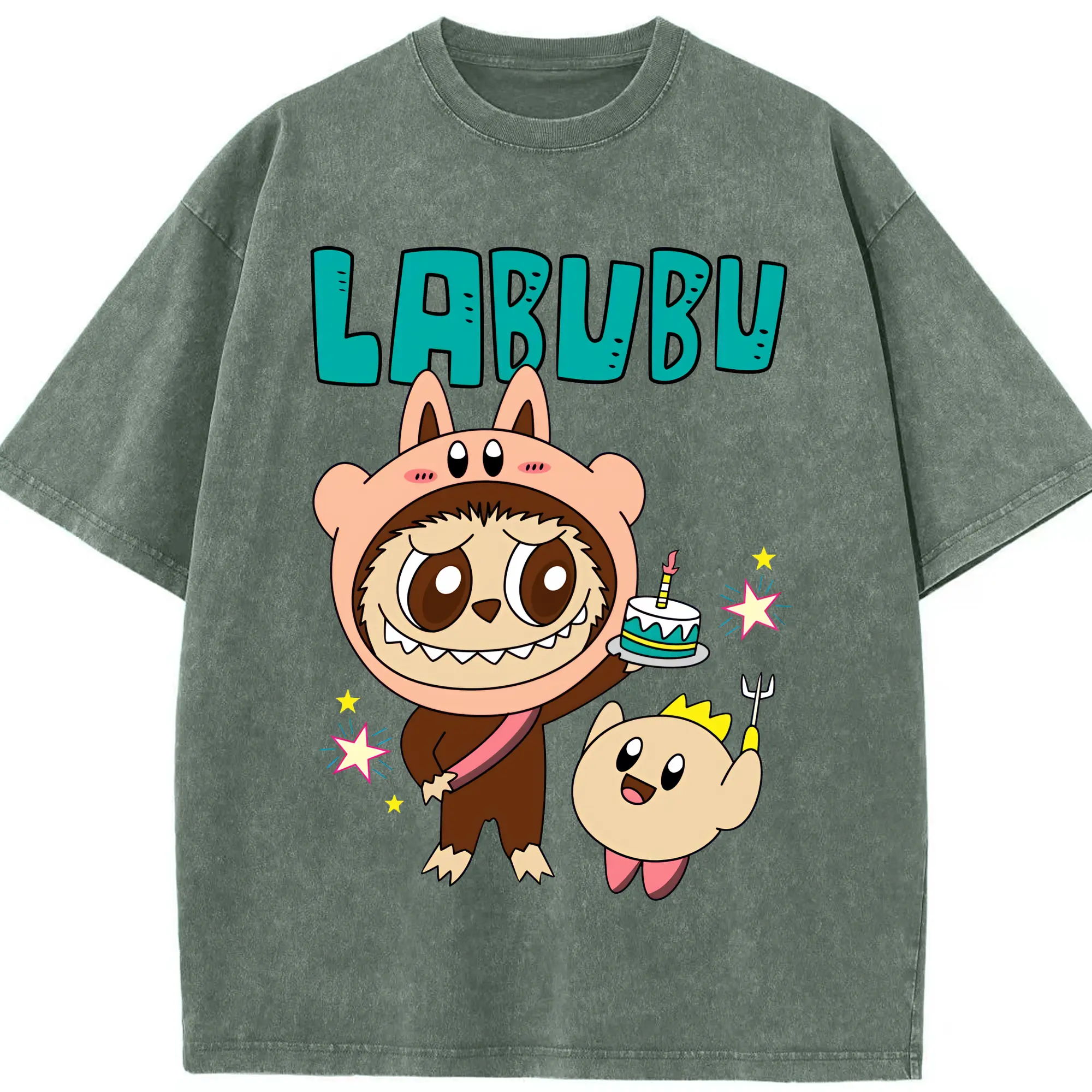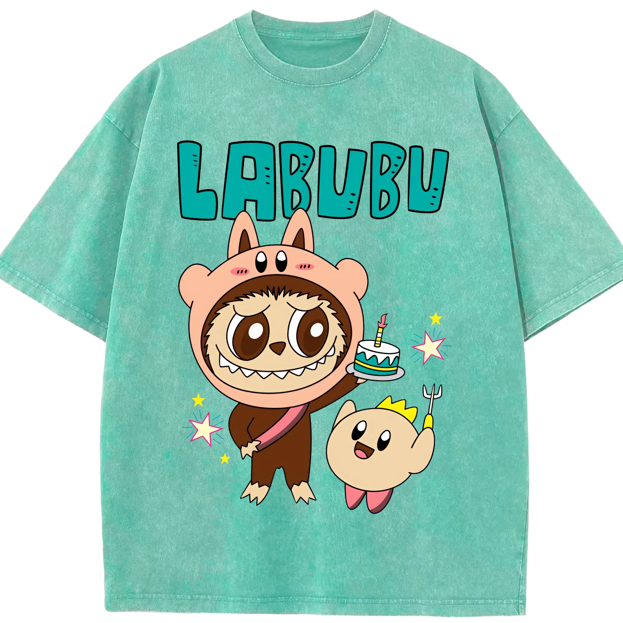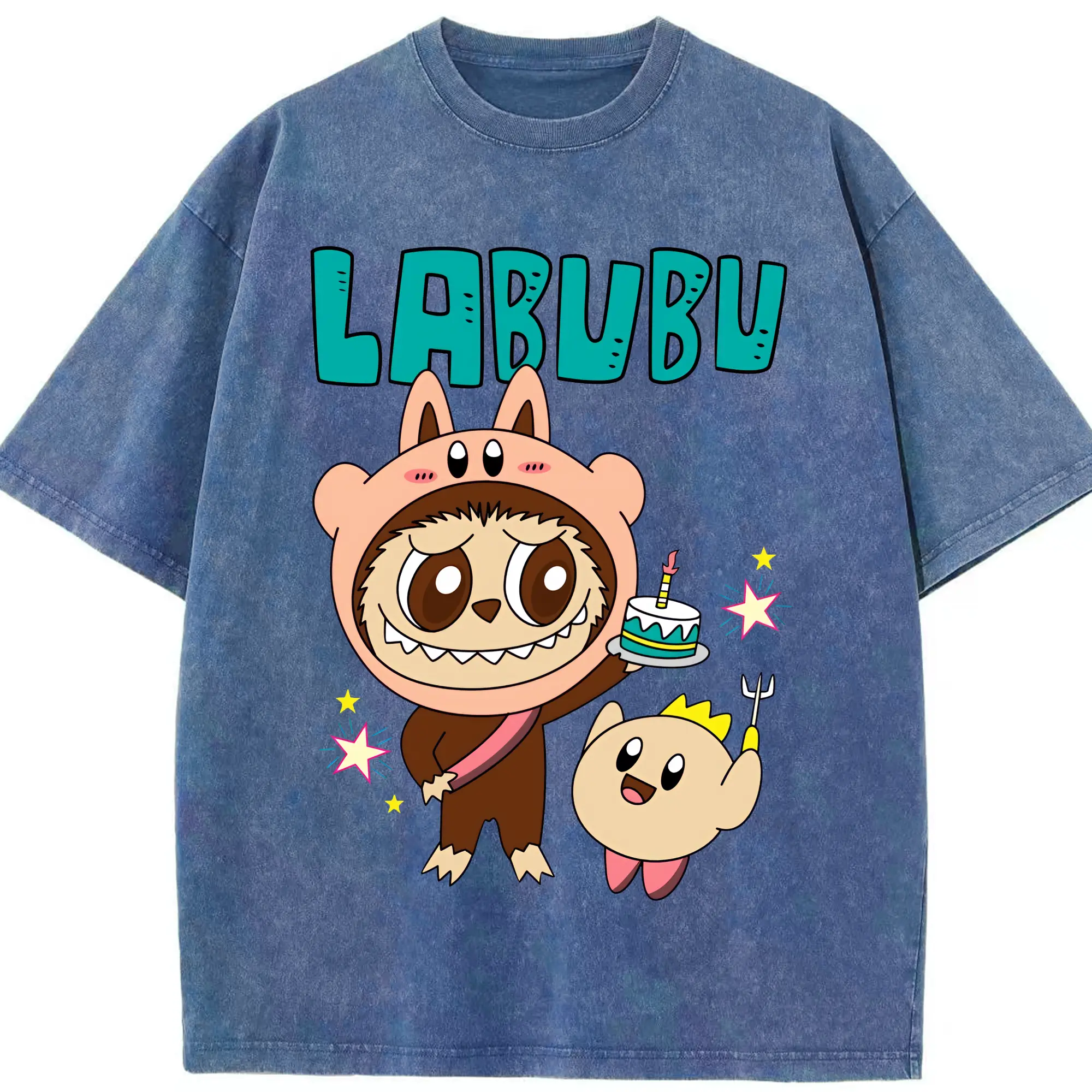 ラブブ グッズ モココ - 綿100% ヴィンテージ風 半袖Tシャツ ・ 背面プリント ・ 柔らか肌触り ・ 通気性 快適 ・ スポーツ カジュアル 外出用