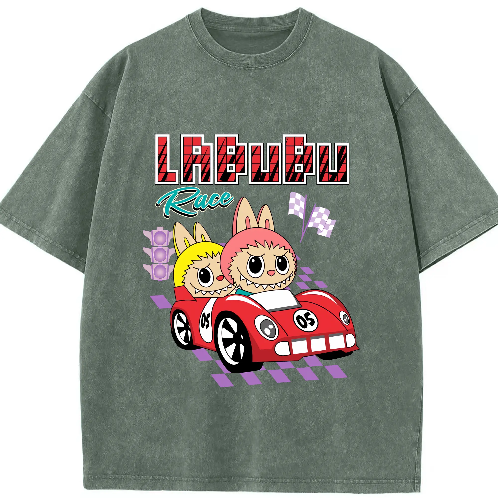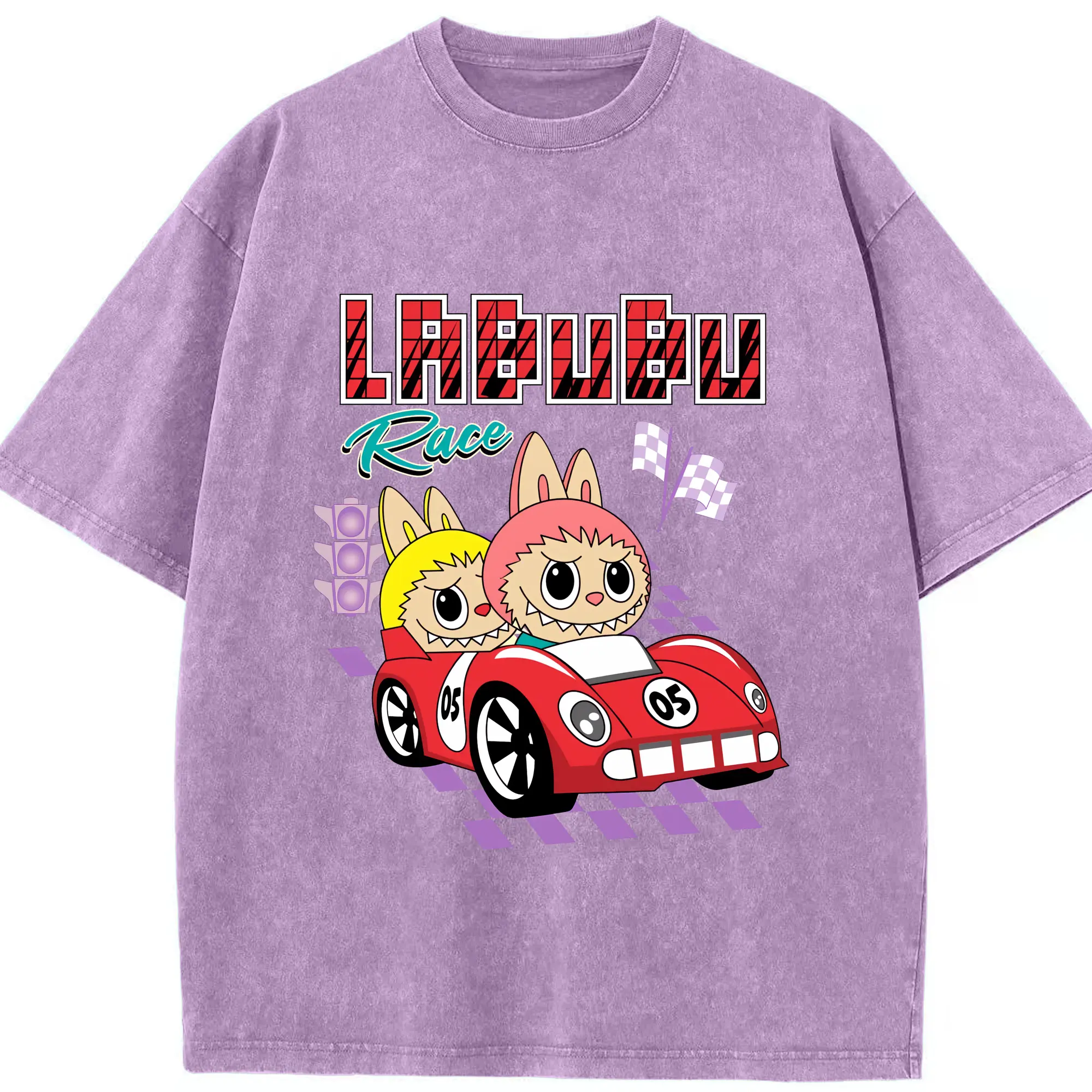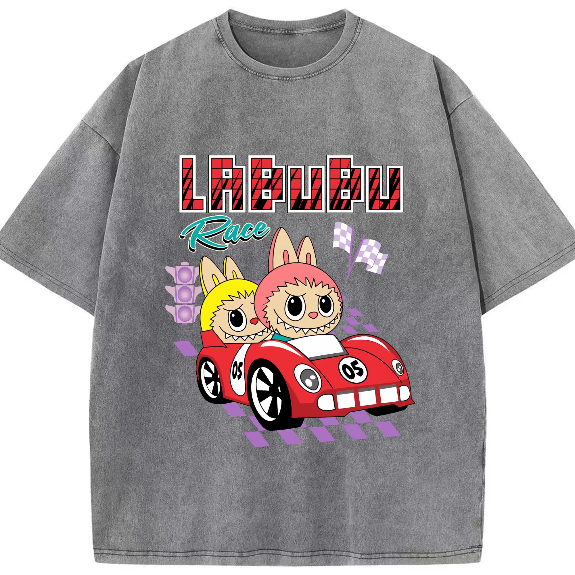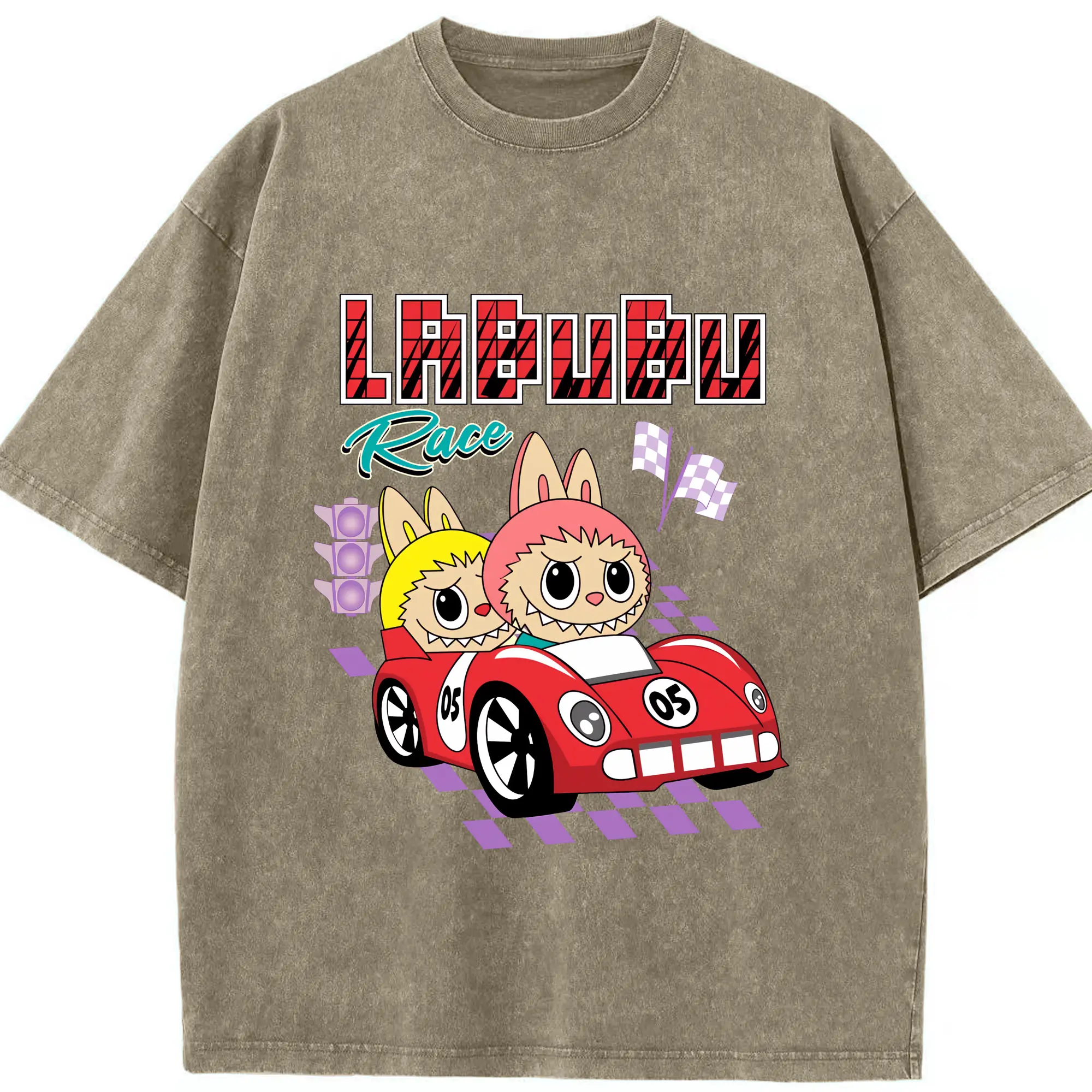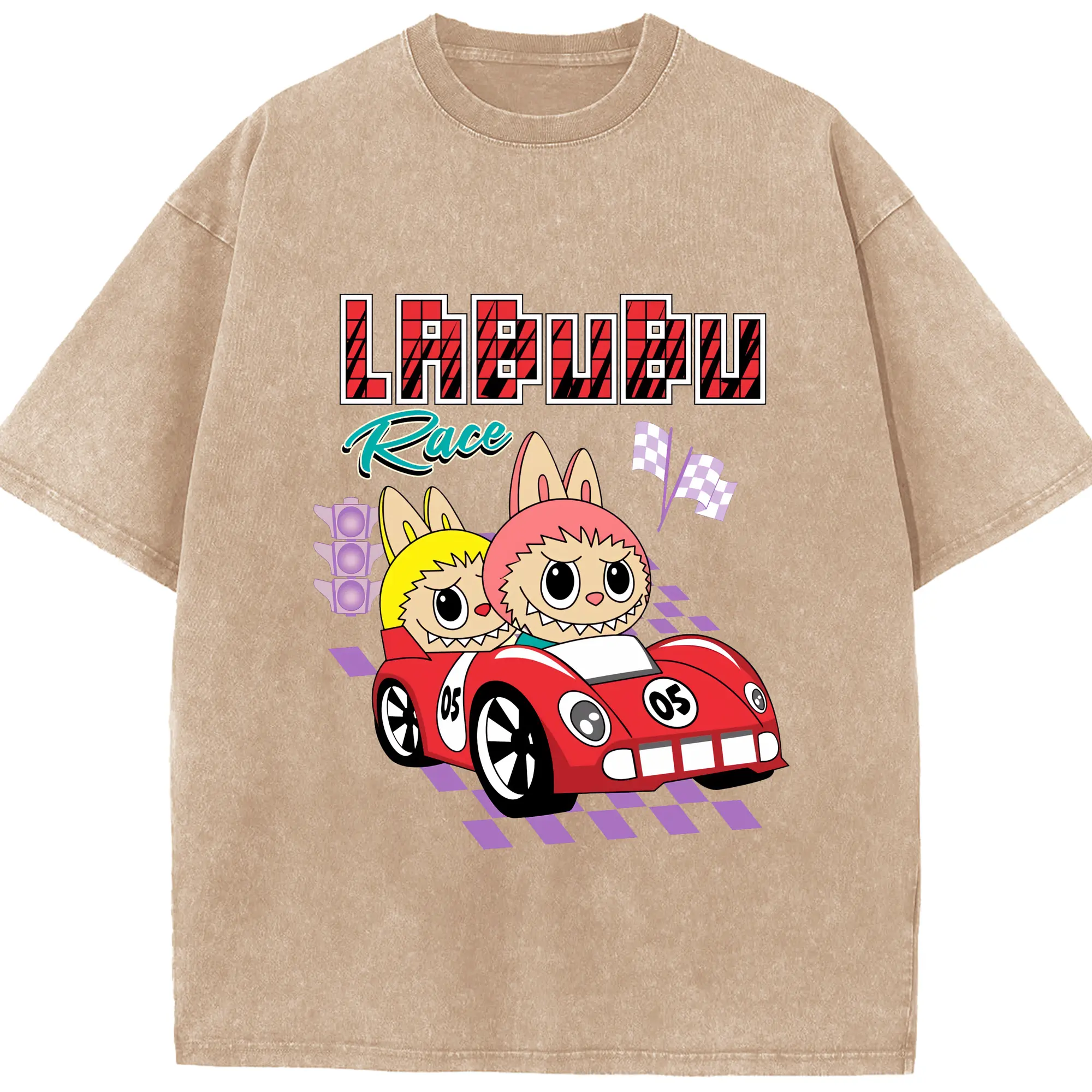 ラブブ グッズ モココ - 綿100% ヴィンテージ風 半袖Tシャツ ・ 背面プリント ・ 柔らか肌触り ・ 通気性 快適 ・ スポーツ カジュアル 外出用